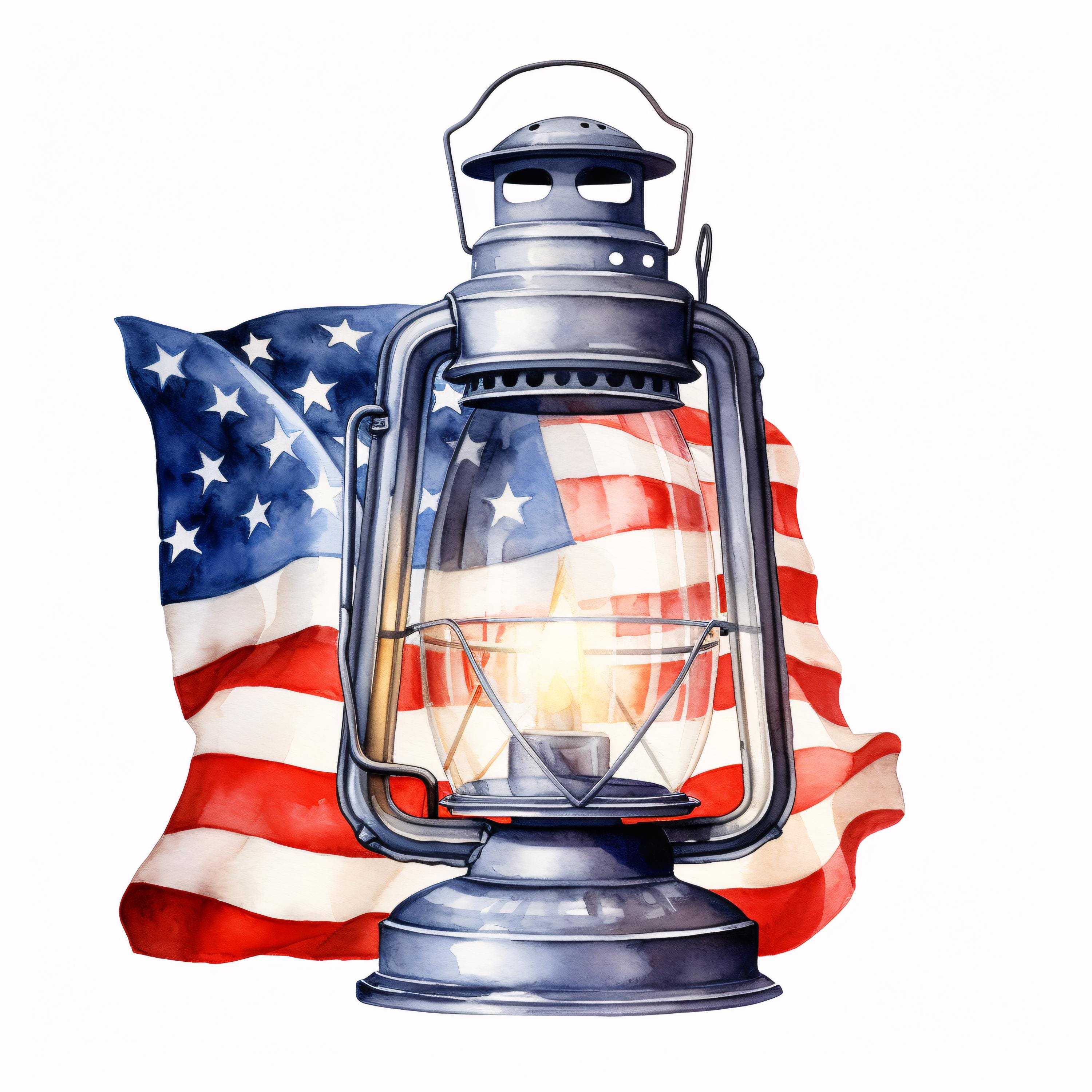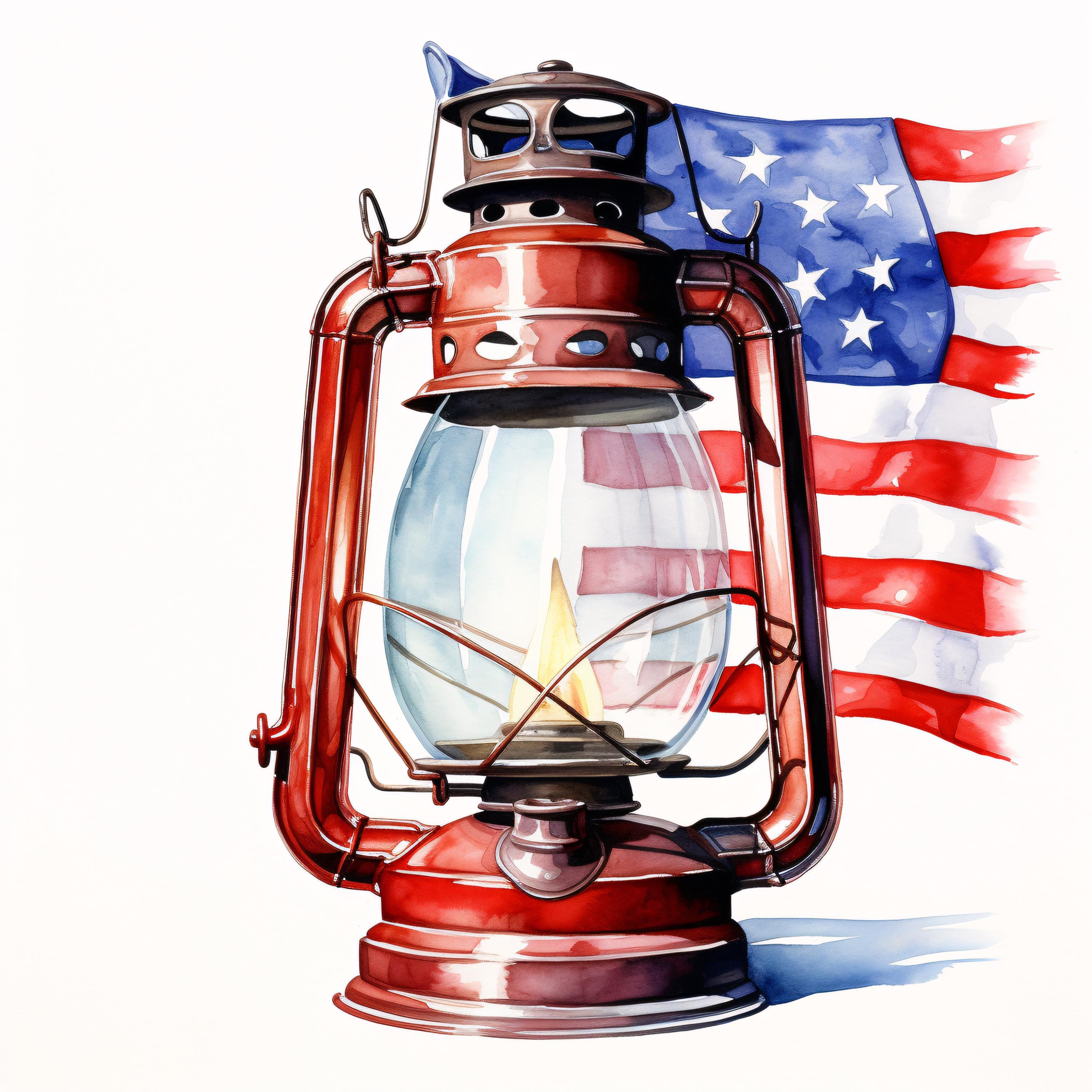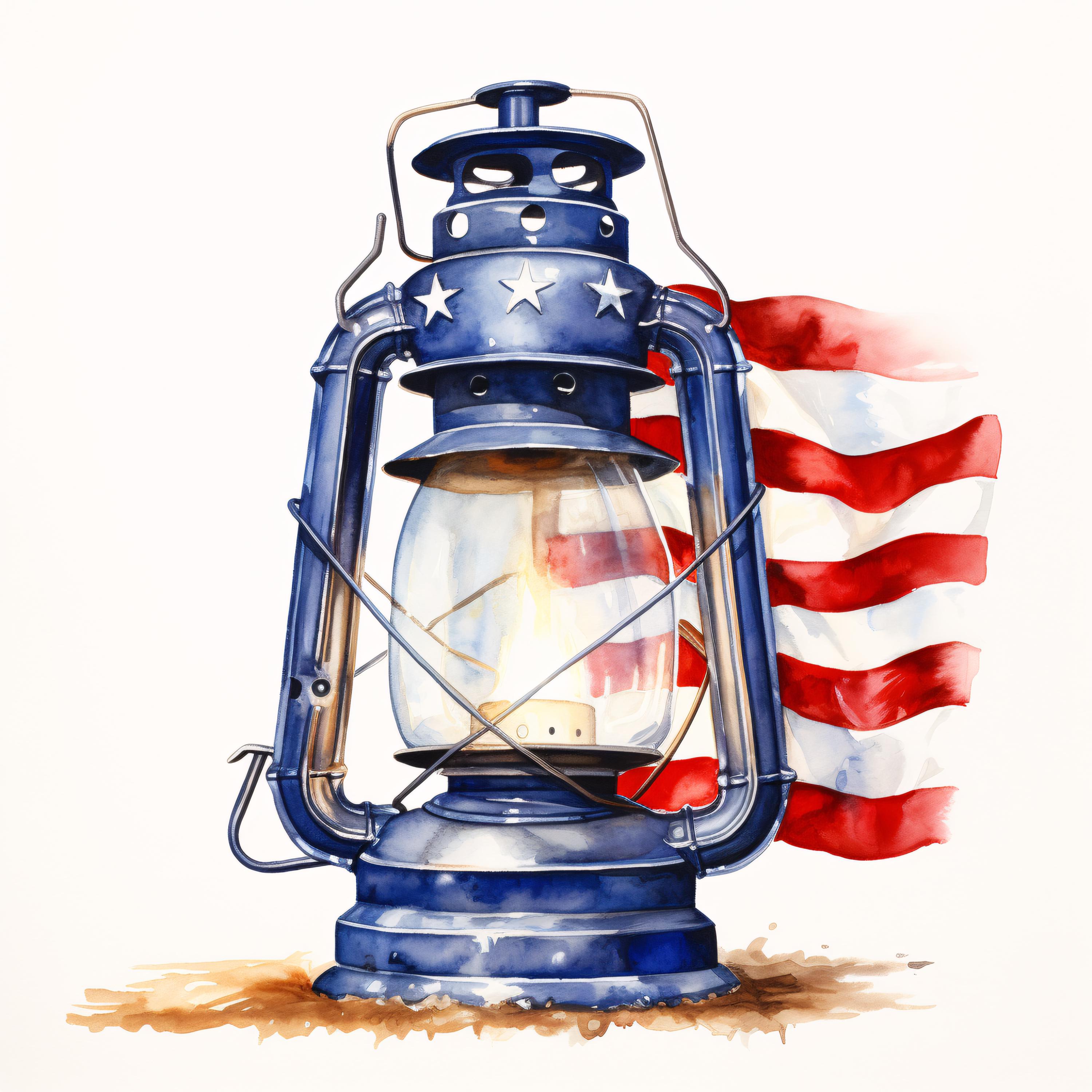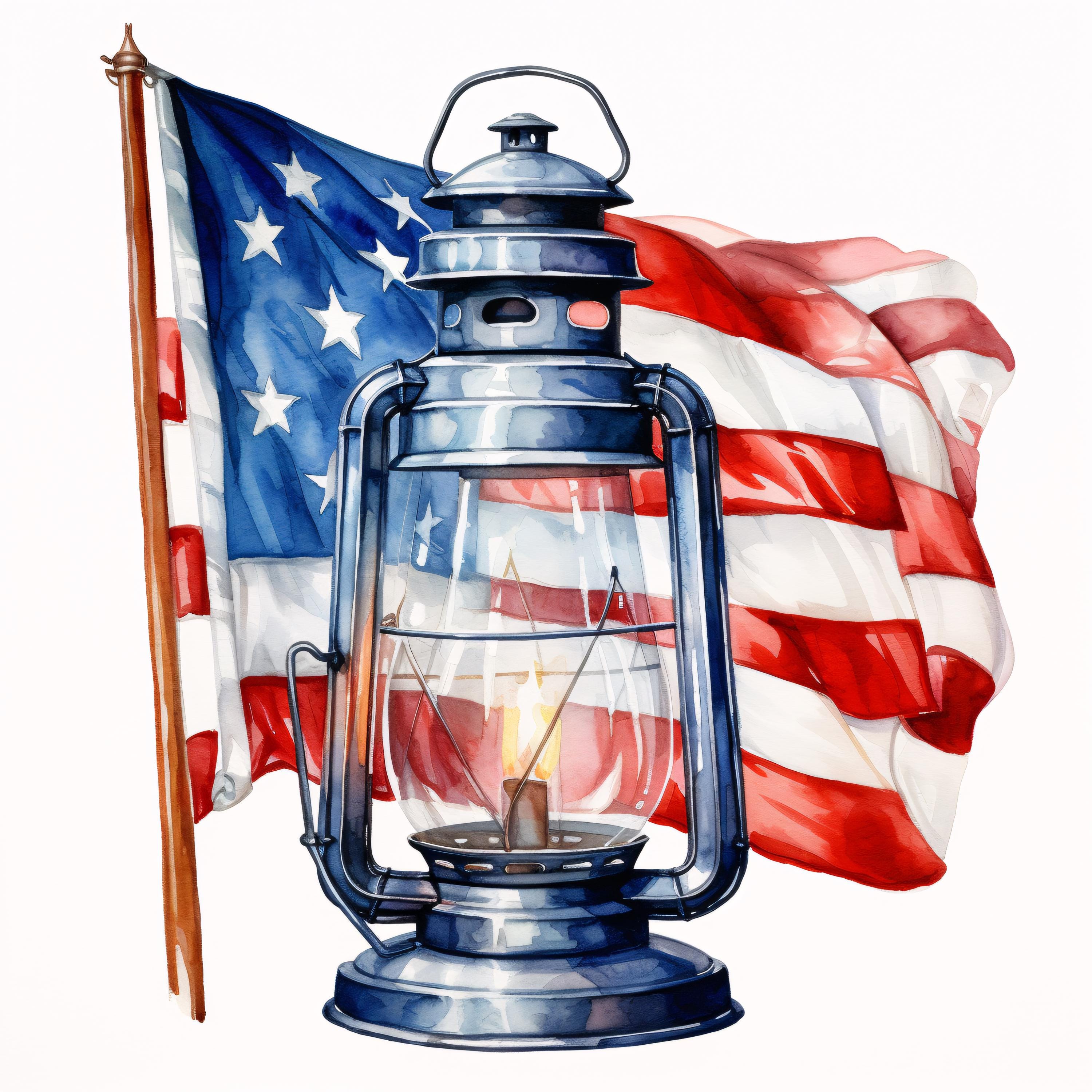 Patriotic Lantern Clipart, USA Flag Decor Images, 10 Watercolor Clip Art, Printable JPGs, Instant Download, Commercial Use, Paper Craft