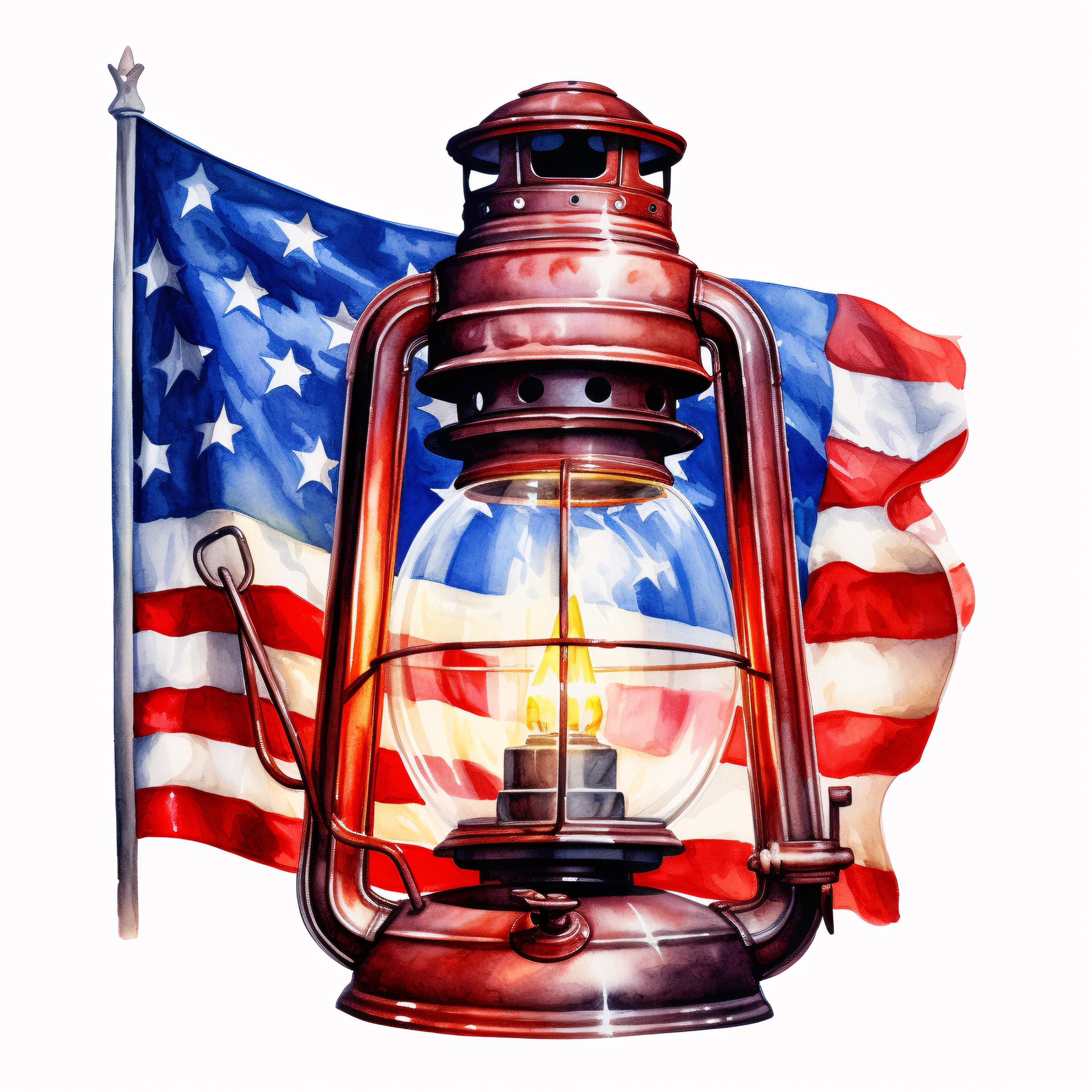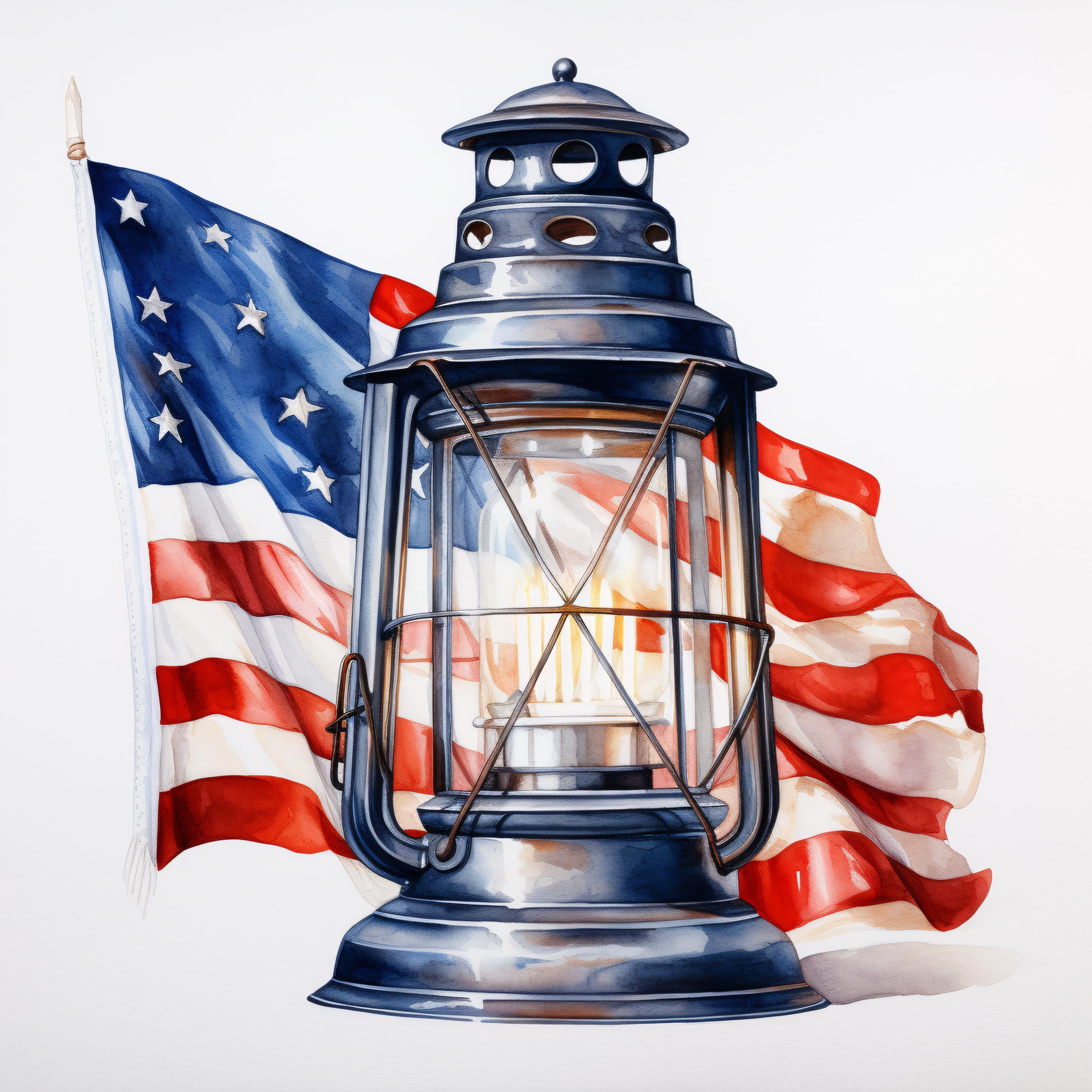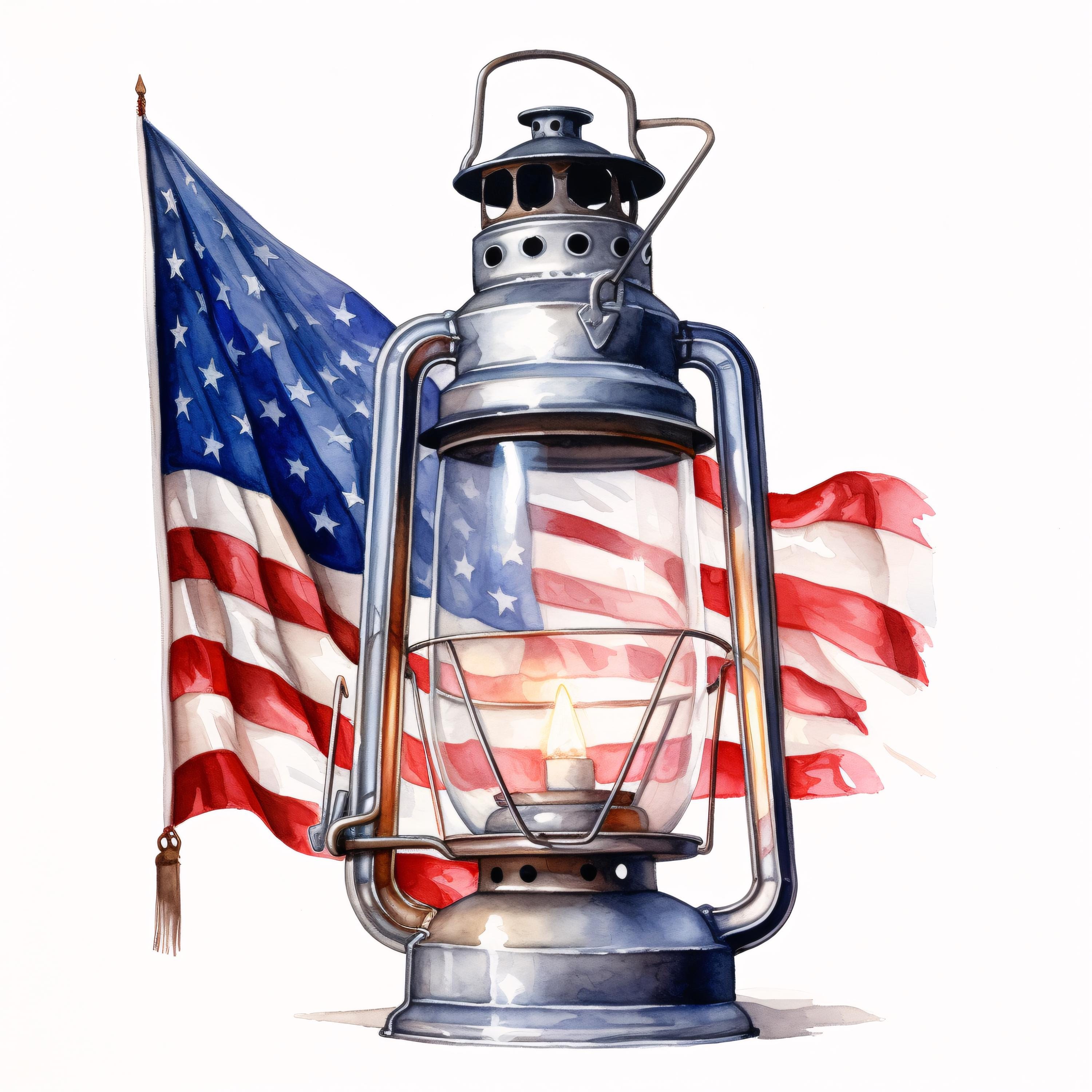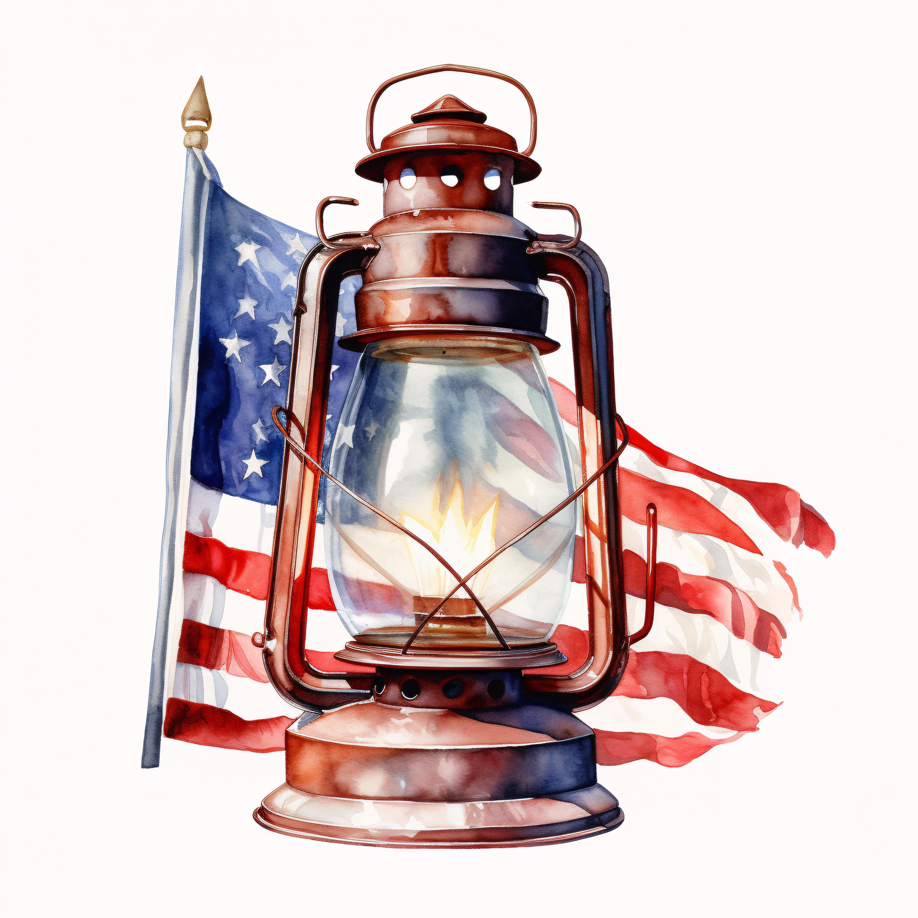 Patriotic Lantern Clipart, USA Flag Decor Images, 10 Watercolor Clip Art, Printable JPGs, Instant Download, Commercial Use, Paper Craft