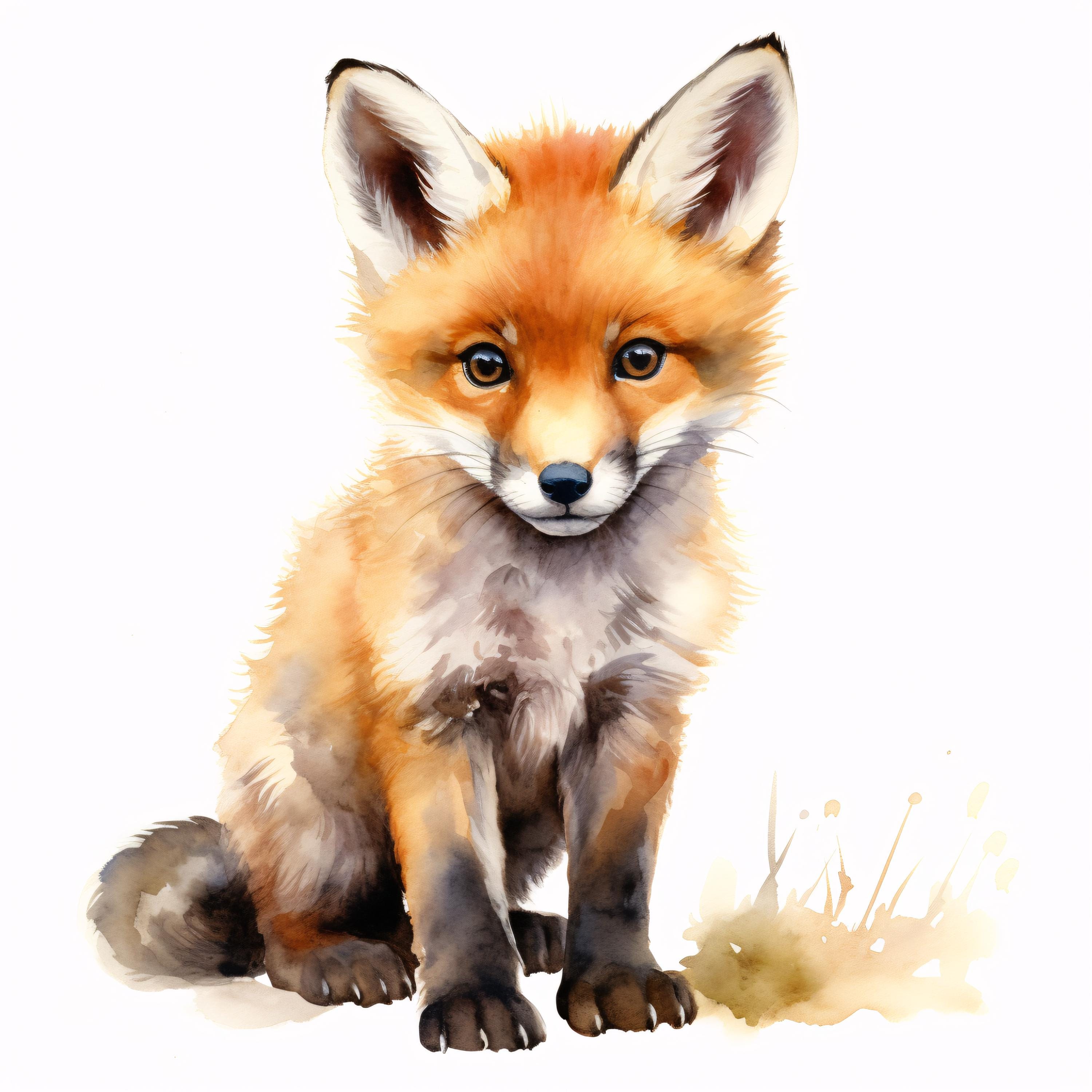 Baby Fox Clipart, Forest Animal Images, 10 Watercolor Clip Art, Printable JPGs, Instant Download, Commercial Use, Paper Craft