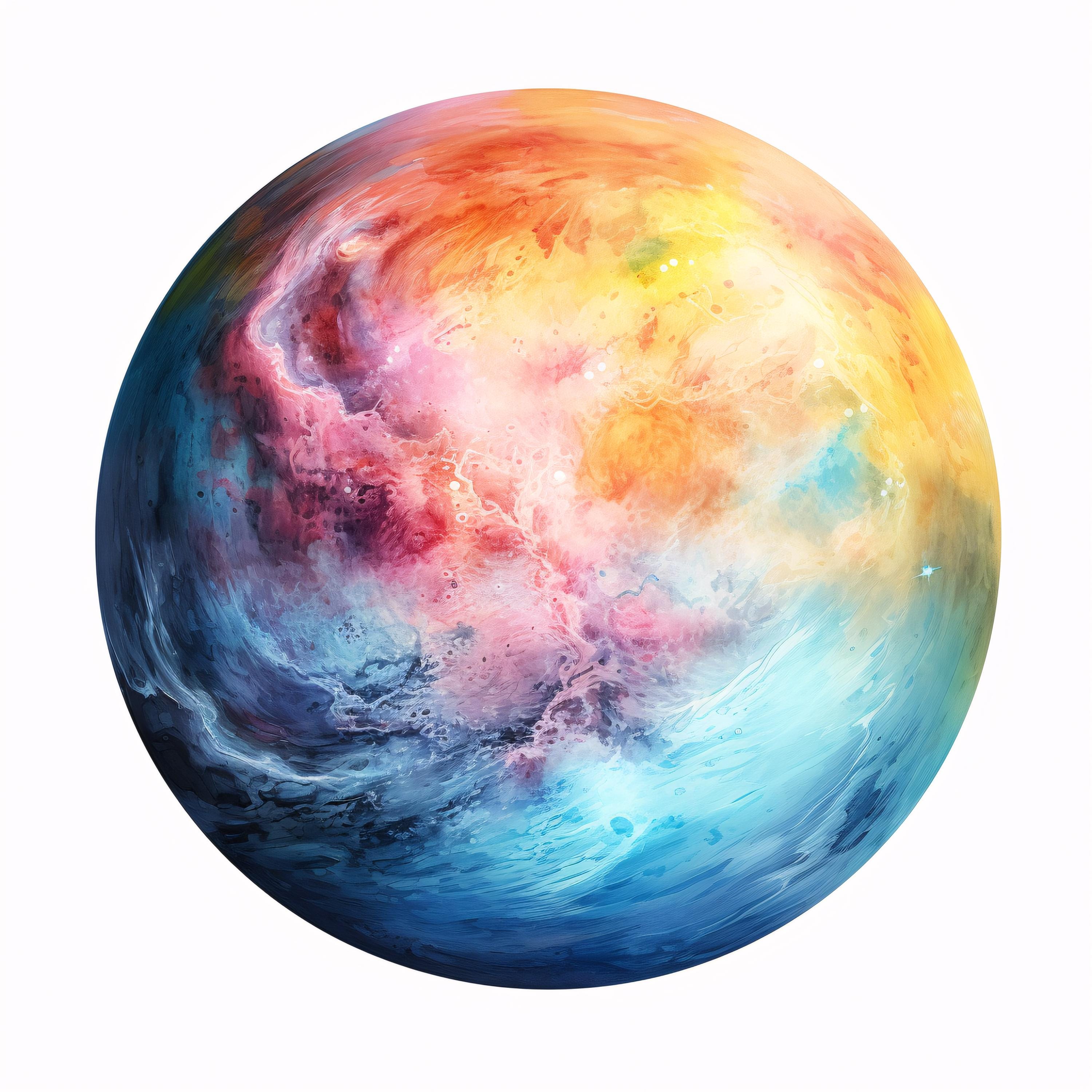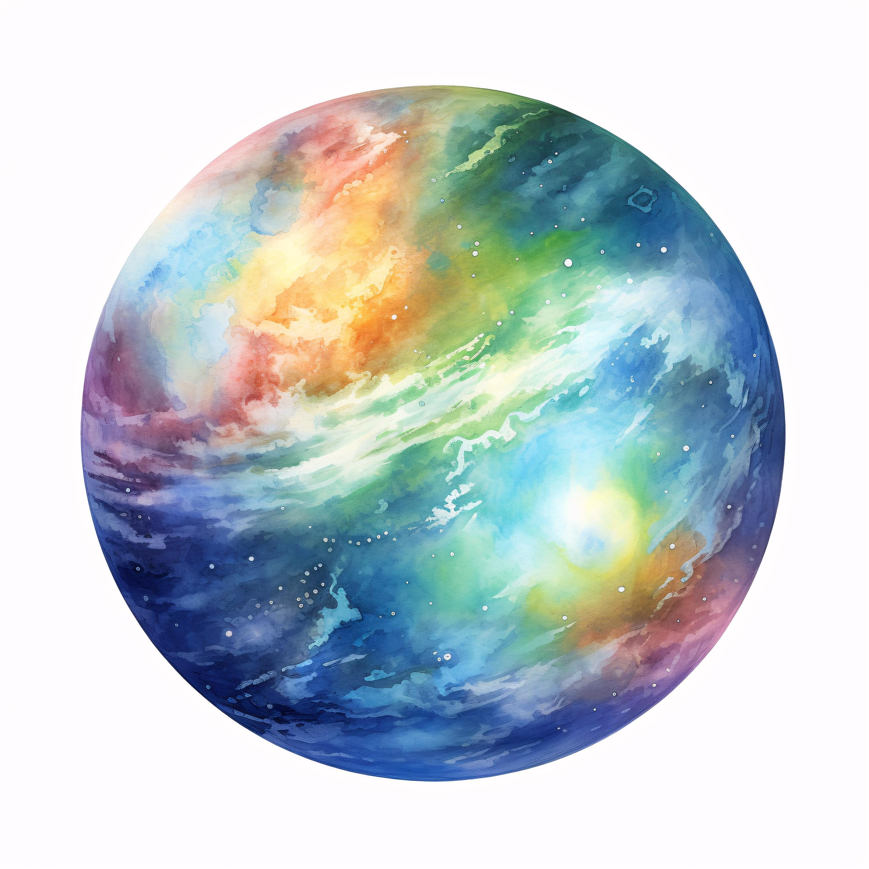 Planet Clipart, Cosmic Sphere Images, 10 Watercolor Clip Art, Printable JPGs, Instant Download, Commercial Use, Paper Craft