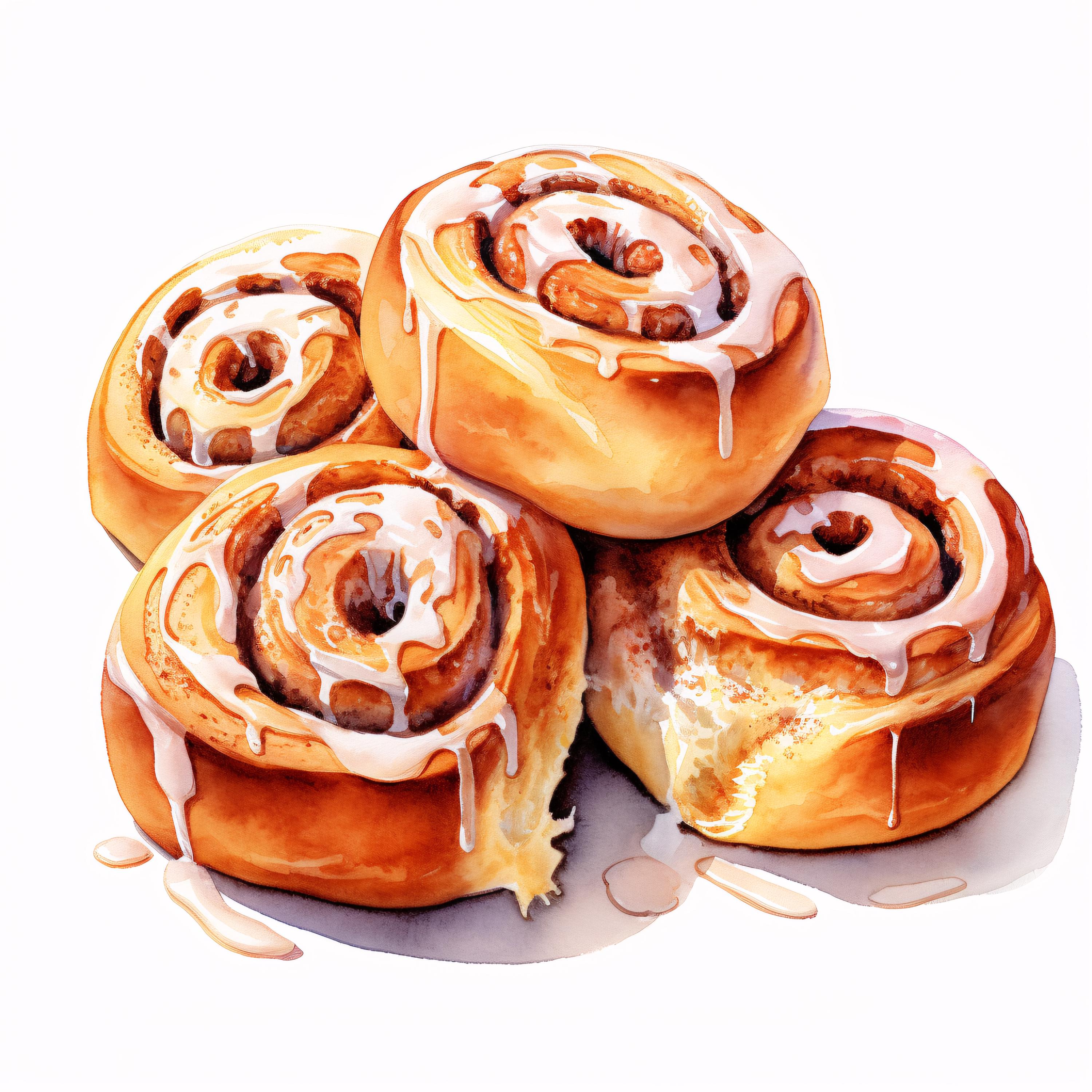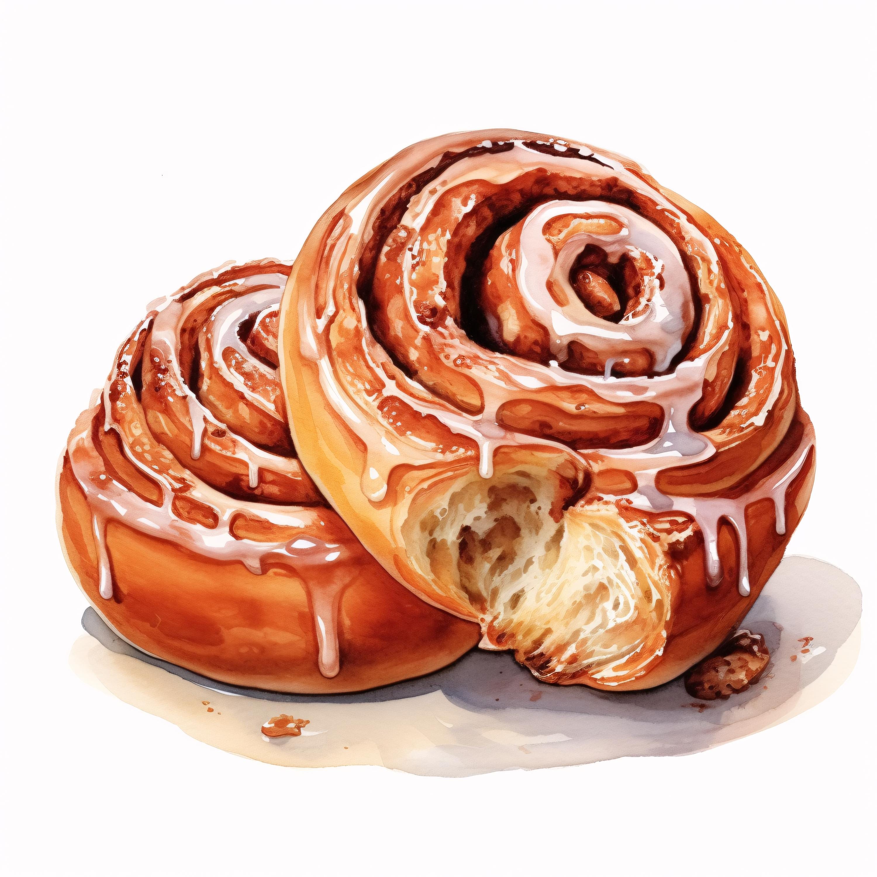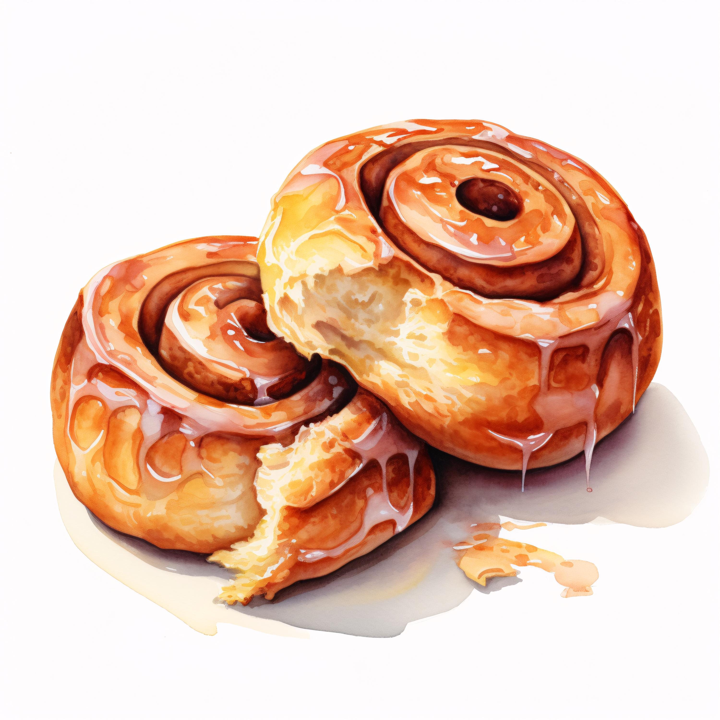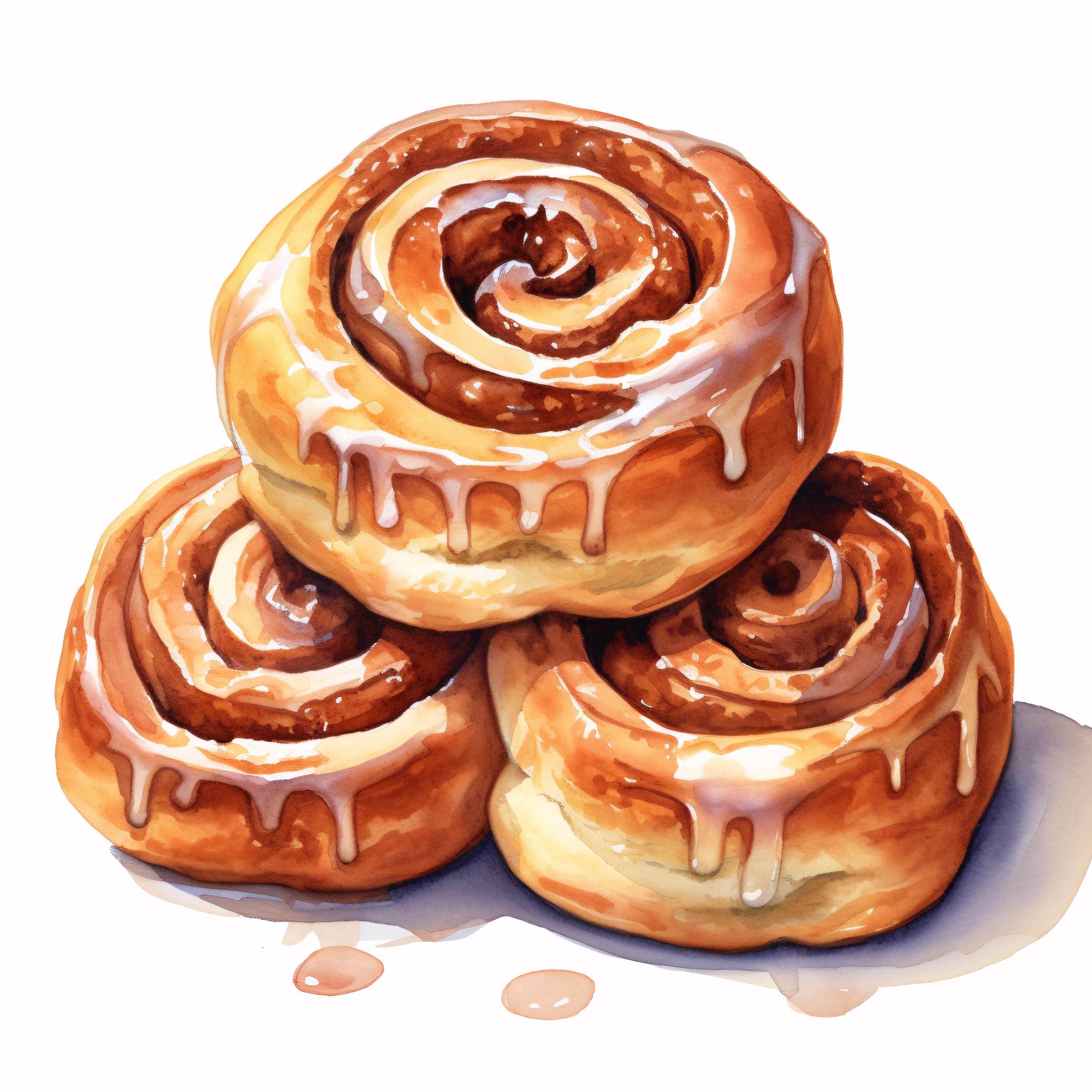 Cinnamon Rolls Clipart, Sweet Pastry Images, 10 Watercolor Clip Art, Printable JPGs, Instant Download, Commercial Use, Paper Craft