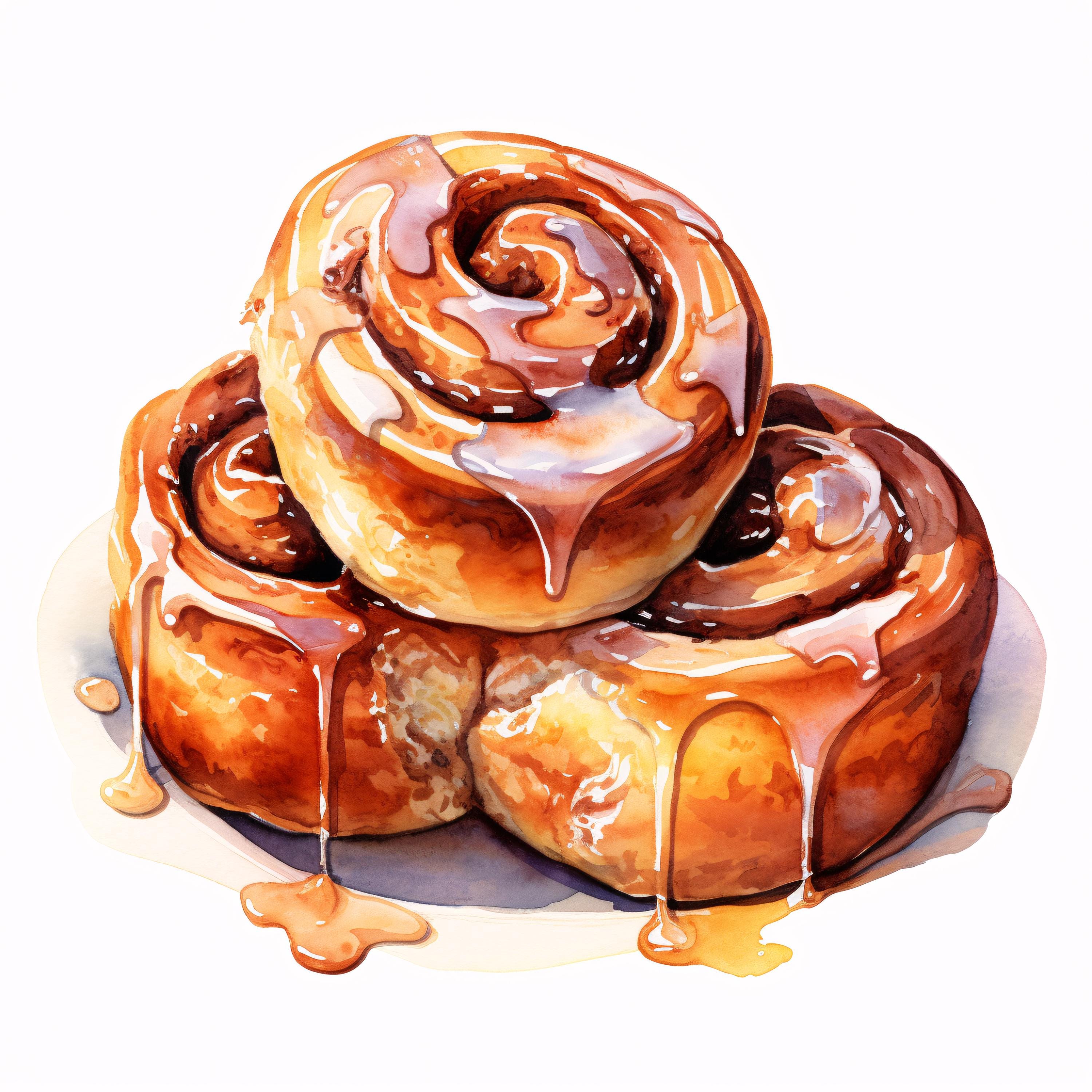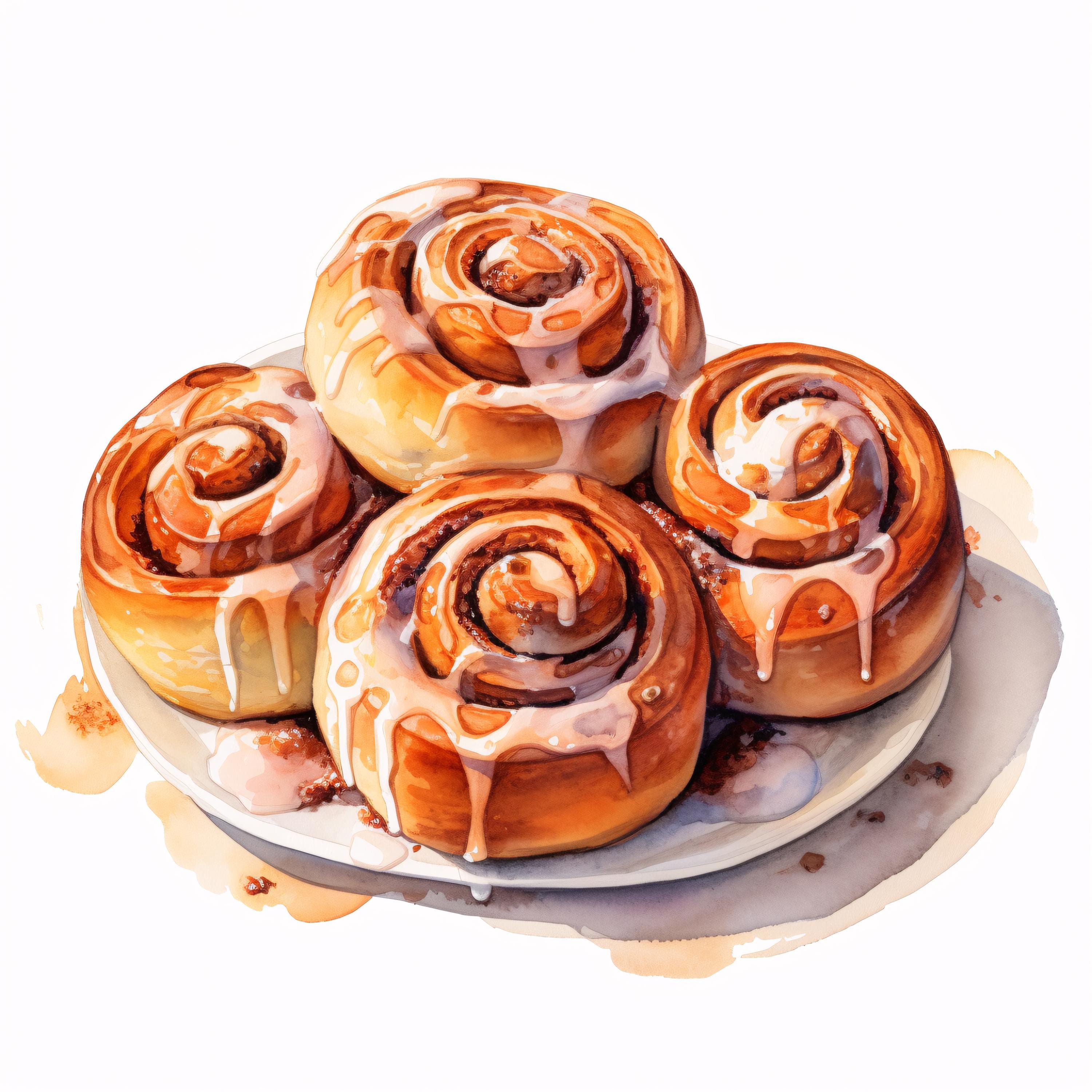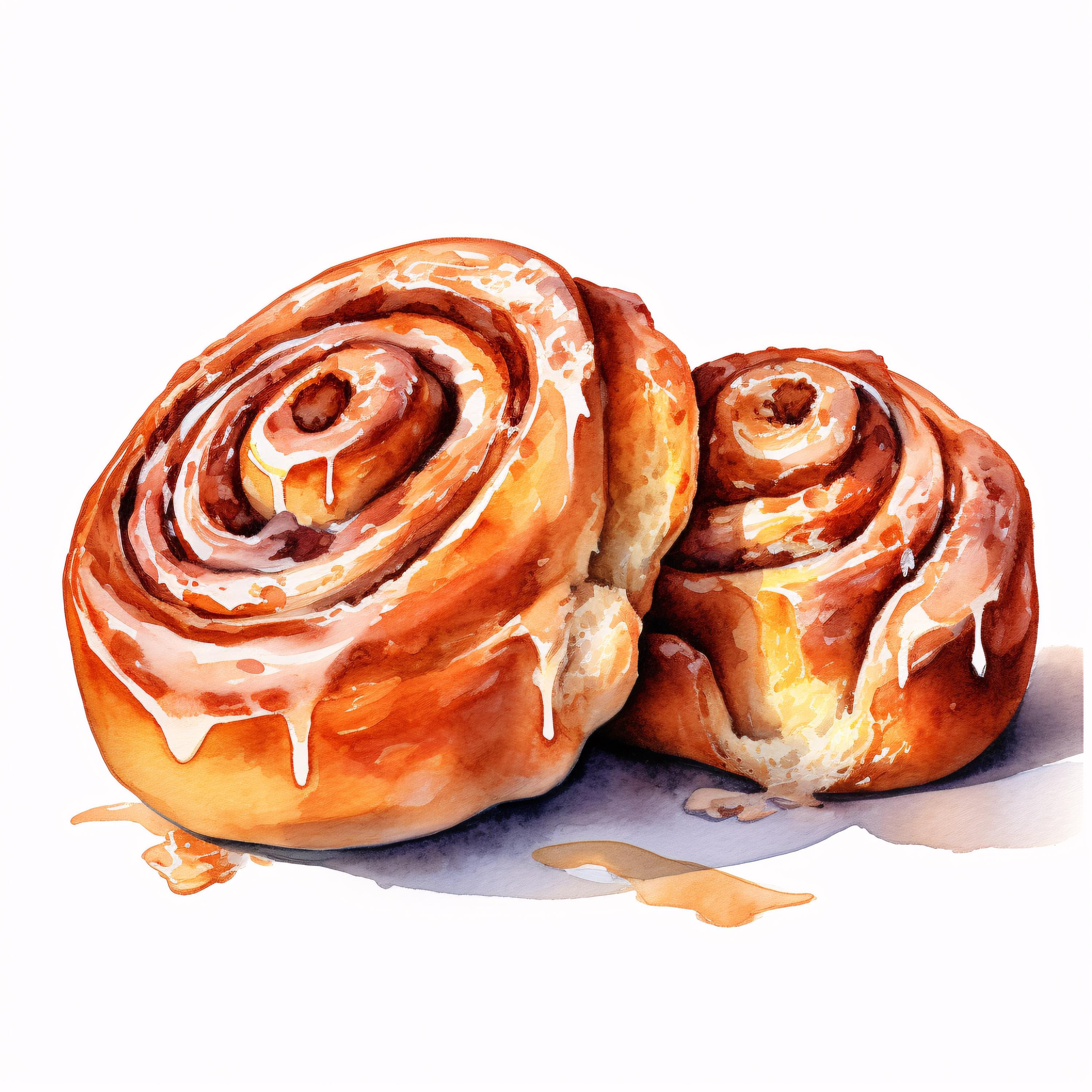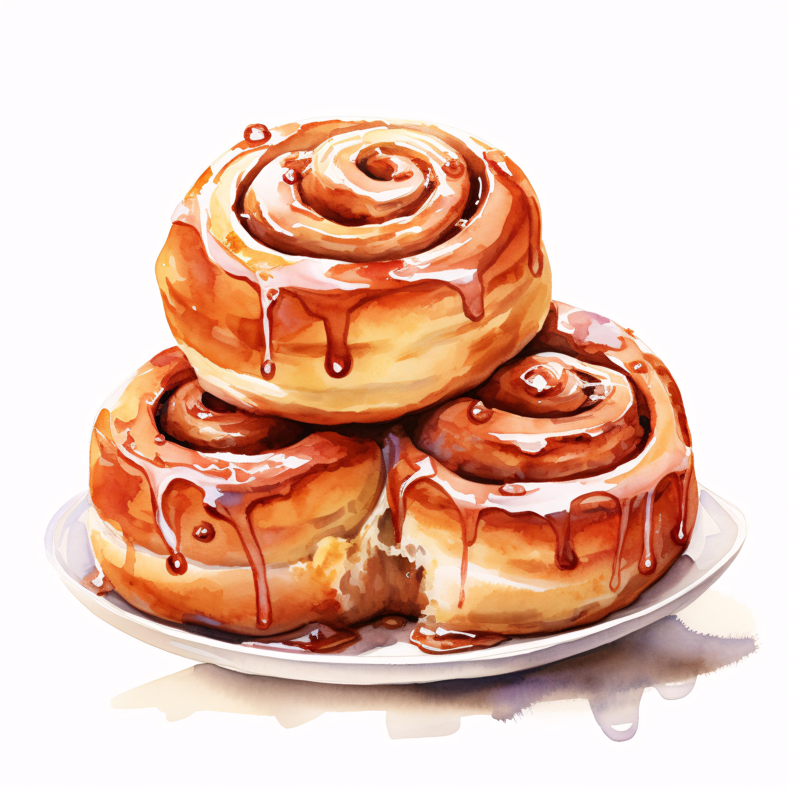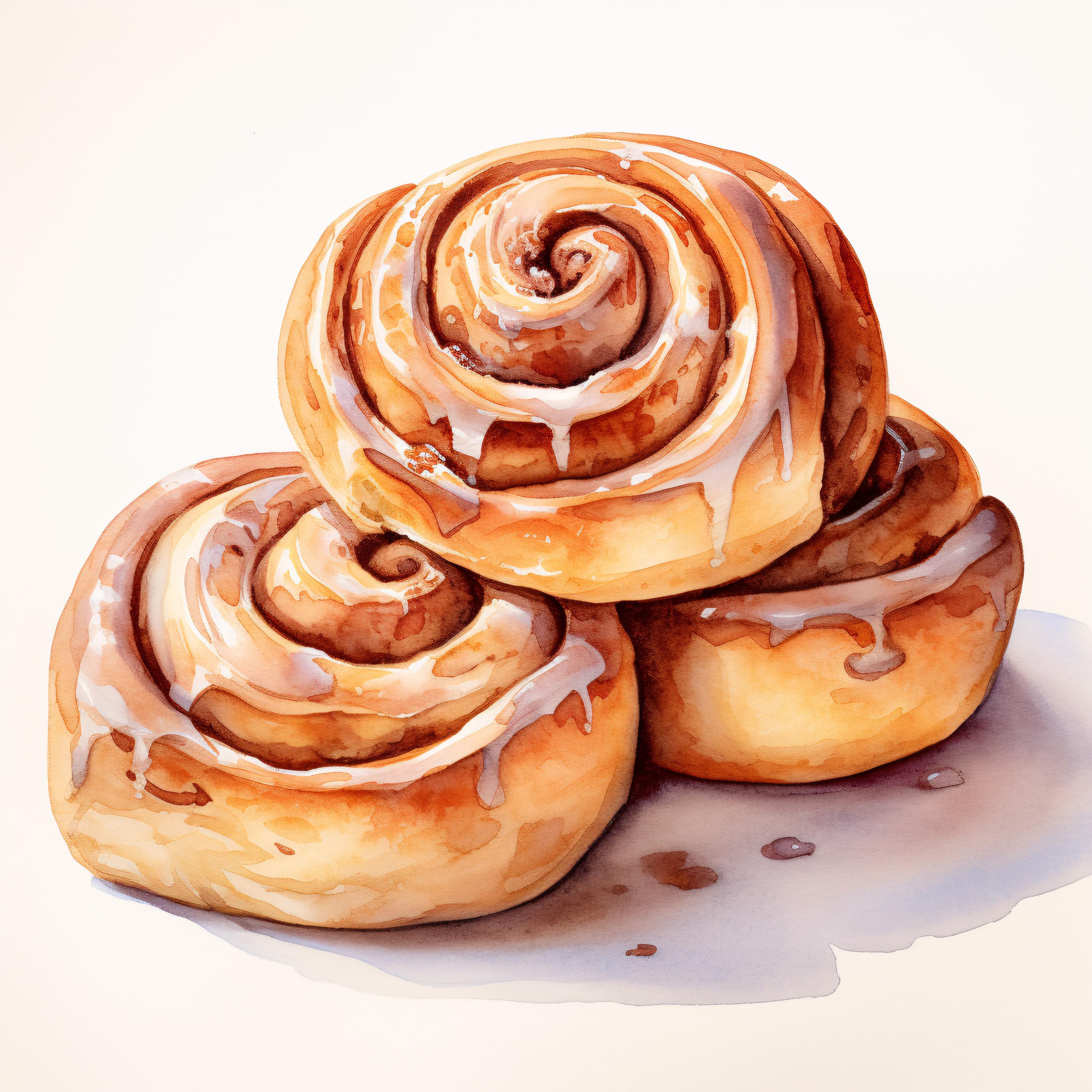 Cinnamon Rolls Clipart, Sweet Pastry Images, 10 Watercolor Clip Art, Printable JPGs, Instant Download, Commercial Use, Paper Craft