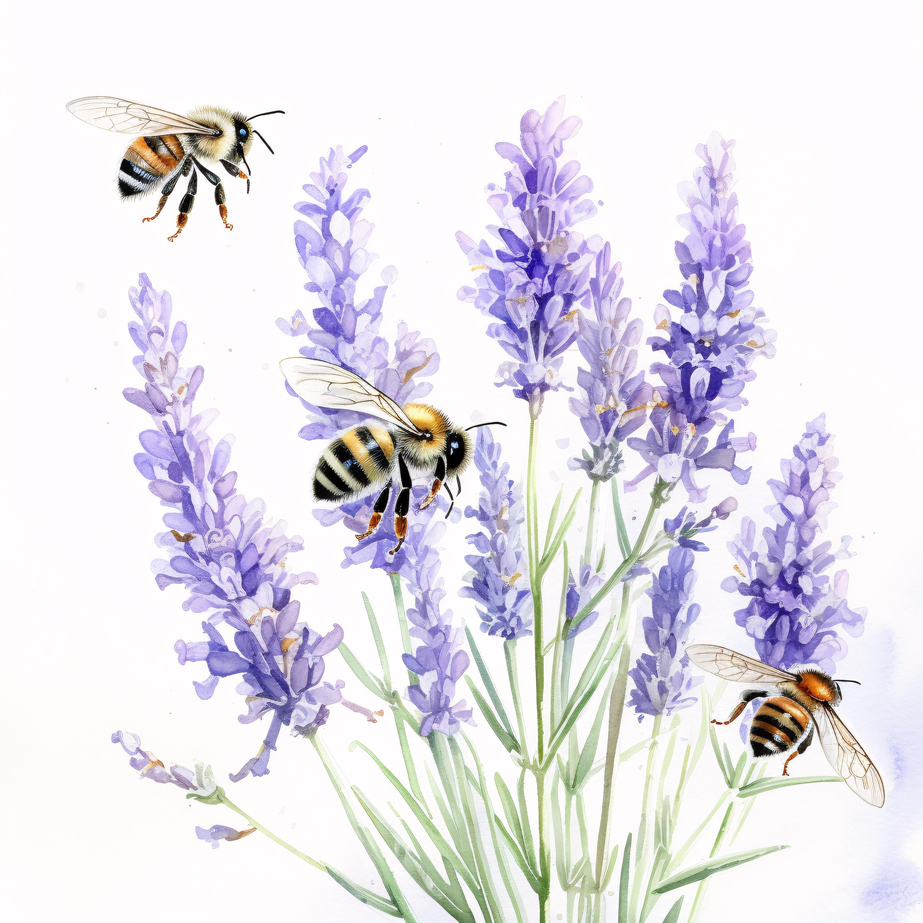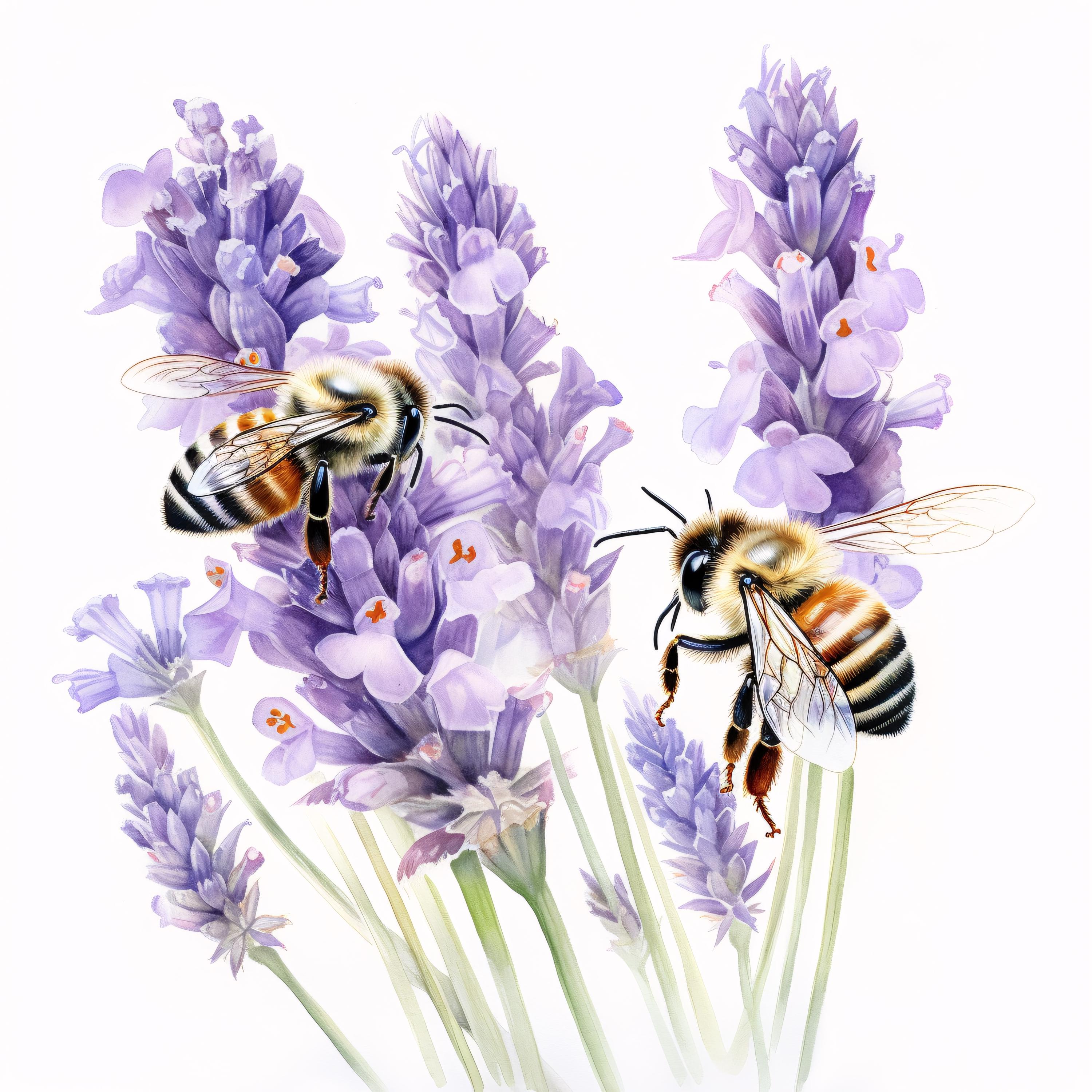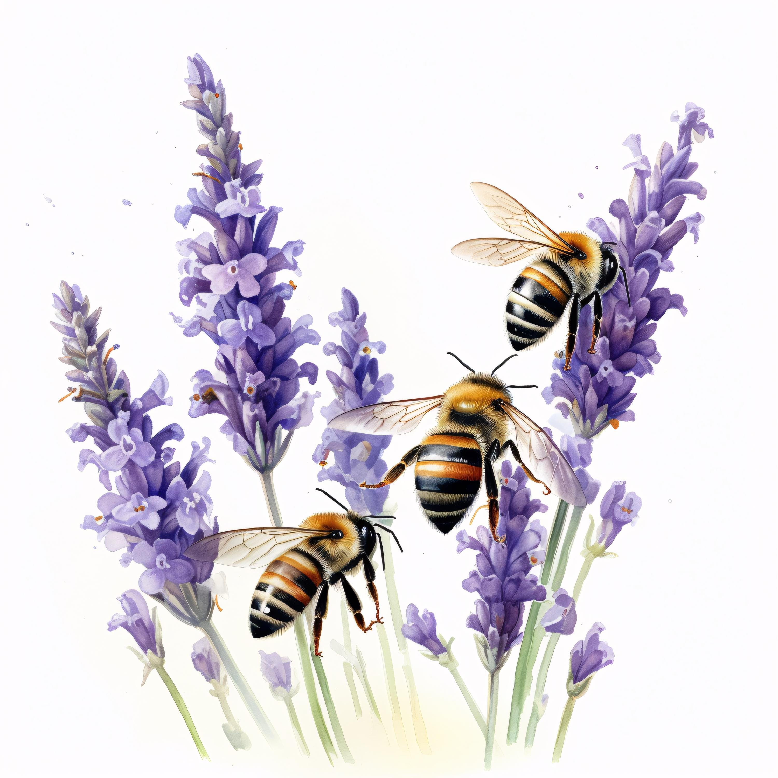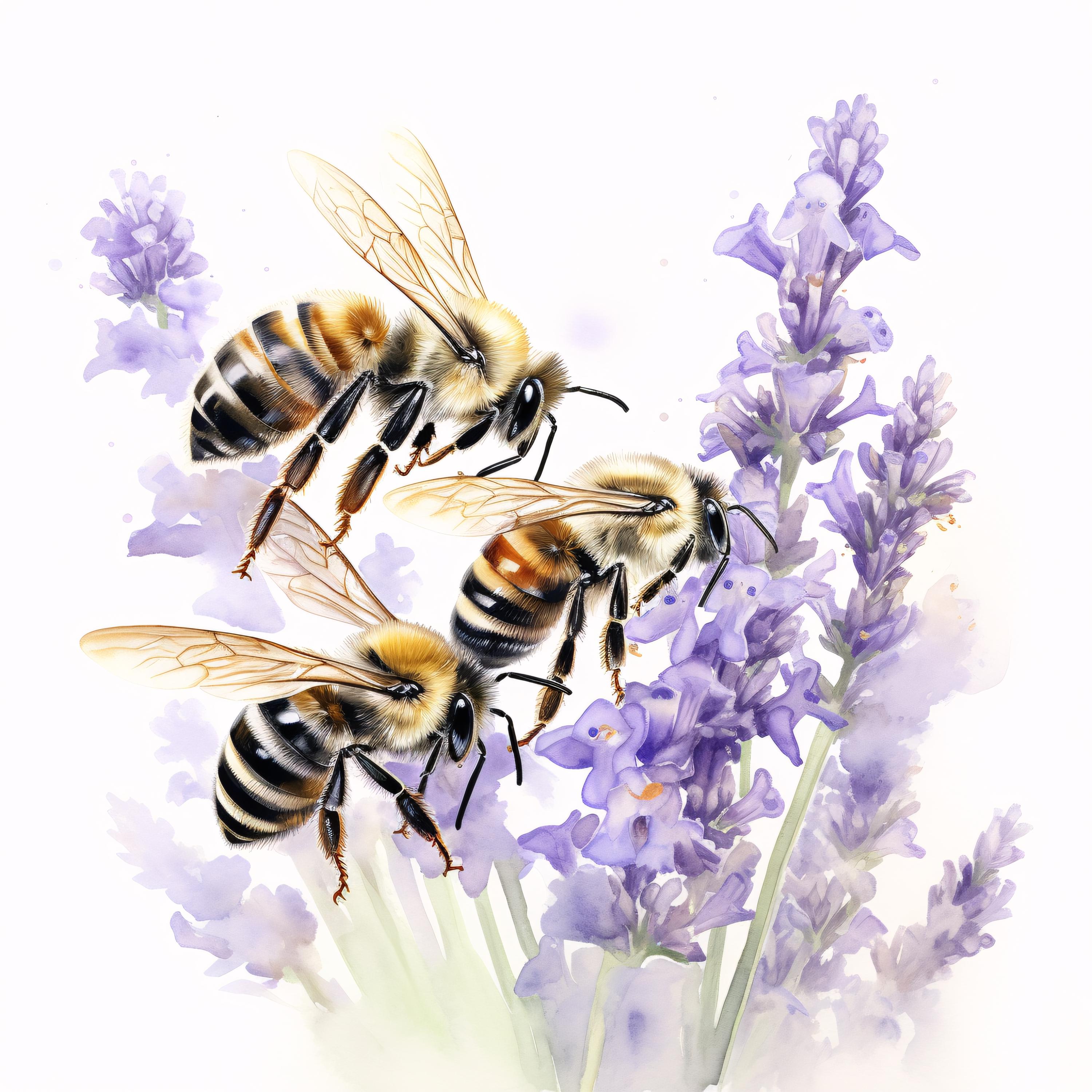Lavender Bees Clipart, Floral Honeybee Images, 10 Watercolor Clip Art, Printable JPGs, Instant Download, Commercial Use