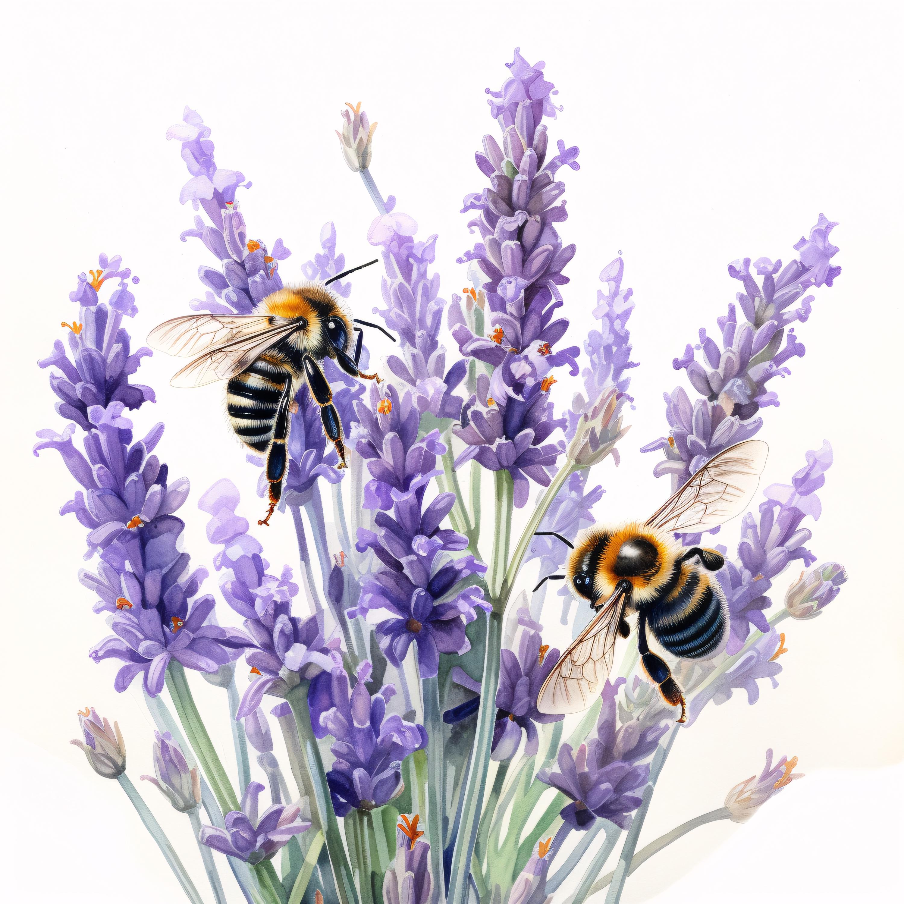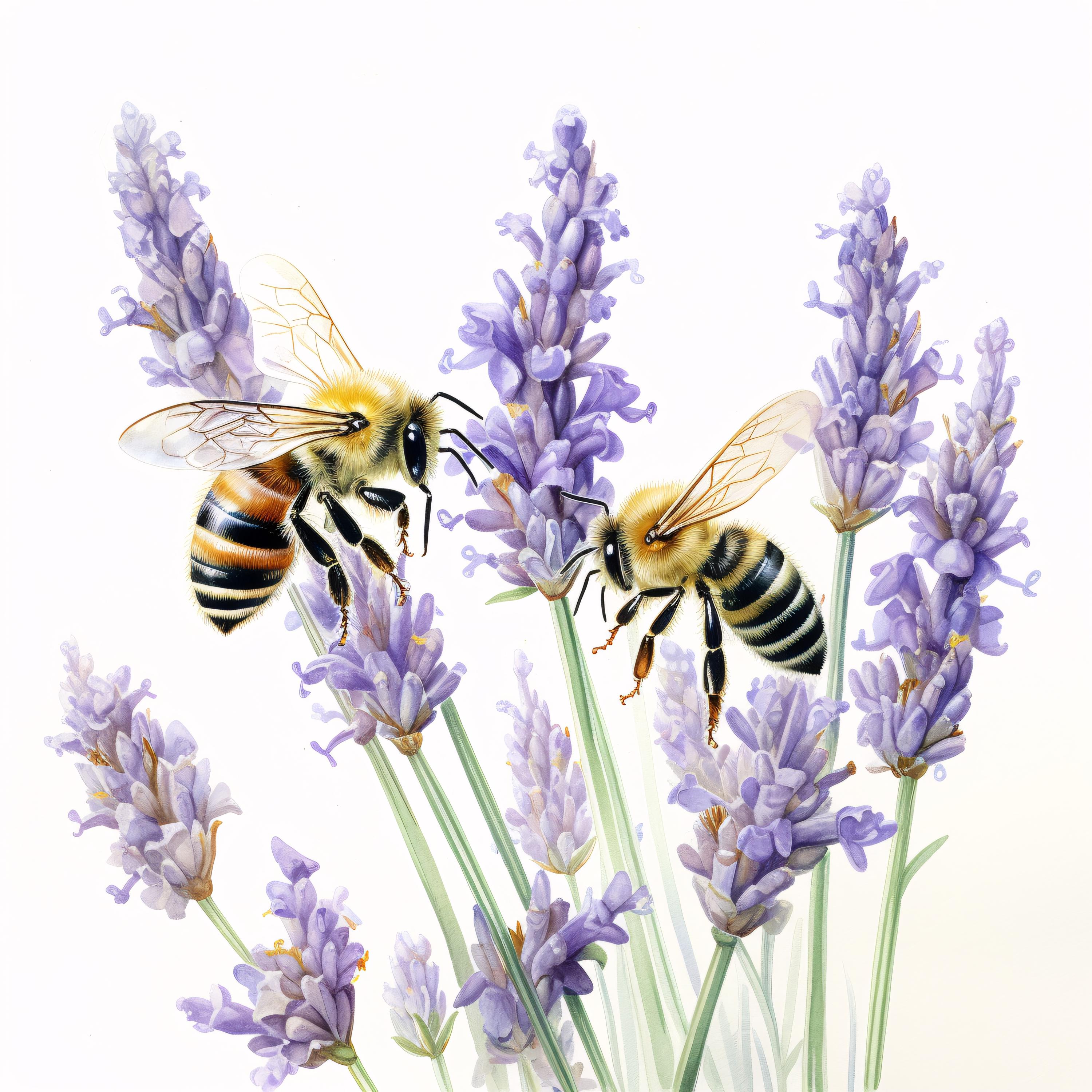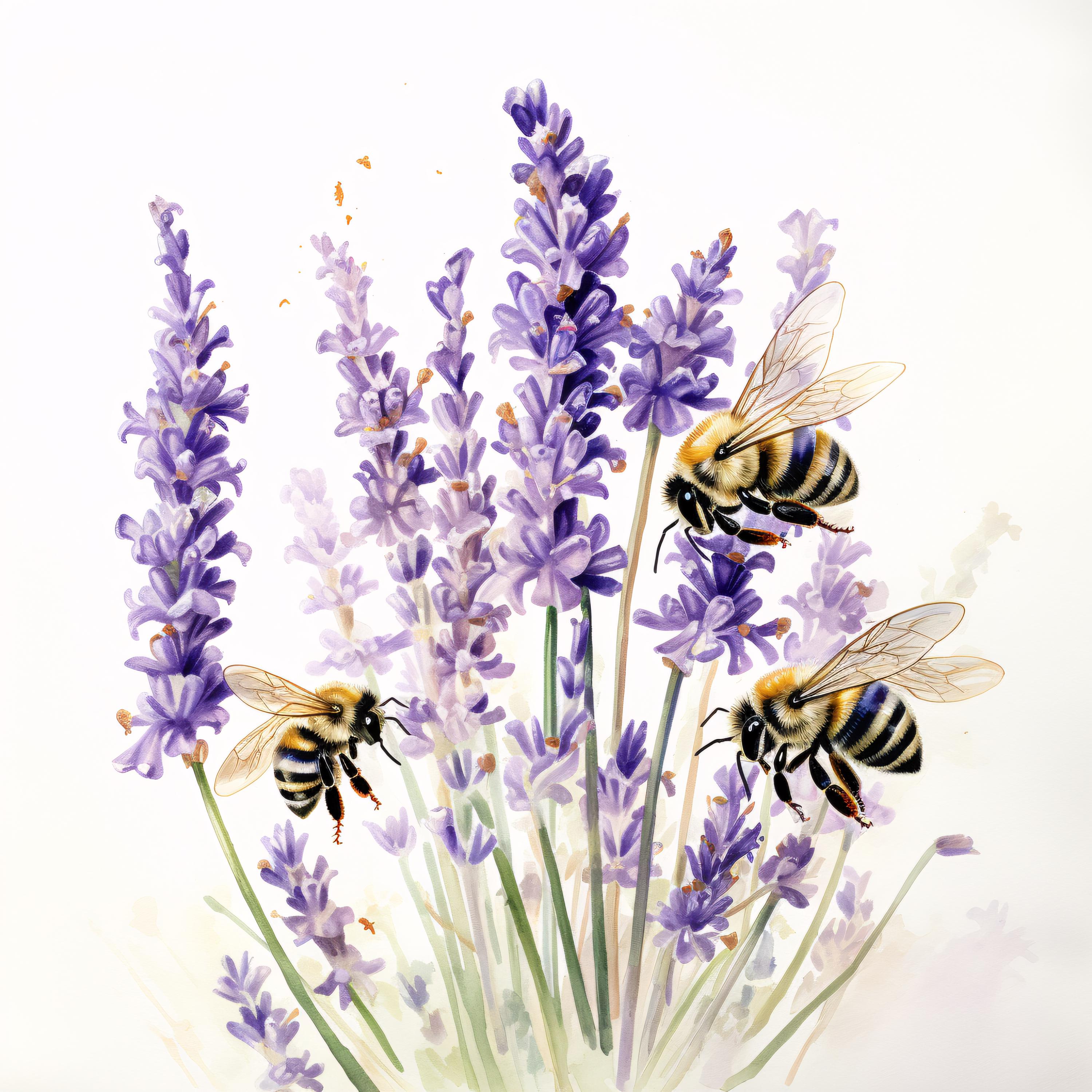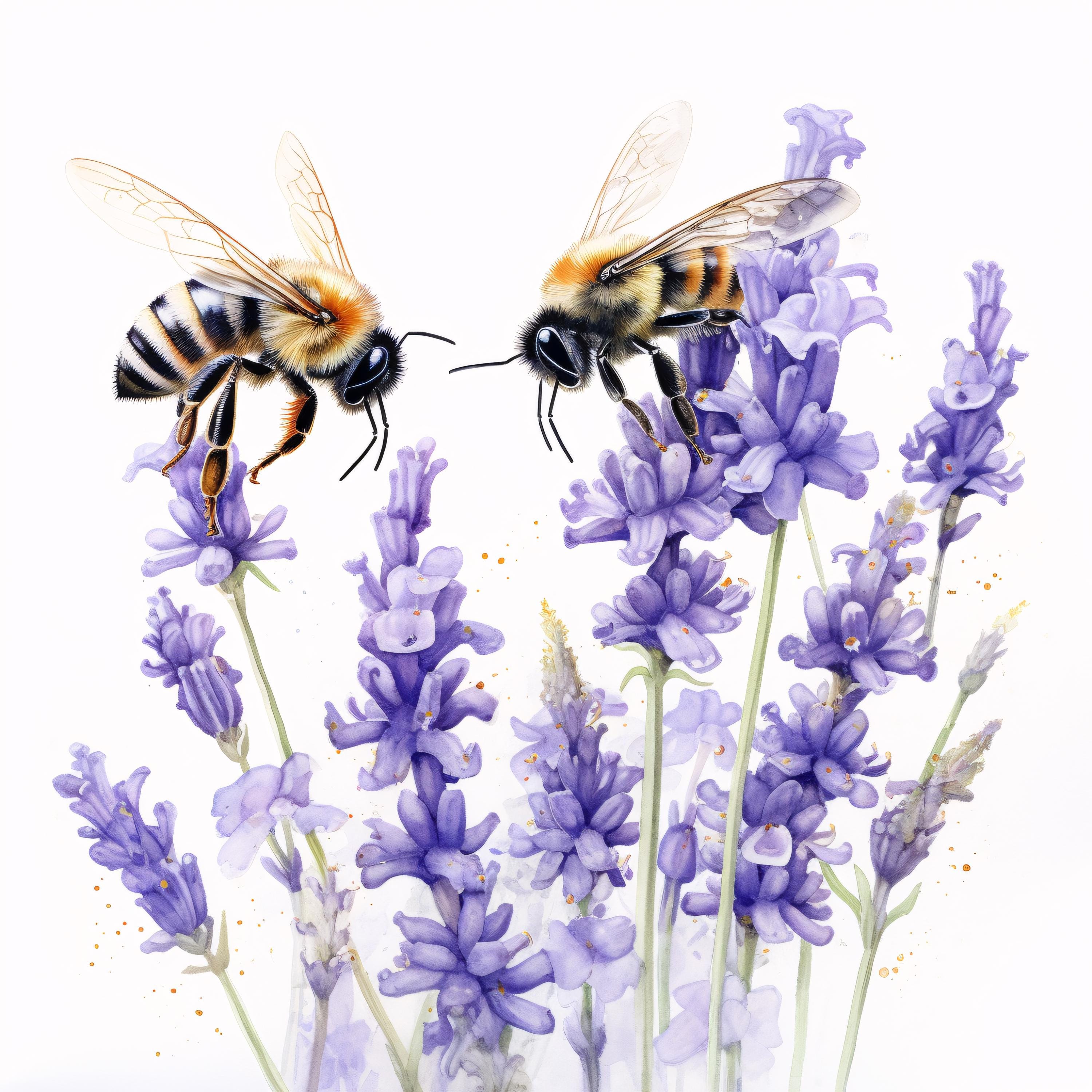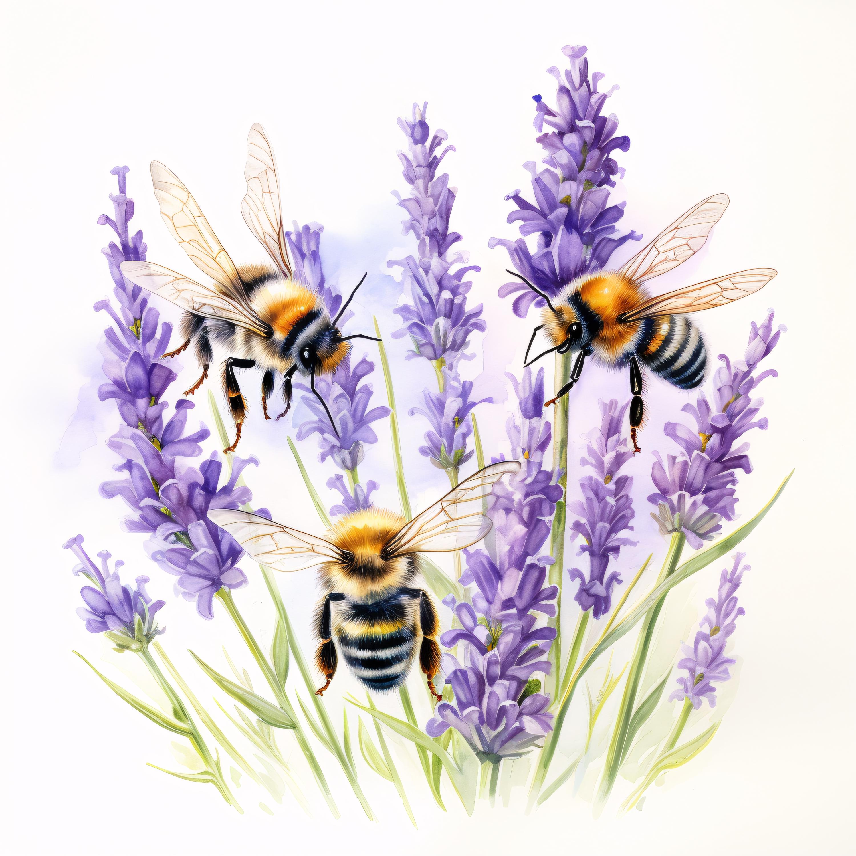 Lavender Bees Clipart, Floral Honeybee Images, 10 Watercolor Clip Art, Printable JPGs, Instant Download, Commercial Use