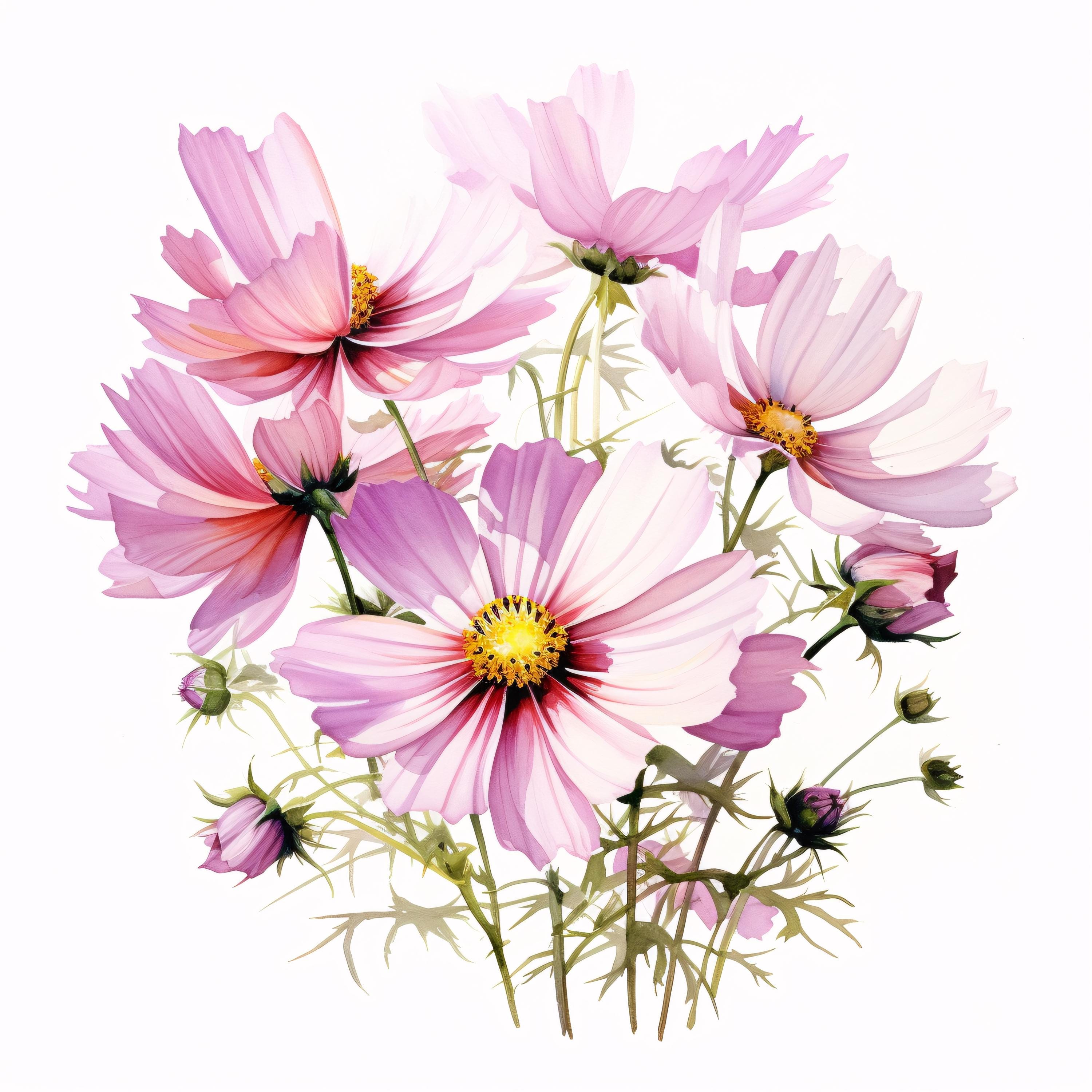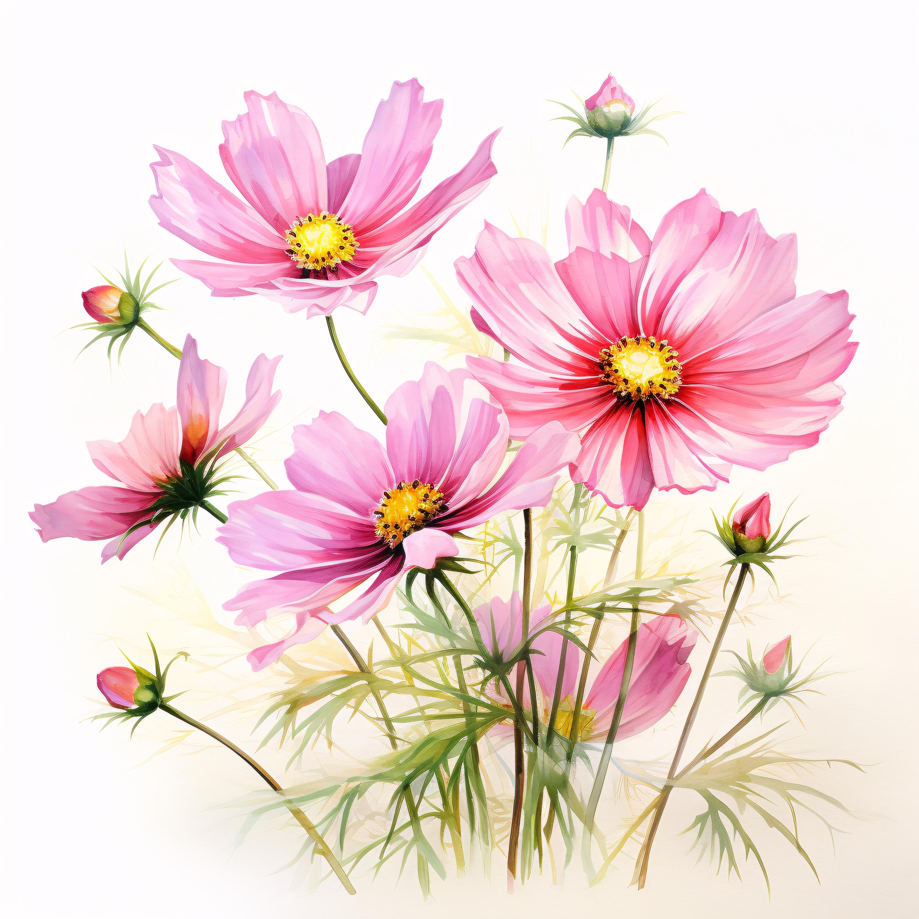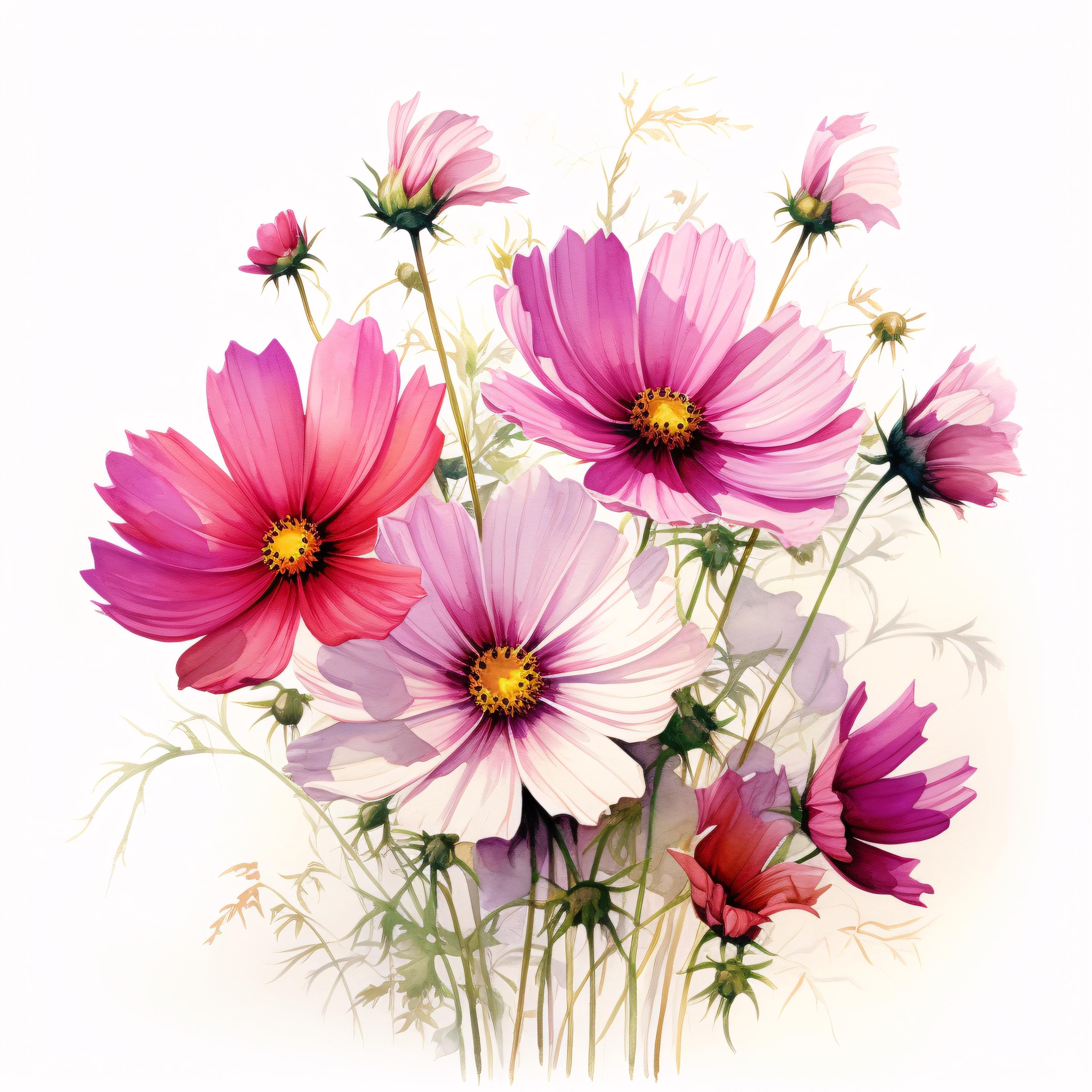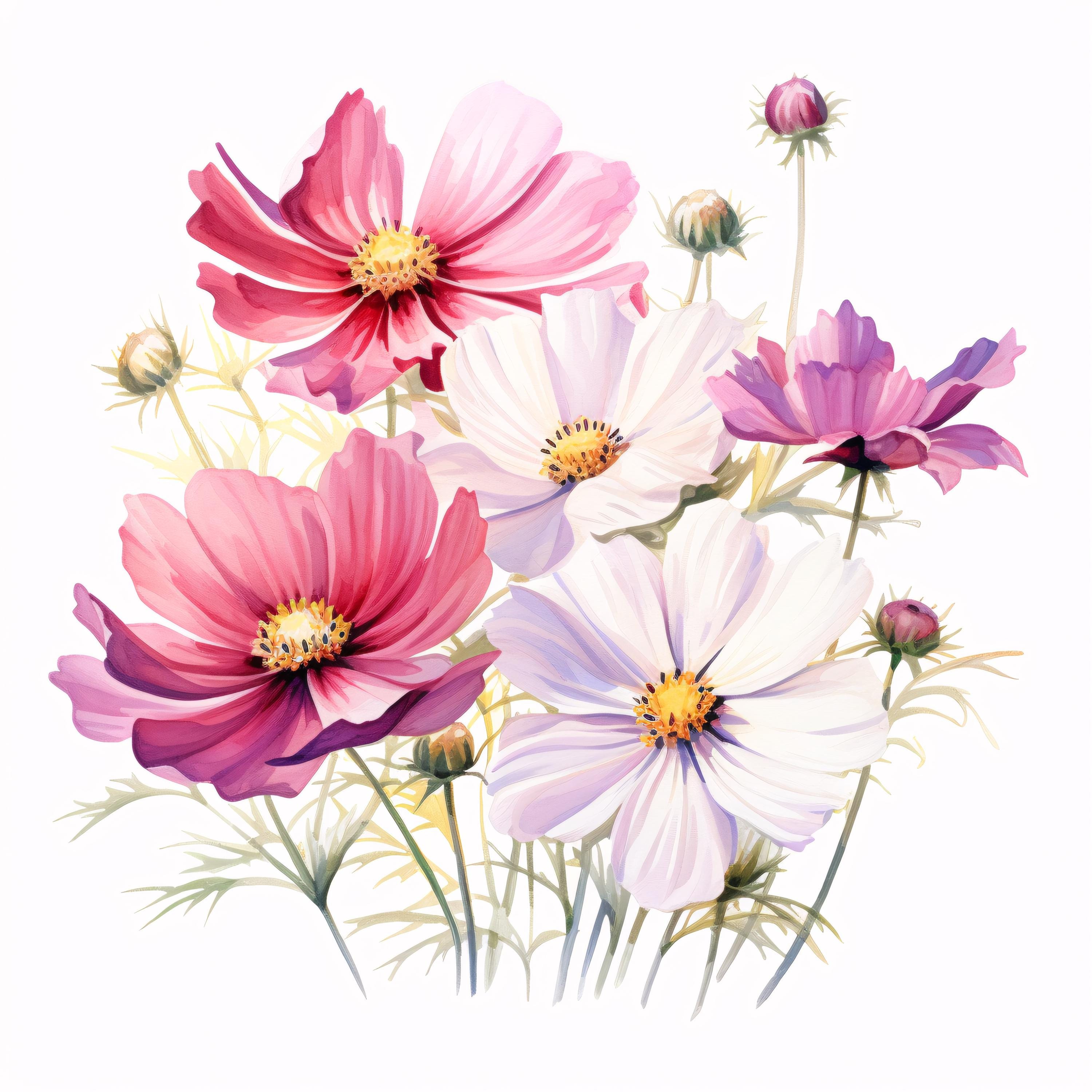Pink Flower Clipart, Bloom Flower Images, 10 Watercolor Clip Art, Printable JPGs, Instant Download, Commercial Use