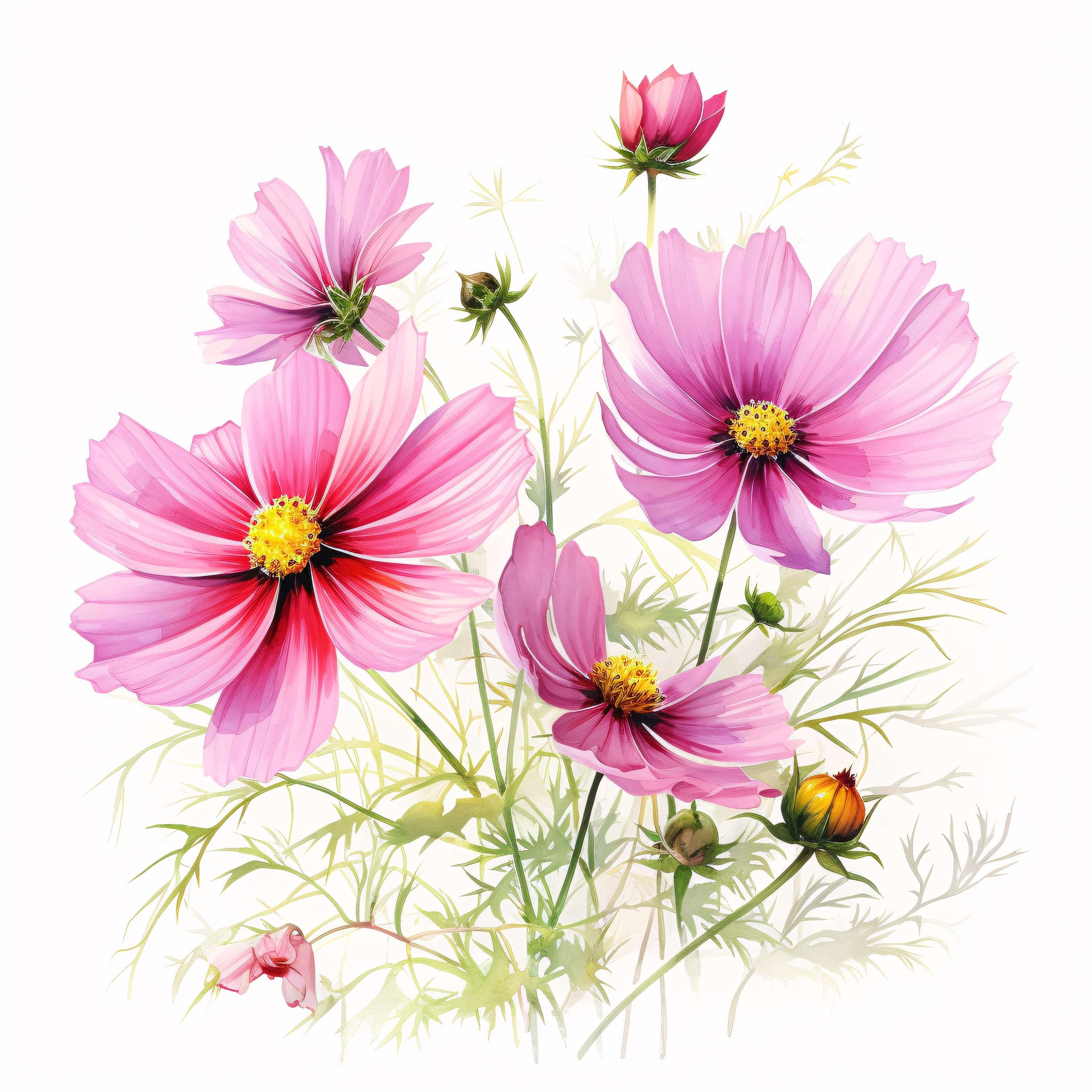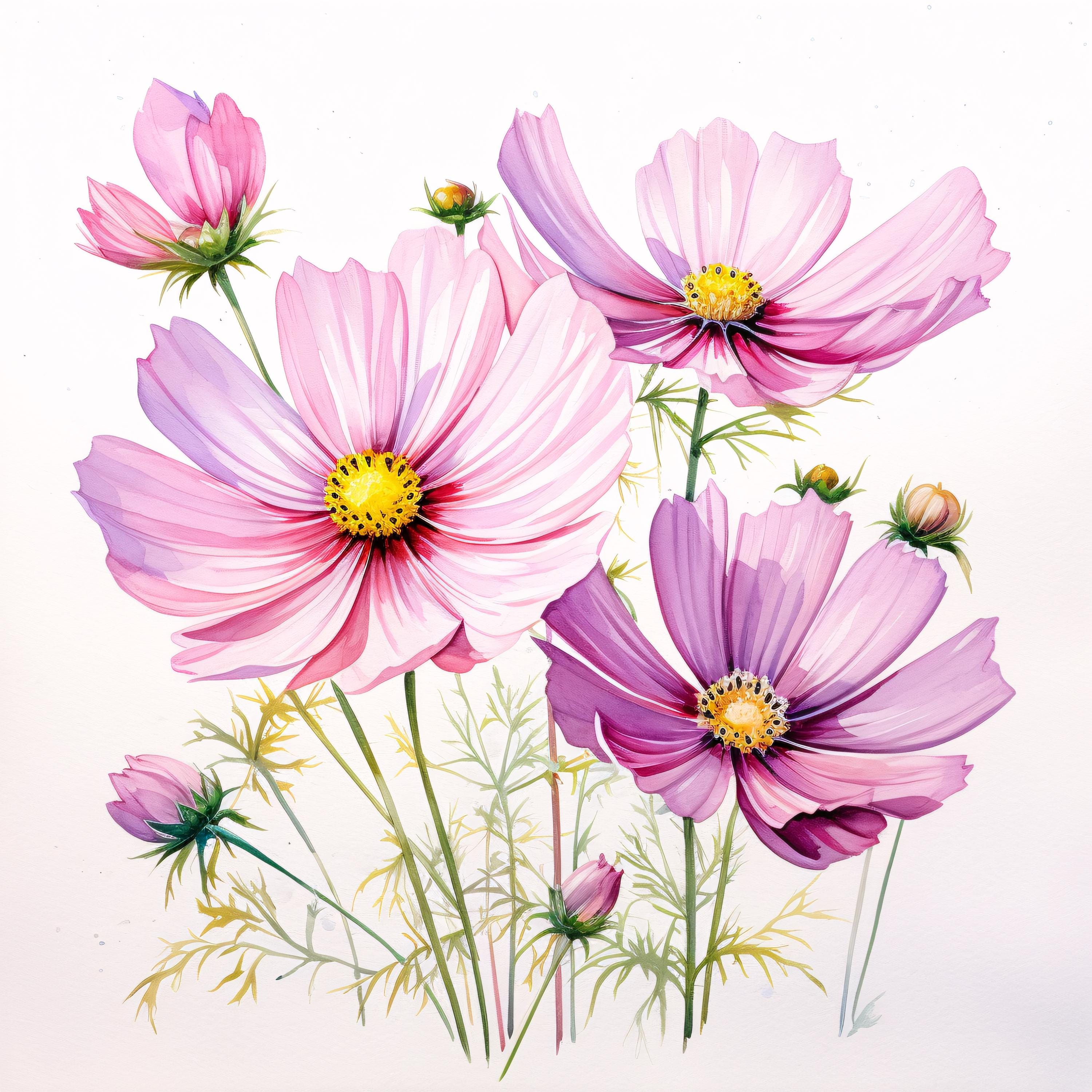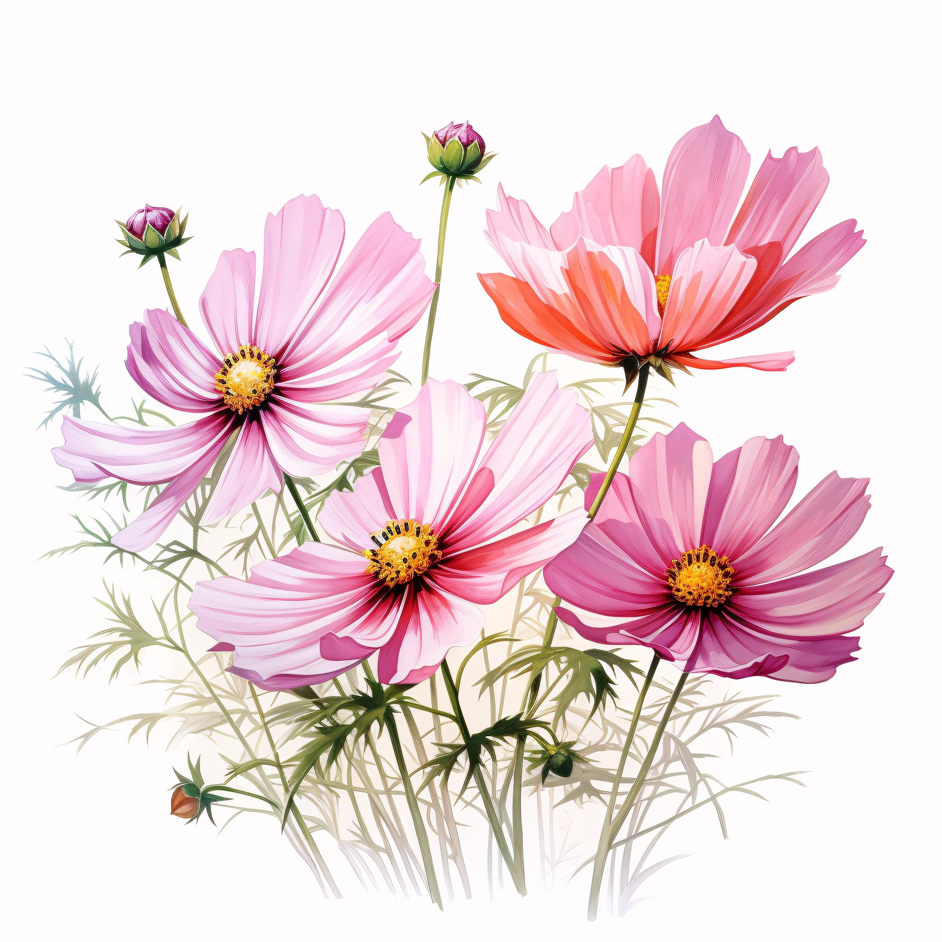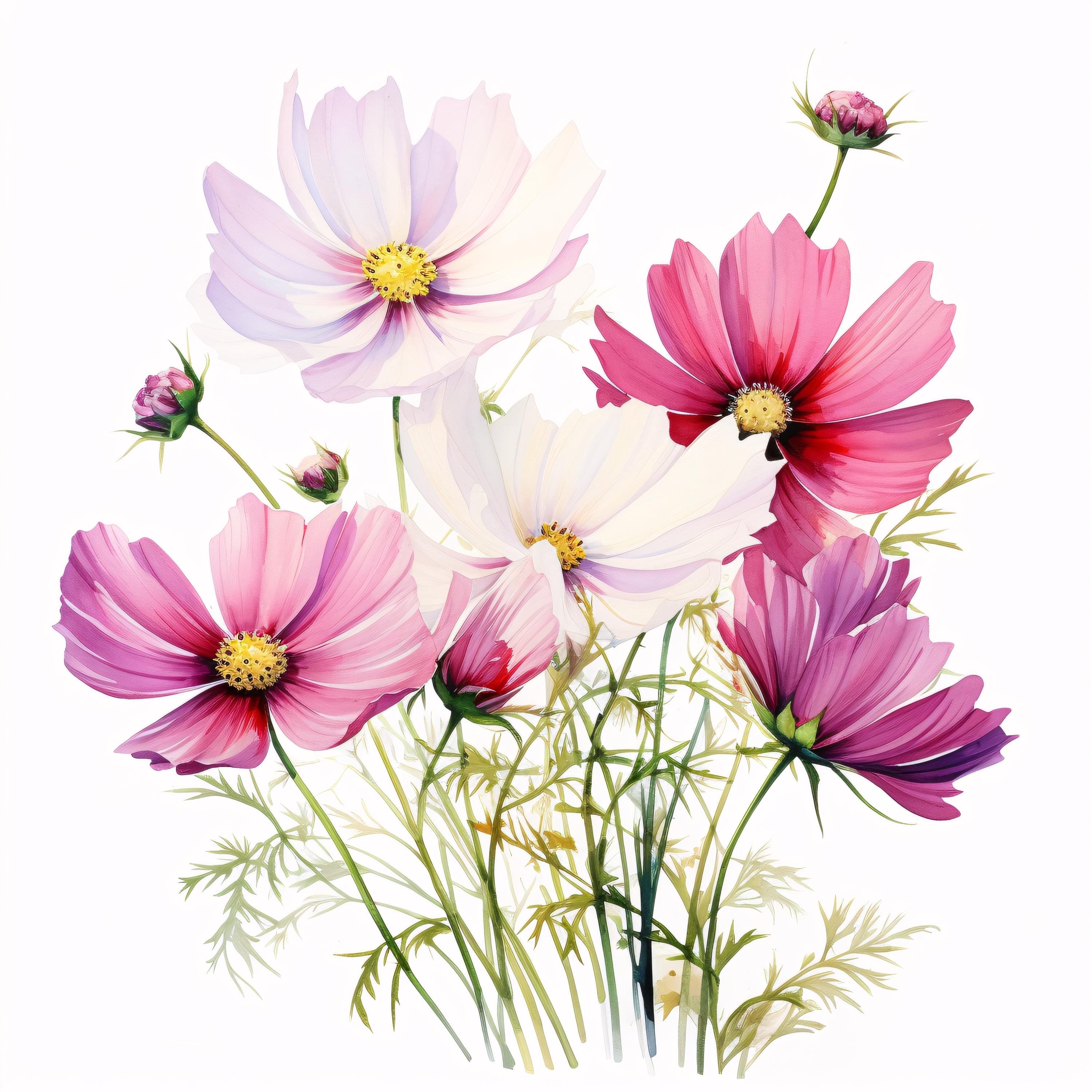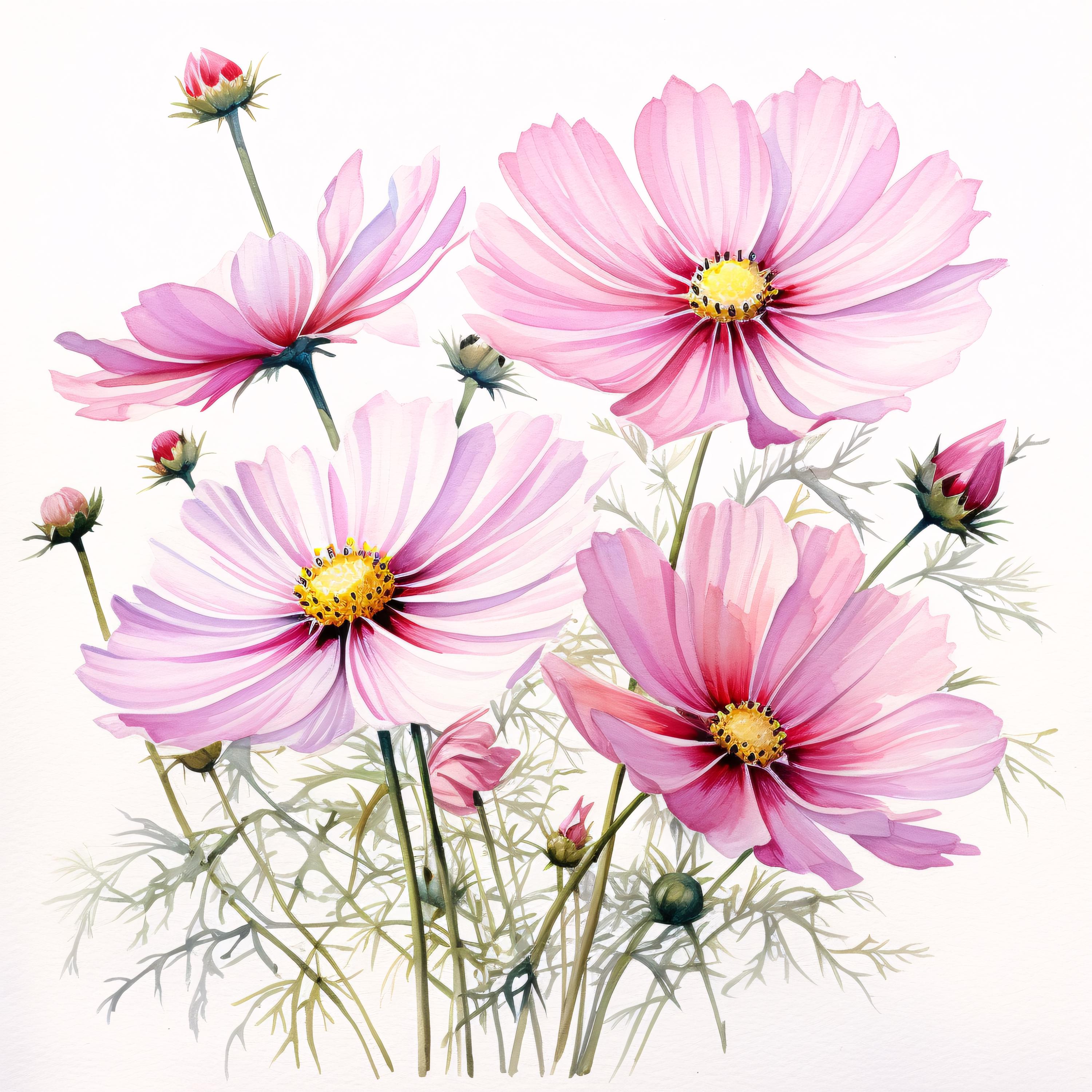 Pink Flower Clipart, Bloom Flower Images, 10 Watercolor Clip Art, Printable JPGs, Instant Download, Commercial Use