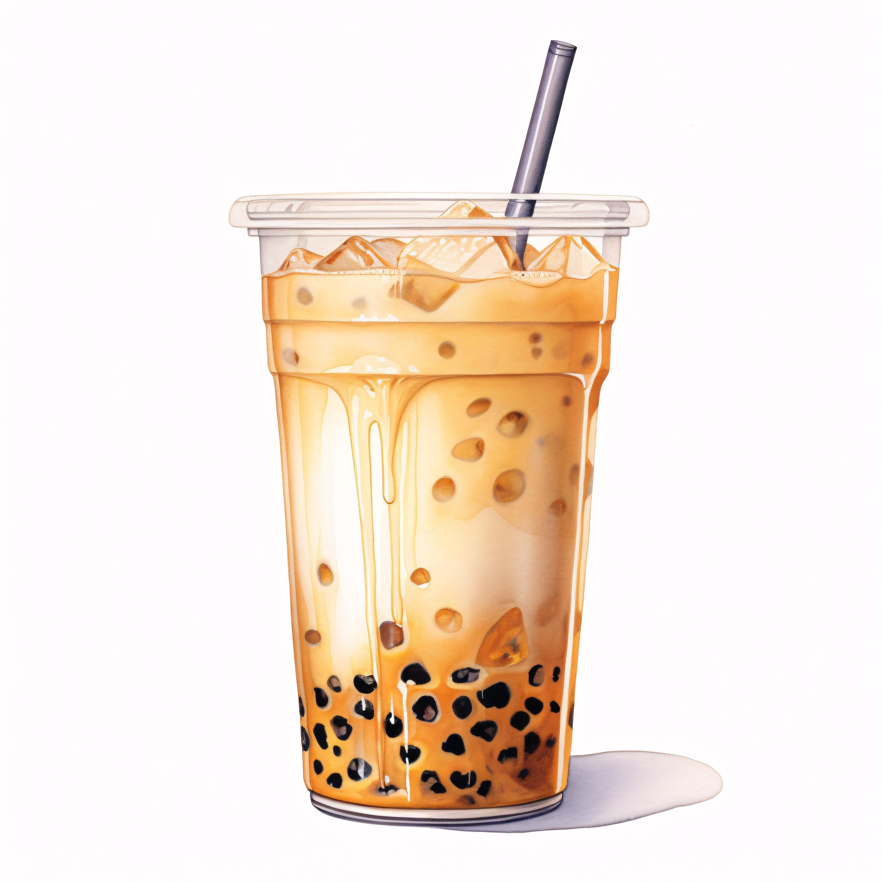 Bubble Tea Clipart, Boba Drink Images, 10 Watercolor Clip Art, Printable JPGs, Instant Download, Commercial Use, Paper Craft