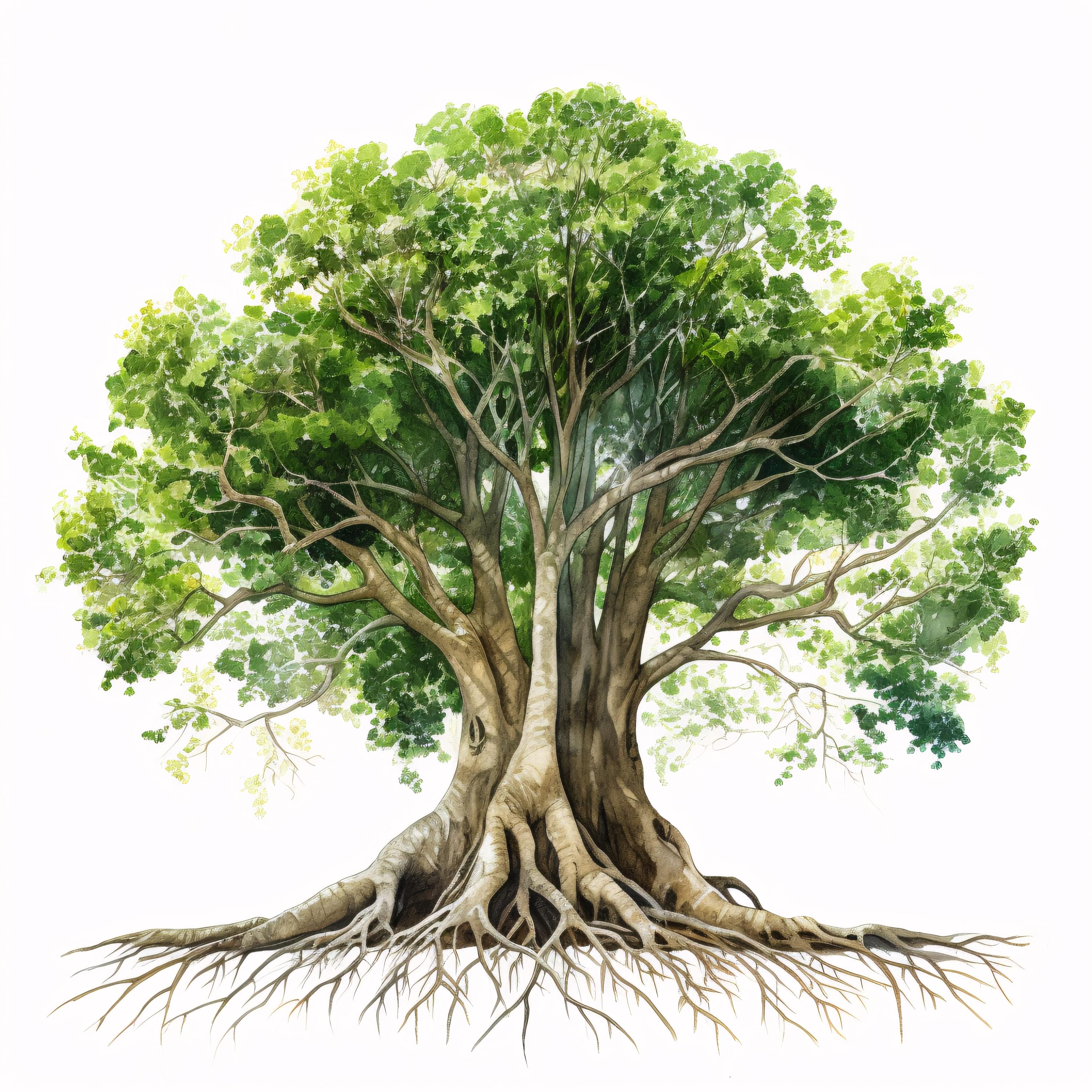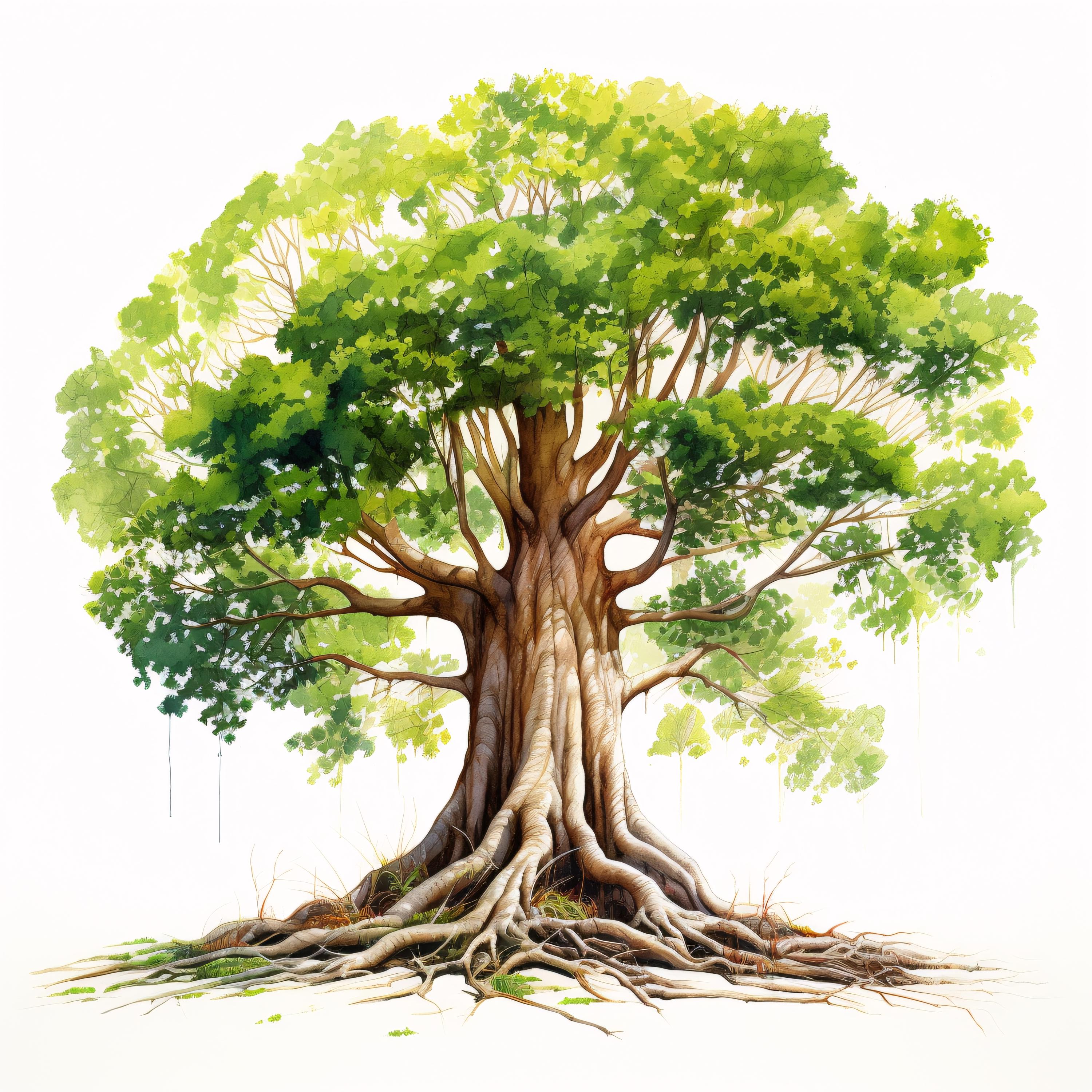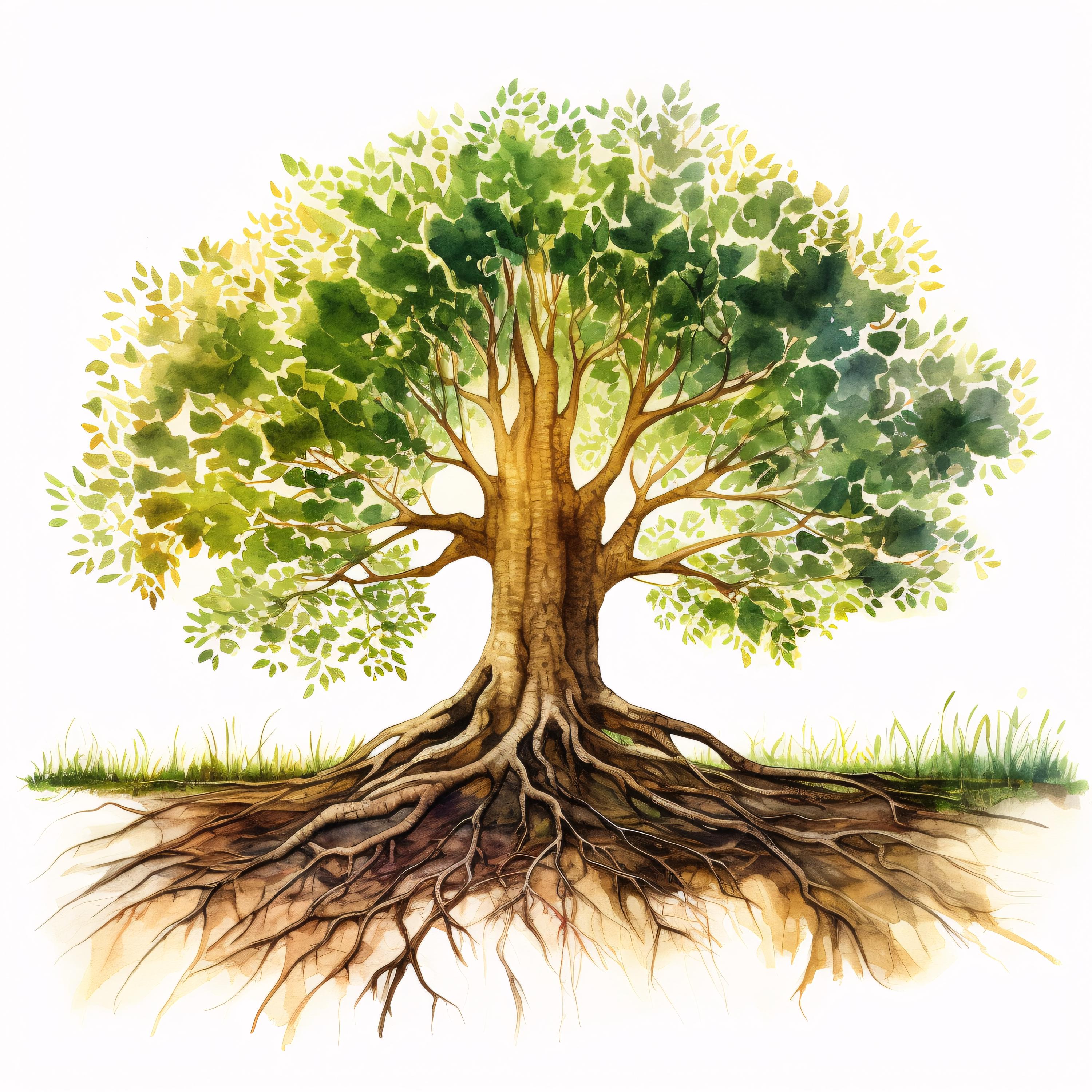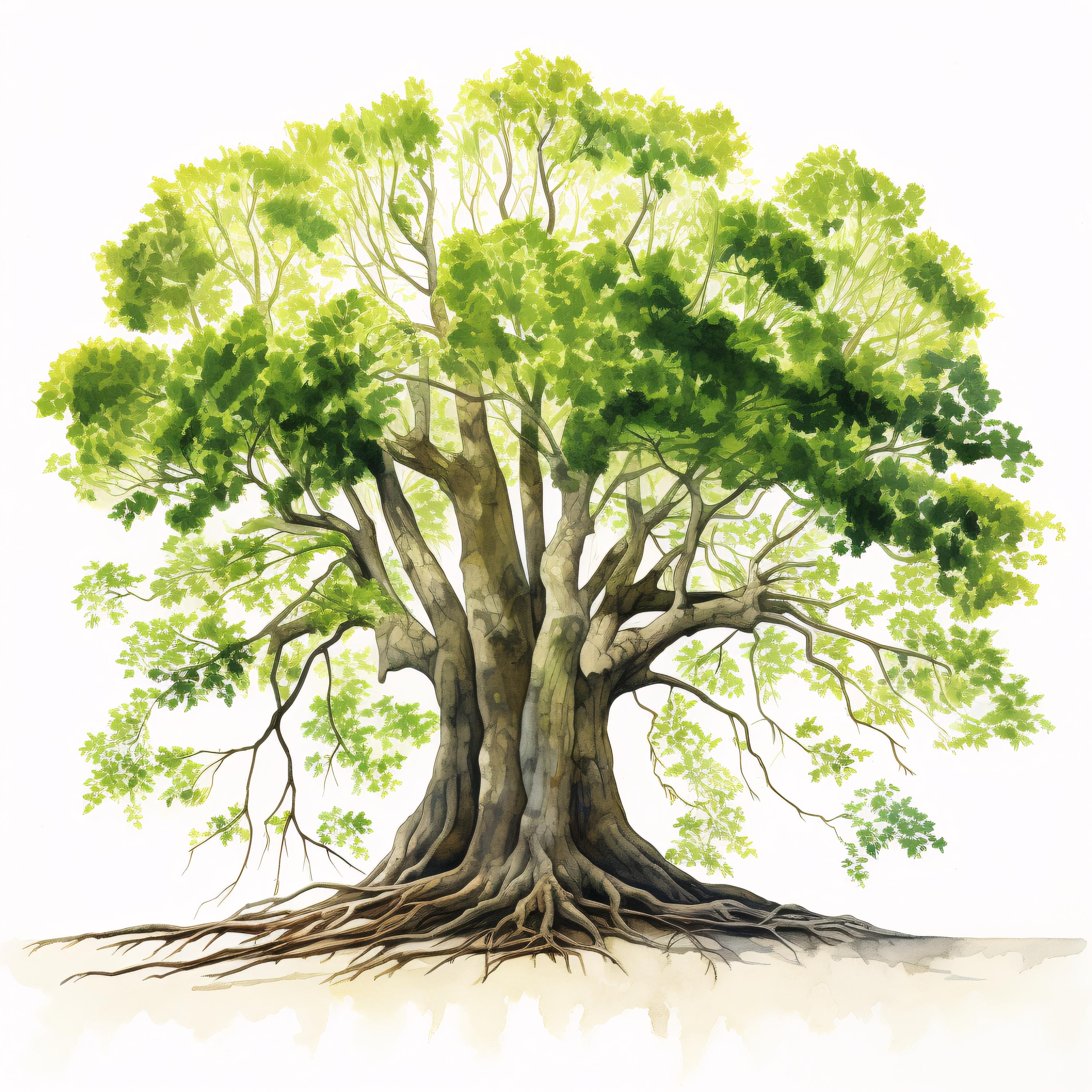 Tree With Roots Clipart, Nature Tree Images, 10 Watercolor Clip Art, Printable JPGs, Instant Download, Commercial Use, Paper Craft