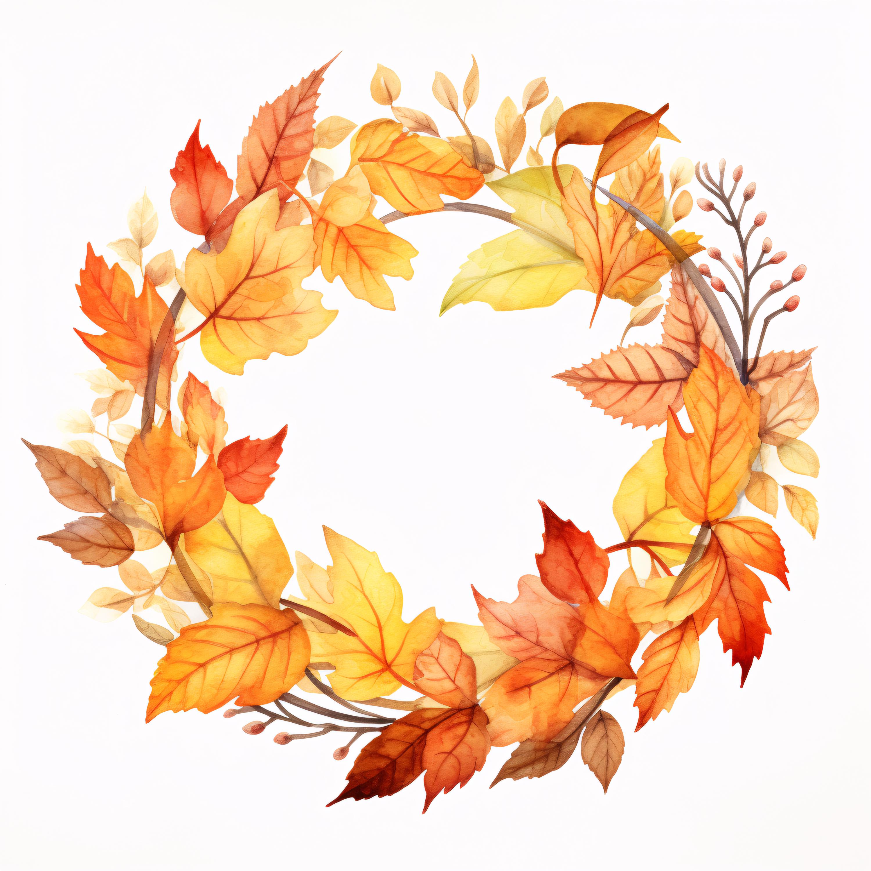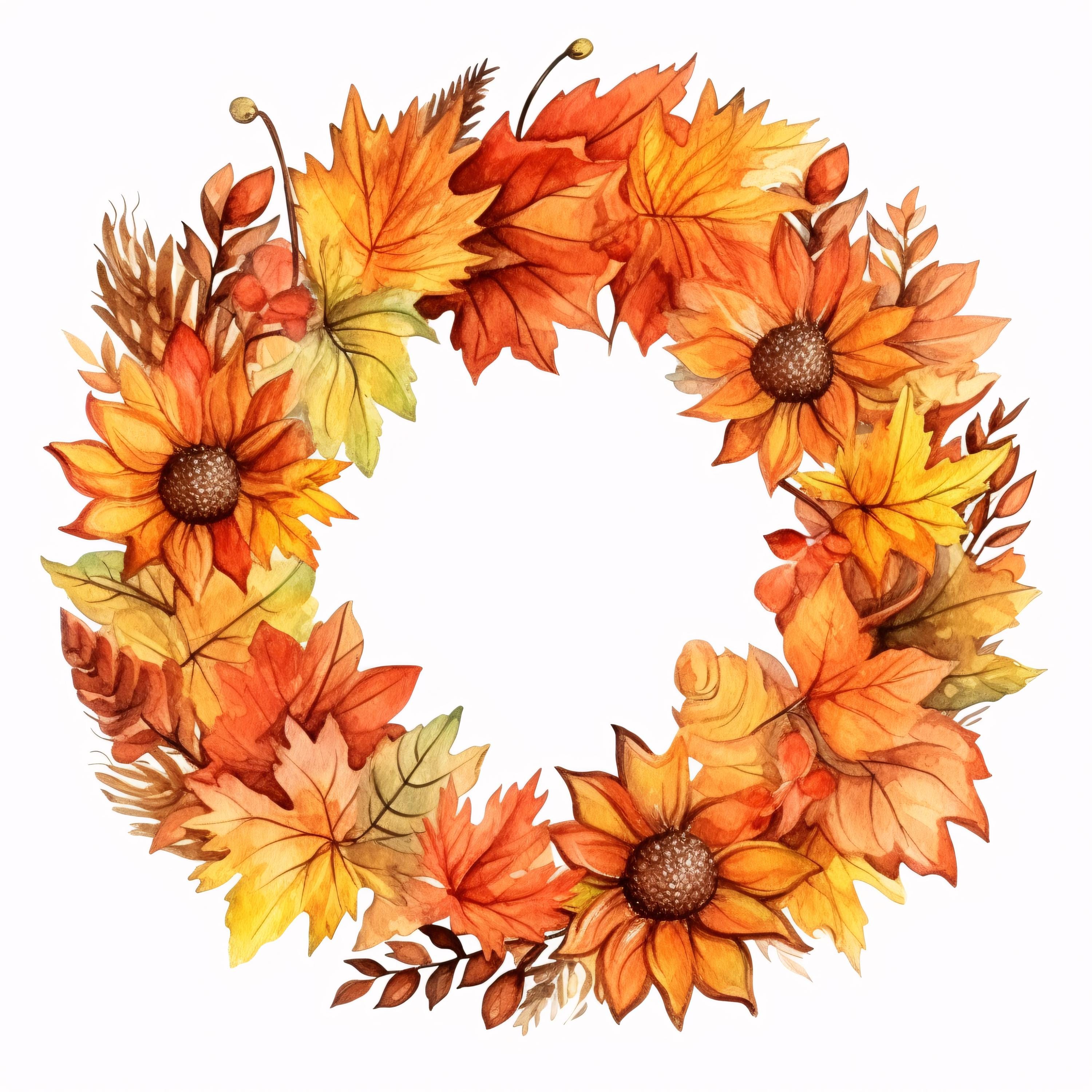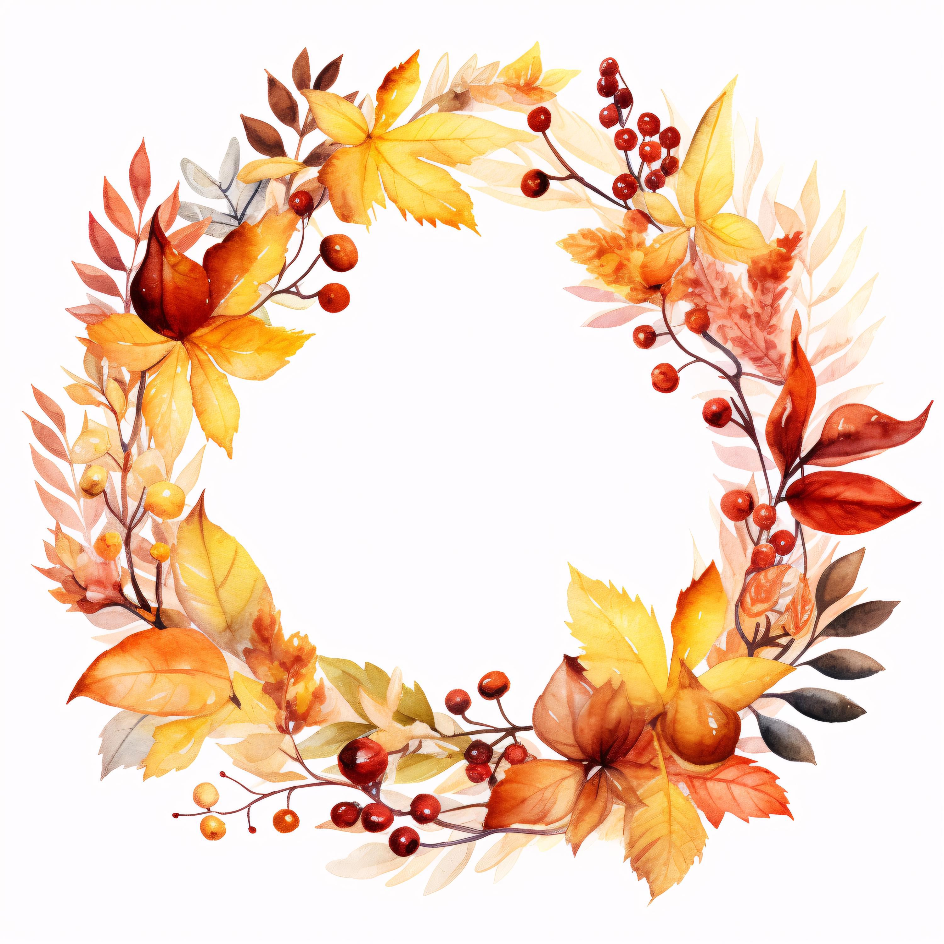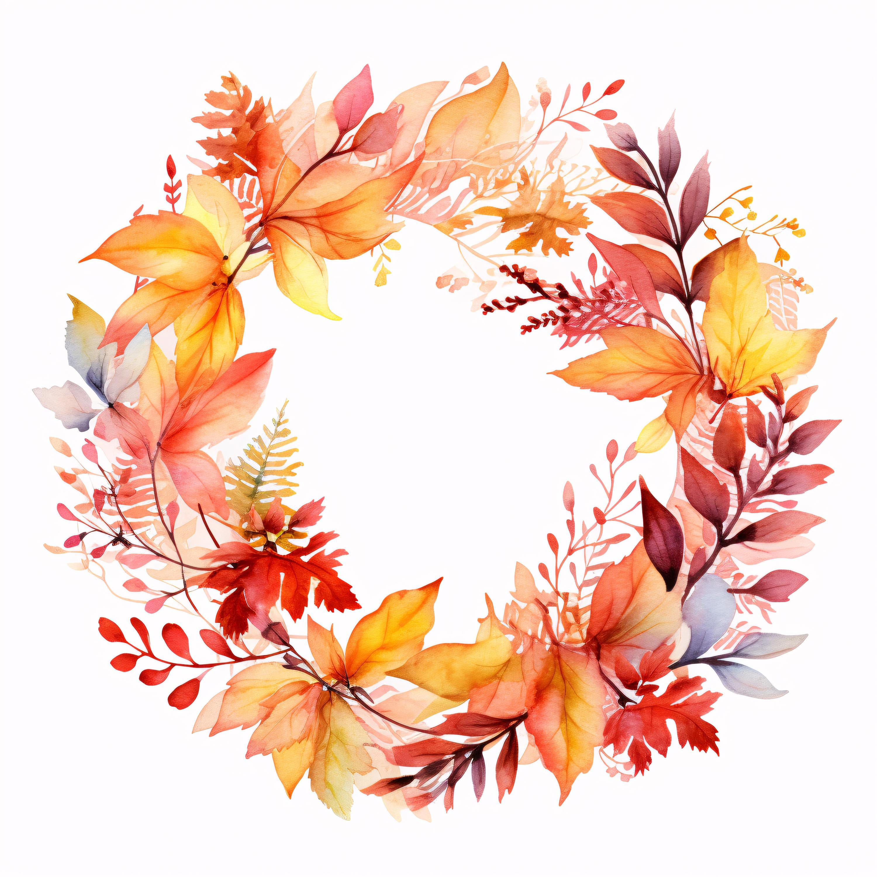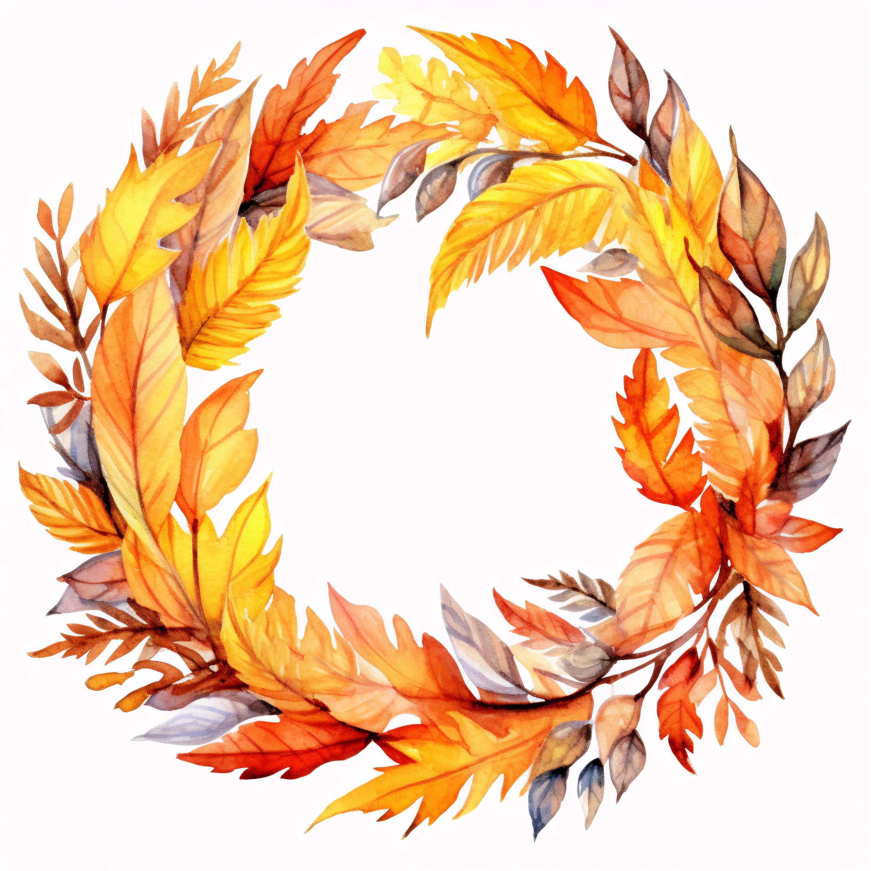 Autumn Wreath Clipart, Fall Leaves Circle Images, 10 Watercolor Clip Art, Printable JPGs, Instant Download, Commercial Use, Paper Craft