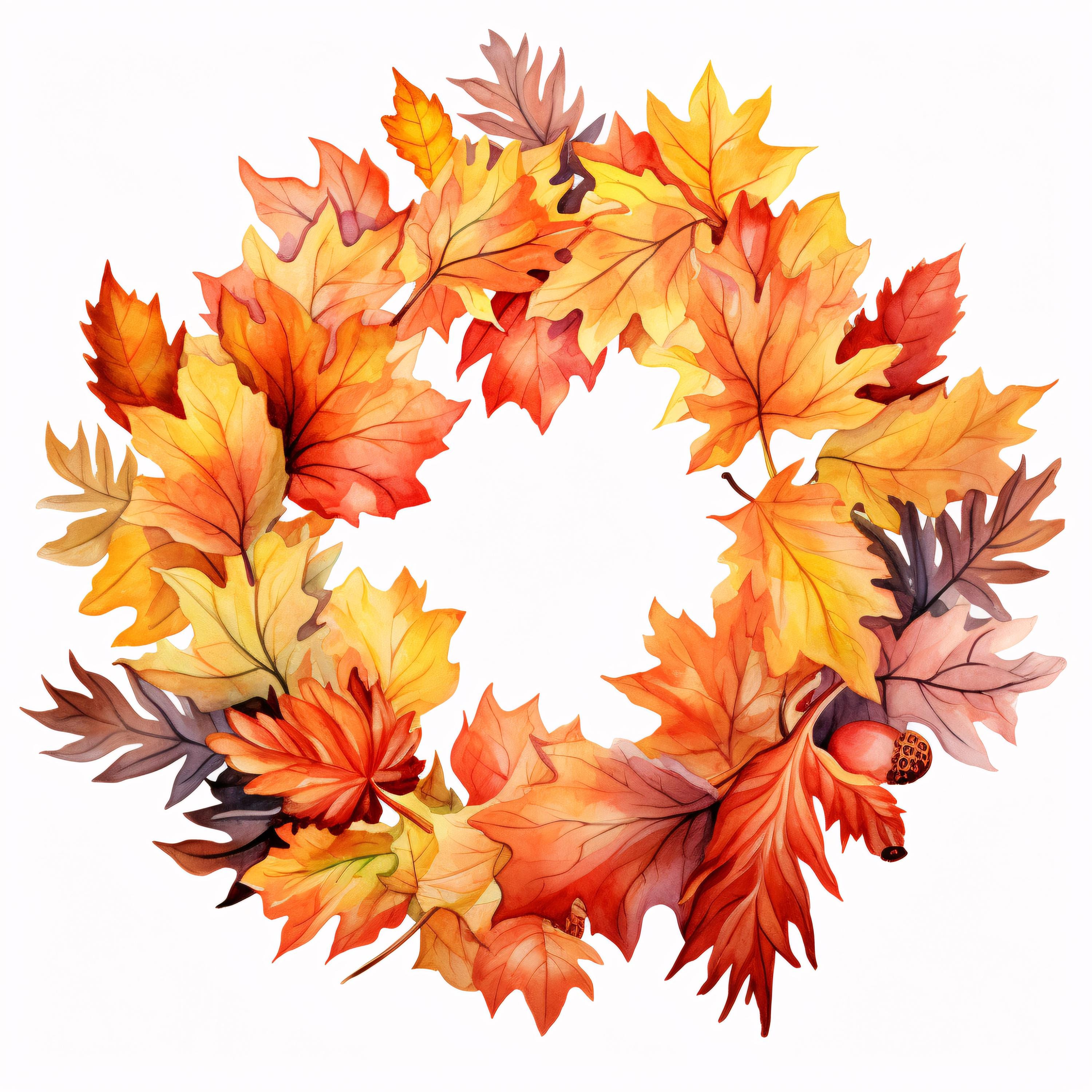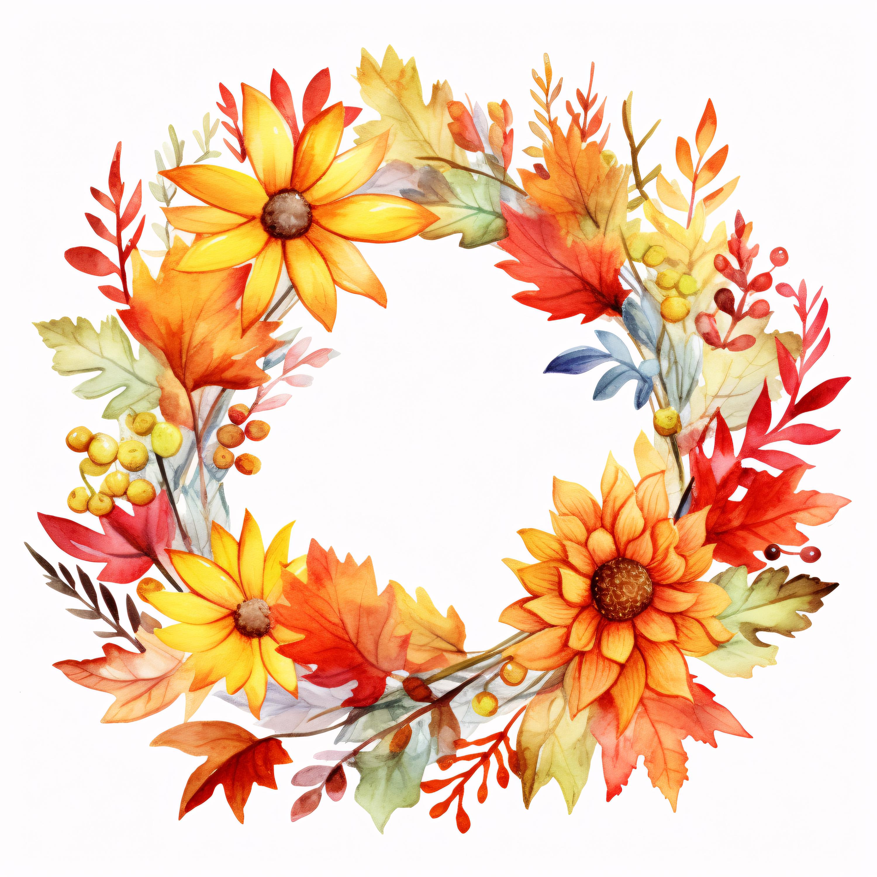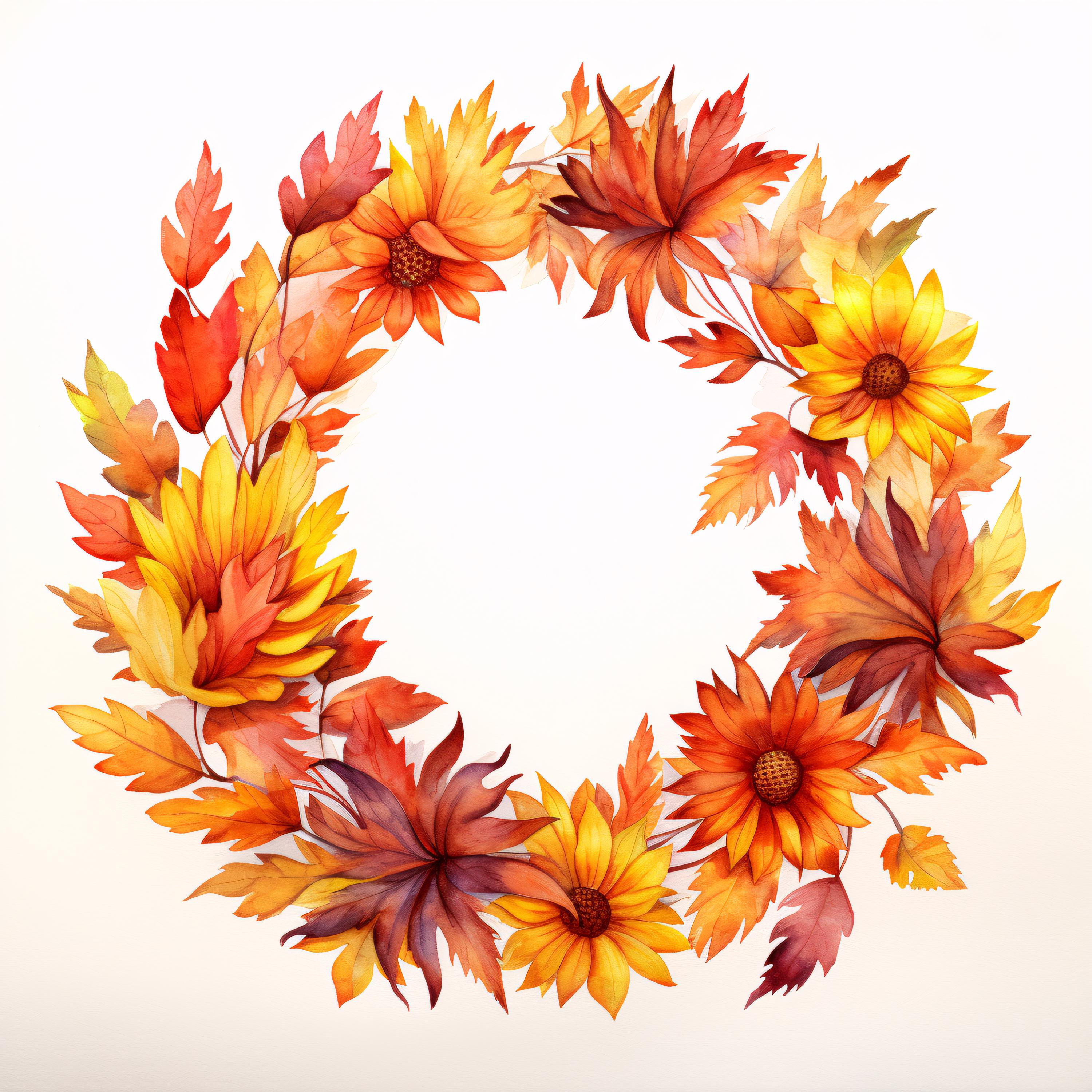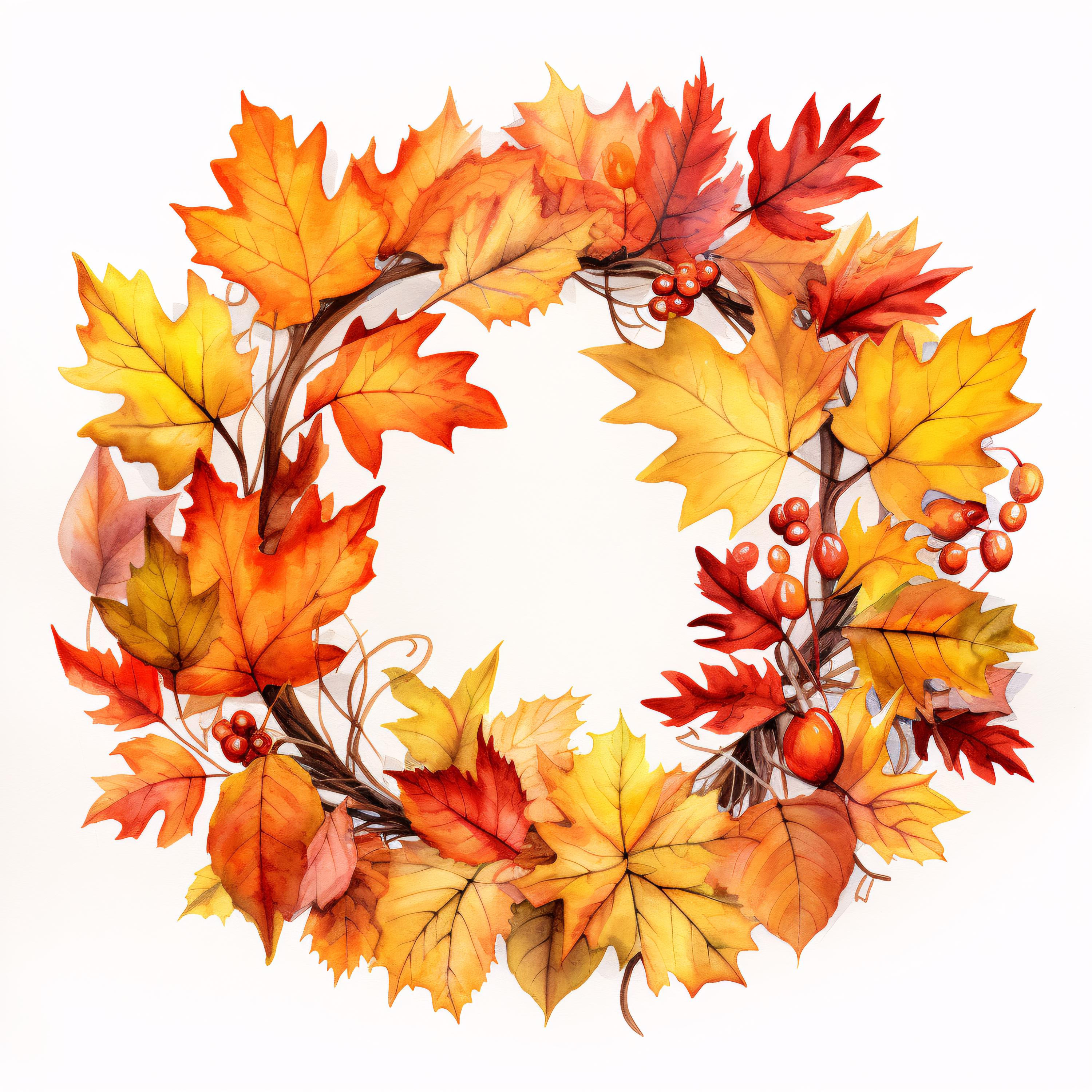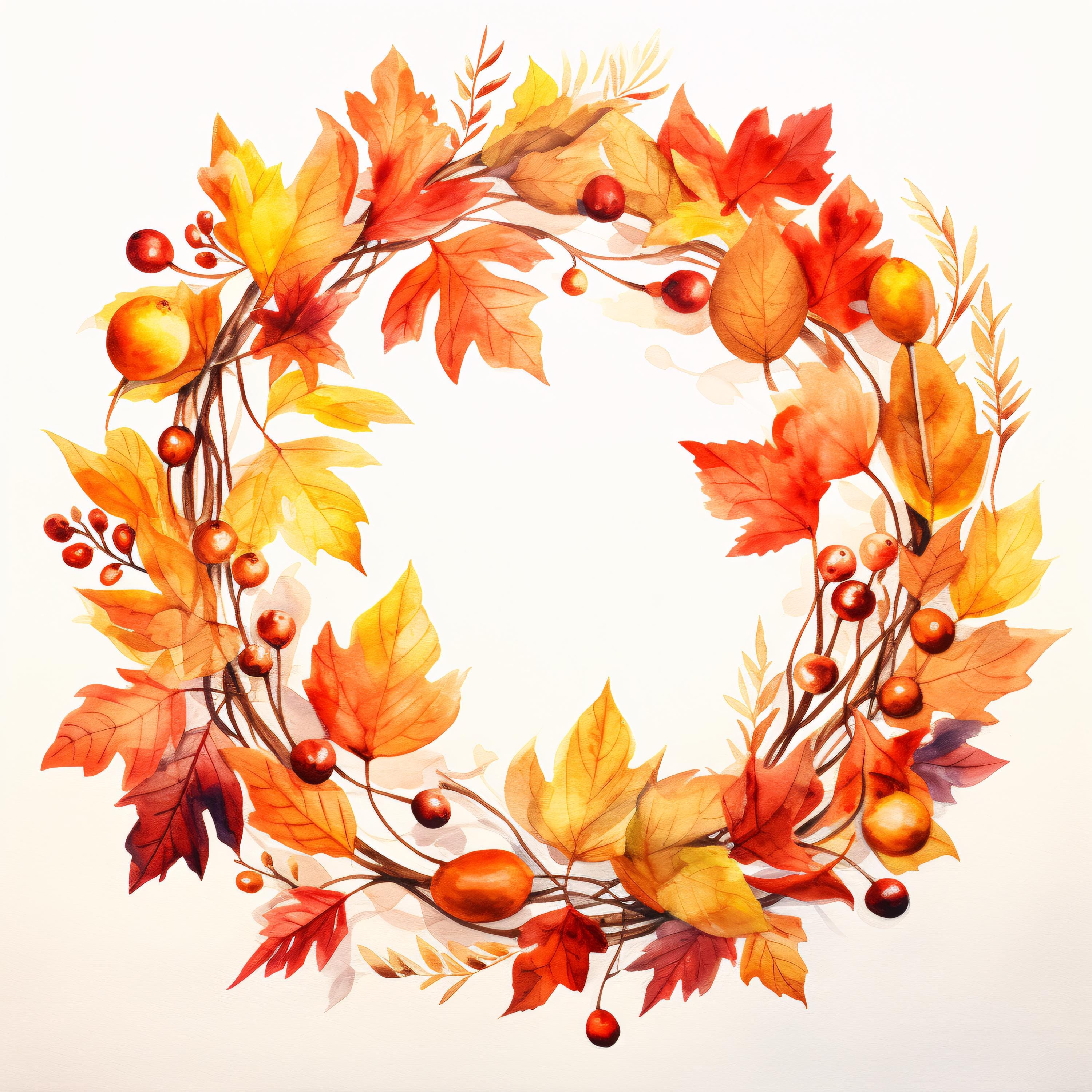 Autumn Wreath Clipart, Fall Leaves Circle Images, 10 Watercolor Clip Art, Printable JPGs, Instant Download, Commercial Use, Paper Craft