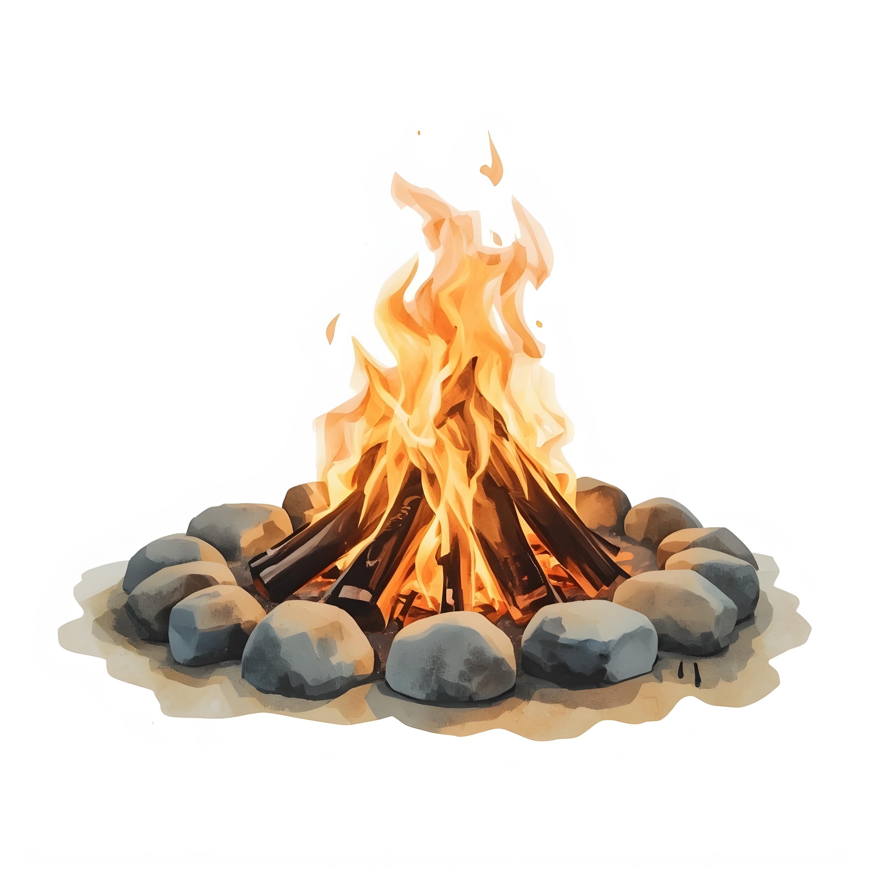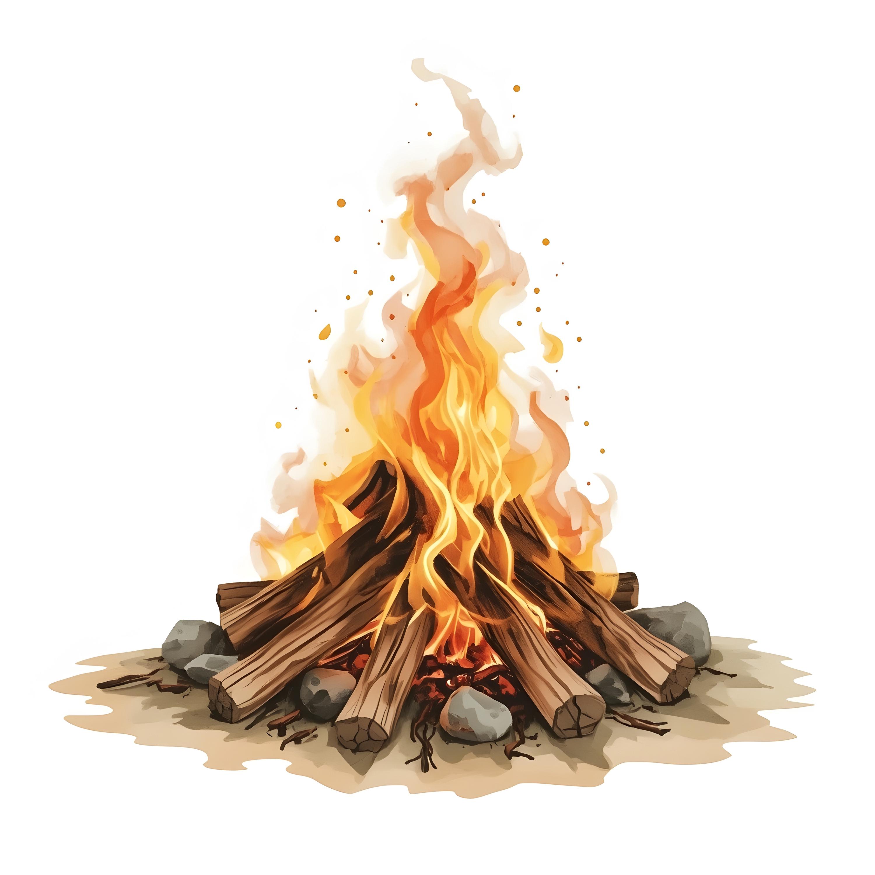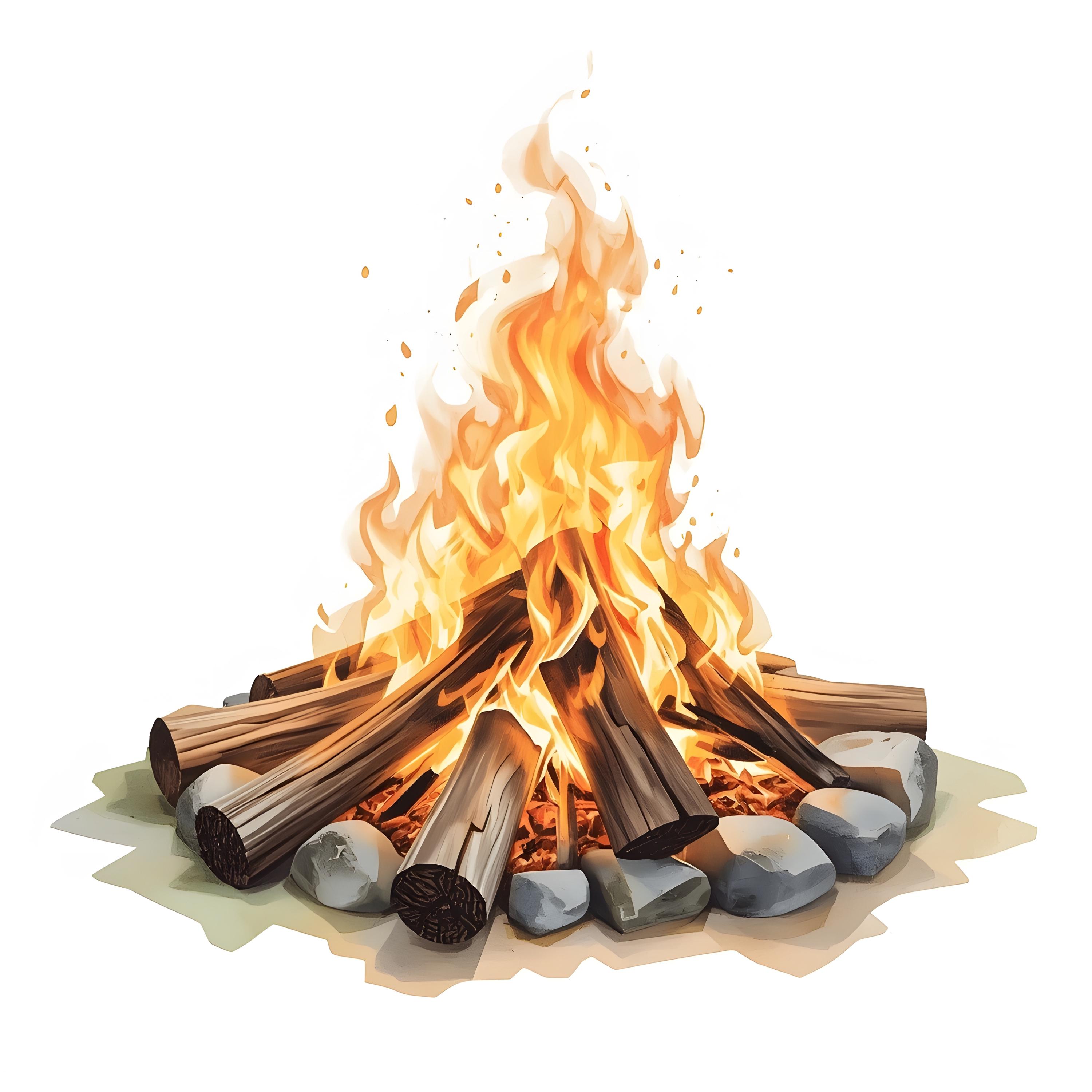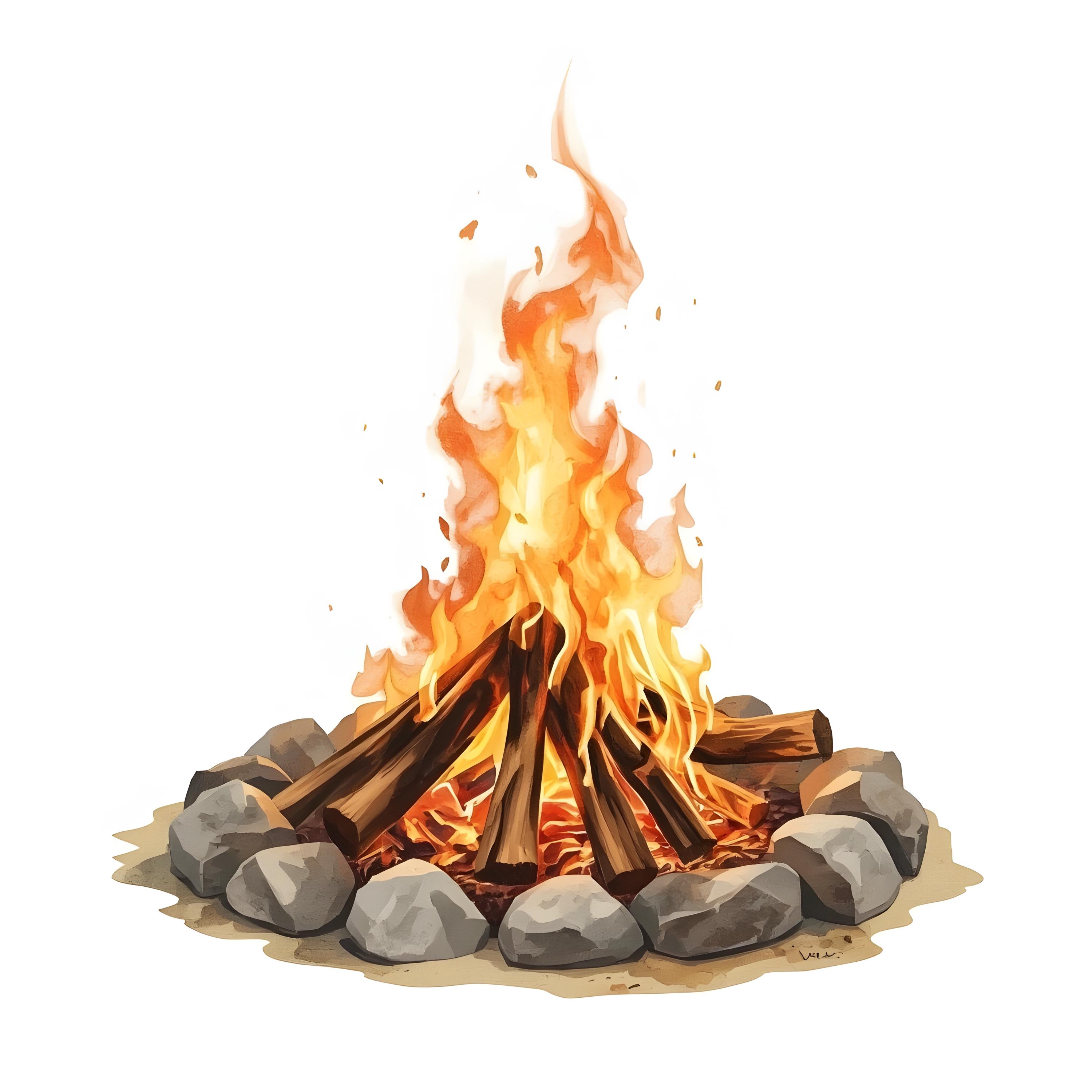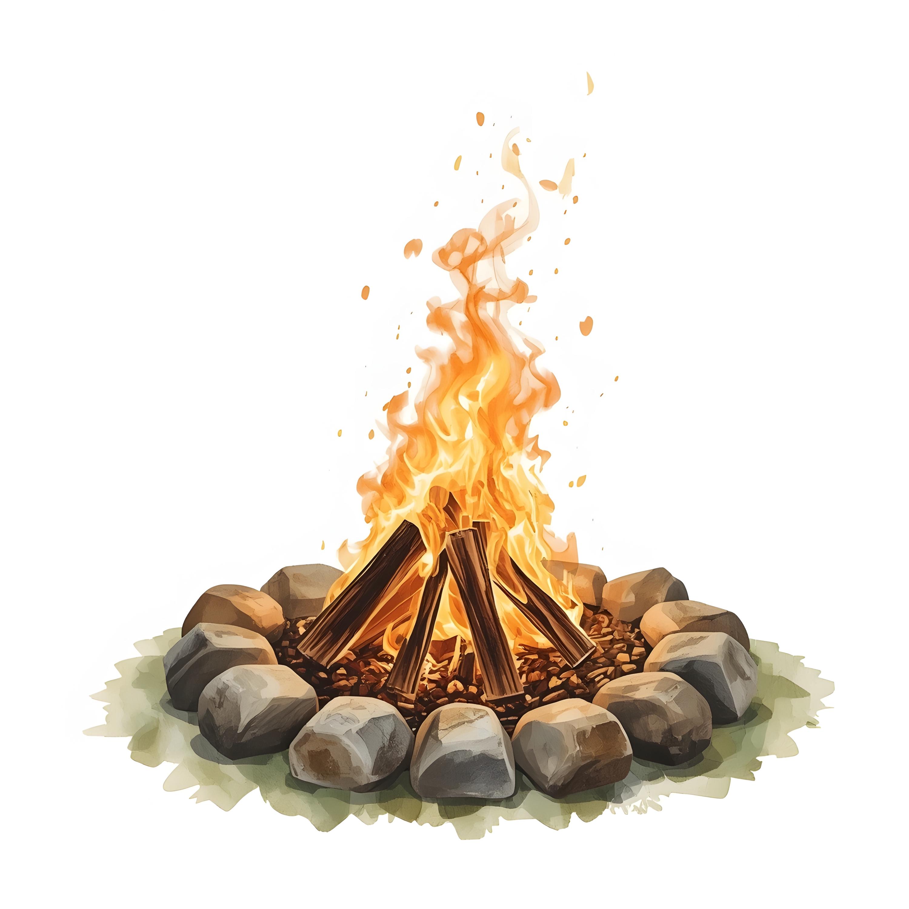 Campfire Clipart, Bonfire Flames Images, 10 Watercolor Clip Art, Printable JPGs, Instant Download, Commercial Use, Paper Craft