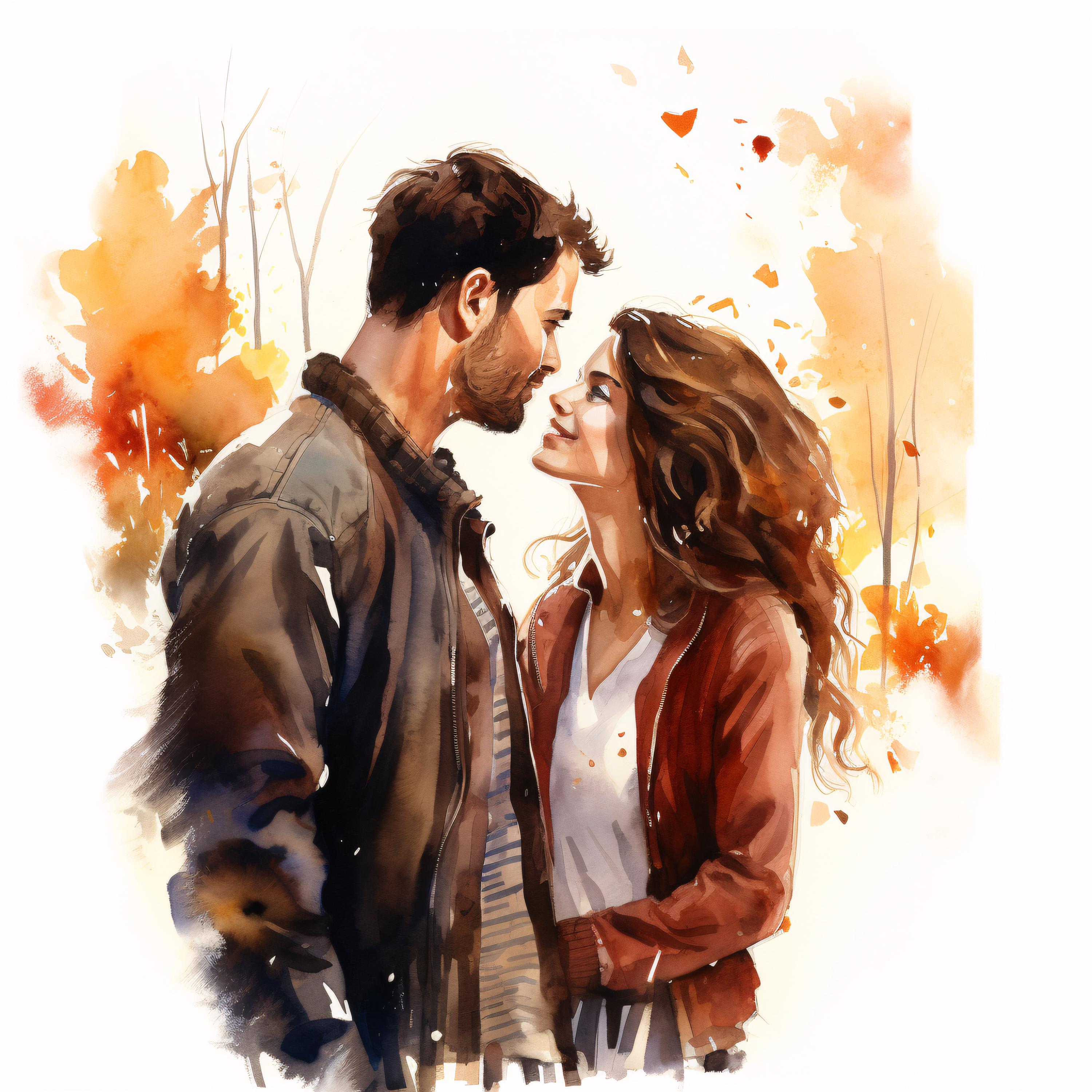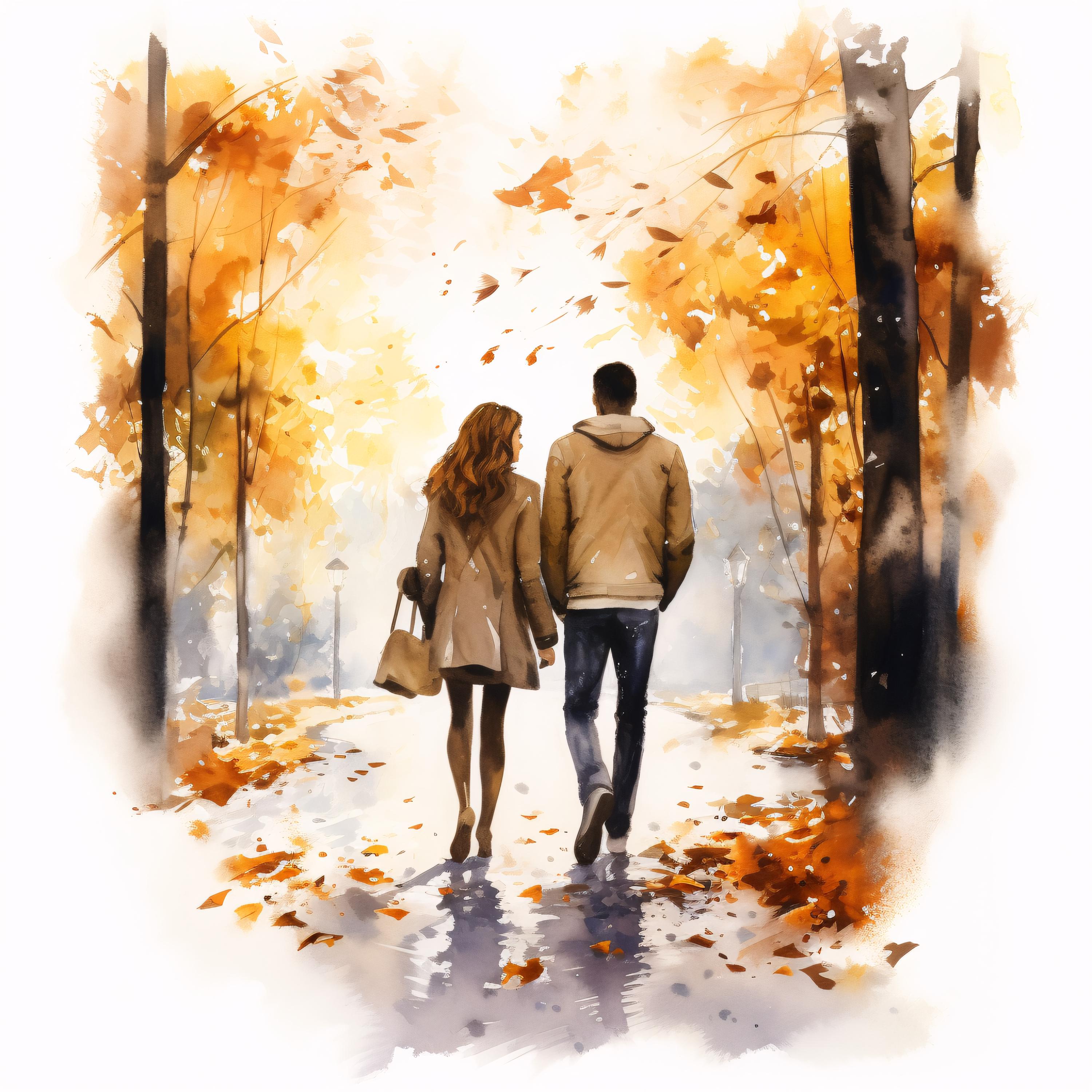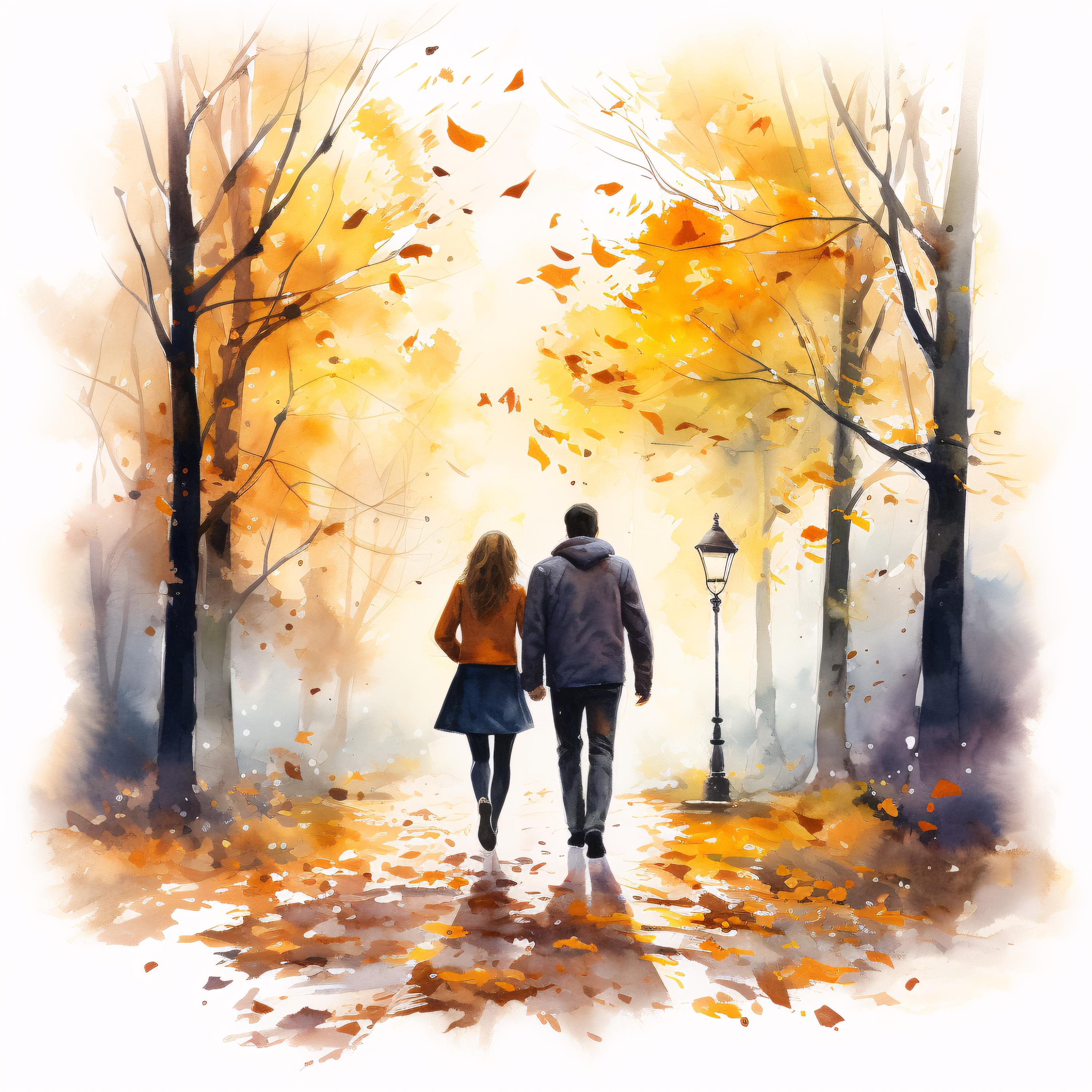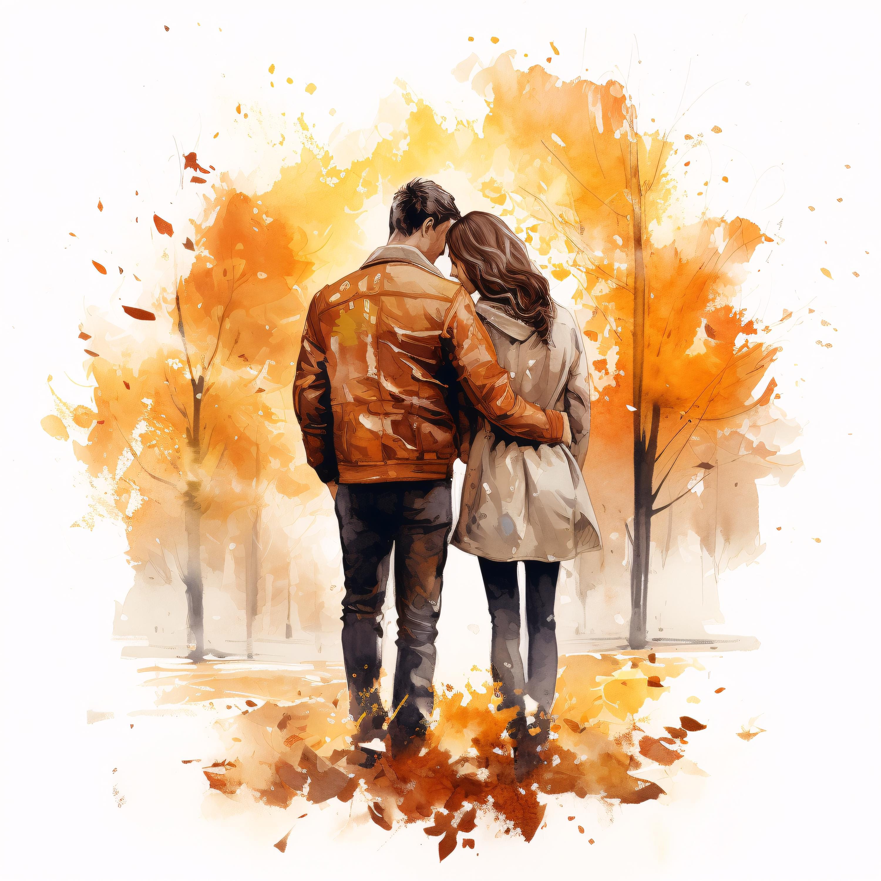 Autumn Couple Clipart, Romantic Walk Images, 10 Watercolor Clip Art, Printable JPGs, Instant Download, Commercial Use, Paper Craft
