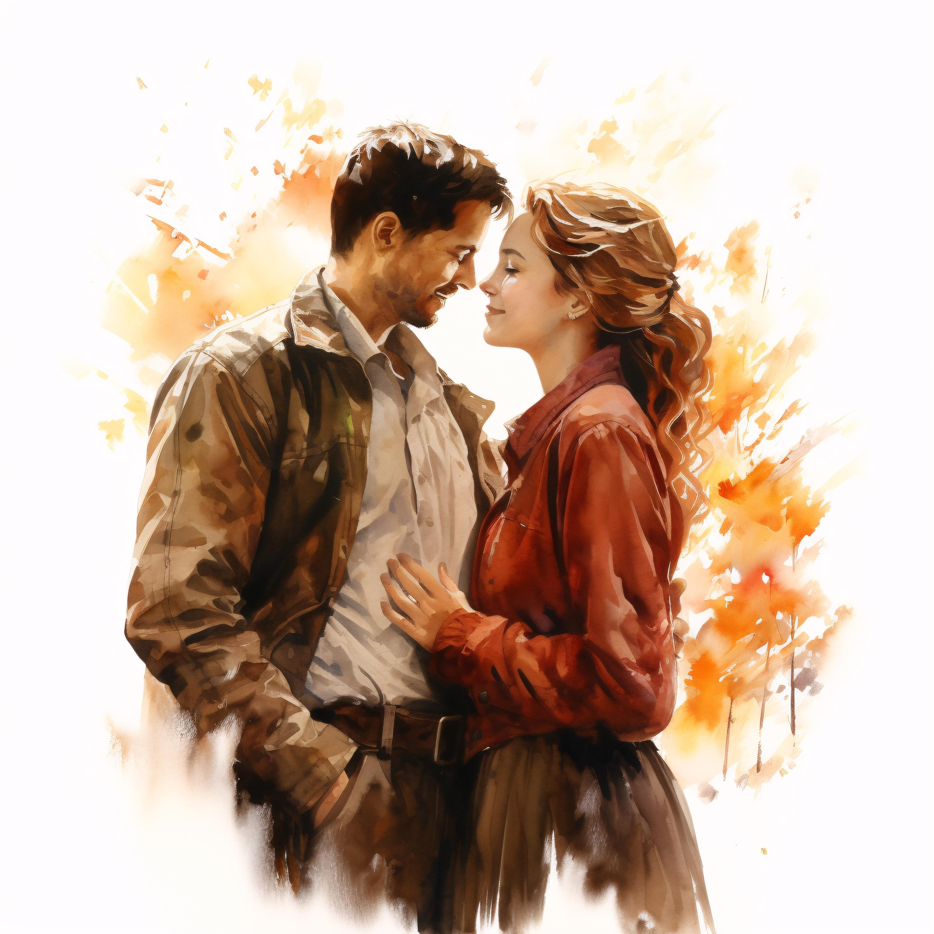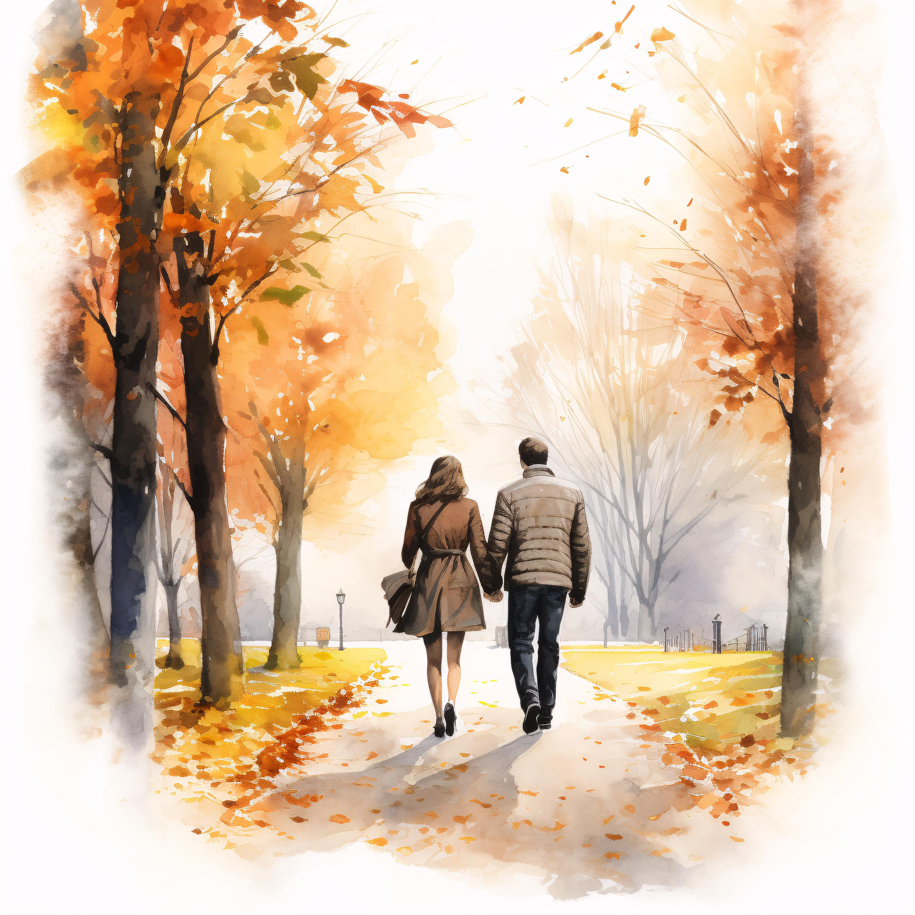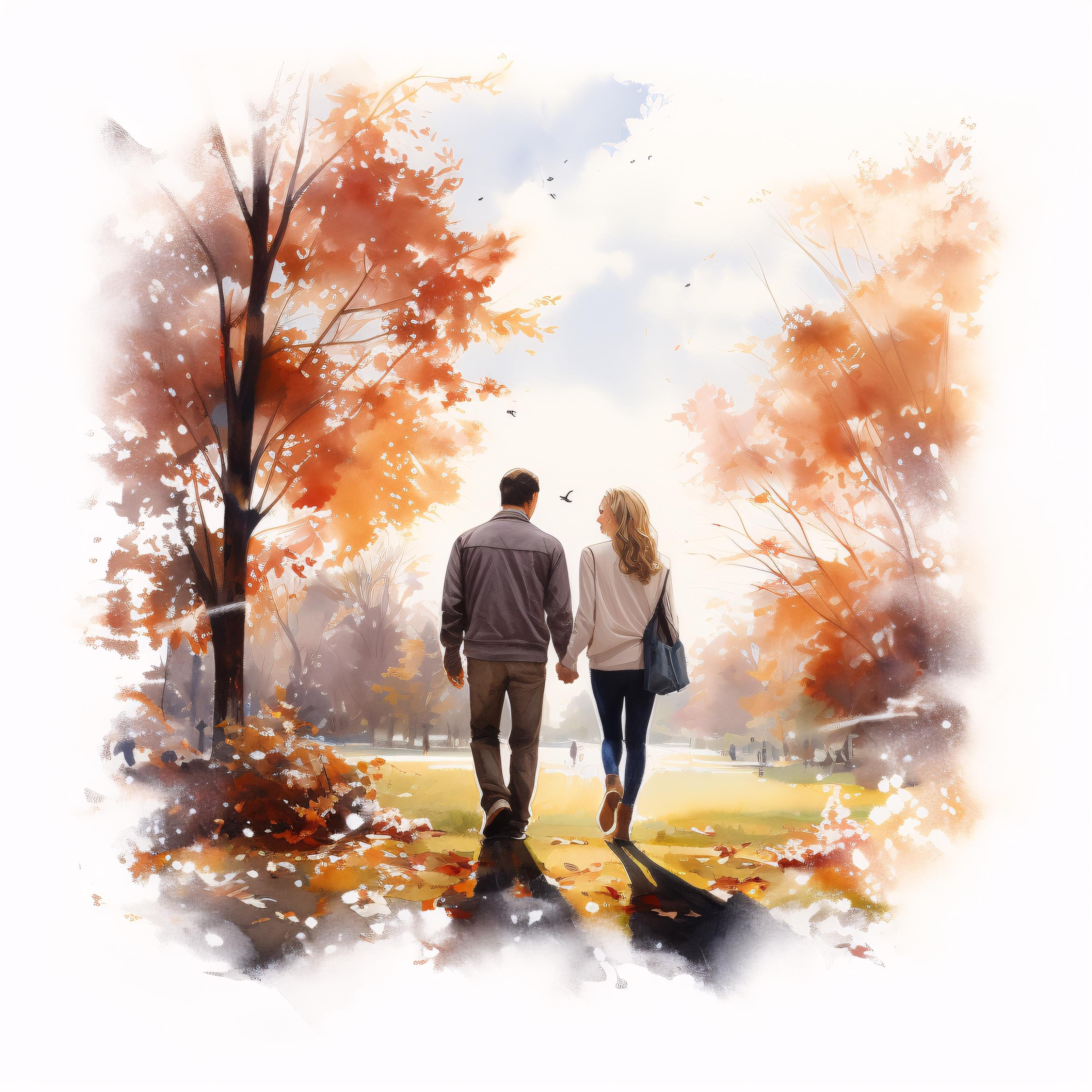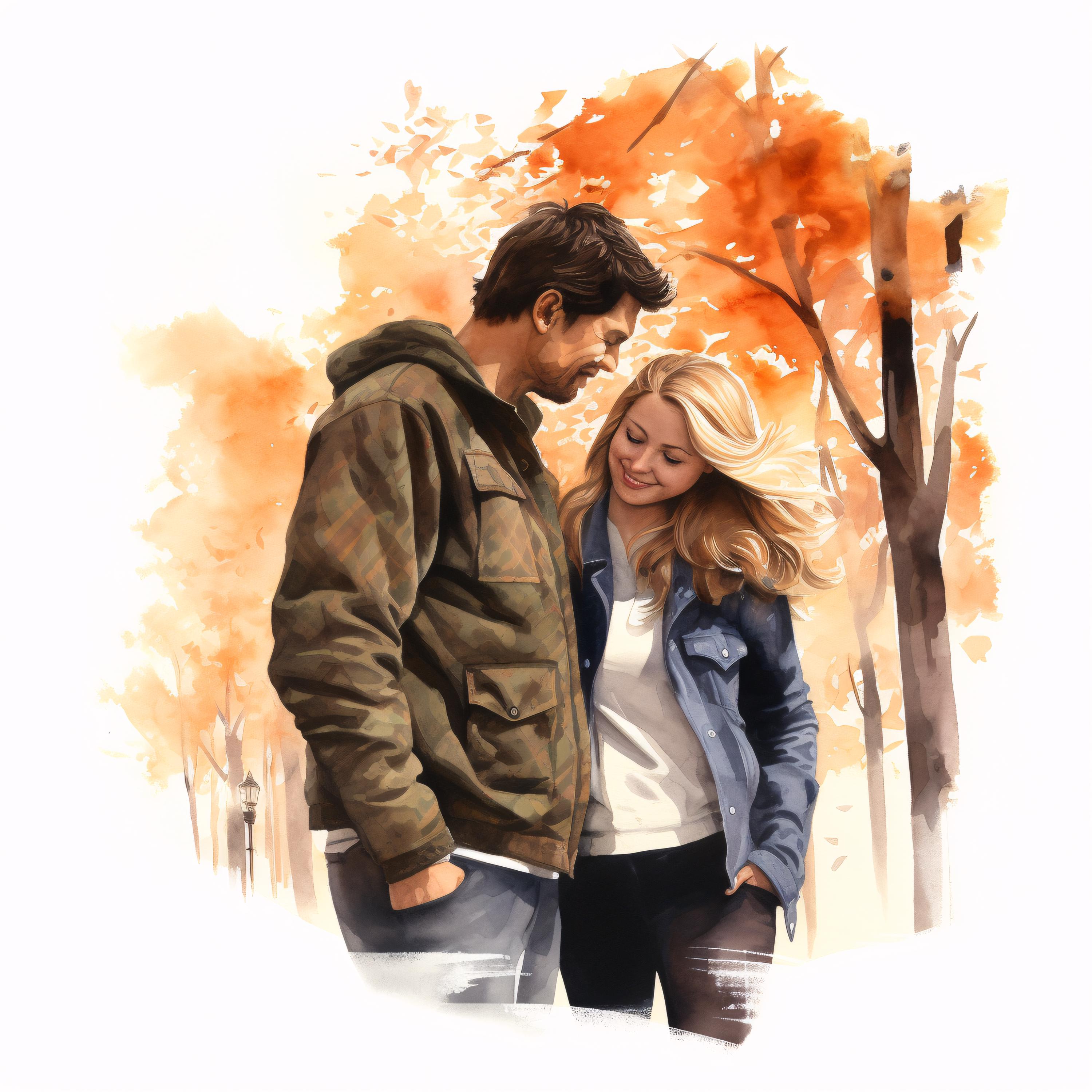 Autumn Couple Clipart, Romantic Walk Images, 10 Watercolor Clip Art, Printable JPGs, Instant Download, Commercial Use, Paper Craft