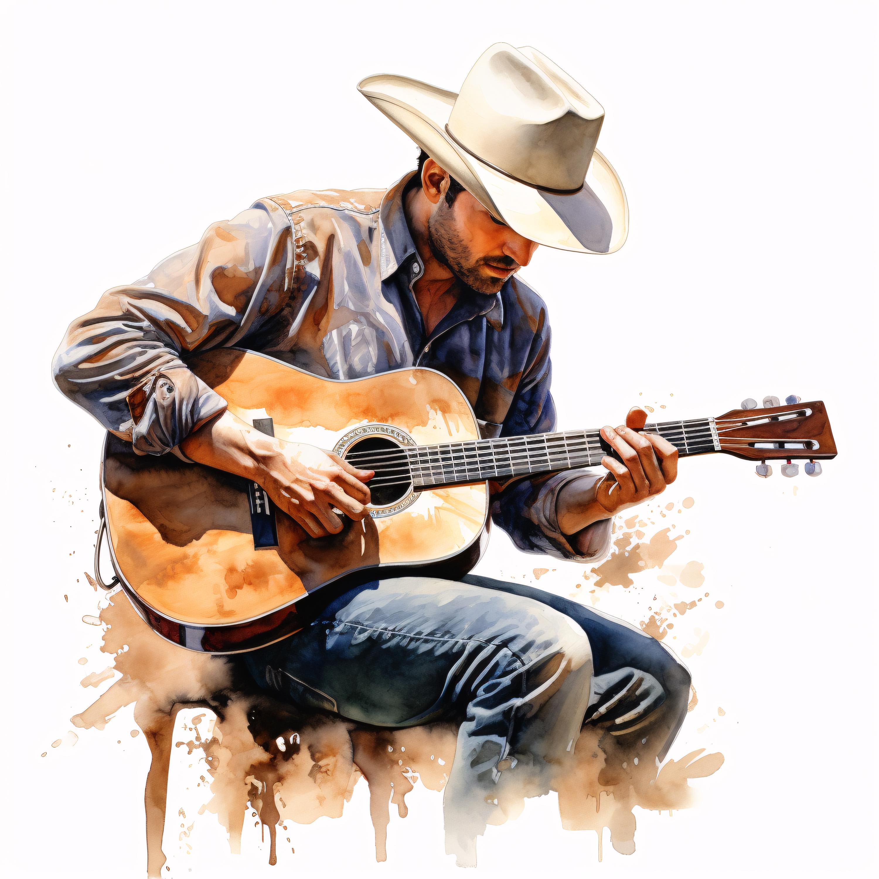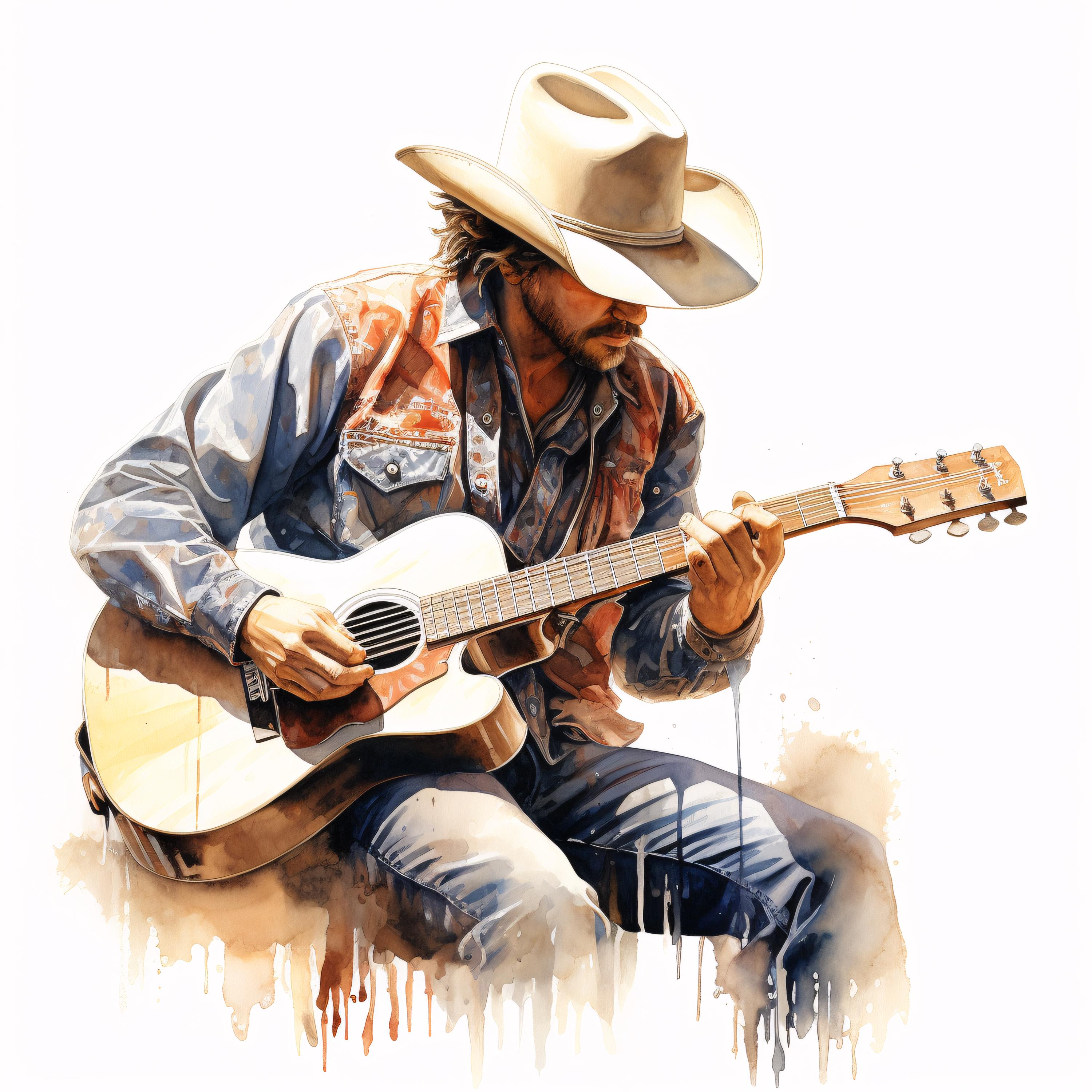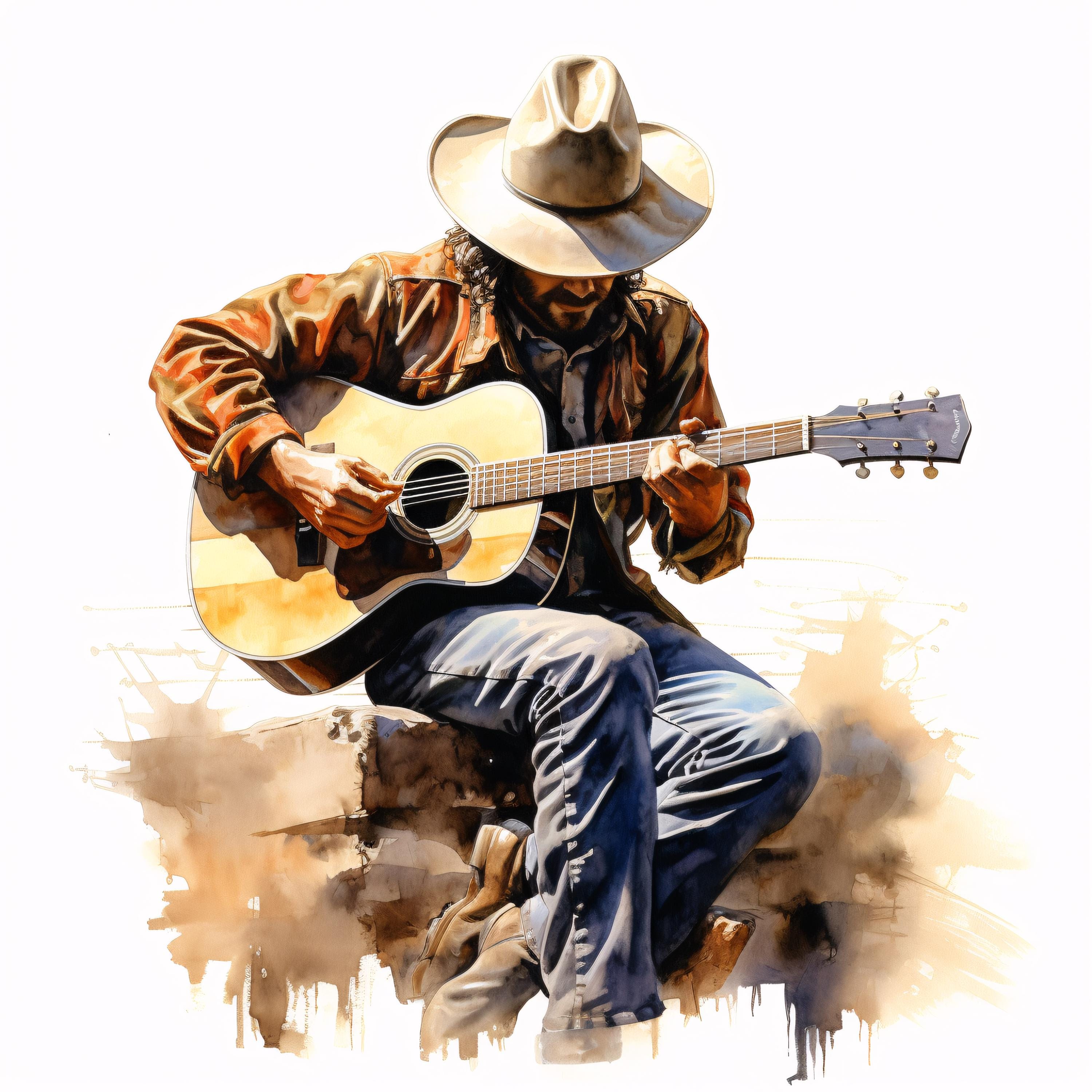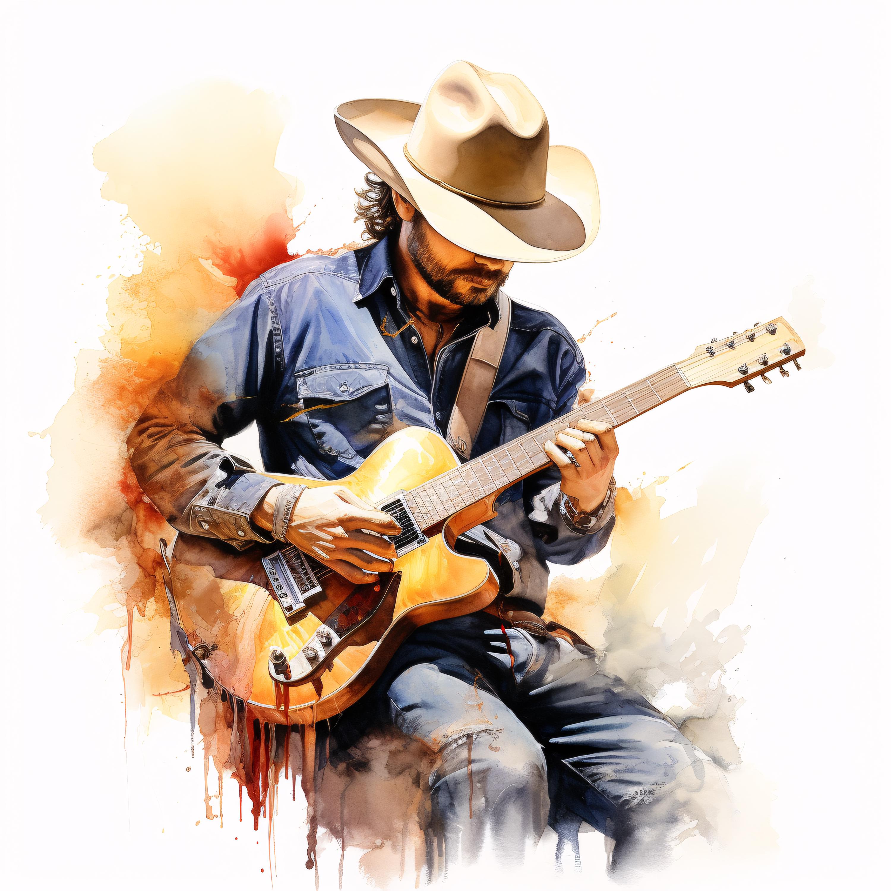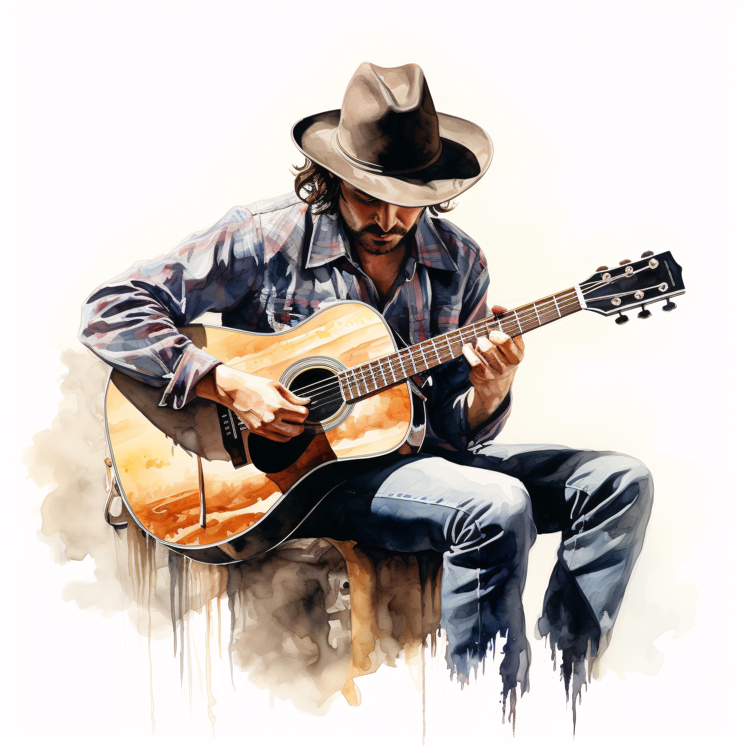 Cowboy Guitar Clipart, Western Music Images, 10 Watercolor Clip Art, Printable JPGs, Instant Download, Commercial Use, Paper Craft