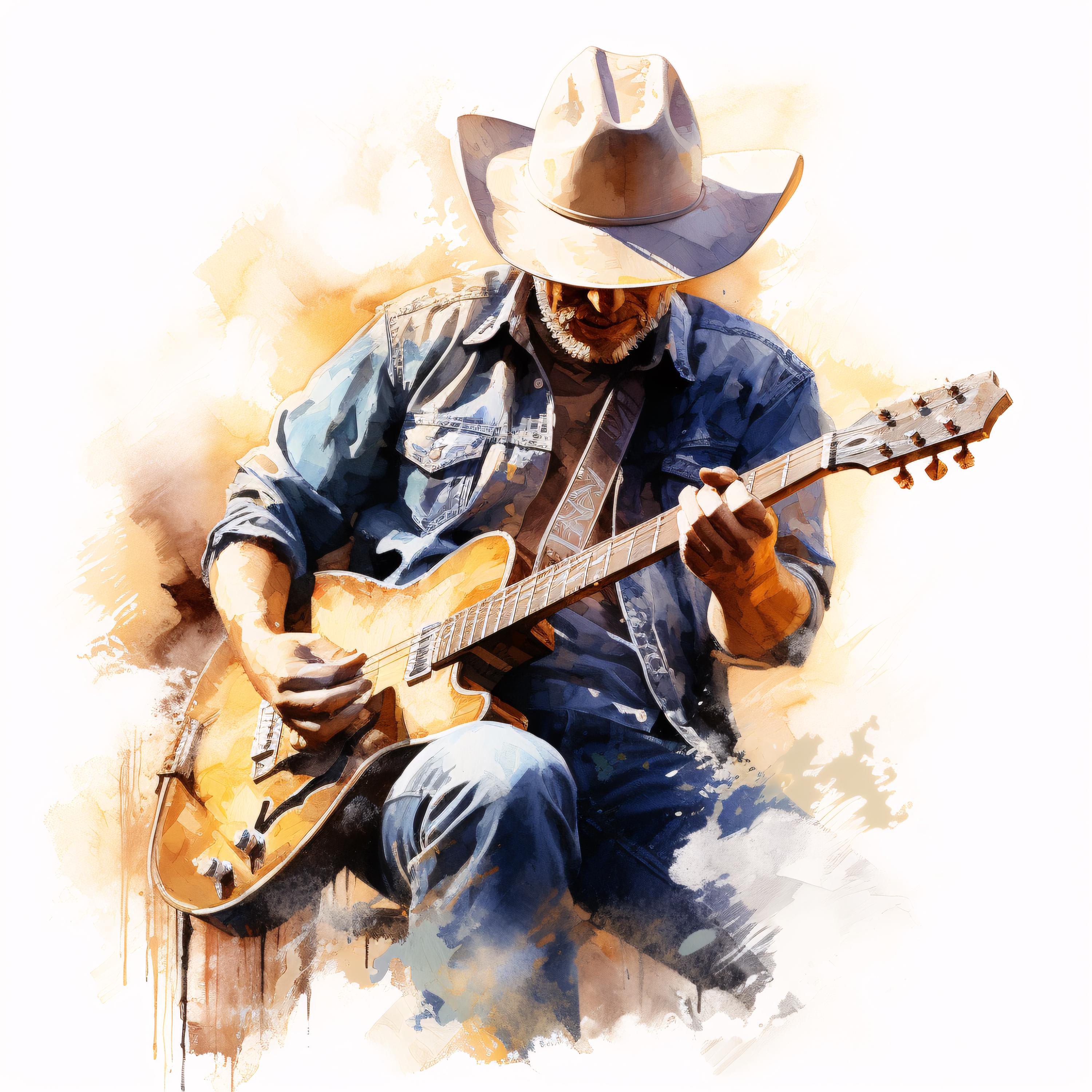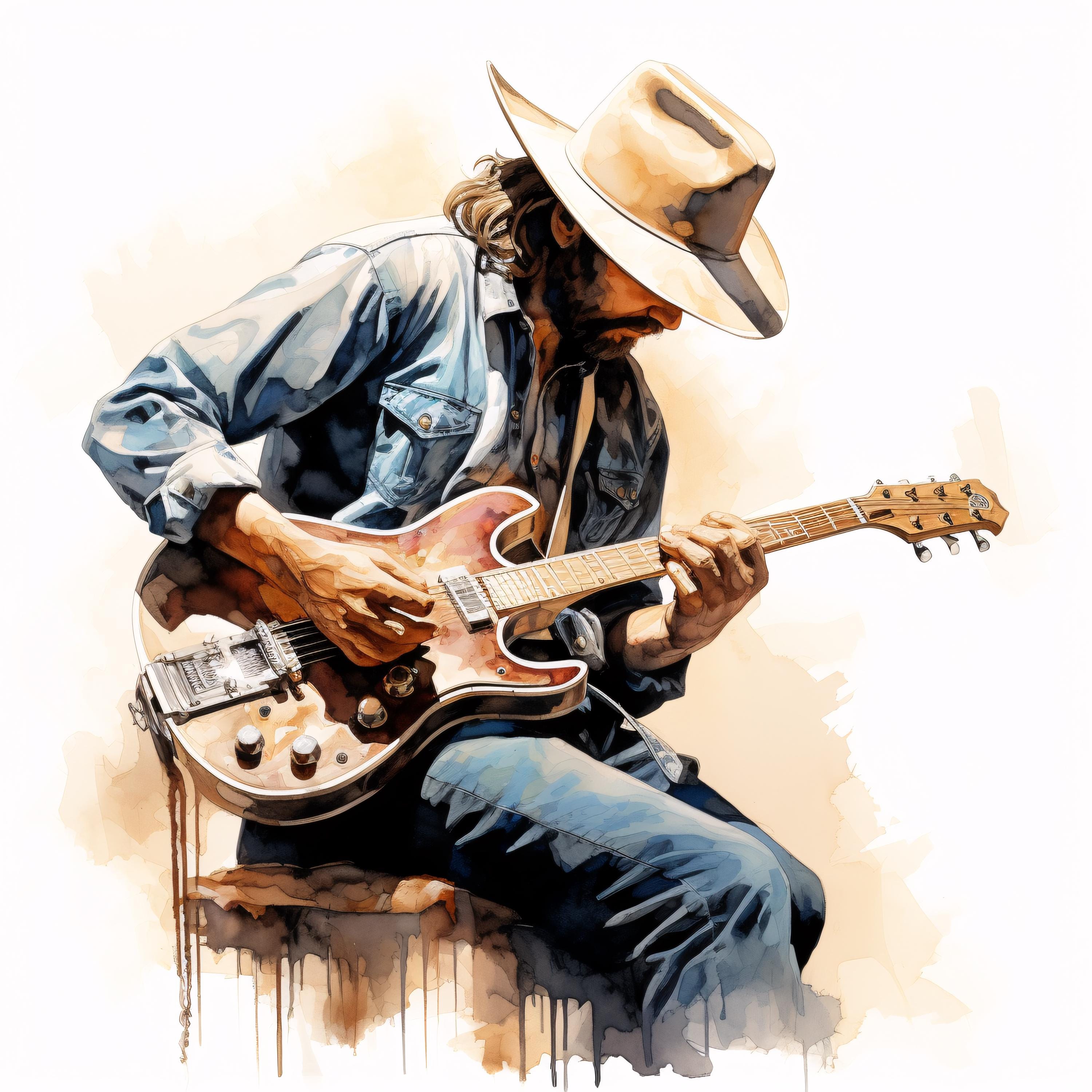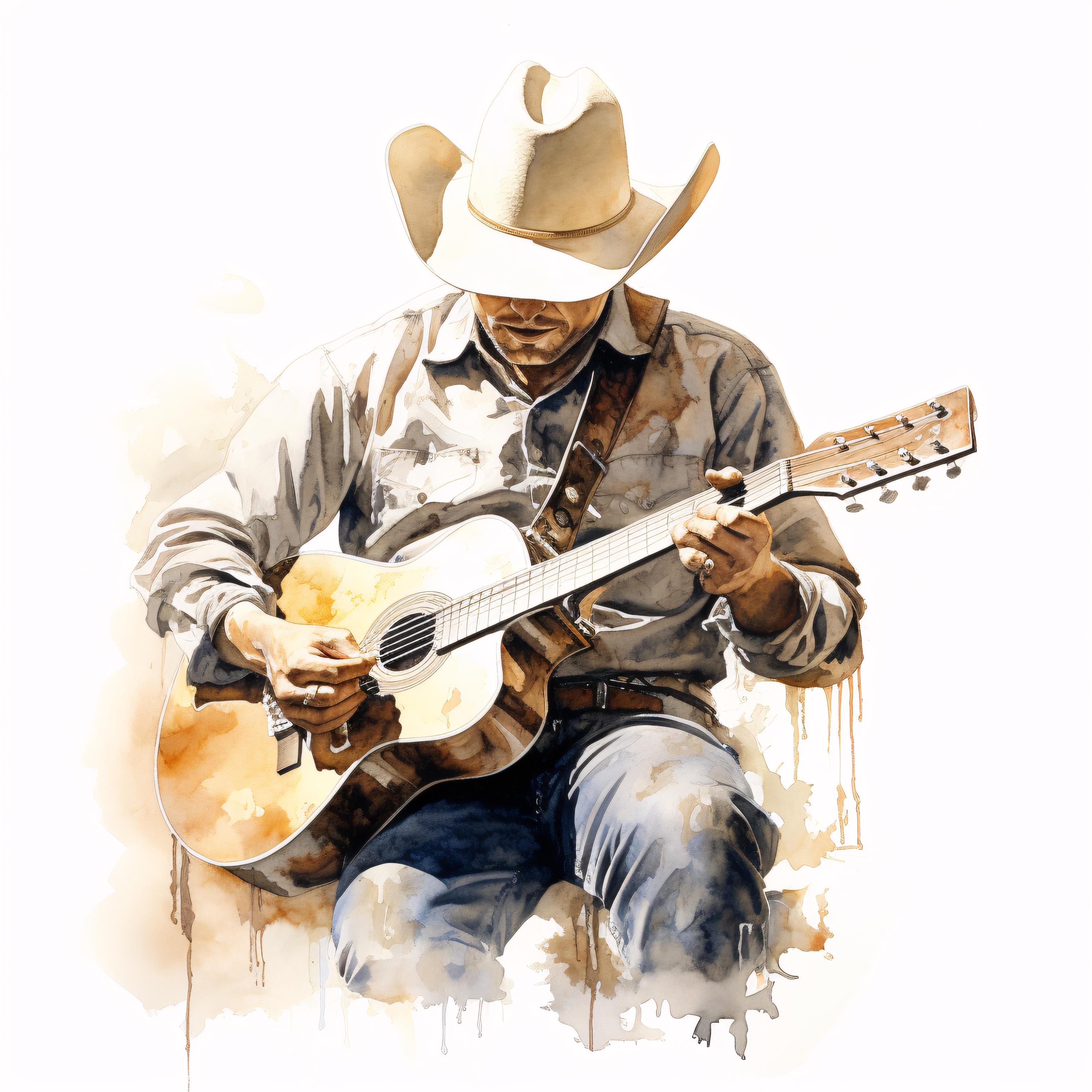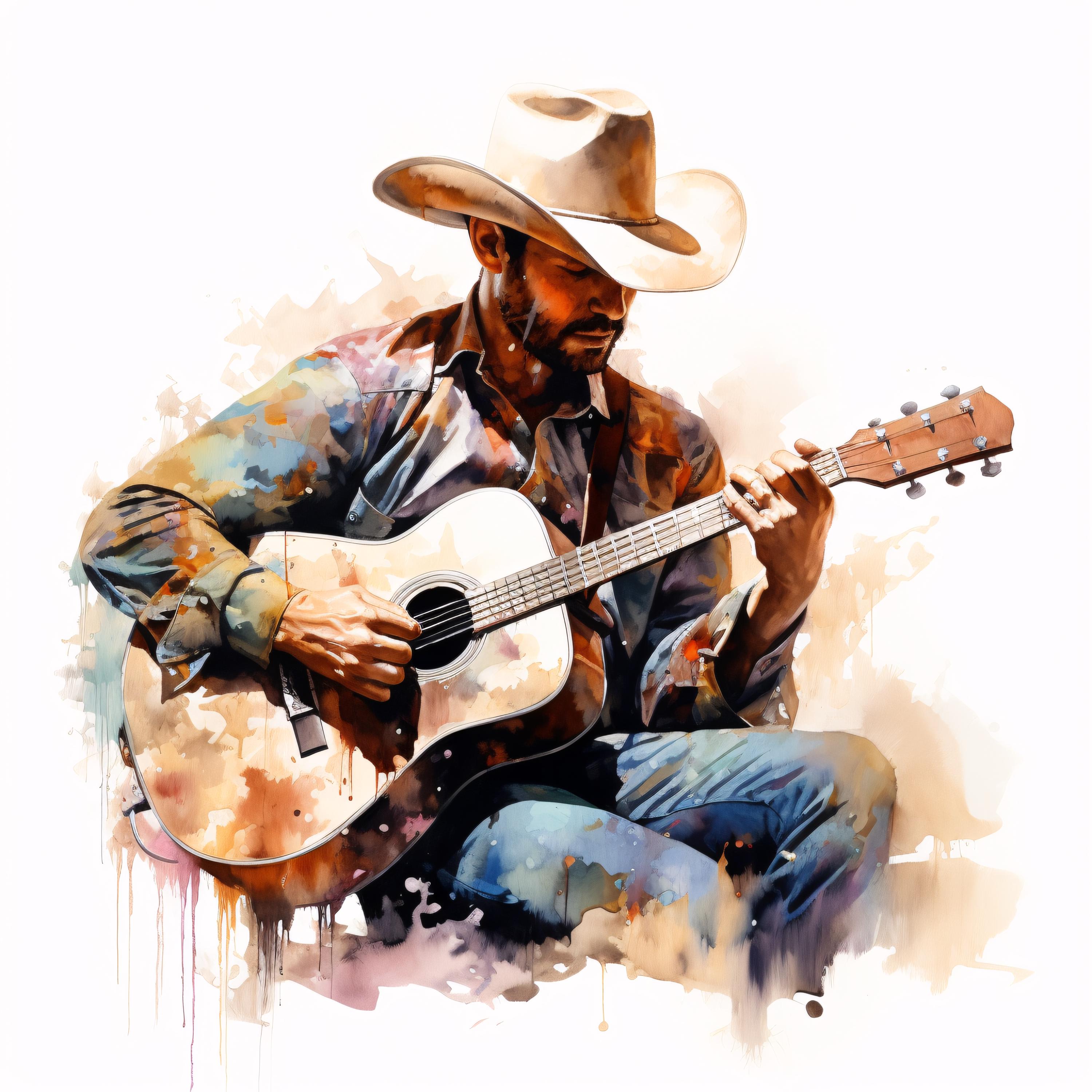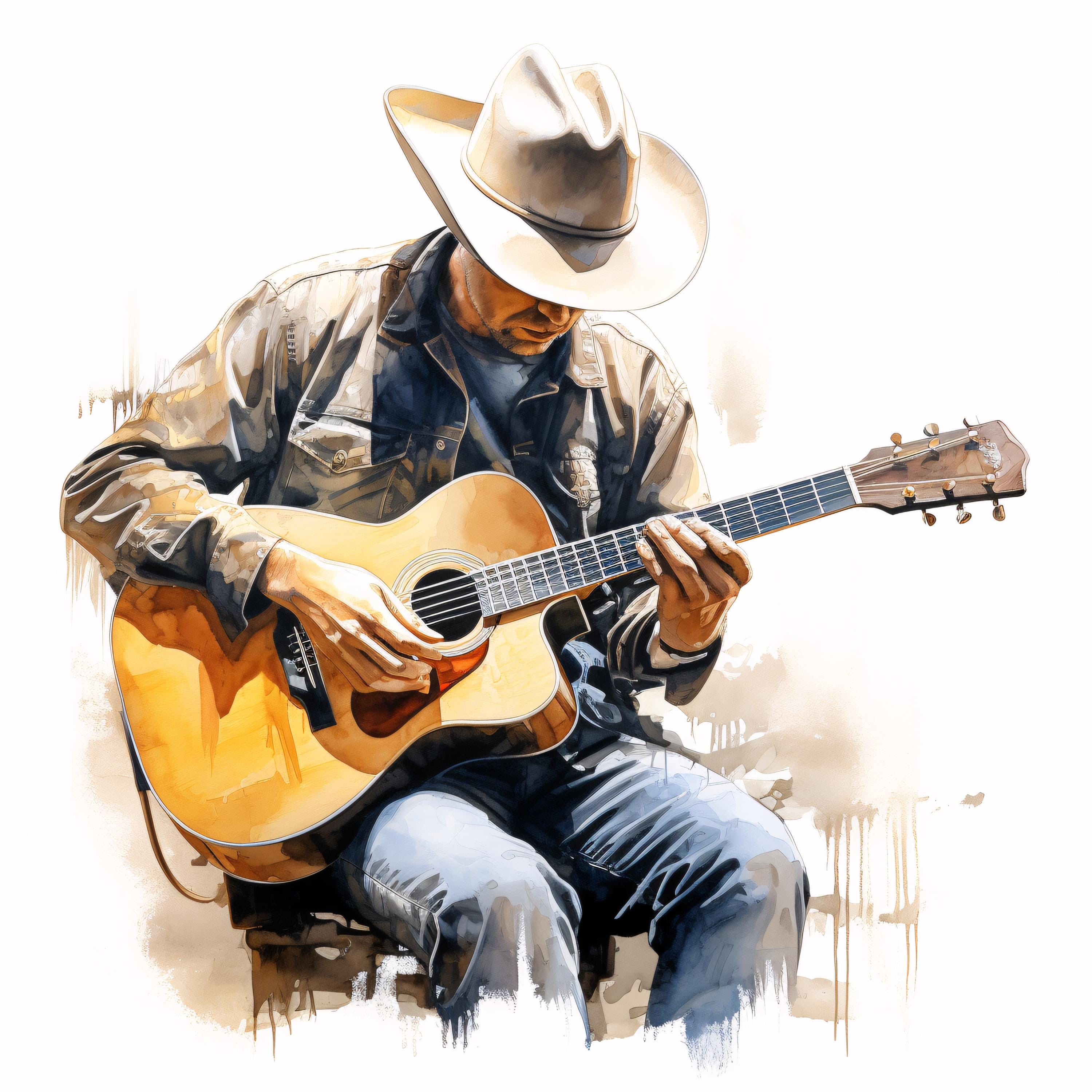 Cowboy Guitar Clipart, Western Music Images, 10 Watercolor Clip Art, Printable JPGs, Instant Download, Commercial Use, Paper Craft