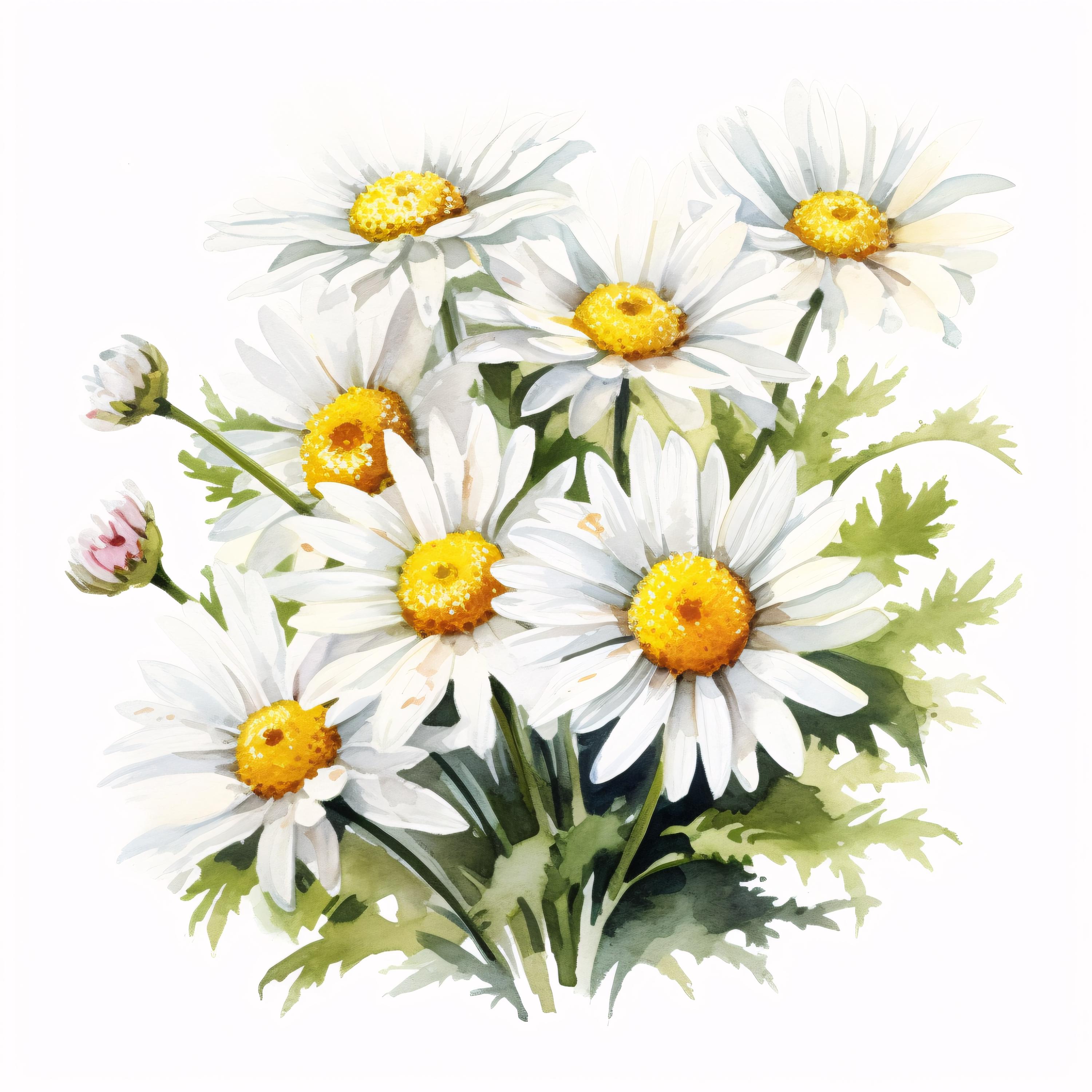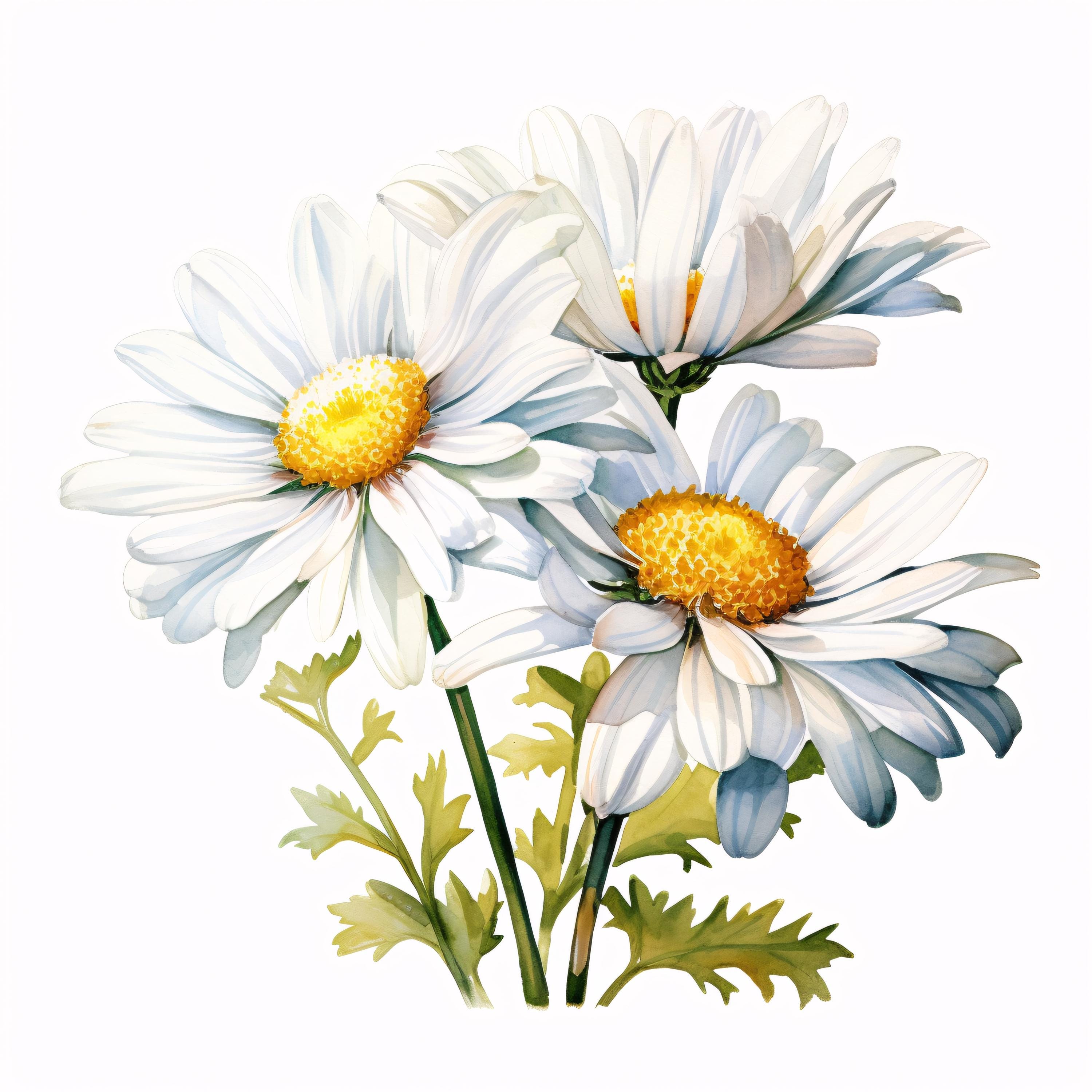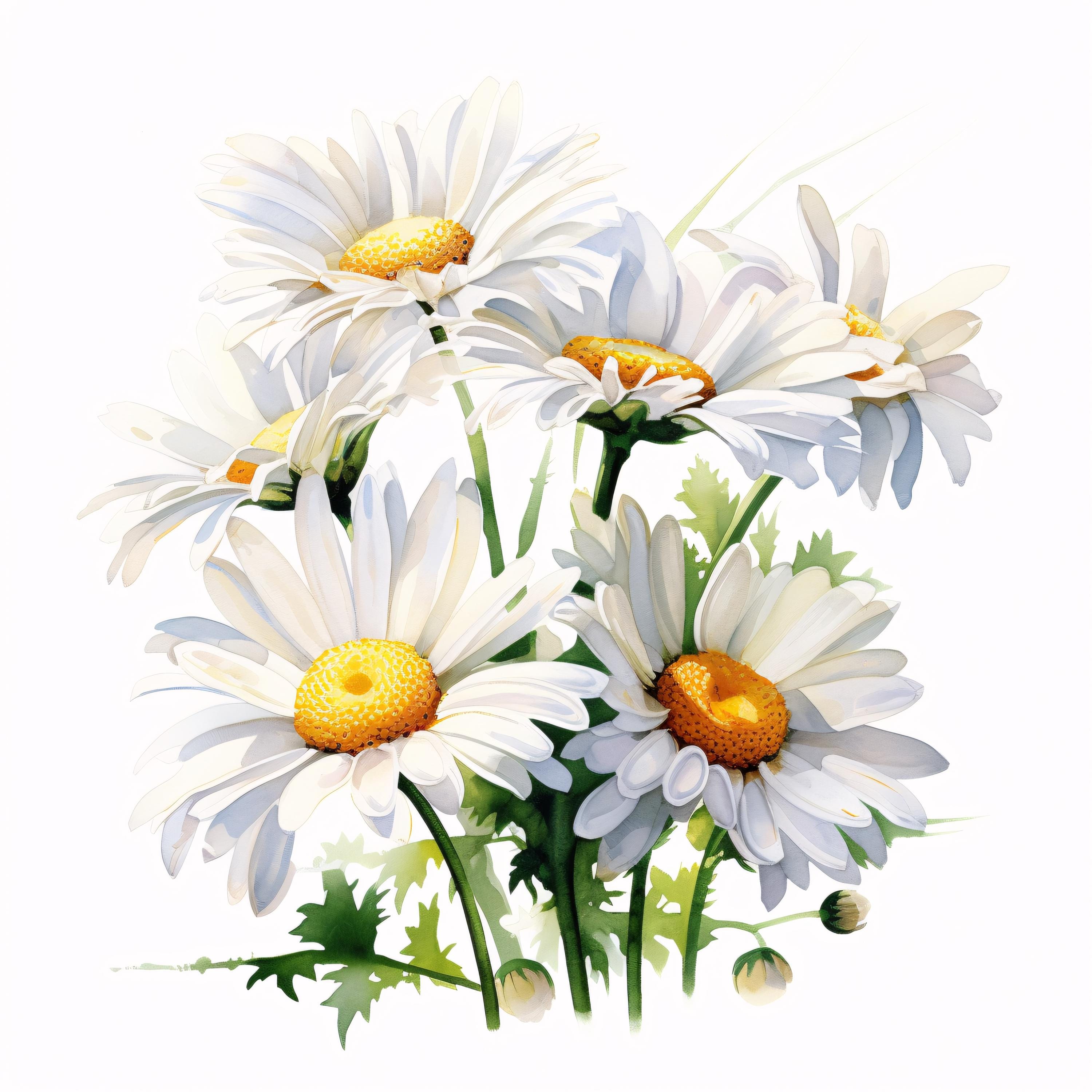 Daisy Clipart, White Flowers Images, 10 Watercolor Clip Art, Printable JPGs, Instant Download, Commercial Use, Paper Craft