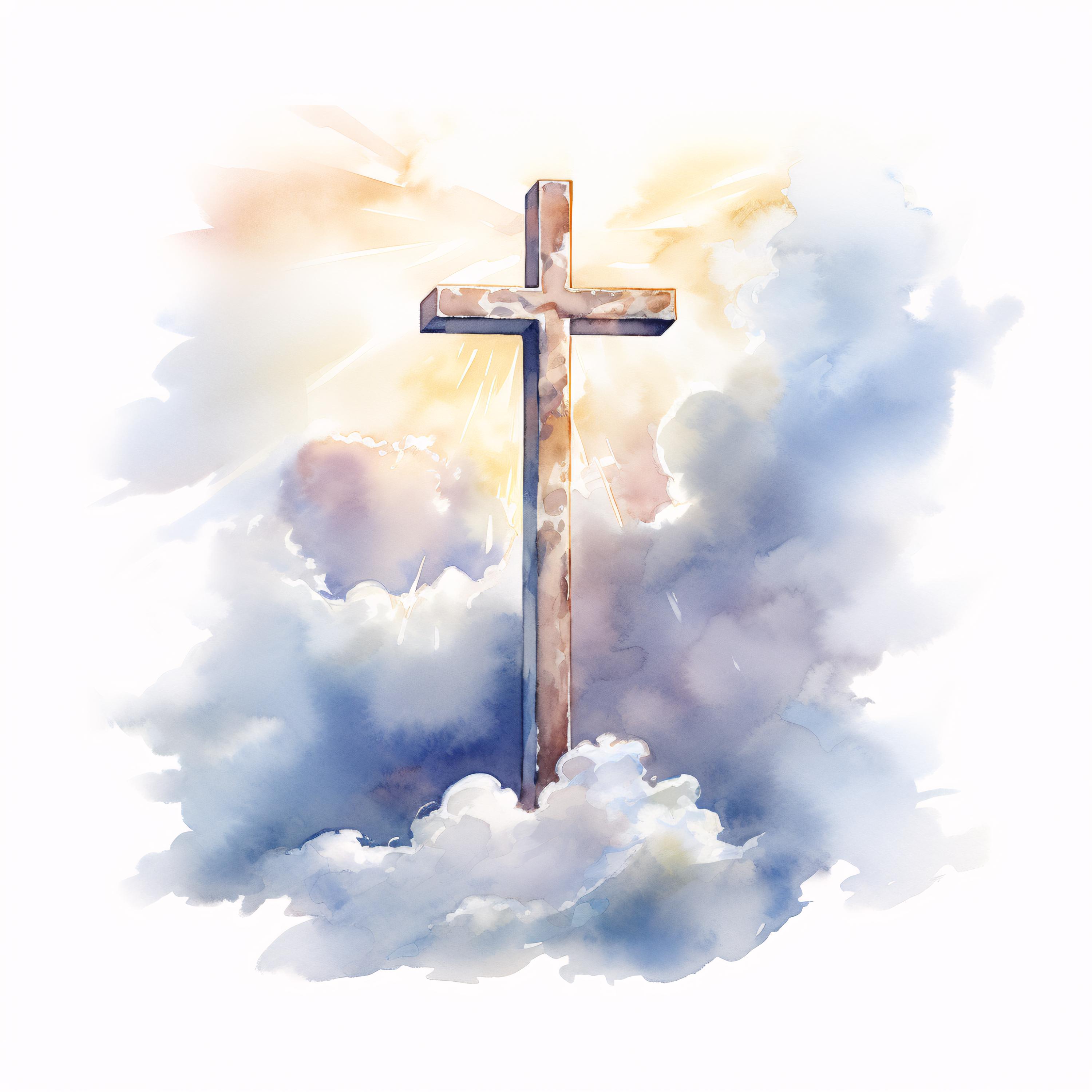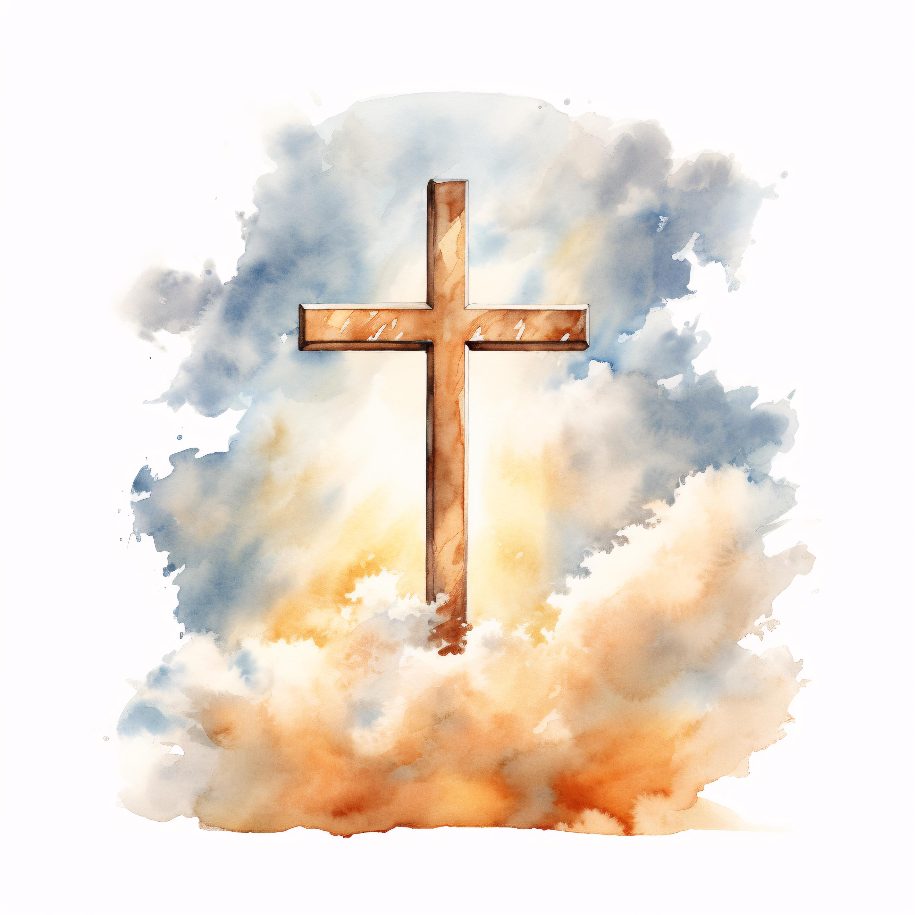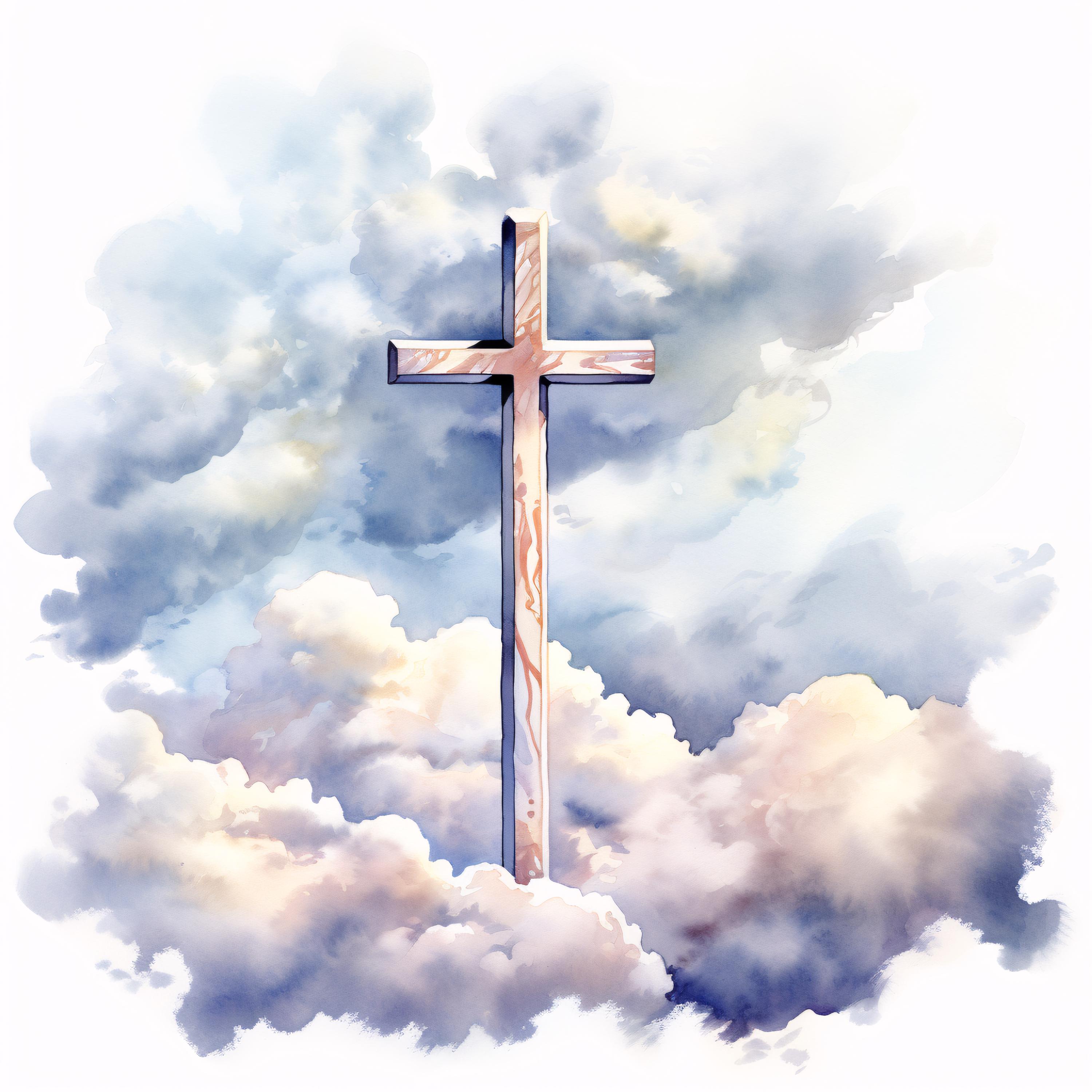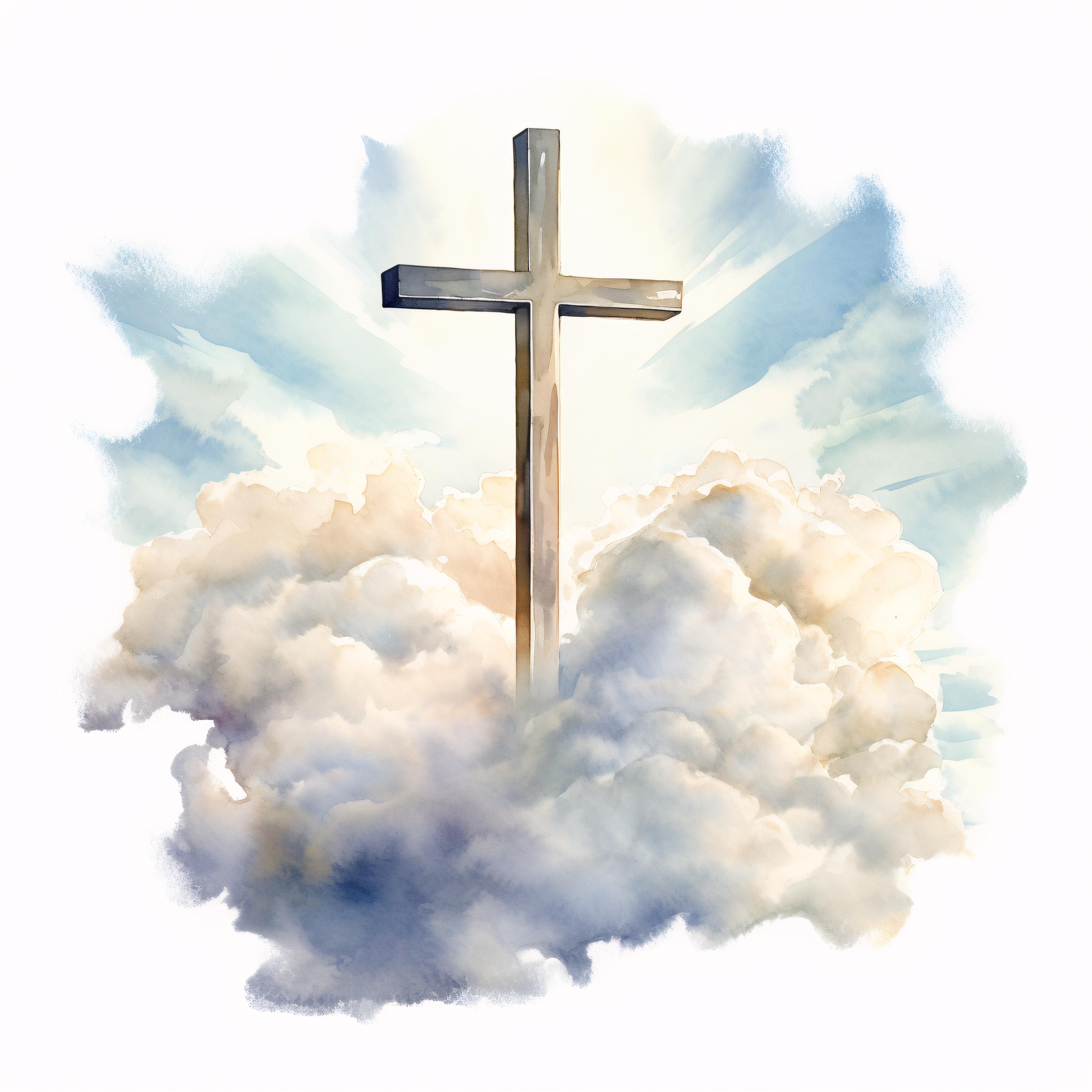 Christian Cross Clipart, Heaven Clouds Images, 10 Watercolor Clip Art, Printable JPGs, Instant Download, Commercial Use, Paper Craft