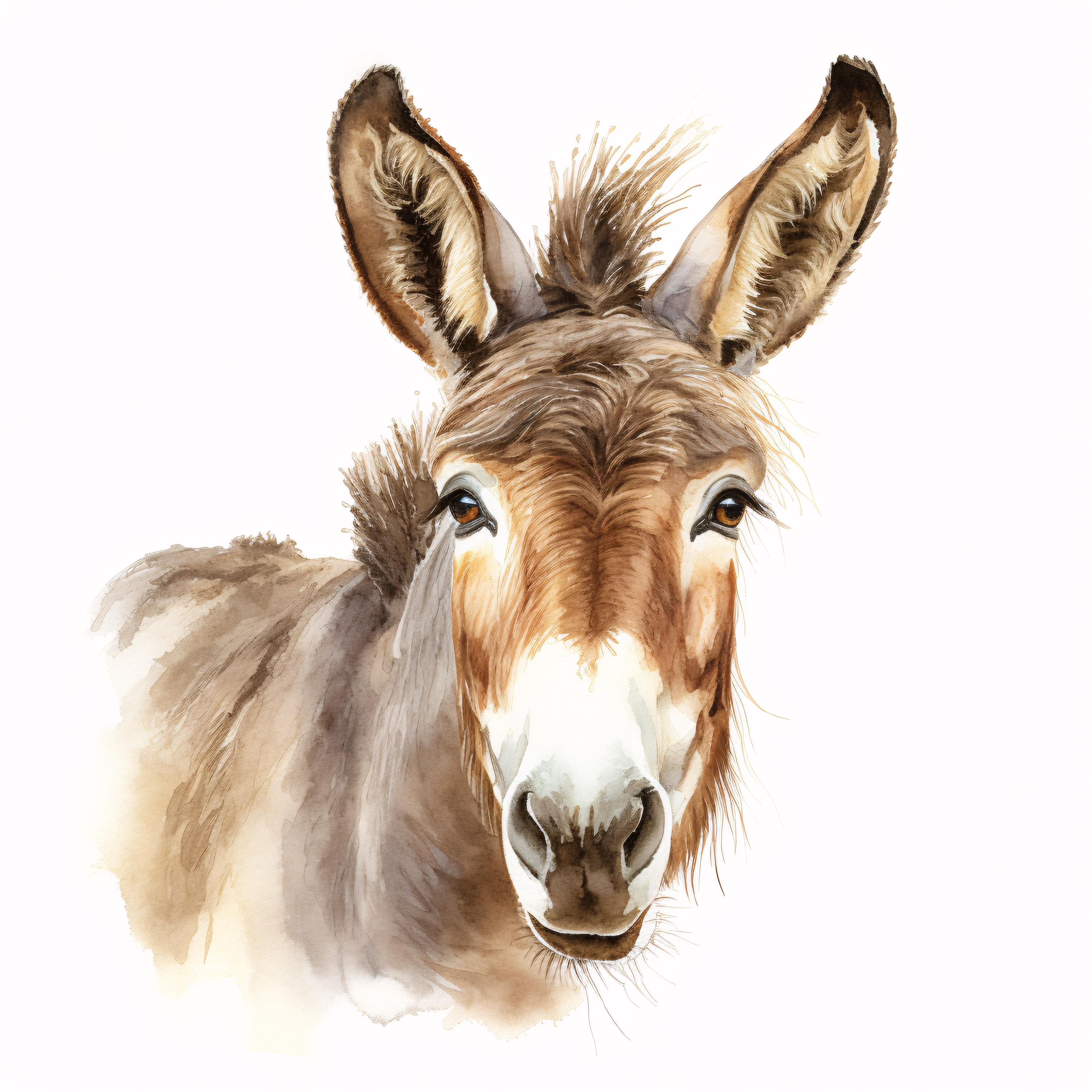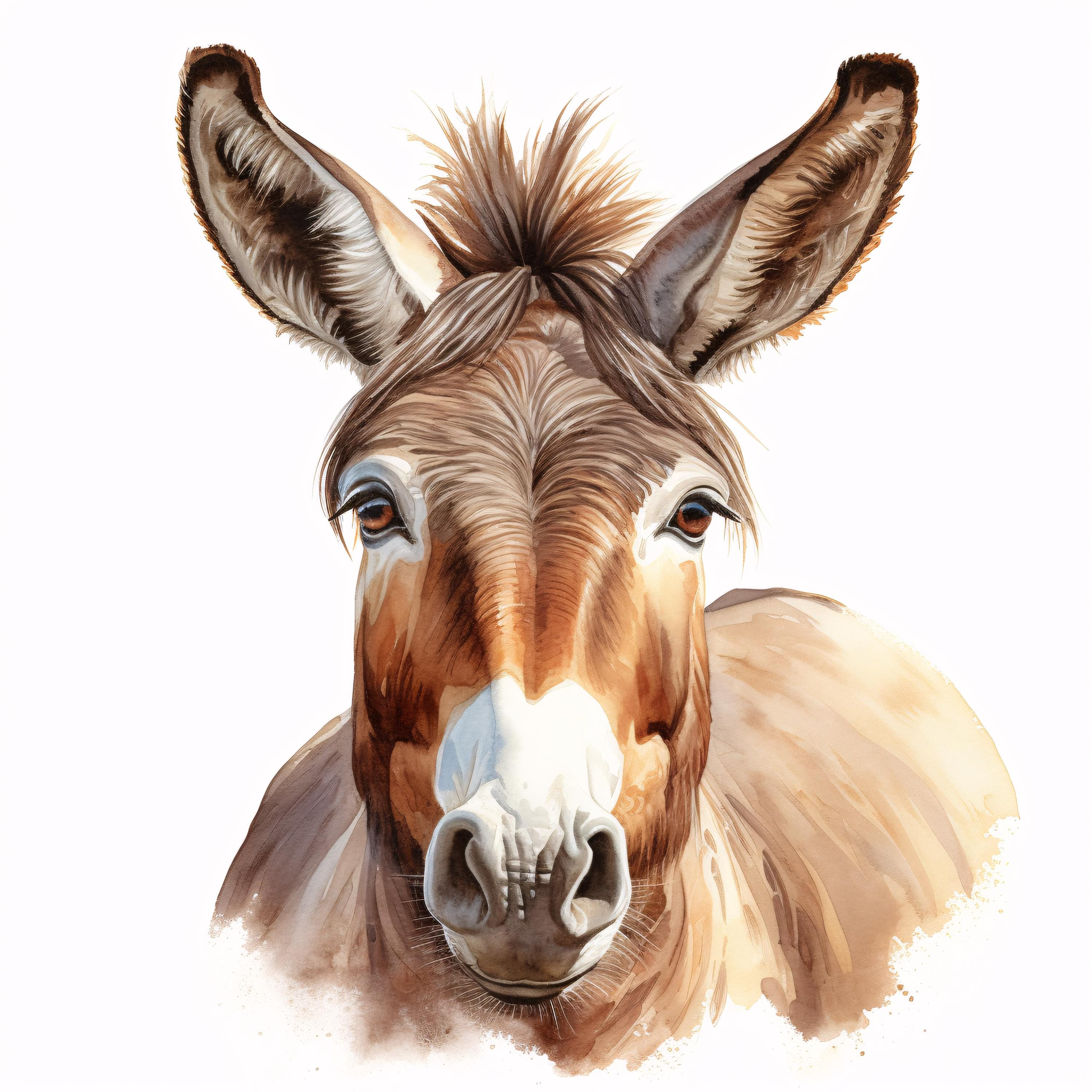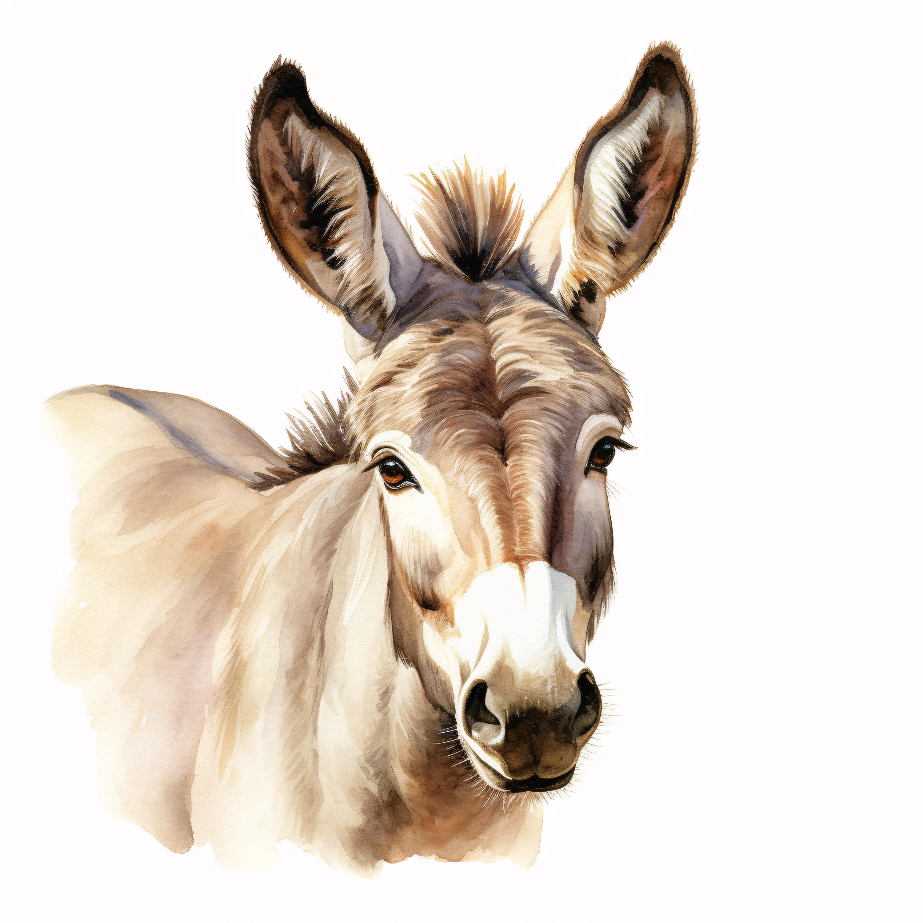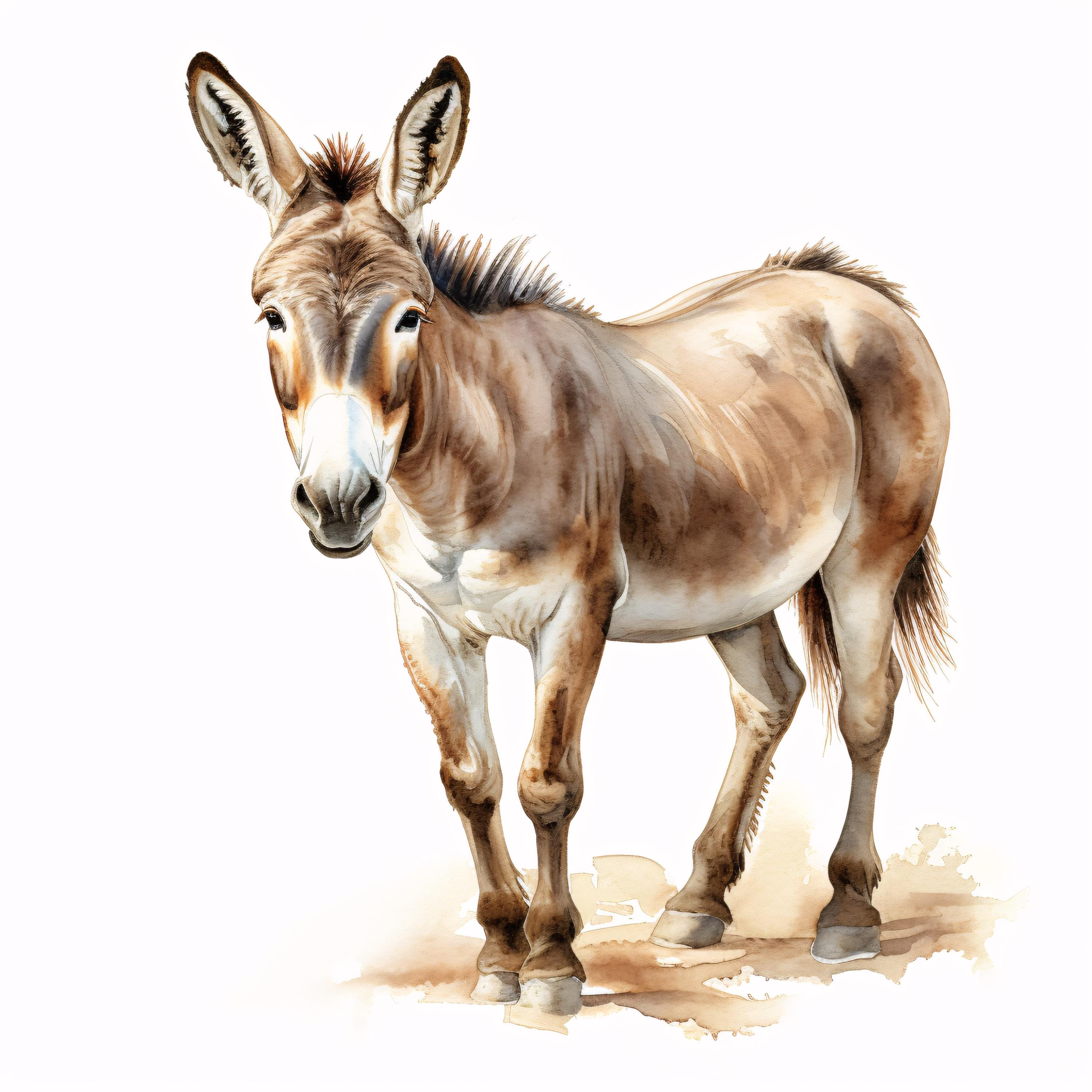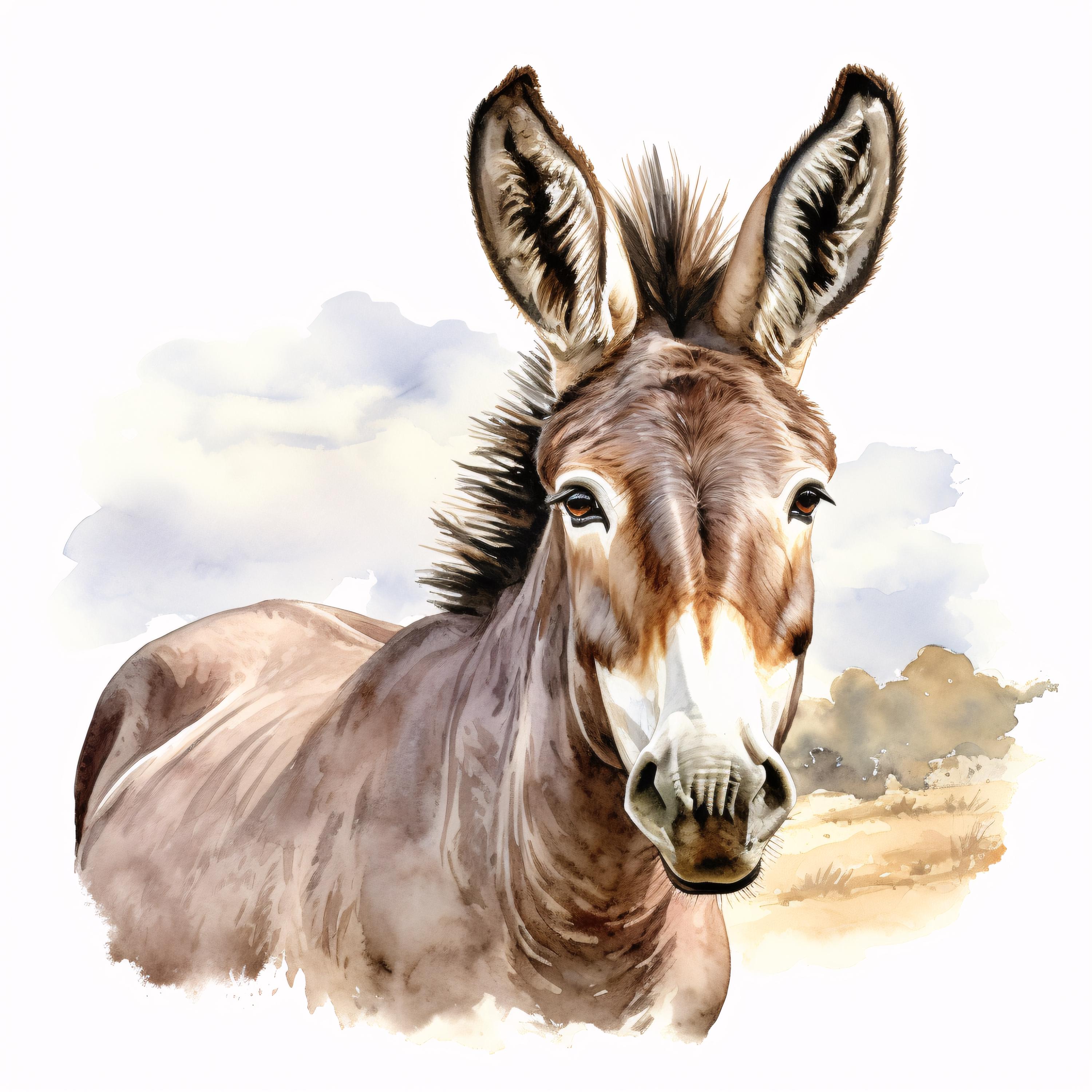 Donkey Clipart, Farm Animal Images, 10 Watercolor Clip Art, Printable JPGs, Instant Download, Commercial Use, Paper Craft