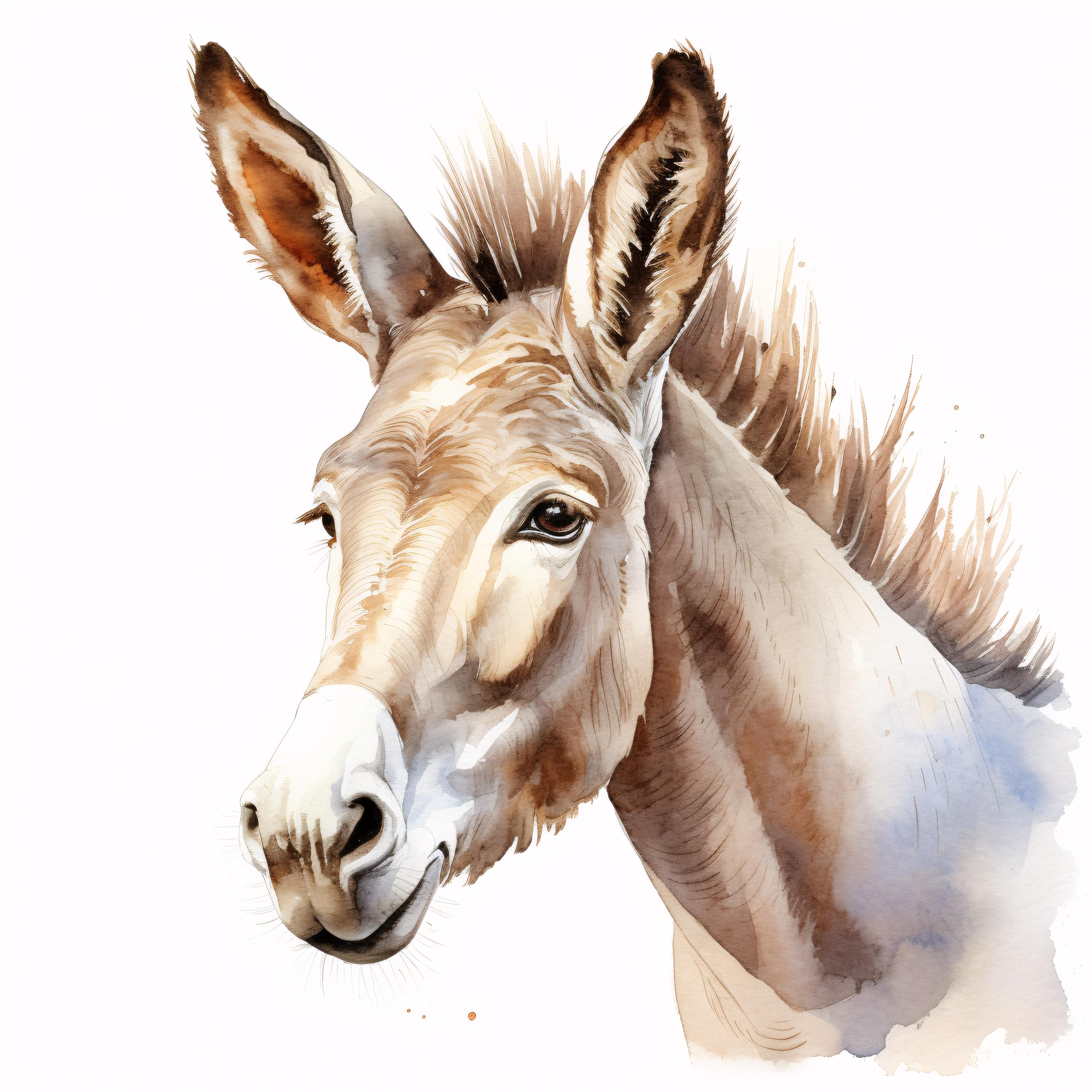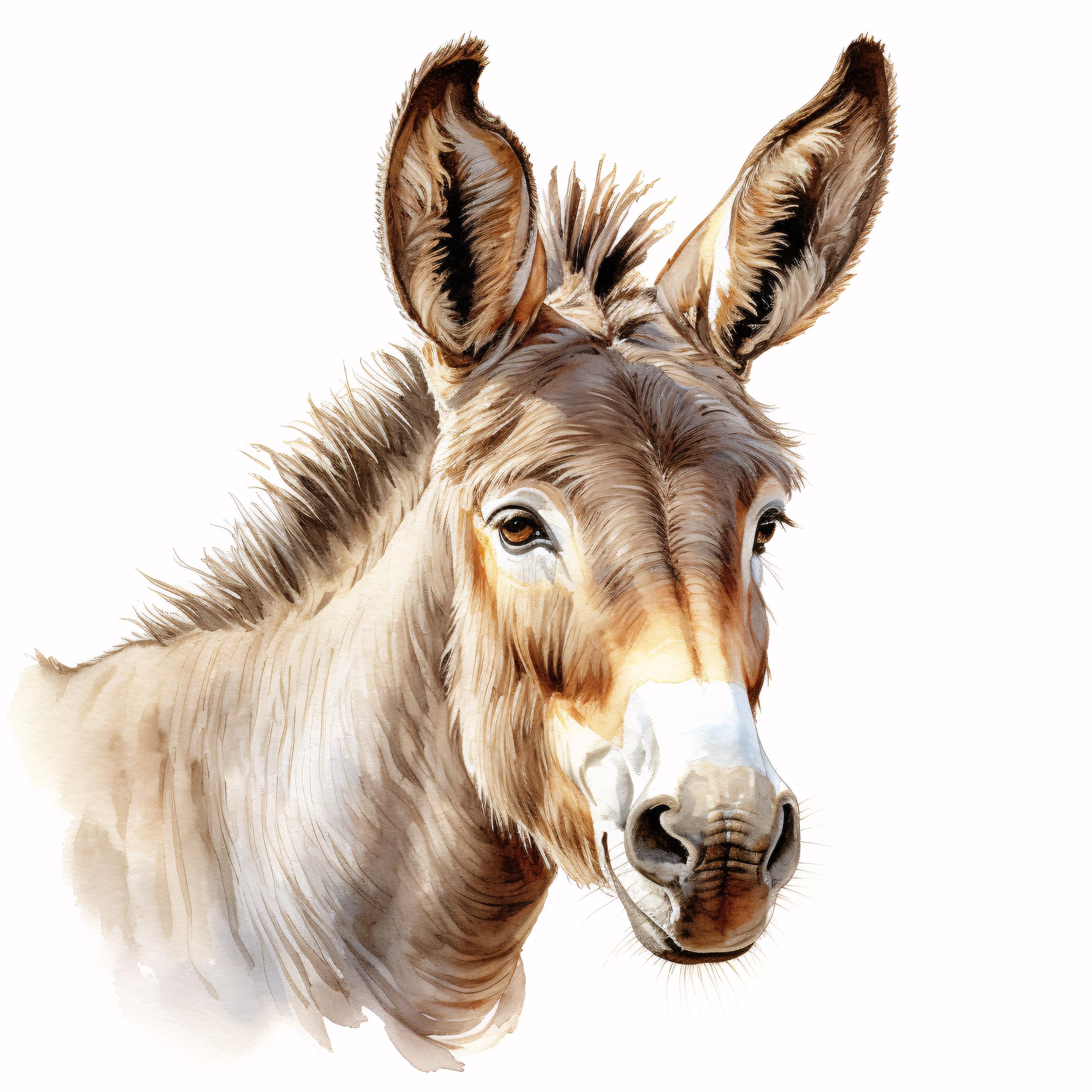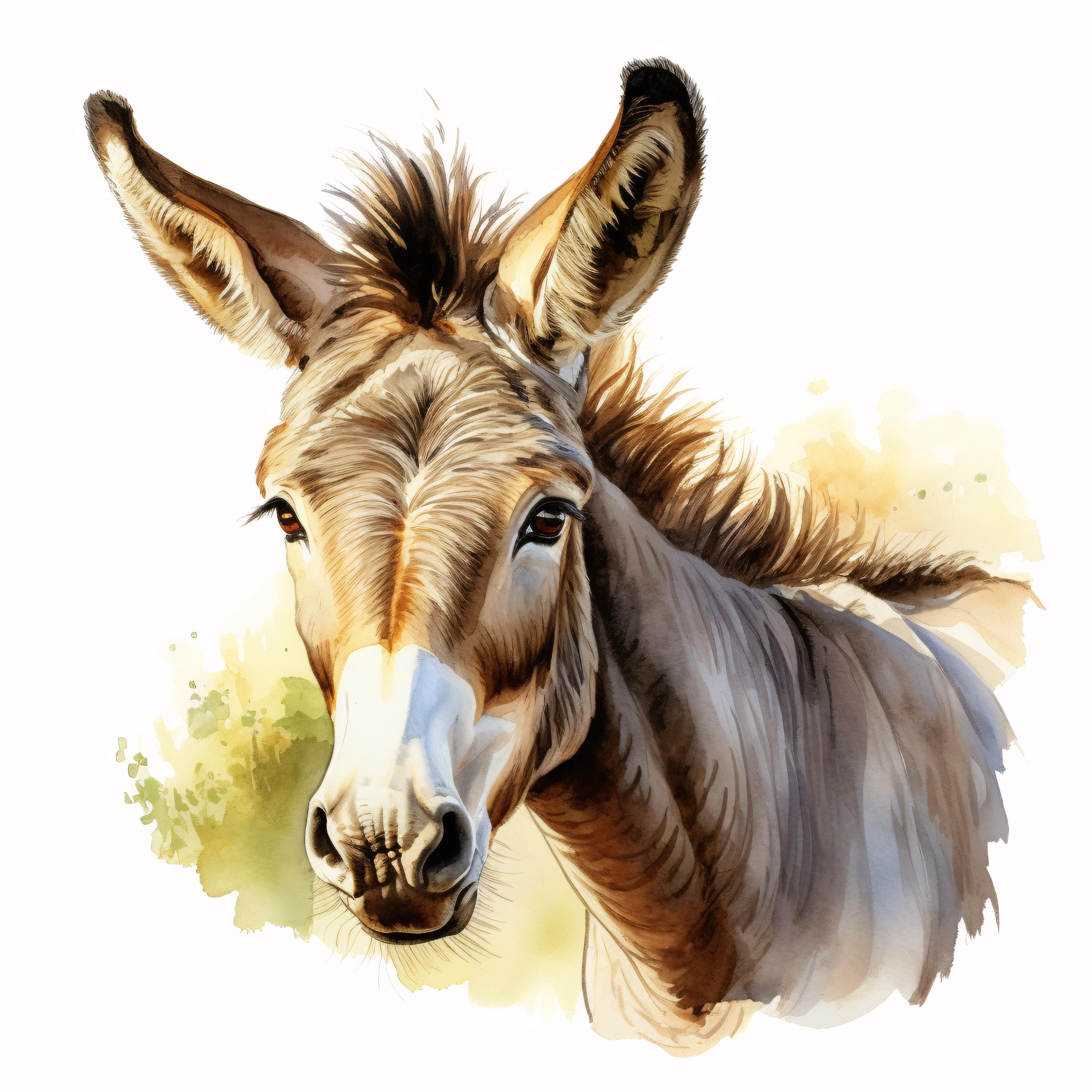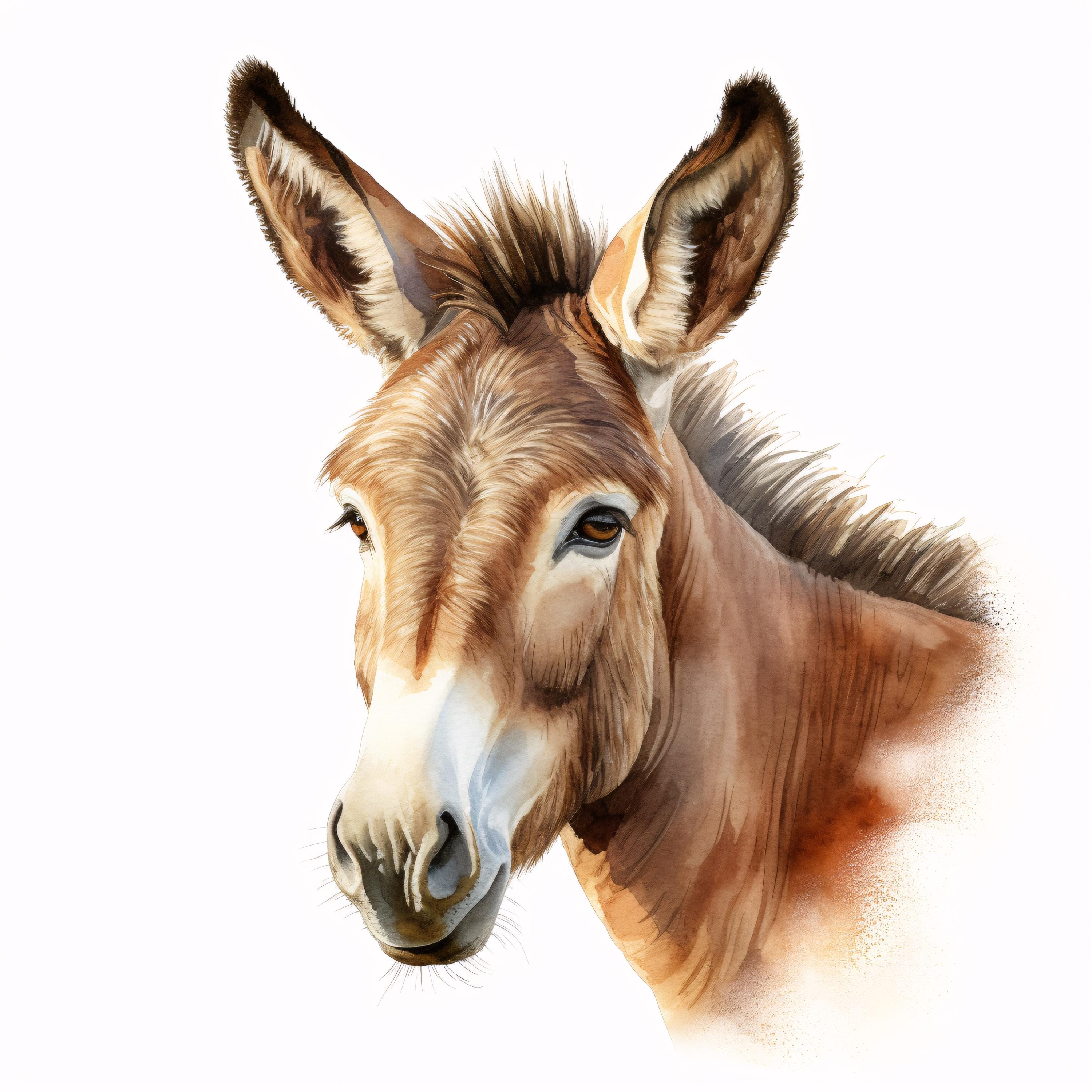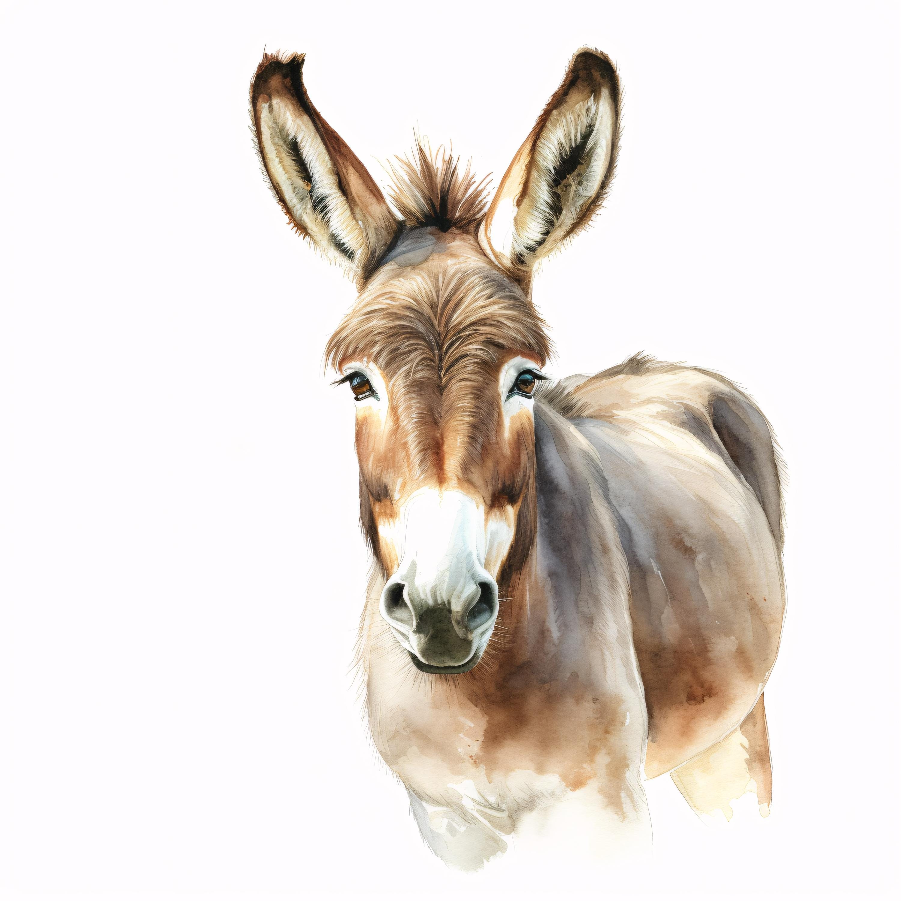 Donkey Clipart, Farm Animal Images, 10 Watercolor Clip Art, Printable JPGs, Instant Download, Commercial Use, Paper Craft