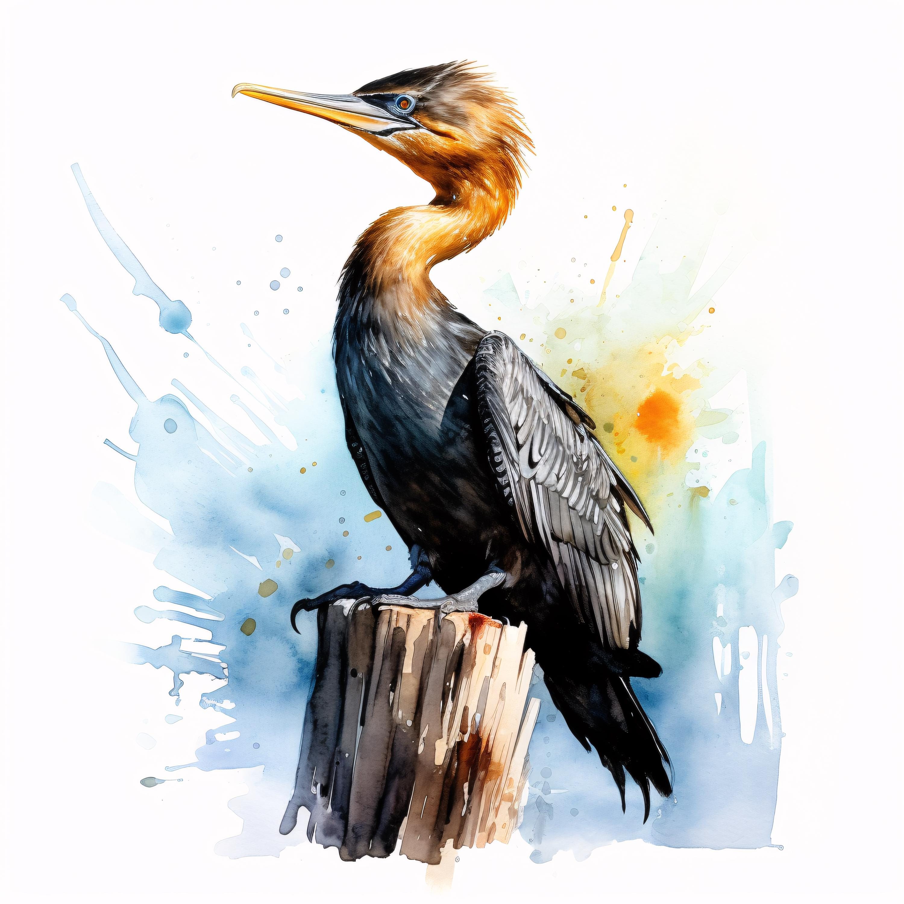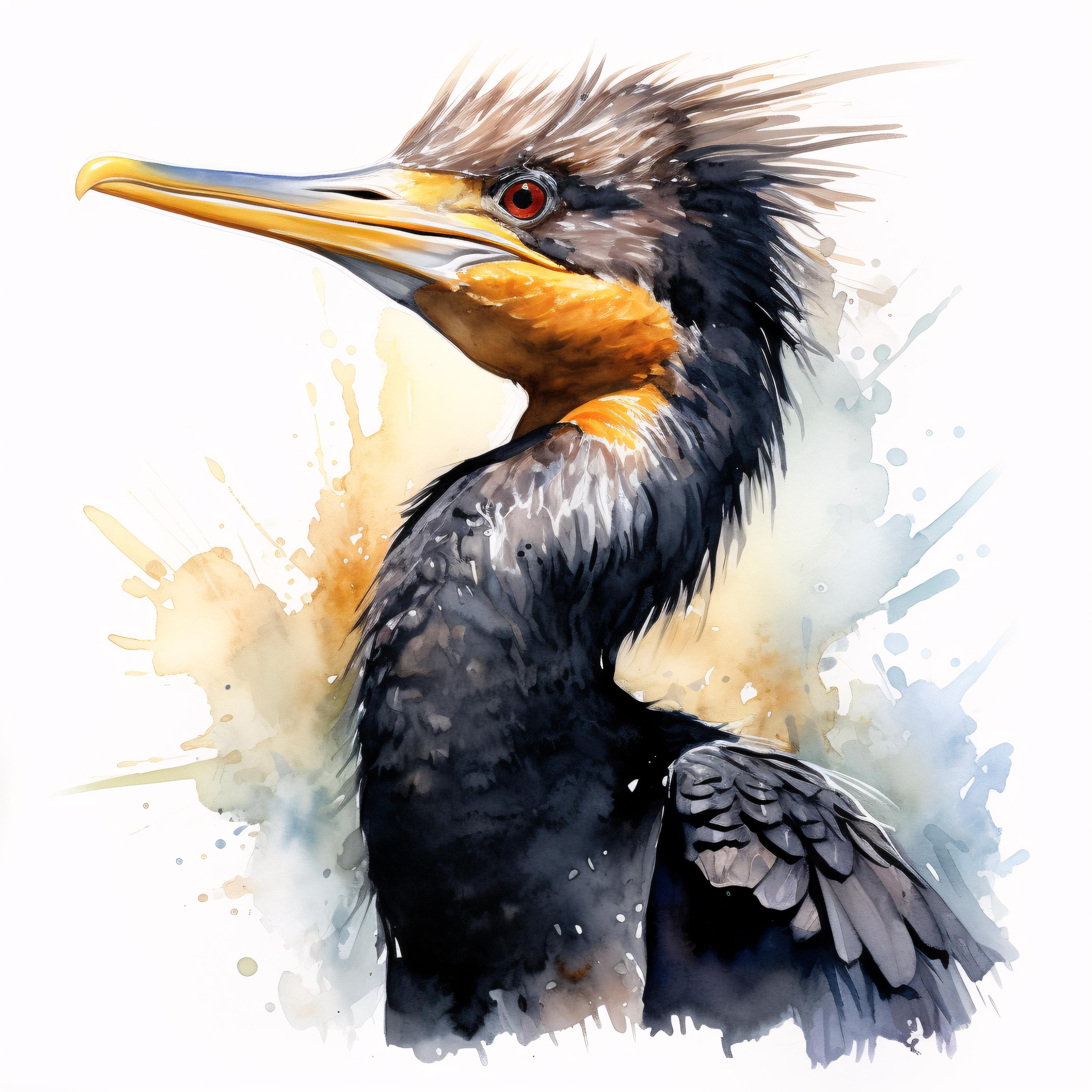 Cormorant Bird Clipart, Waterbird Images, 10 Watercolor Clip Art, Printable JPGs, Instant Download, Commercial Use, Paper Craft
