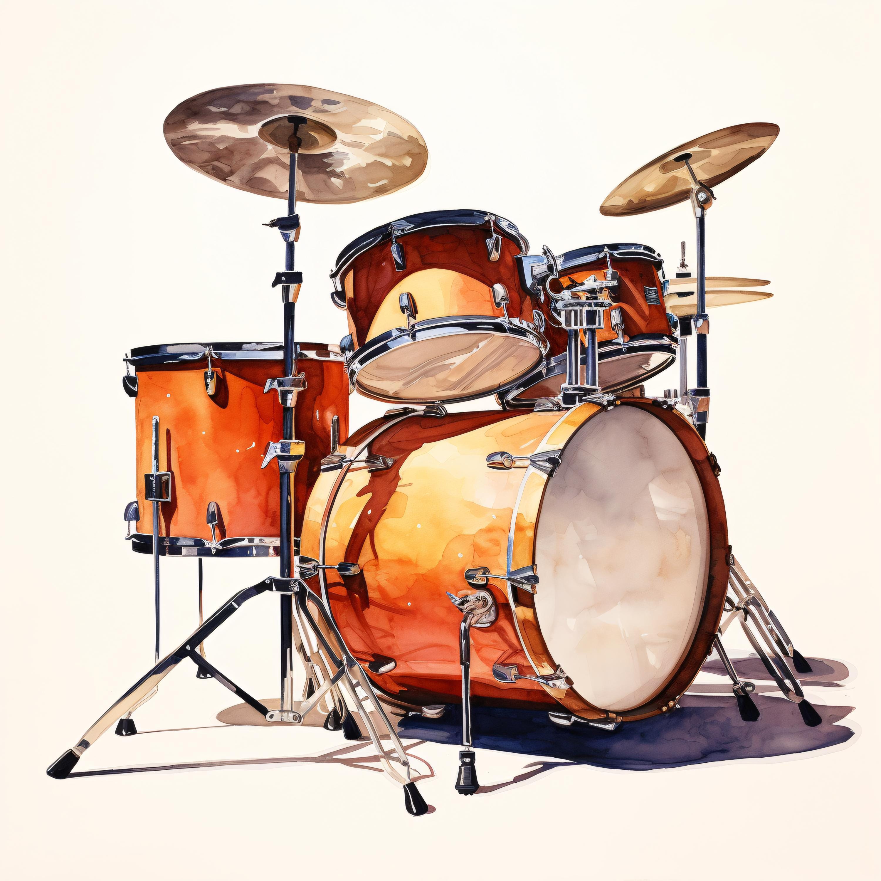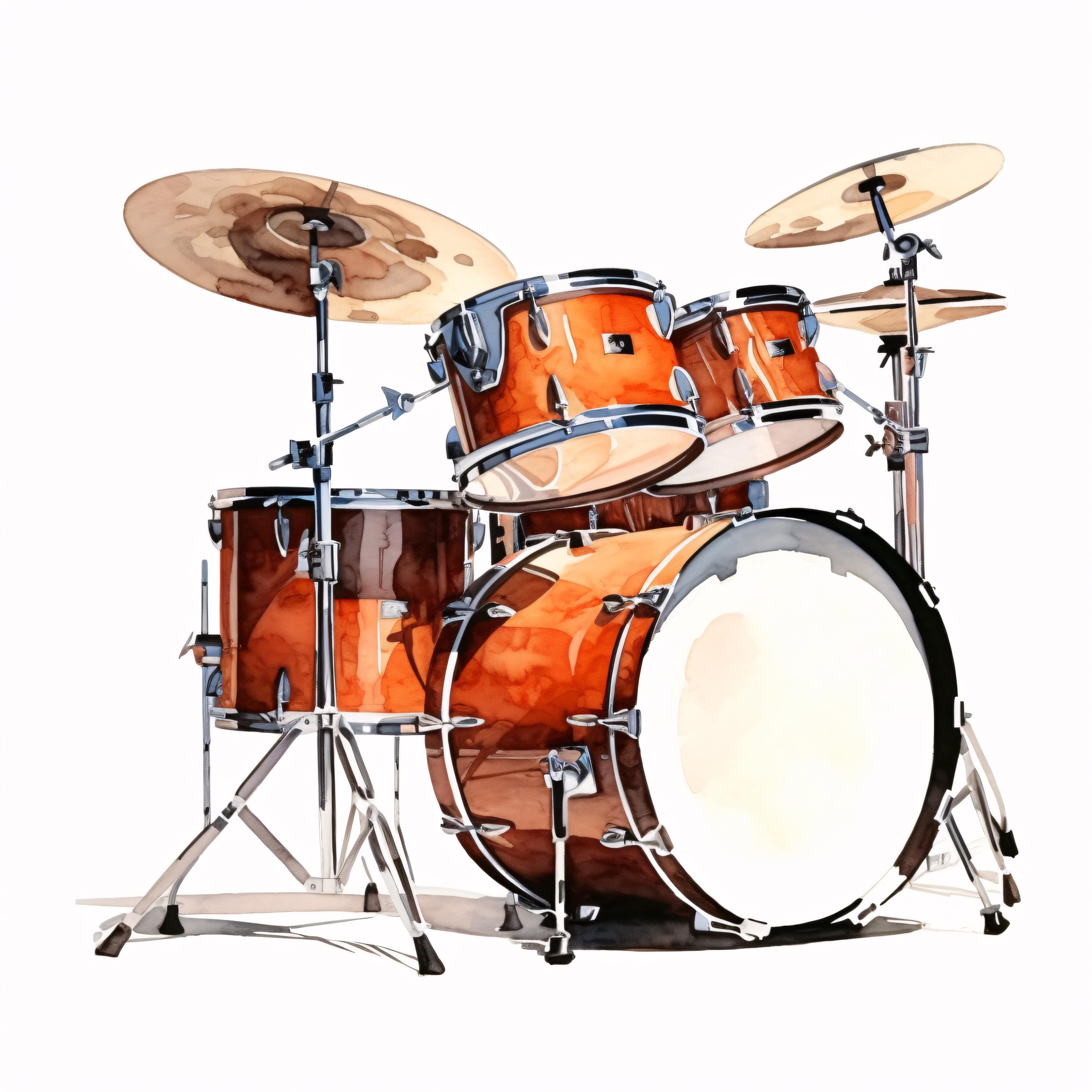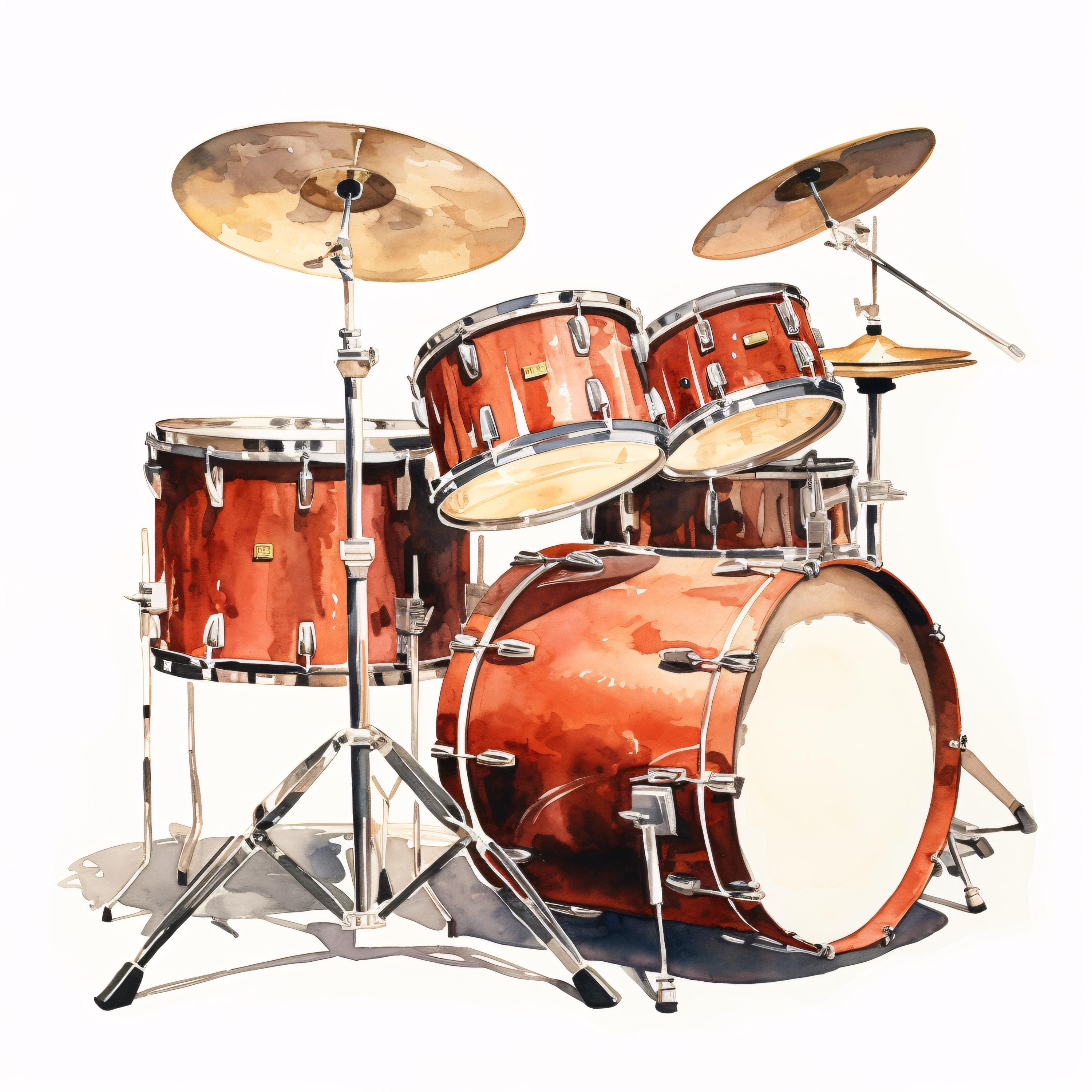 Drum Set Clipart, Music Instrument Images, 10 Watercolor Clip Art, Printable JPGs, Instant Download, Commercial Use, Paper Craft