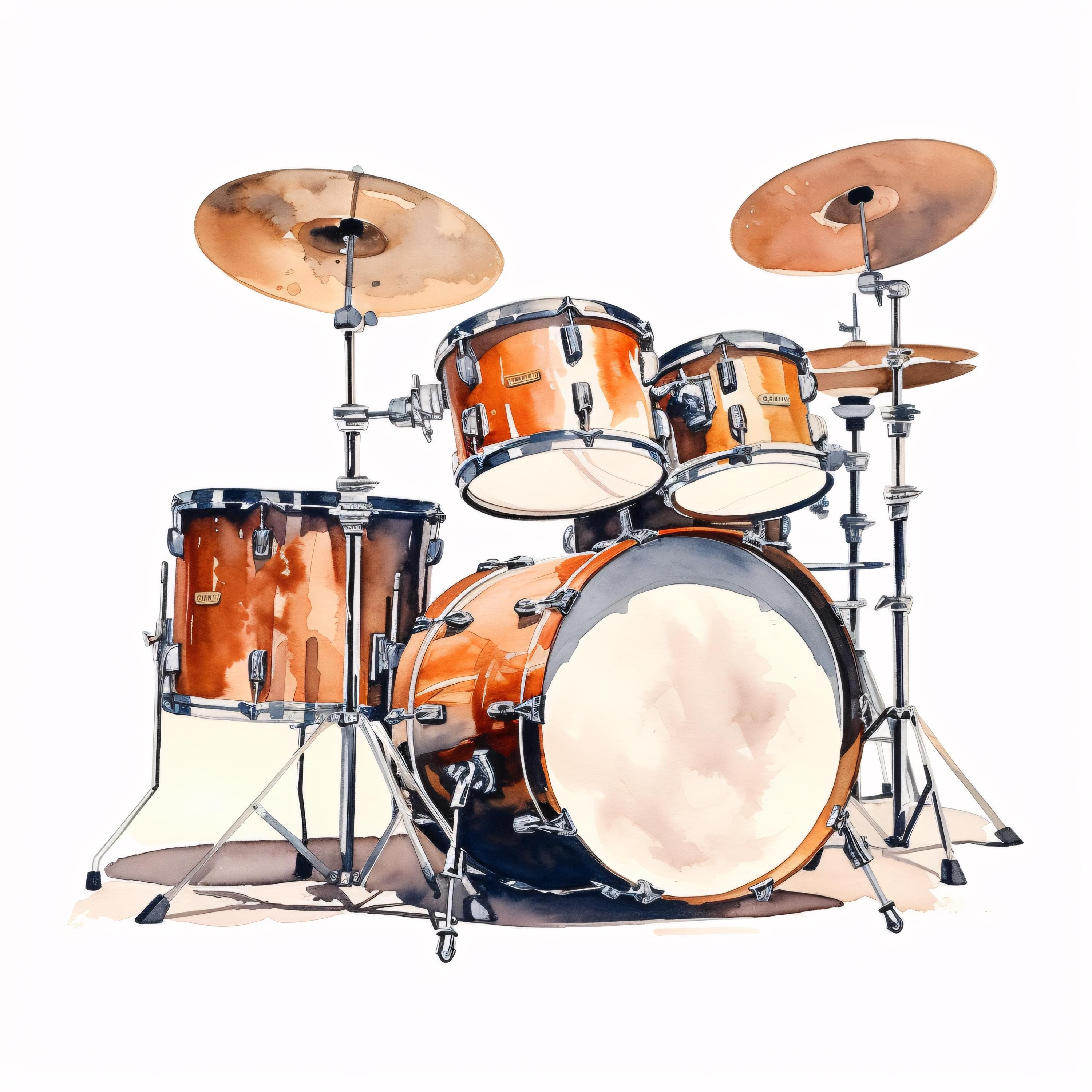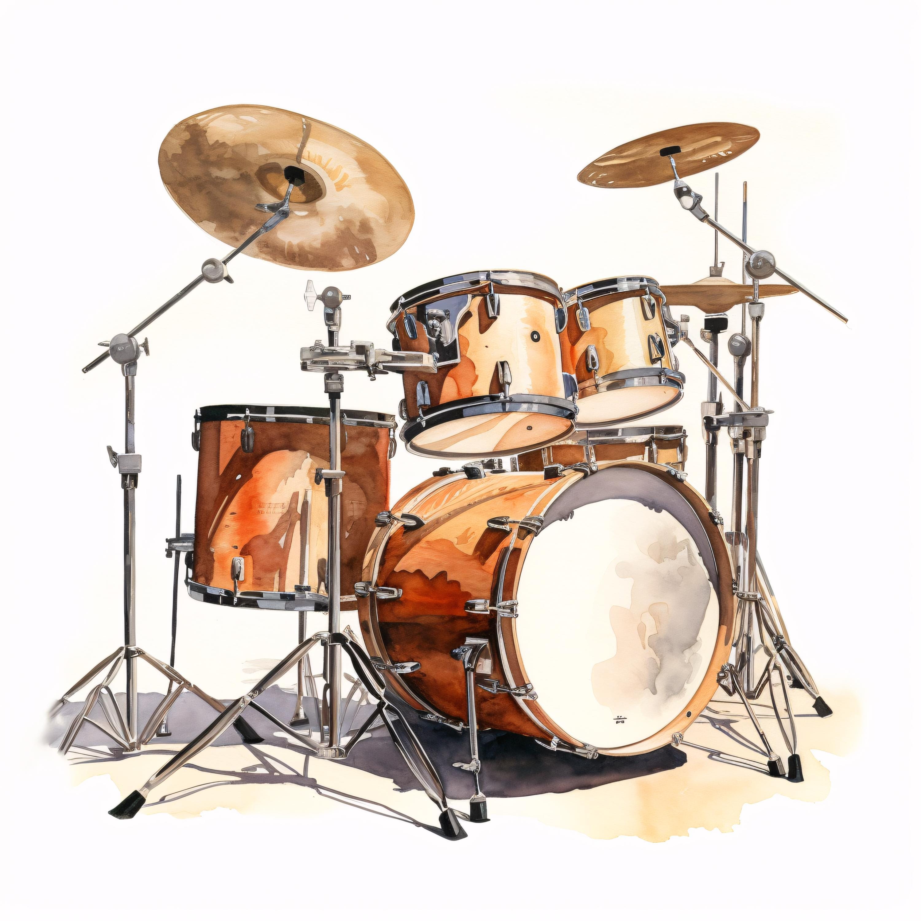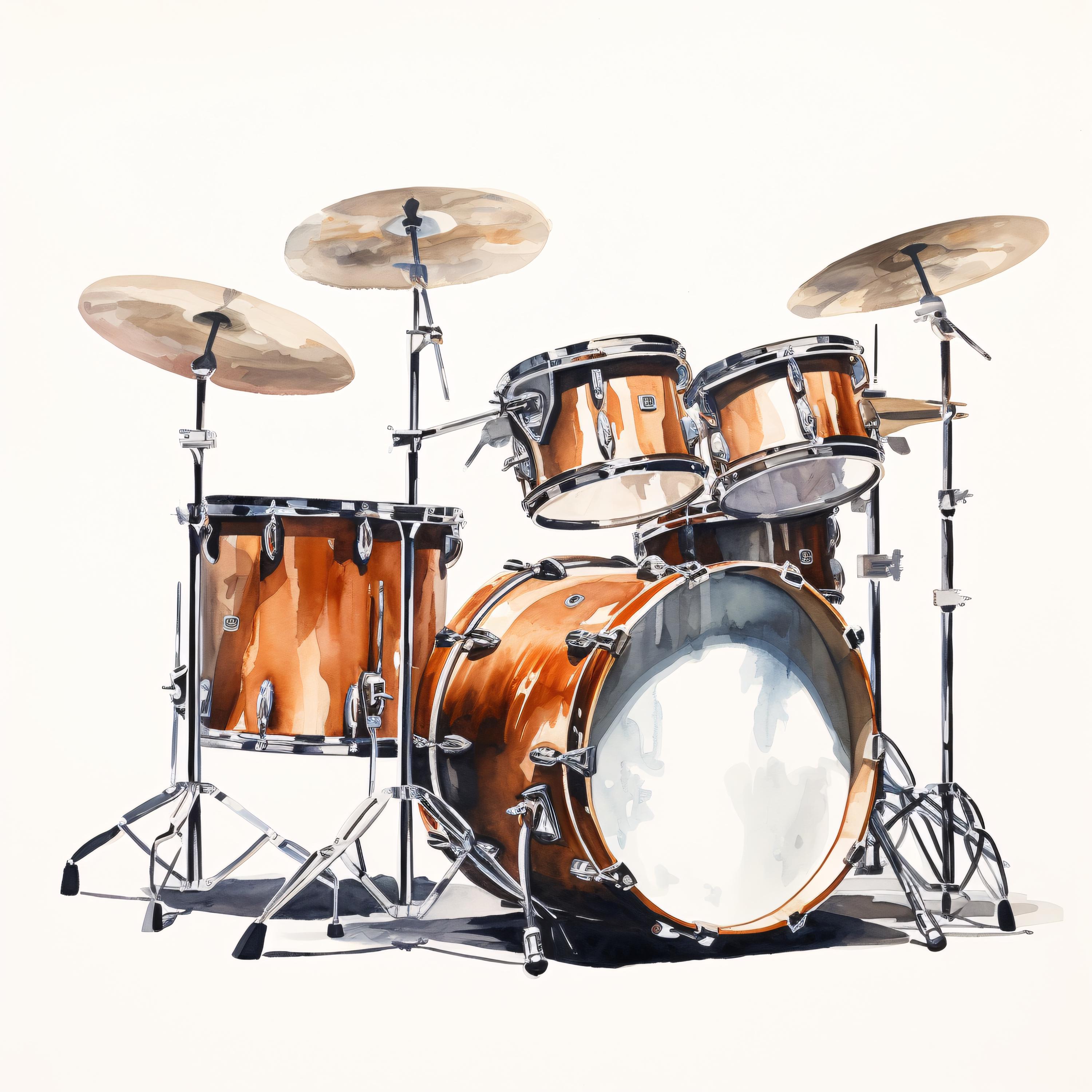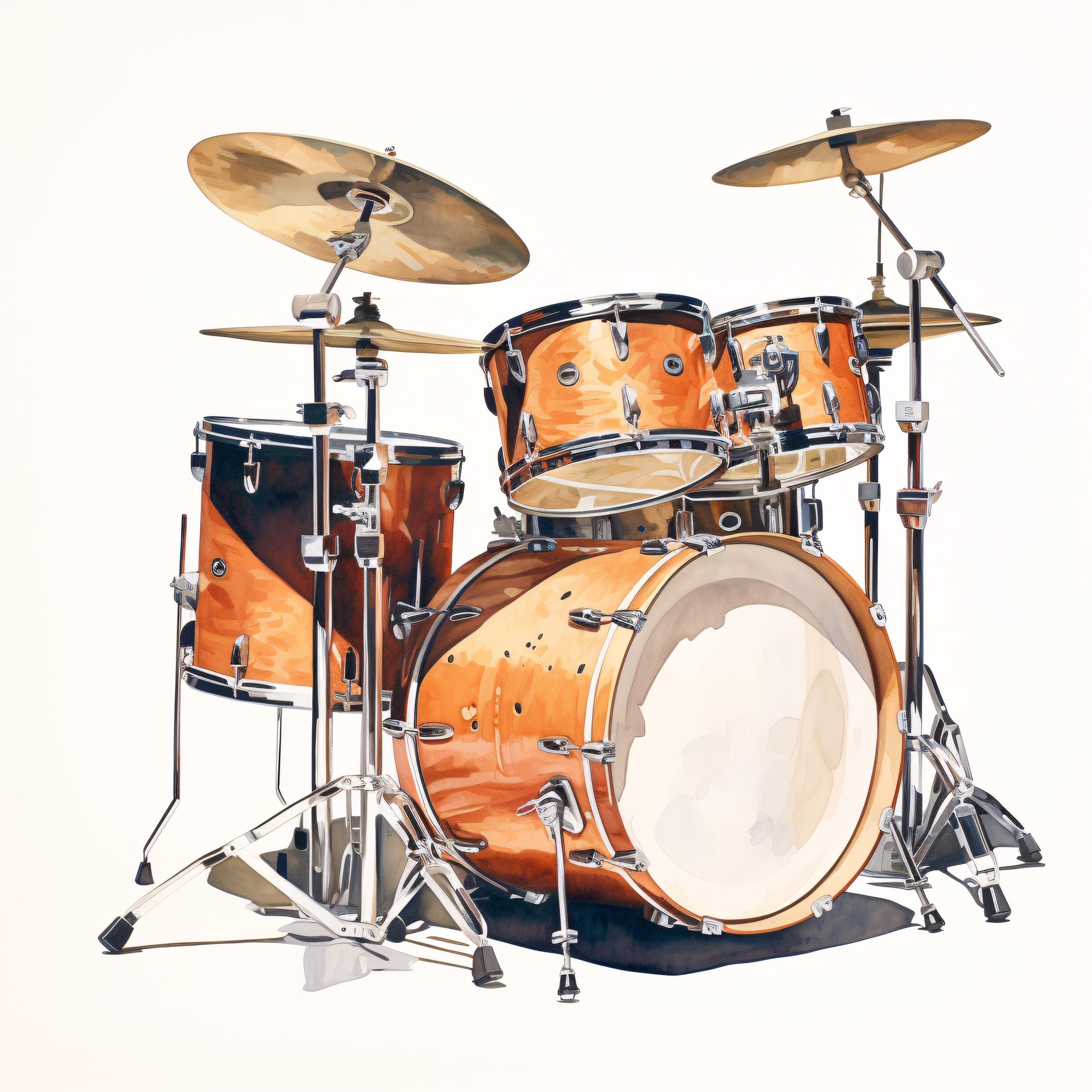 Drum Set Clipart, Music Instrument Images, 10 Watercolor Clip Art, Printable JPGs, Instant Download, Commercial Use, Paper Craft
