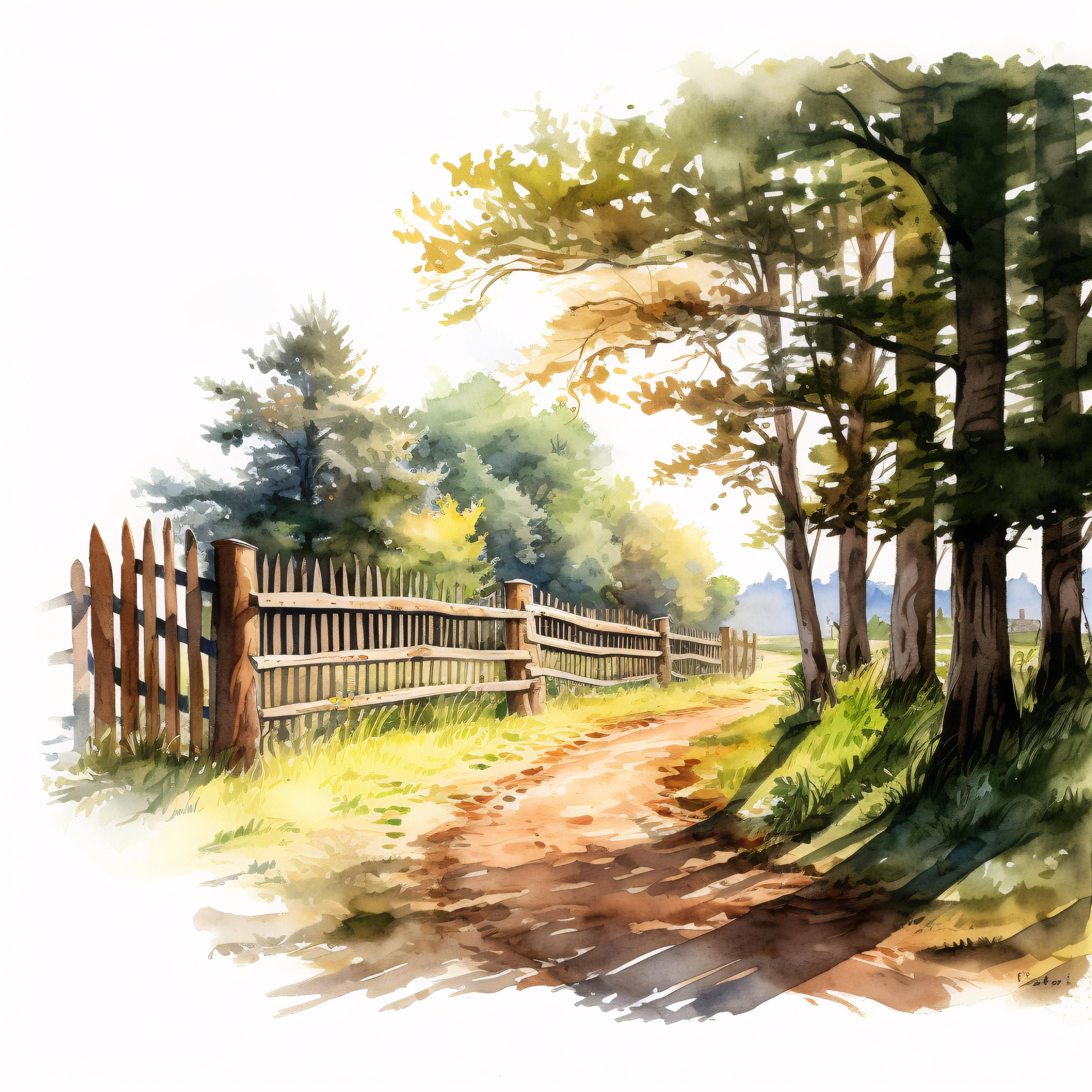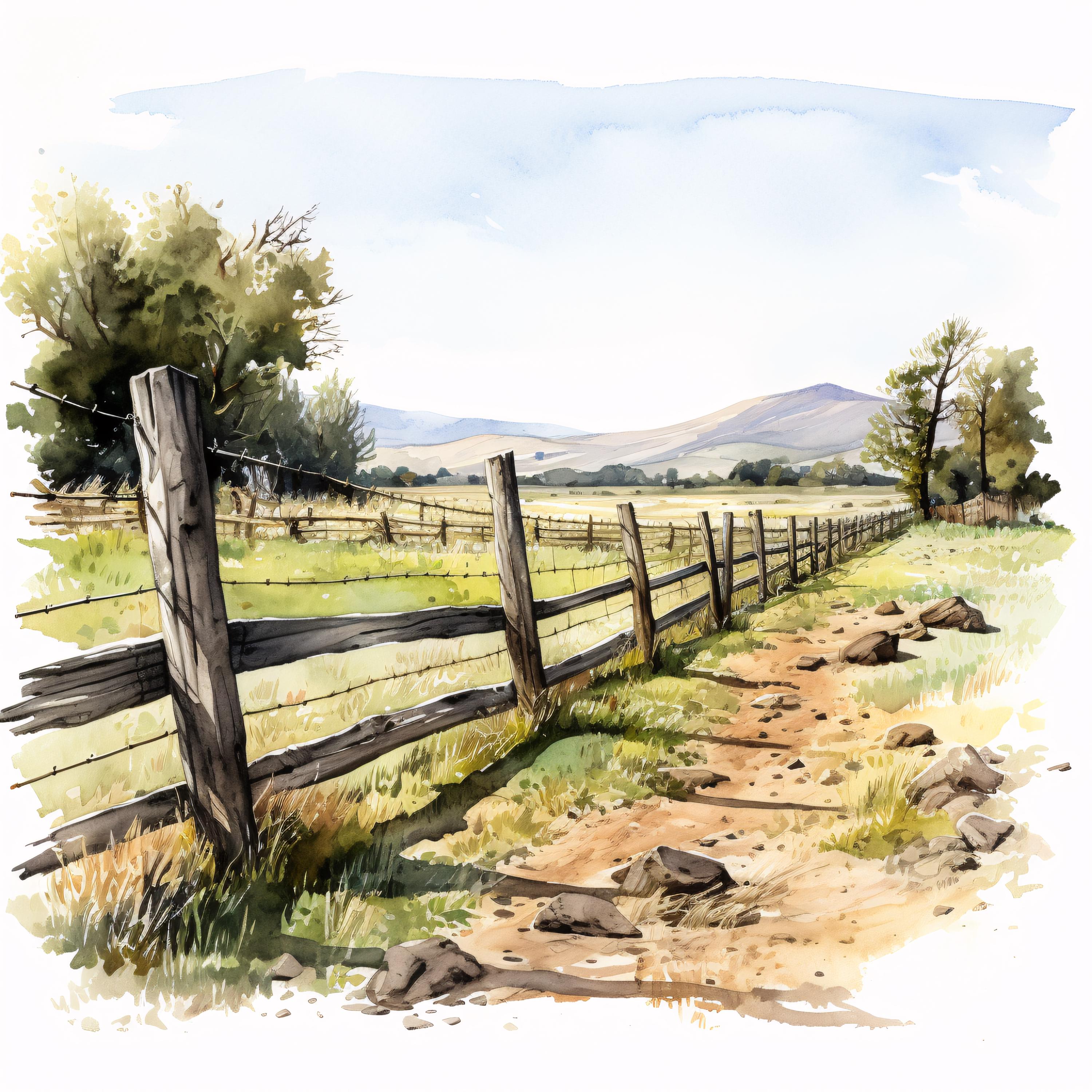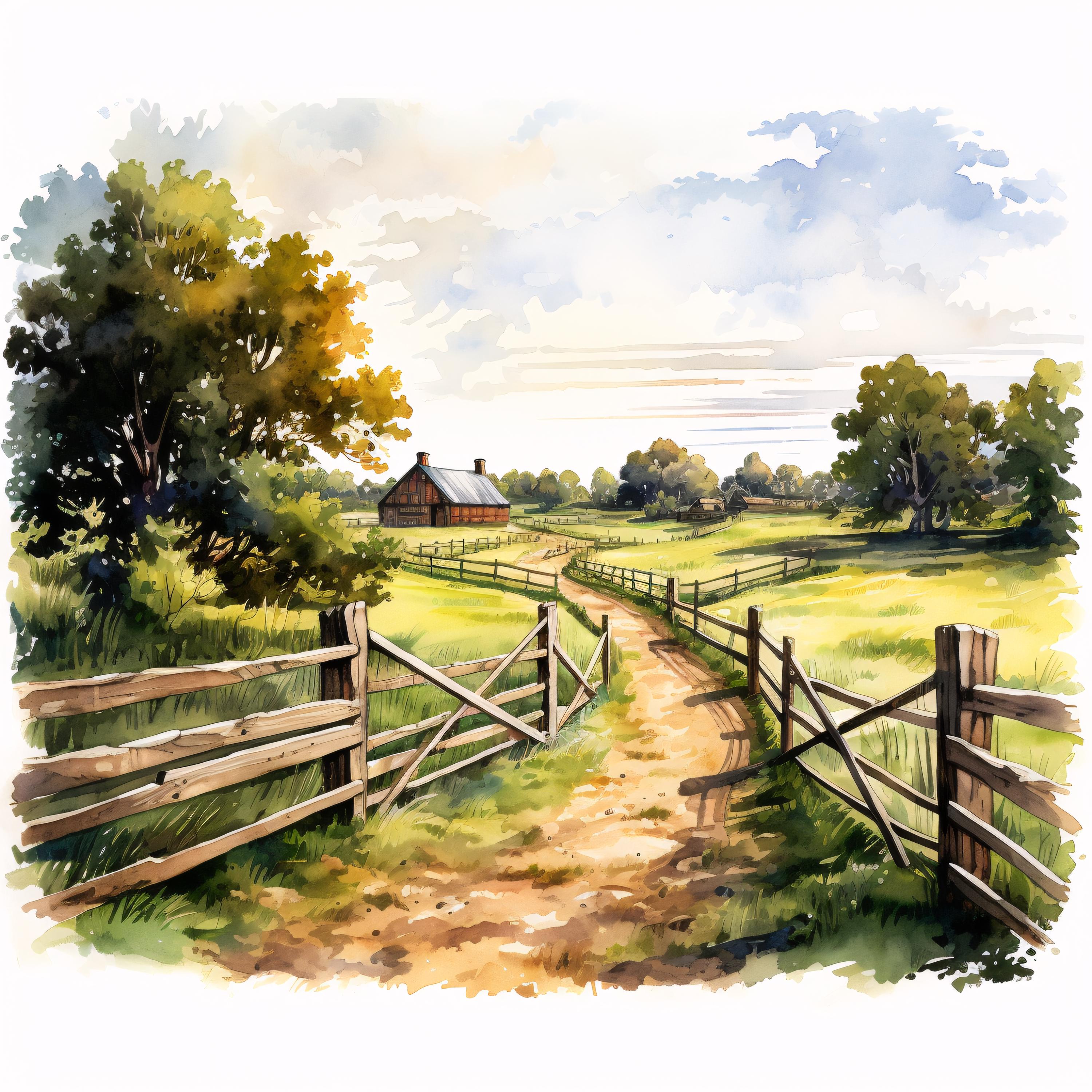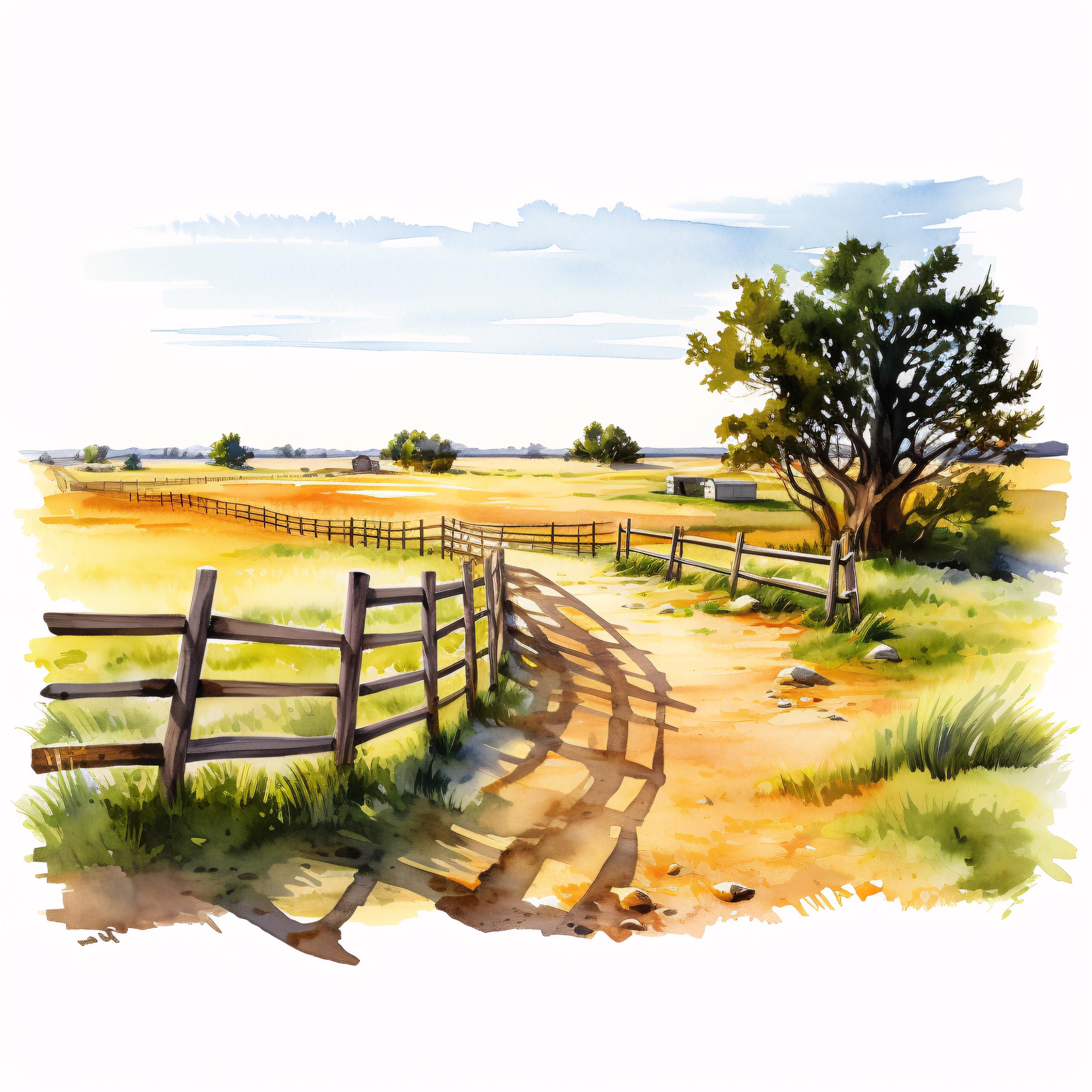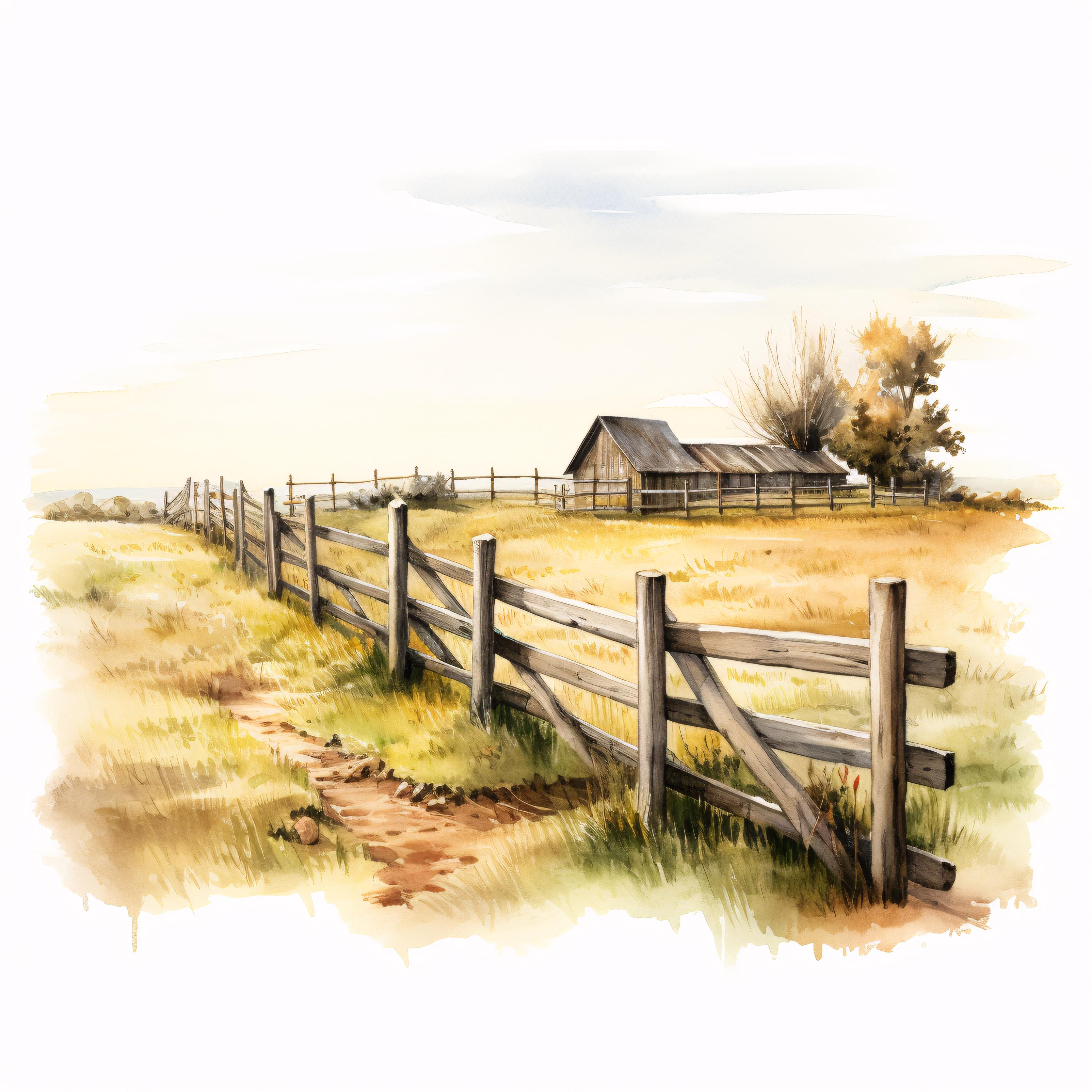 Farm Fence Clipart, Countryside Field Images, 10 Watercolor Clip Art, Printable JPGs, Instant Download, Commercial Use, Paper Craft