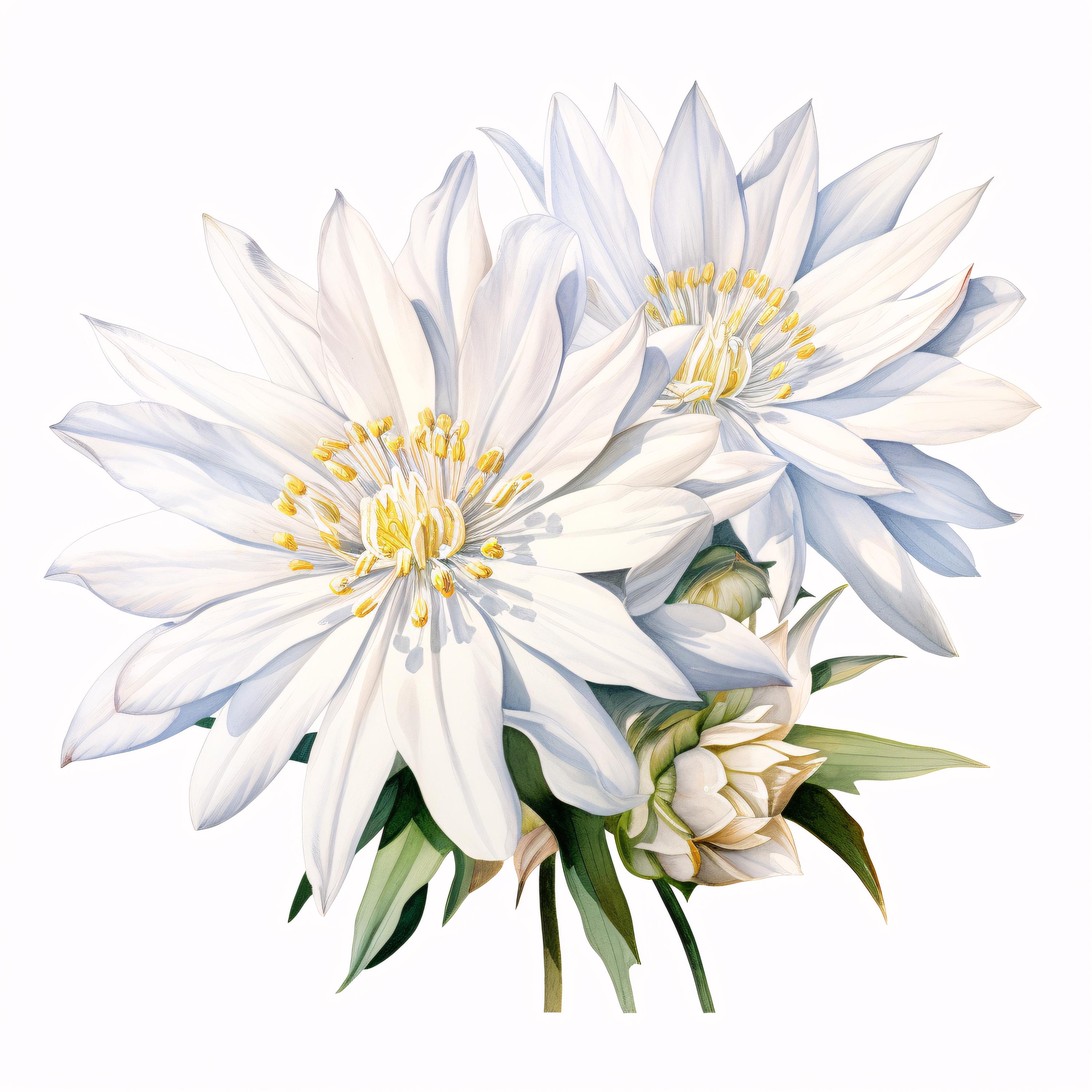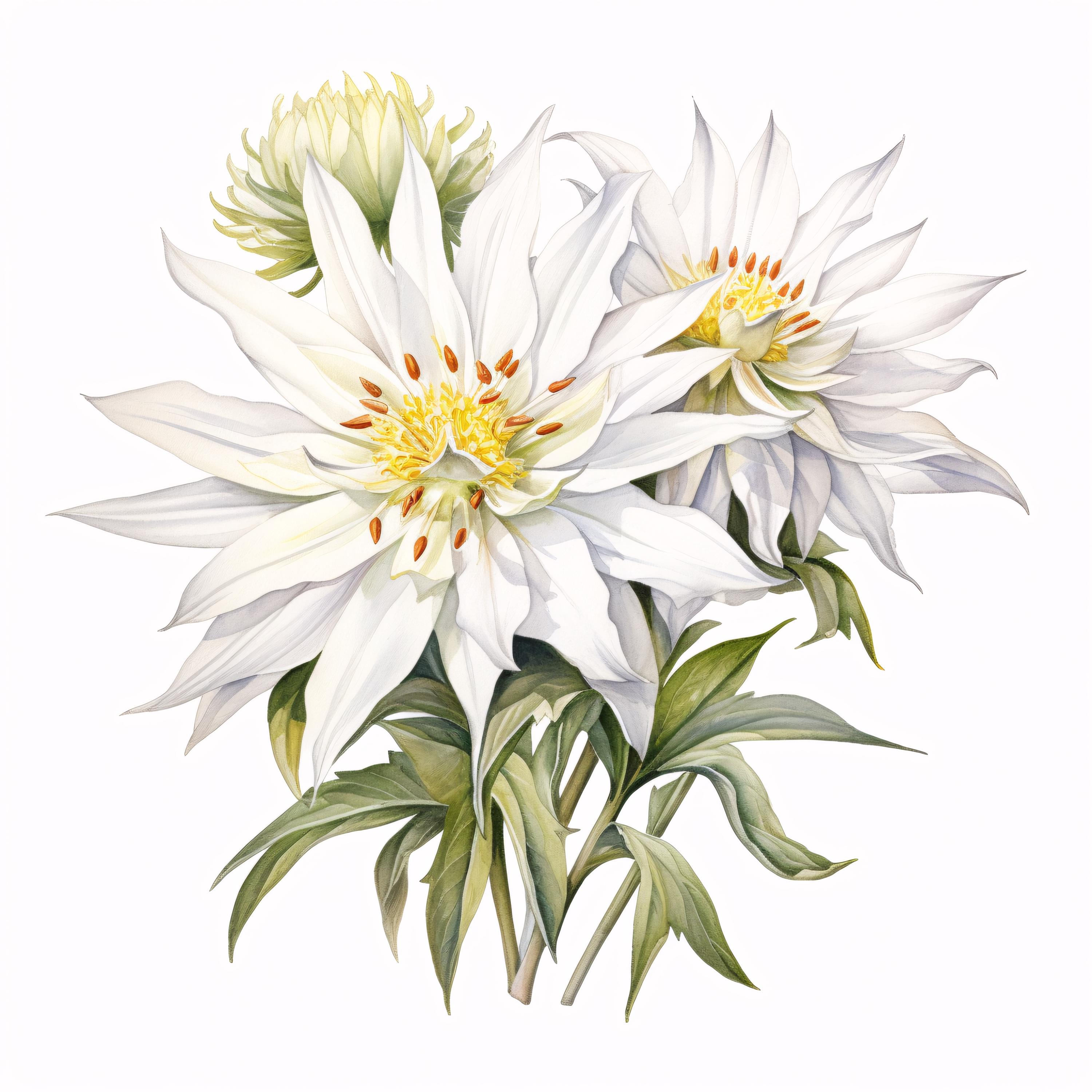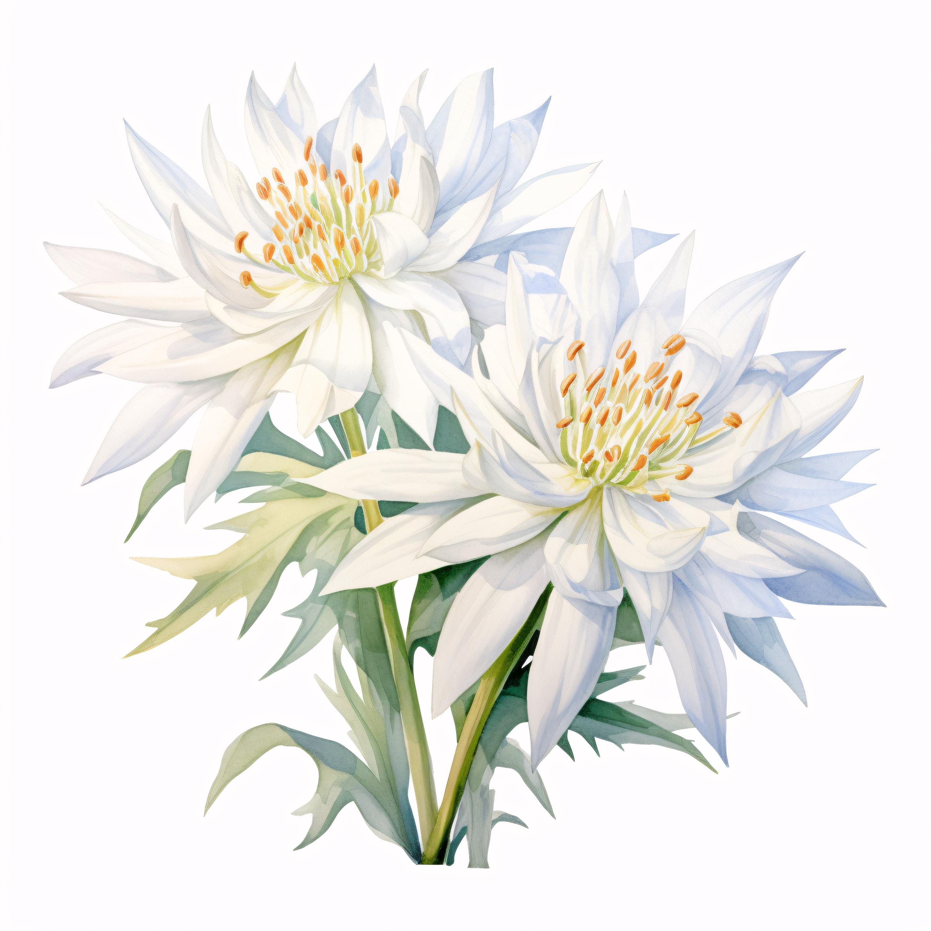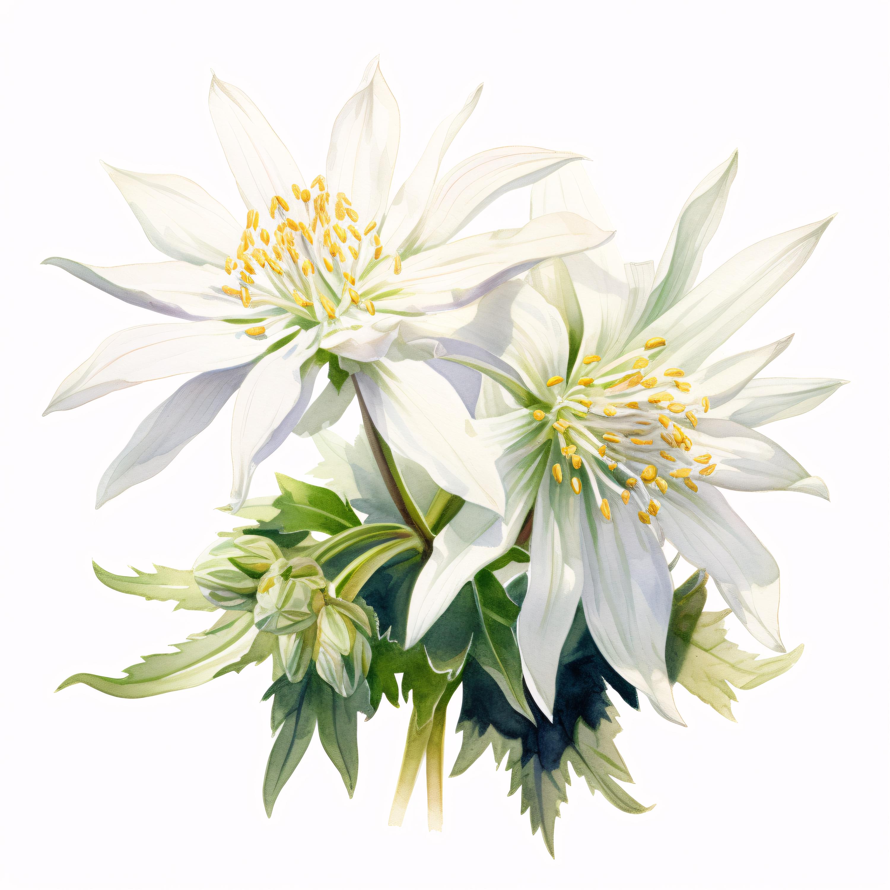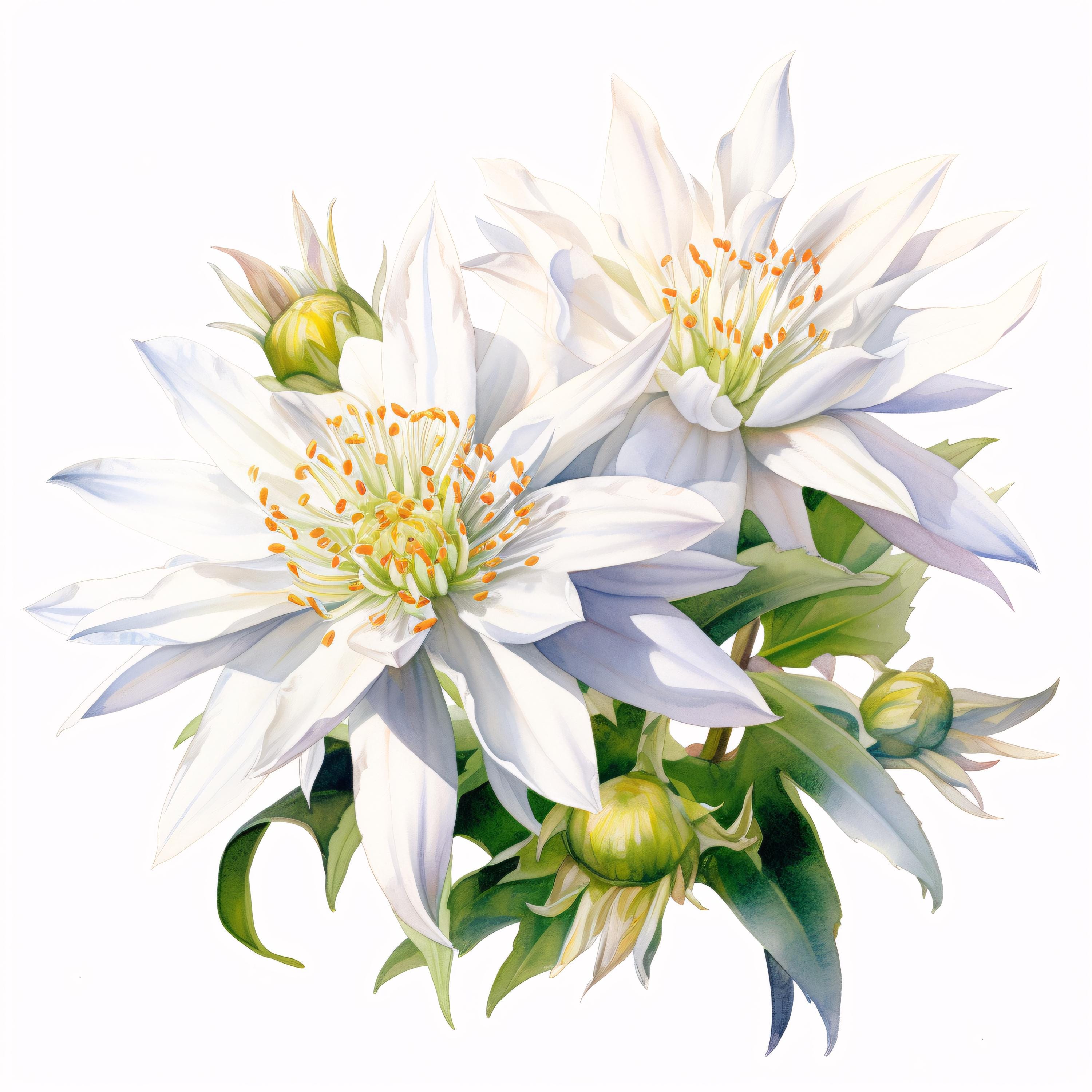 Edelweiss Flower Clipart, White Alpine Images, 10 Watercolor Clip Art, Printable JPGs, Instant Download, Commercial Use, Paper Craft