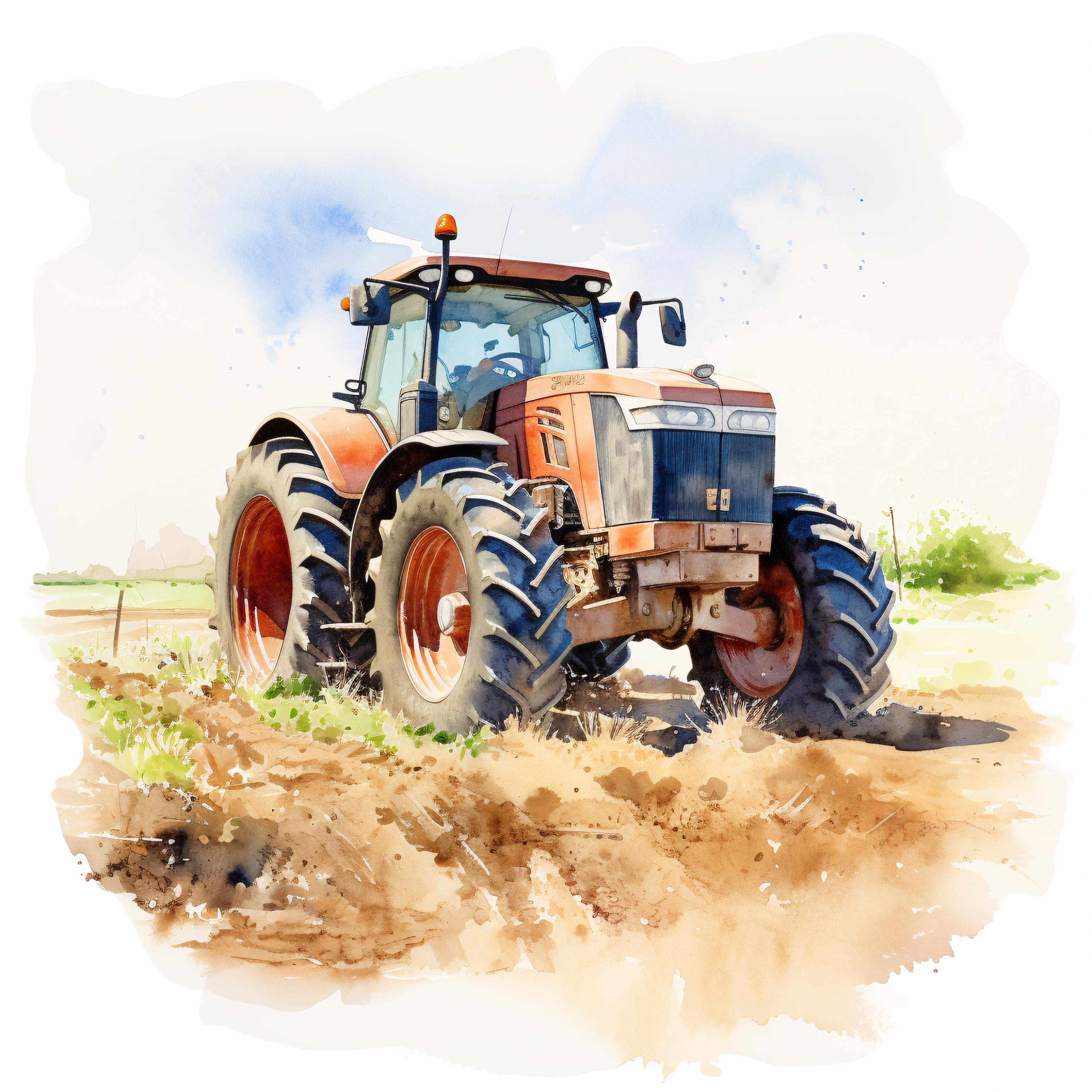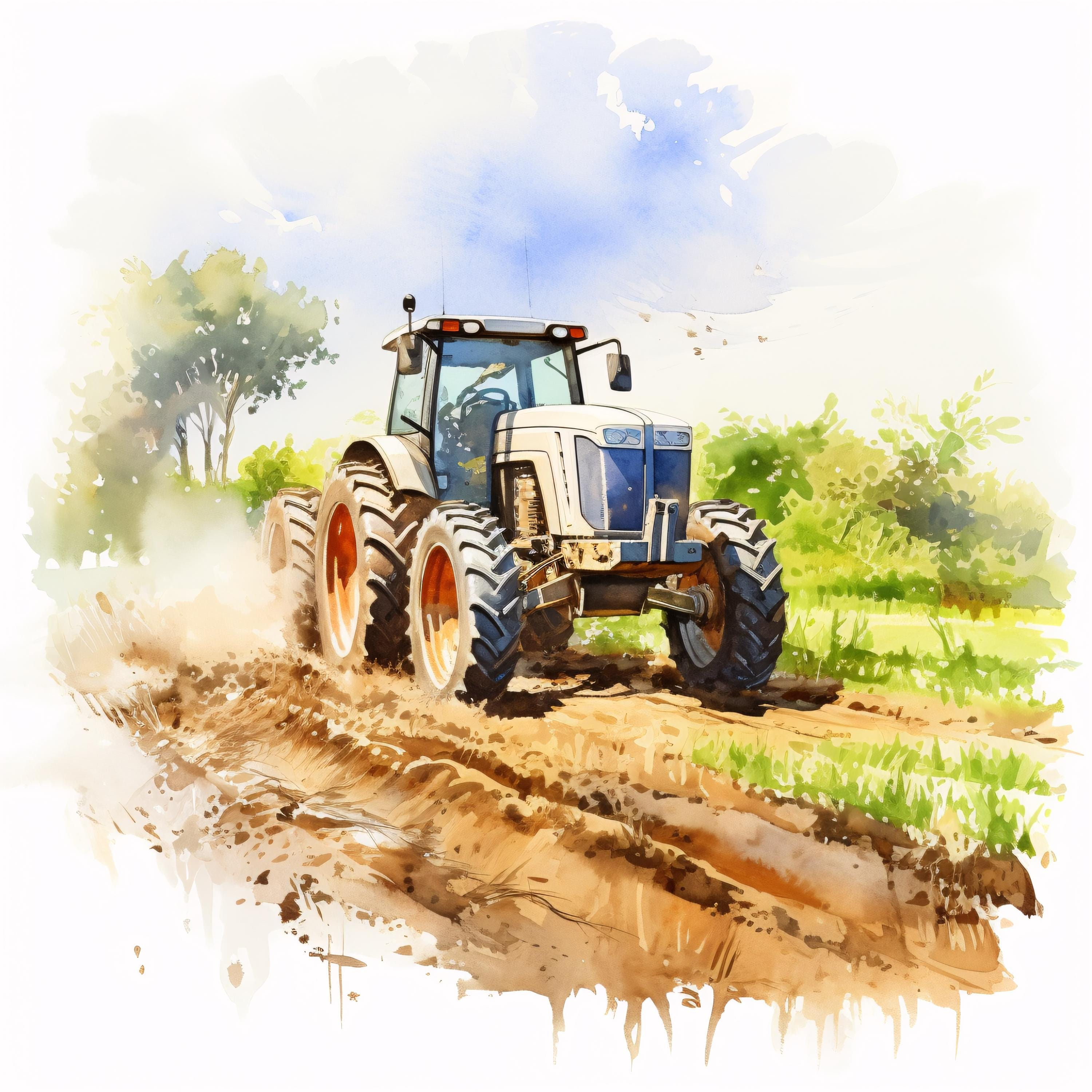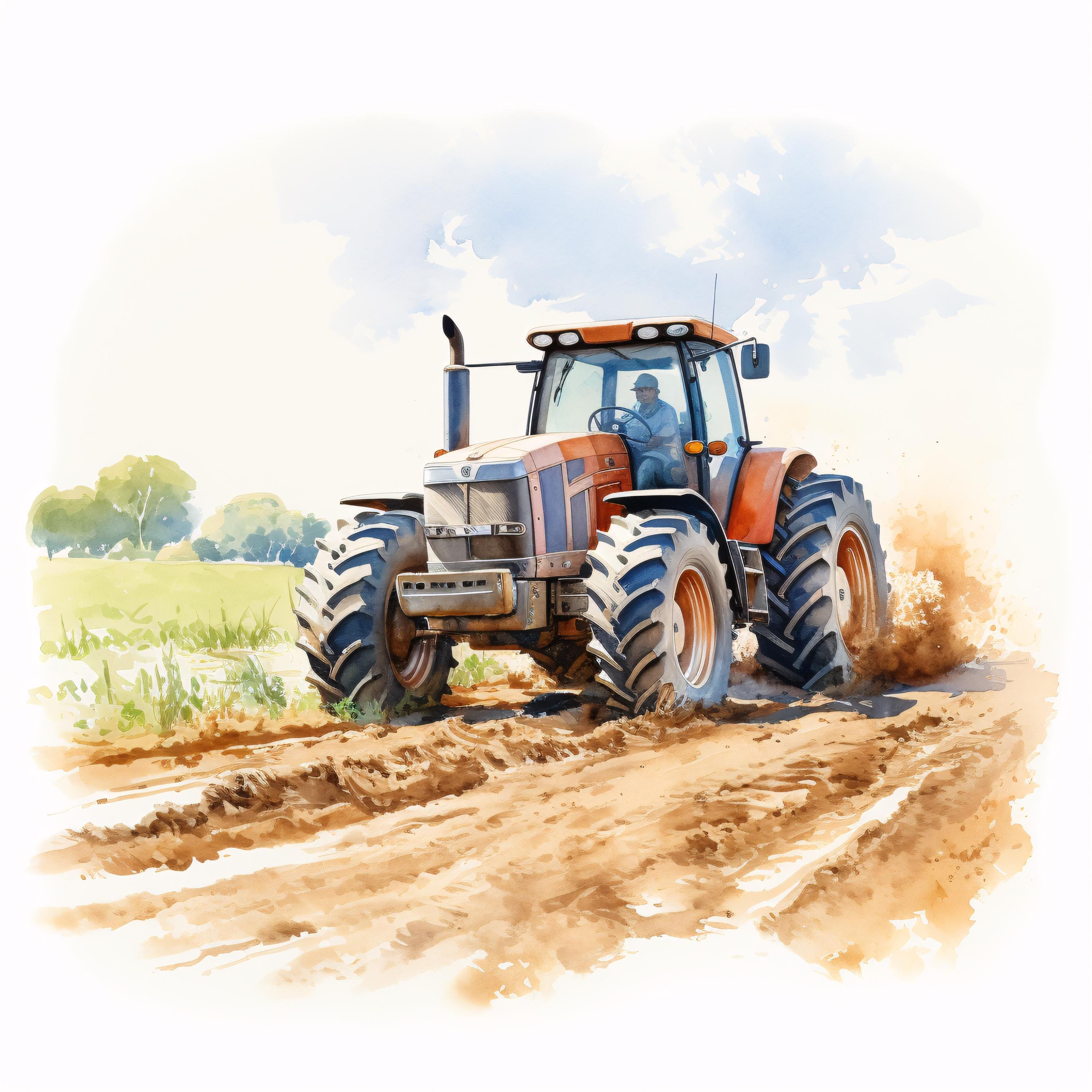 Tractor Farming Clipart, Agriculture Field Images, 10 Watercolor Clip Art, Printable JPGs, Instant Download, Commercial Use, Paper Craft
