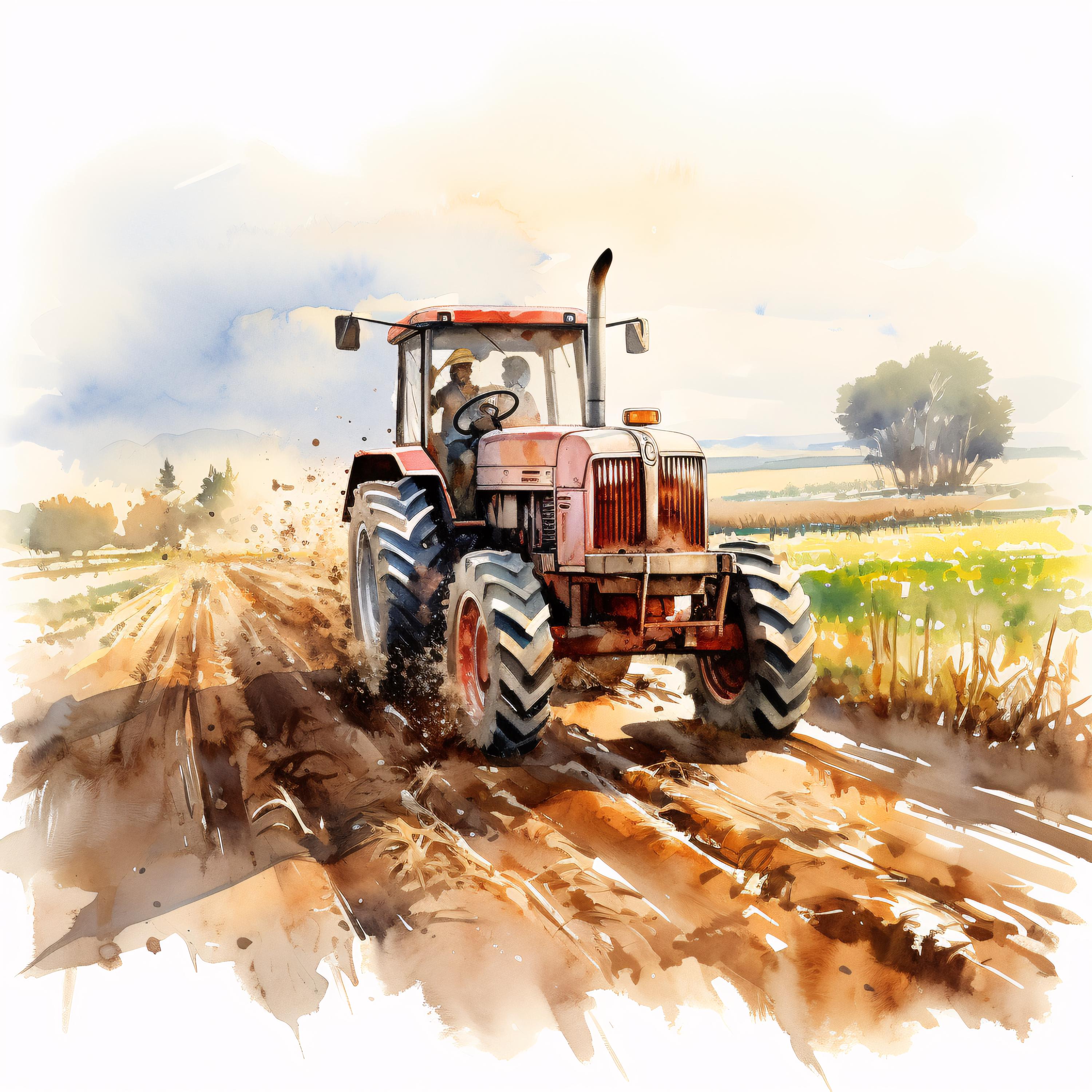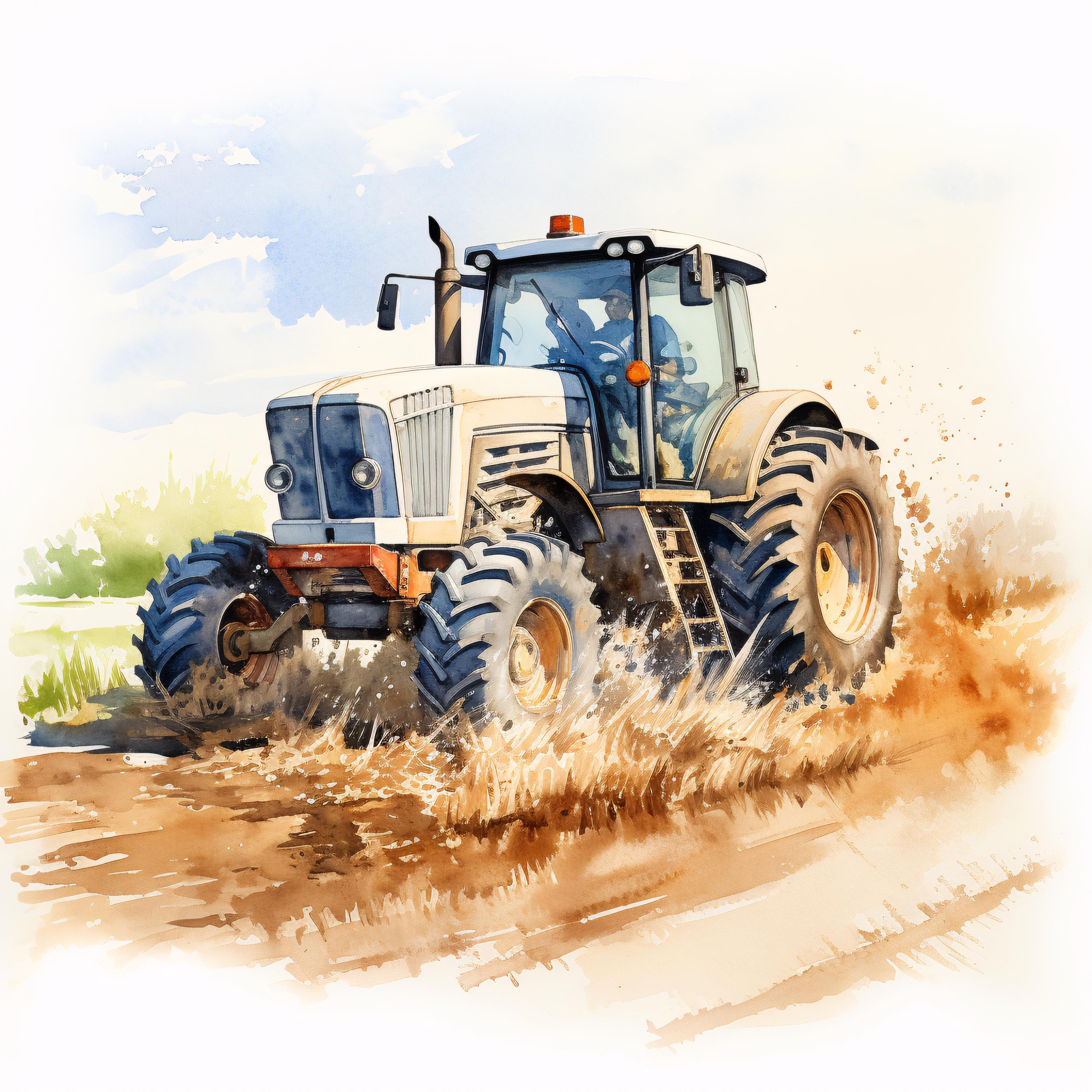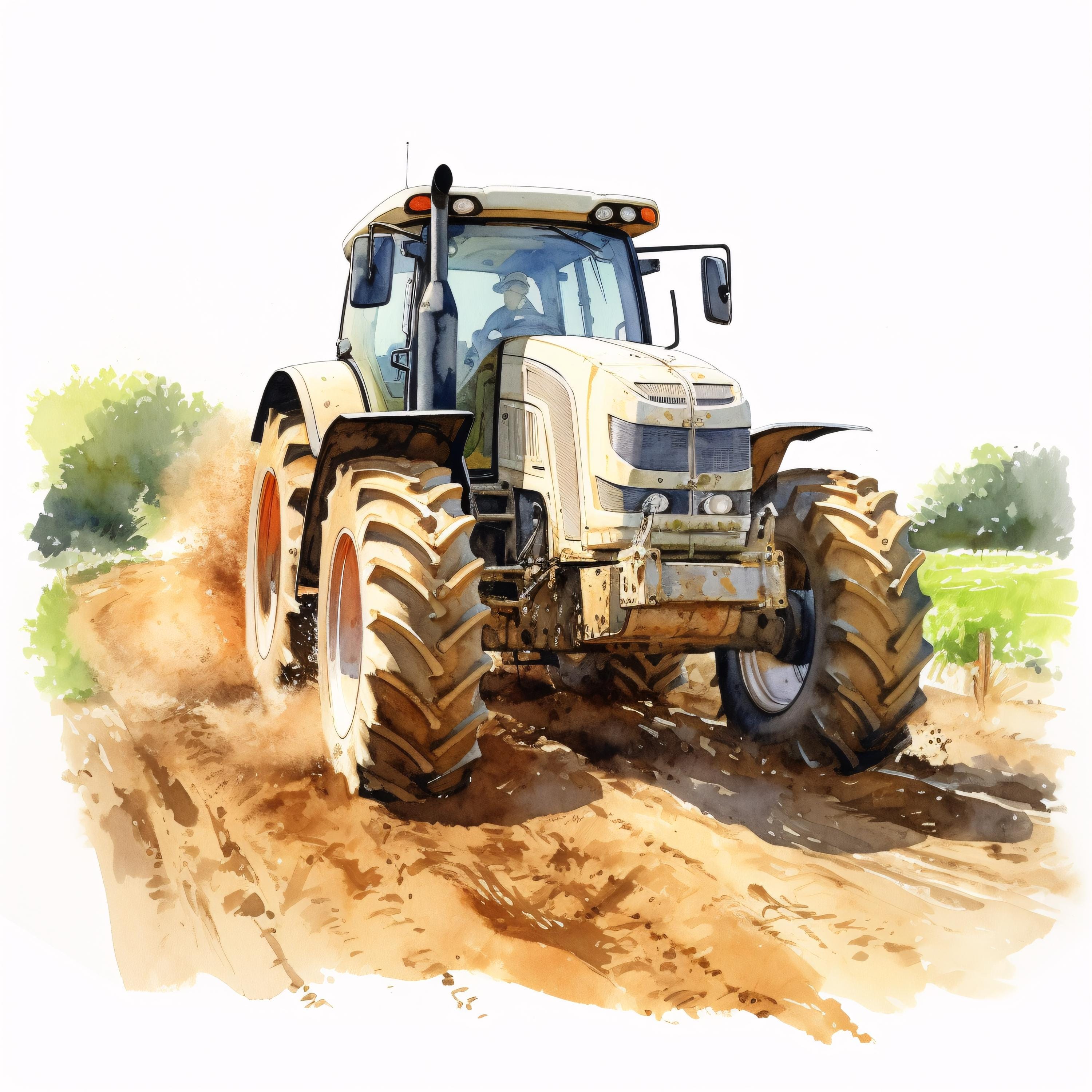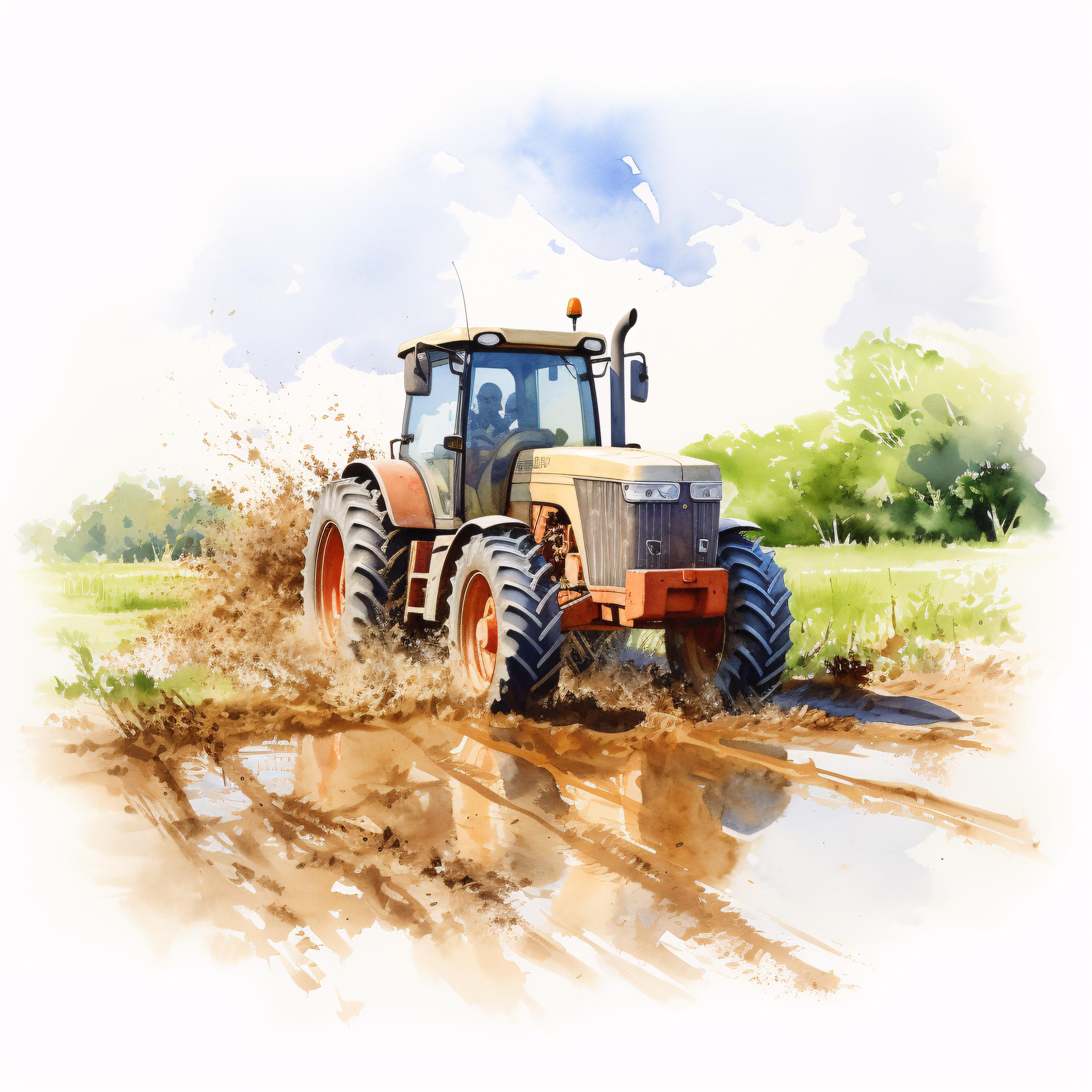 Tractor Farming Clipart, Agriculture Field Images, 10 Watercolor Clip Art, Printable JPGs, Instant Download, Commercial Use, Paper Craft