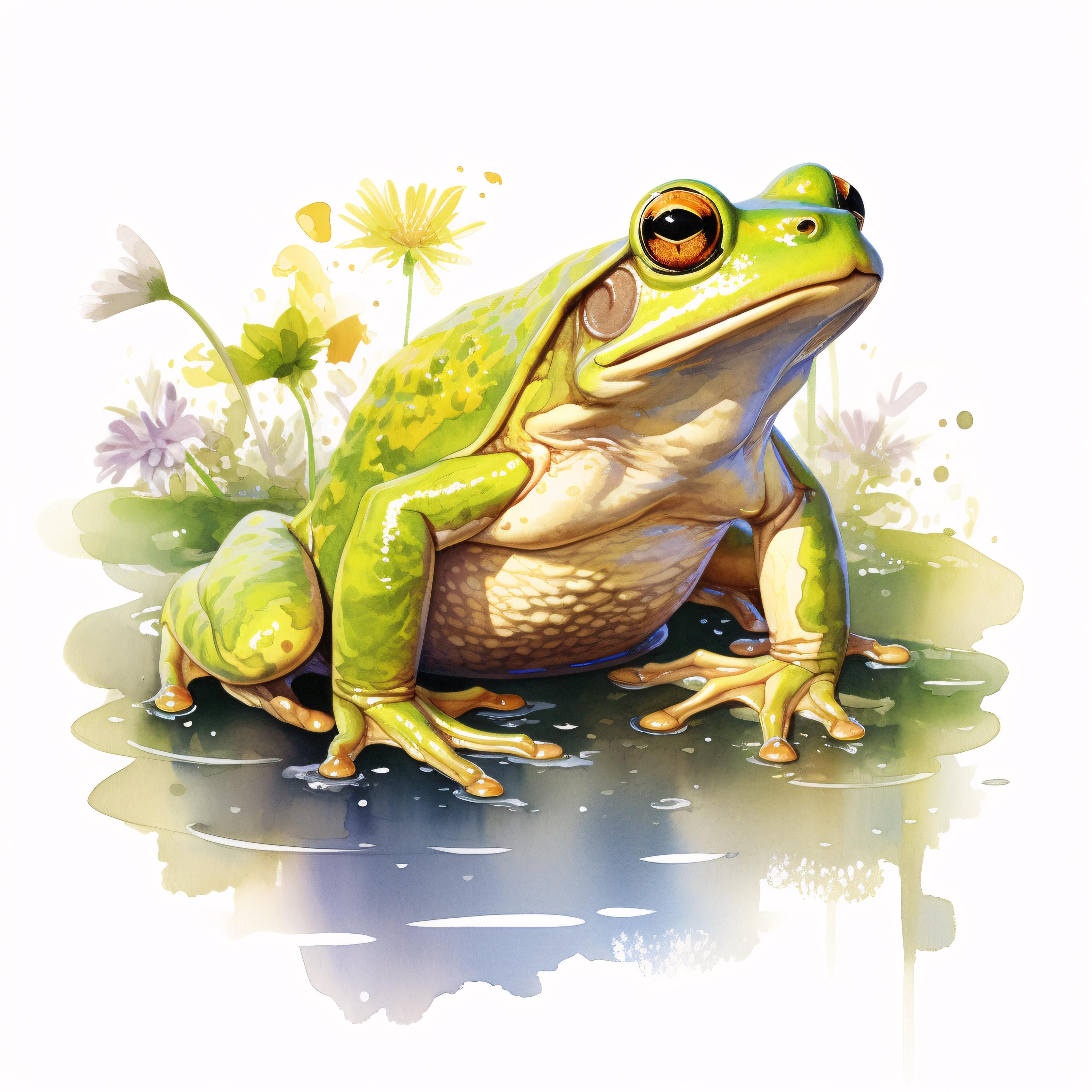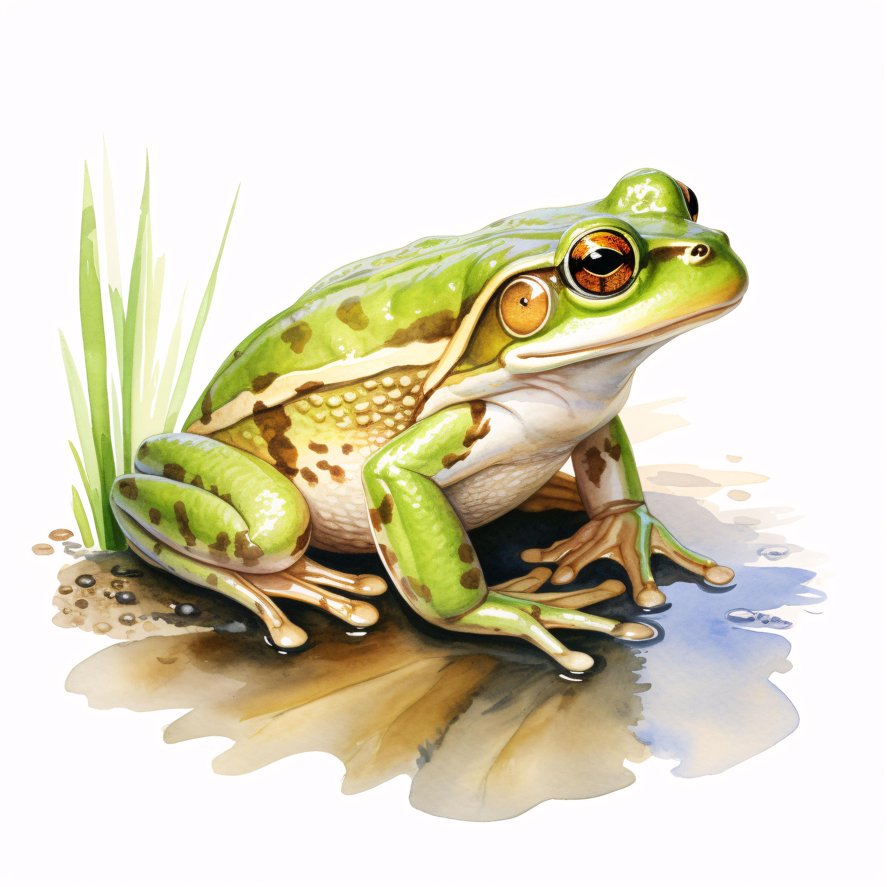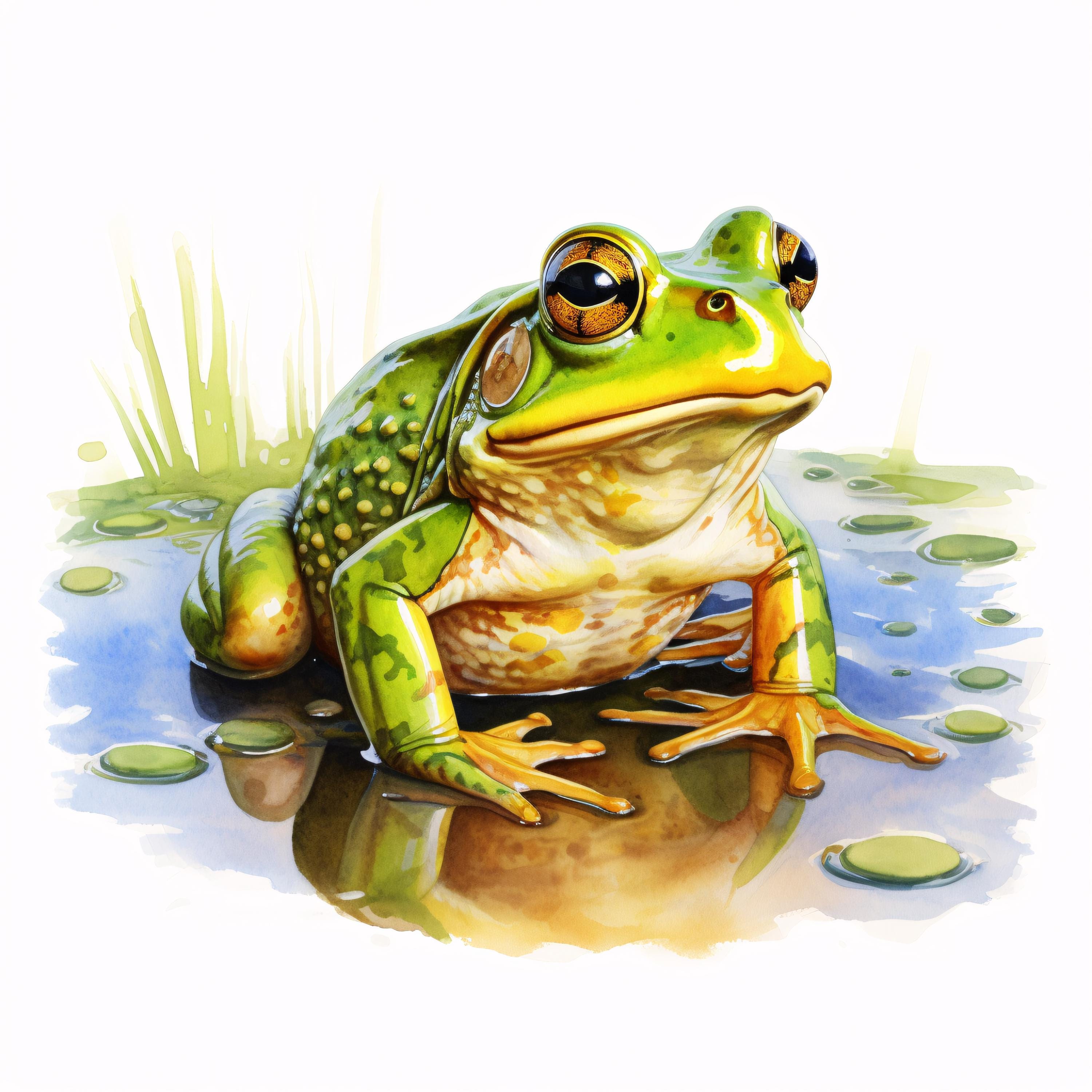 Frog Clipart, Fishing Frog Images, 10 Watercolor Clip Art, Printable JPGs, Instant Download, Commercial Use, Paper Craft