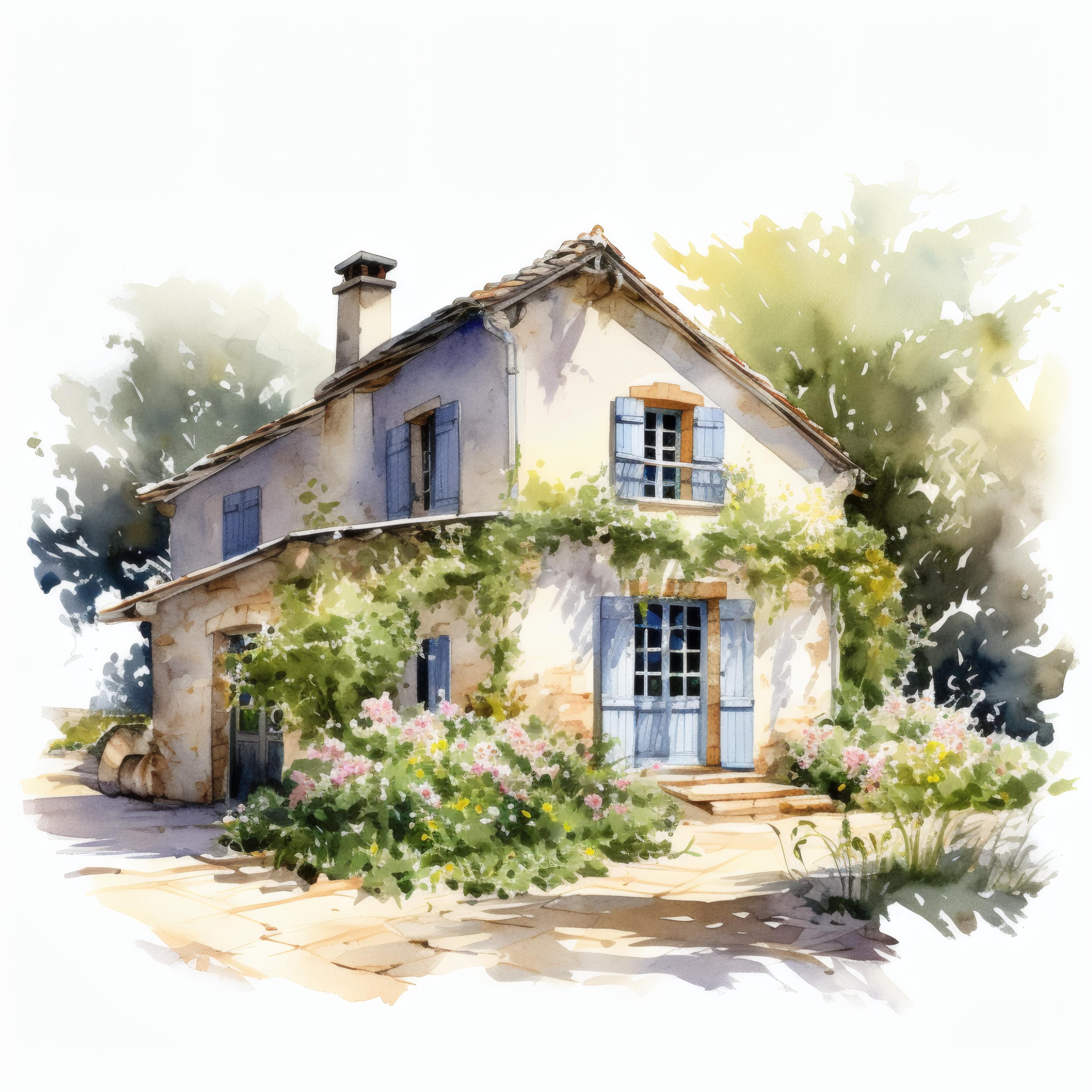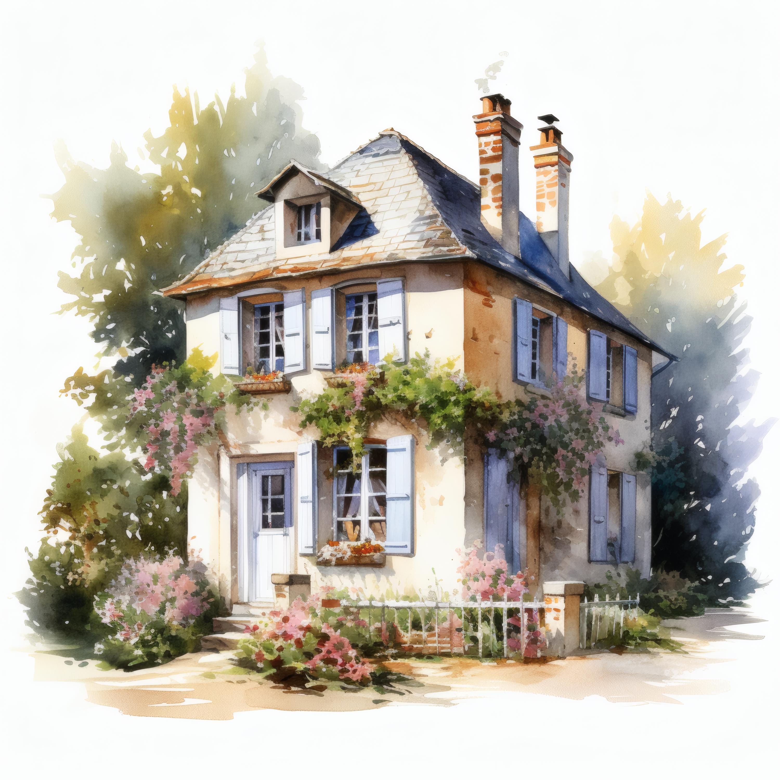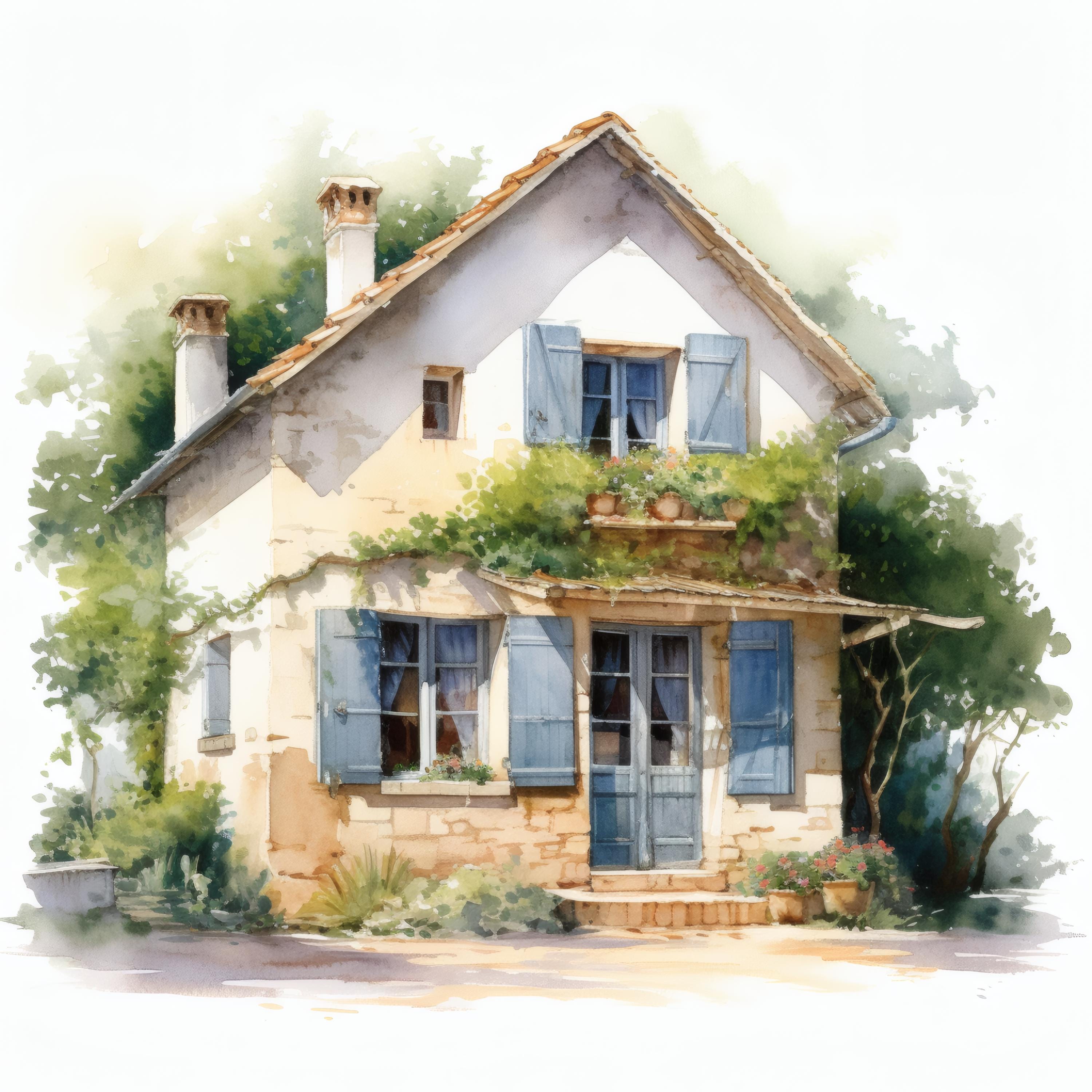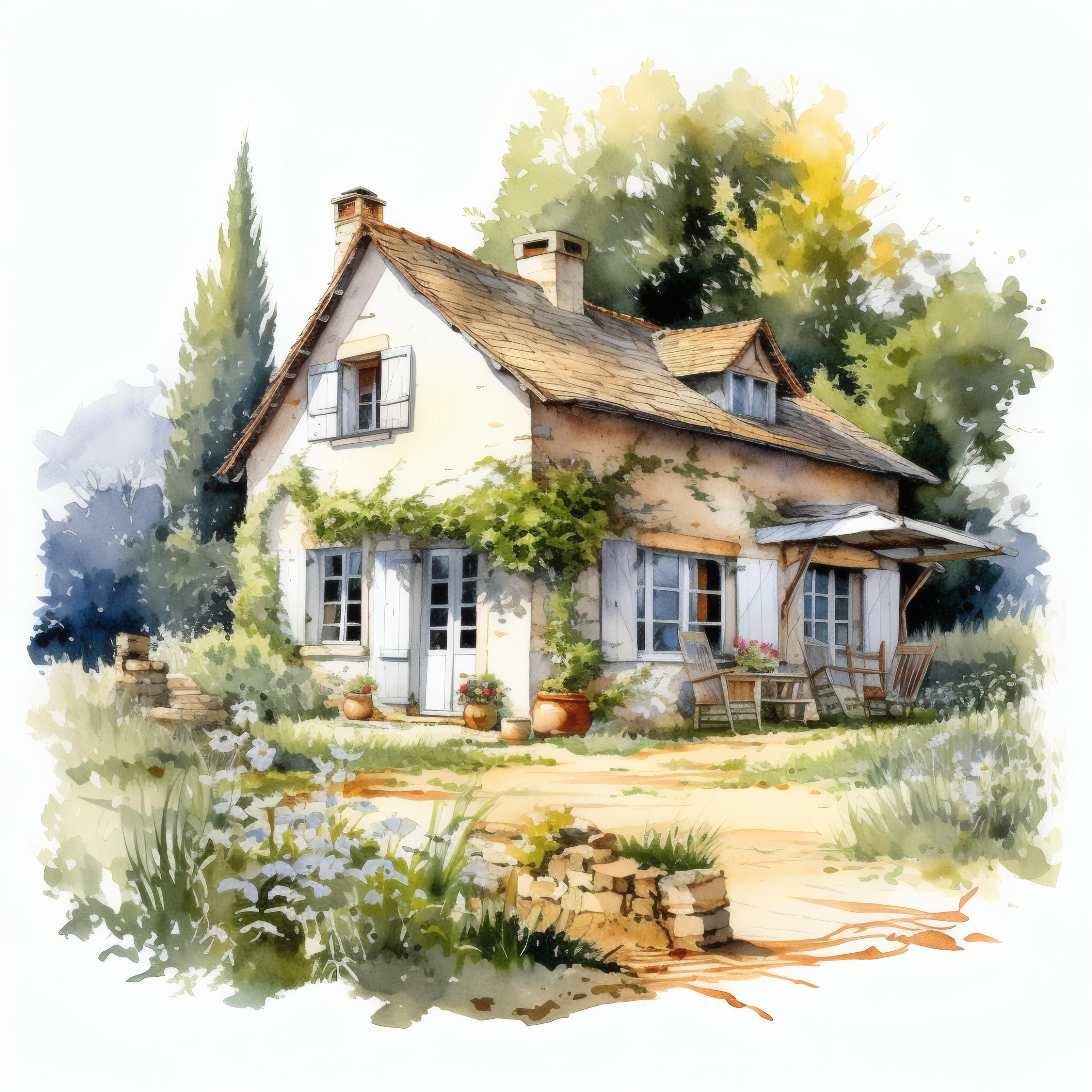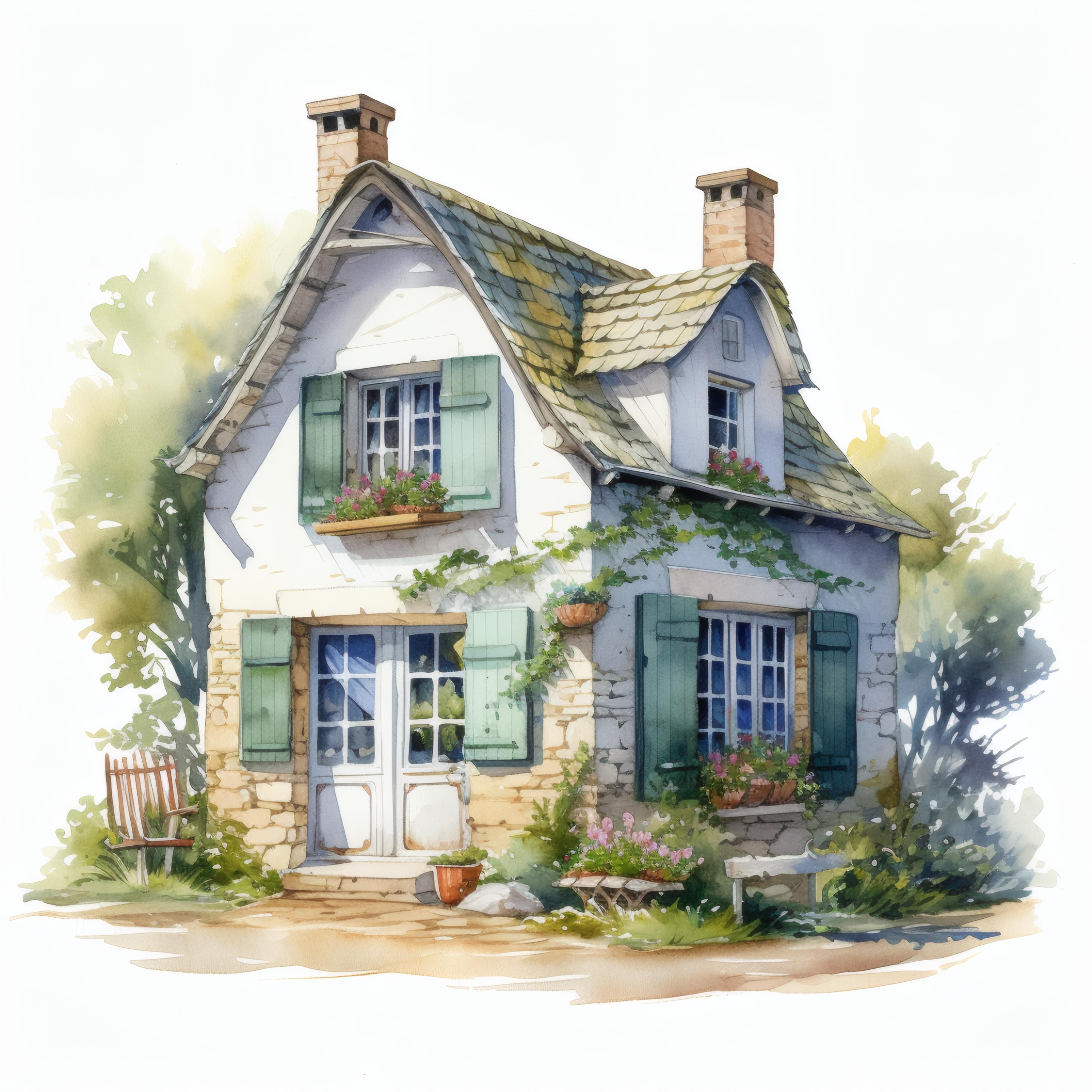 Cottage House Clipart, French Home Images, 10 Watercolor Clip Art, Printable JPGs, Instant Download, Commercial Use, Paper Craft