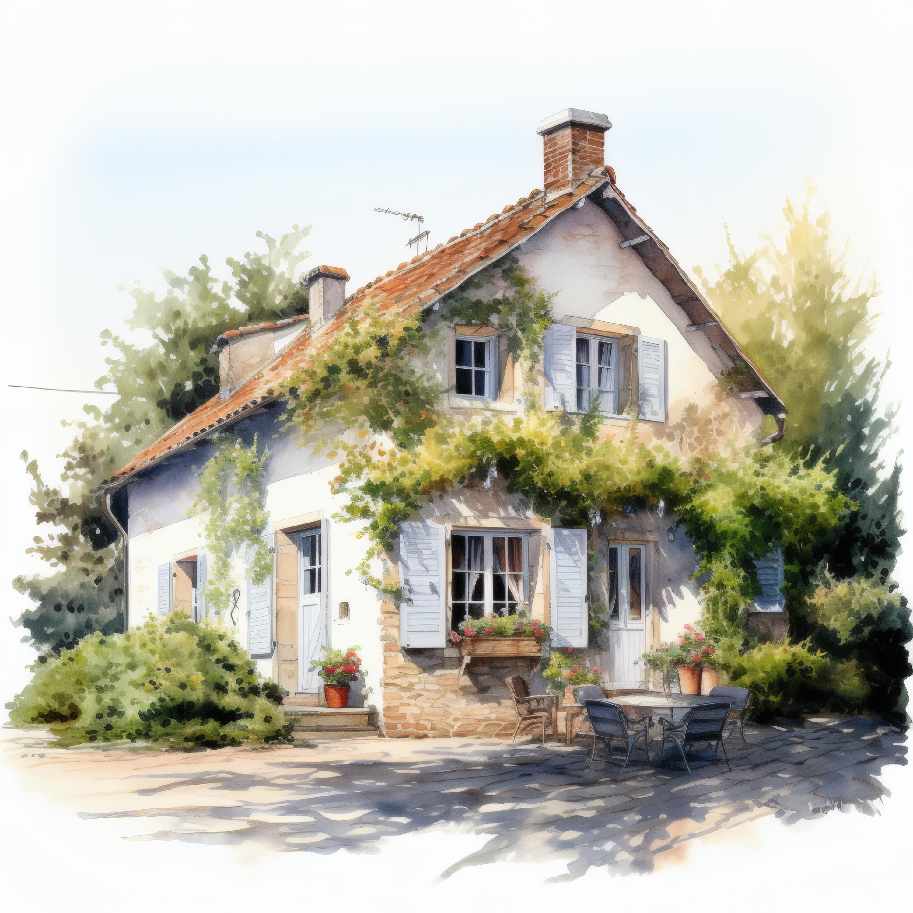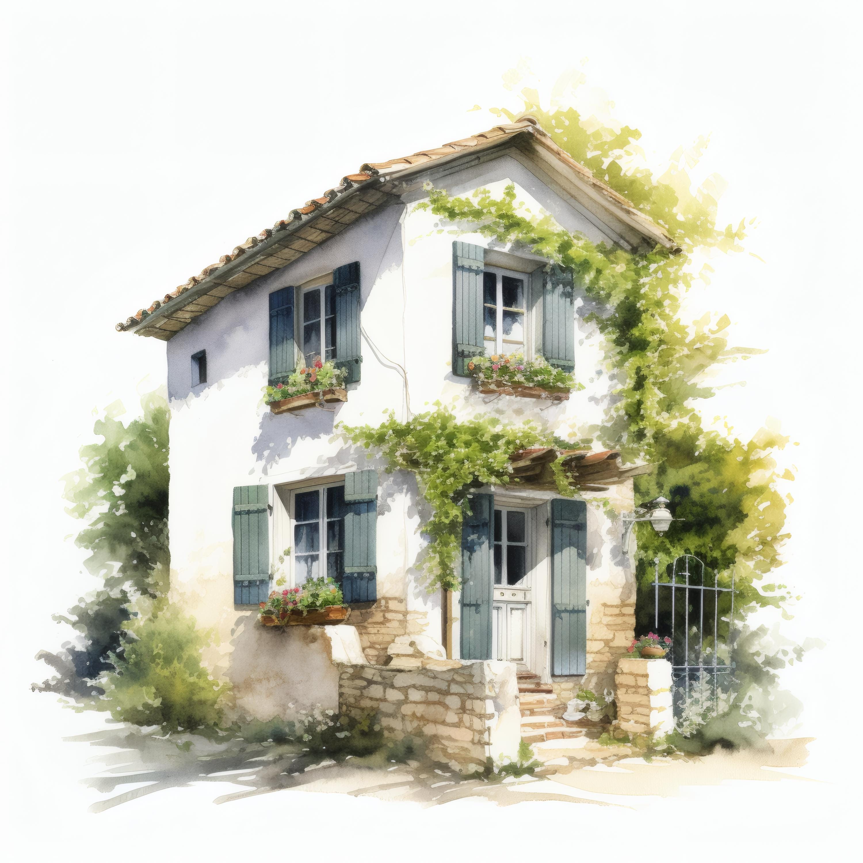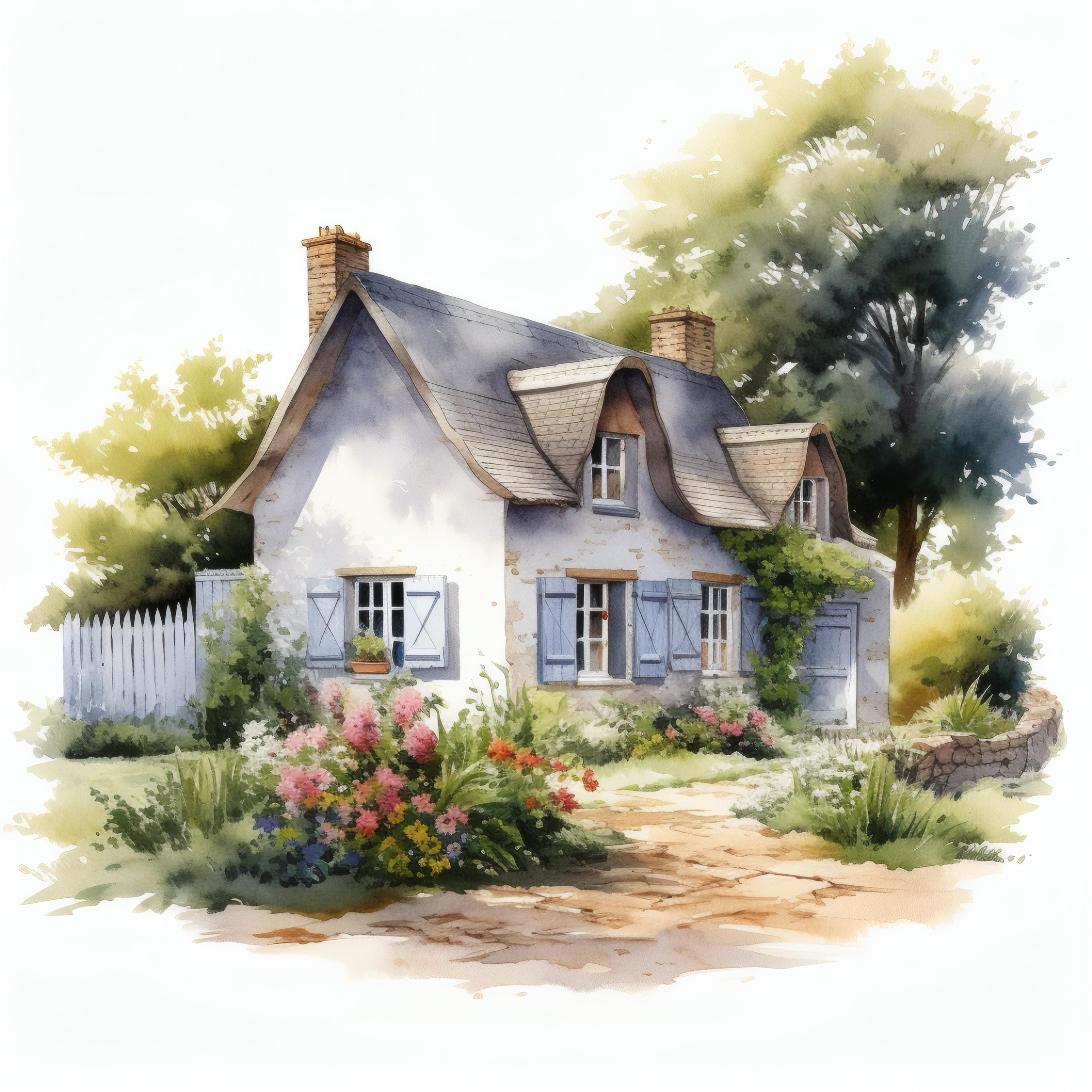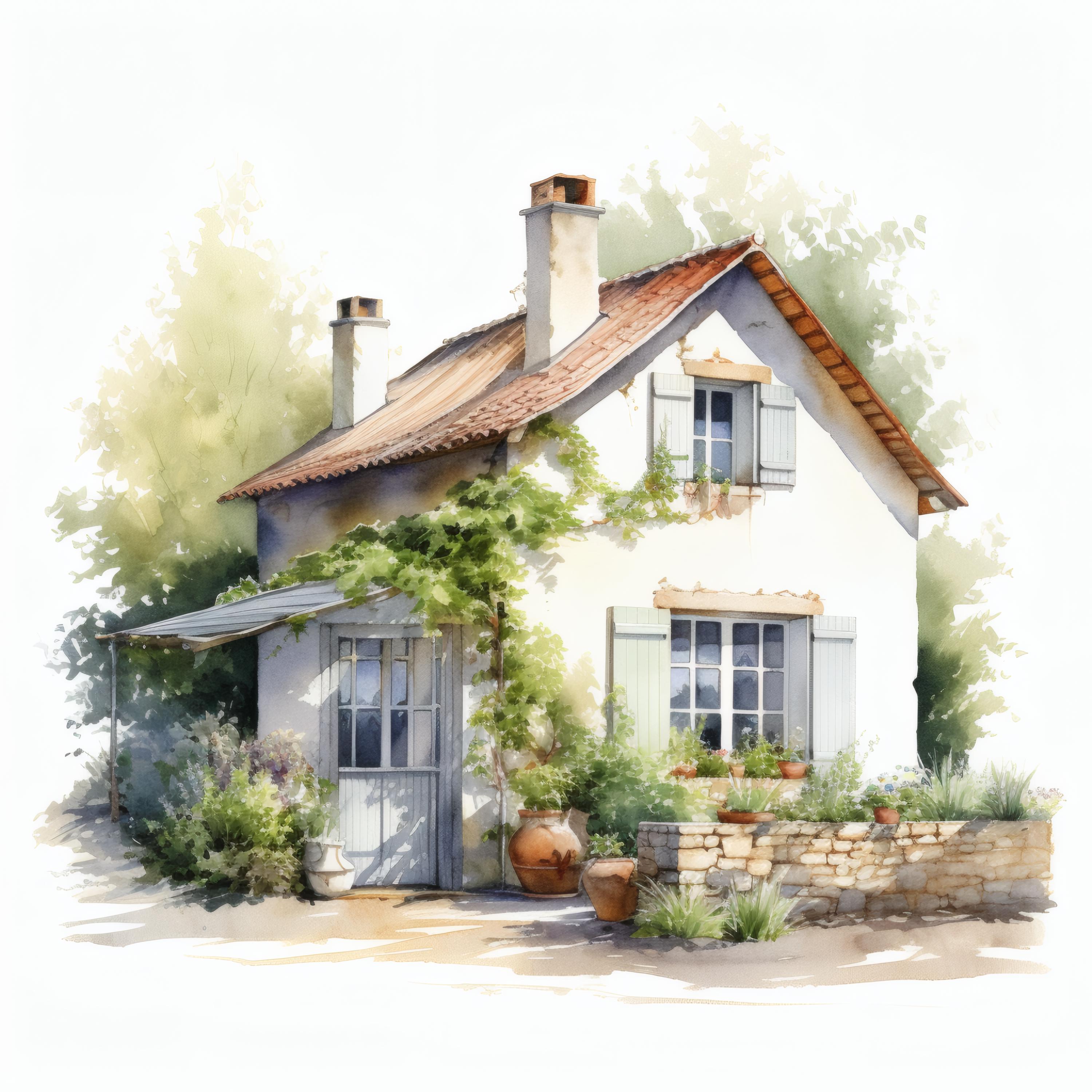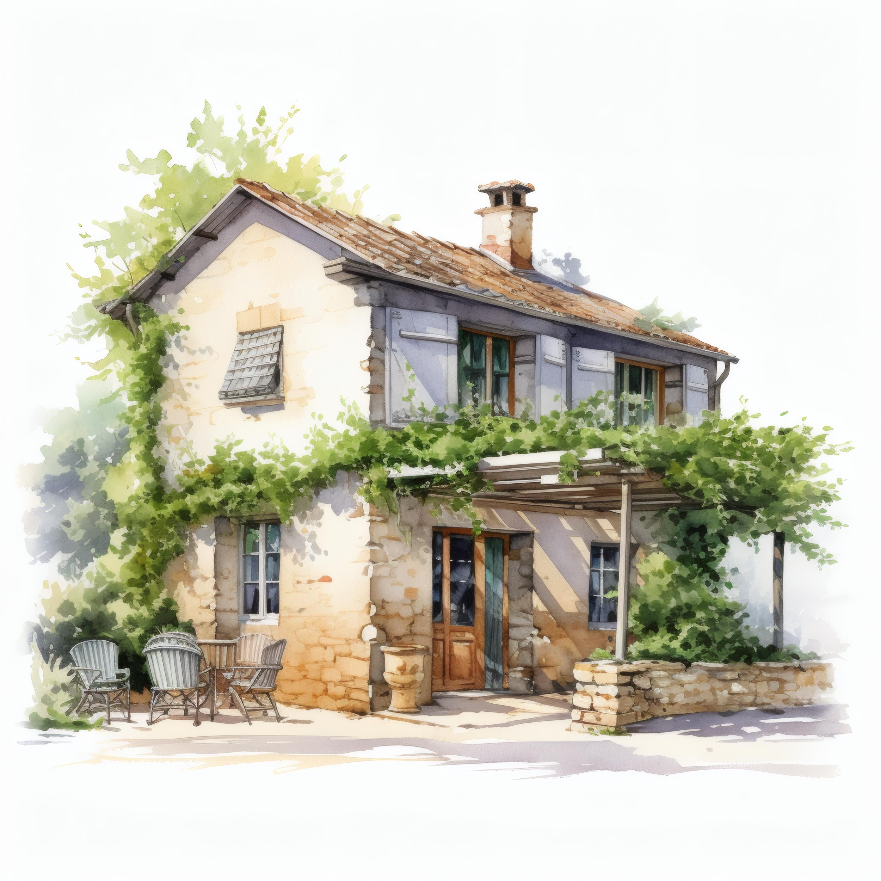 Cottage House Clipart, French Home Images, 10 Watercolor Clip Art, Printable JPGs, Instant Download, Commercial Use, Paper Craft