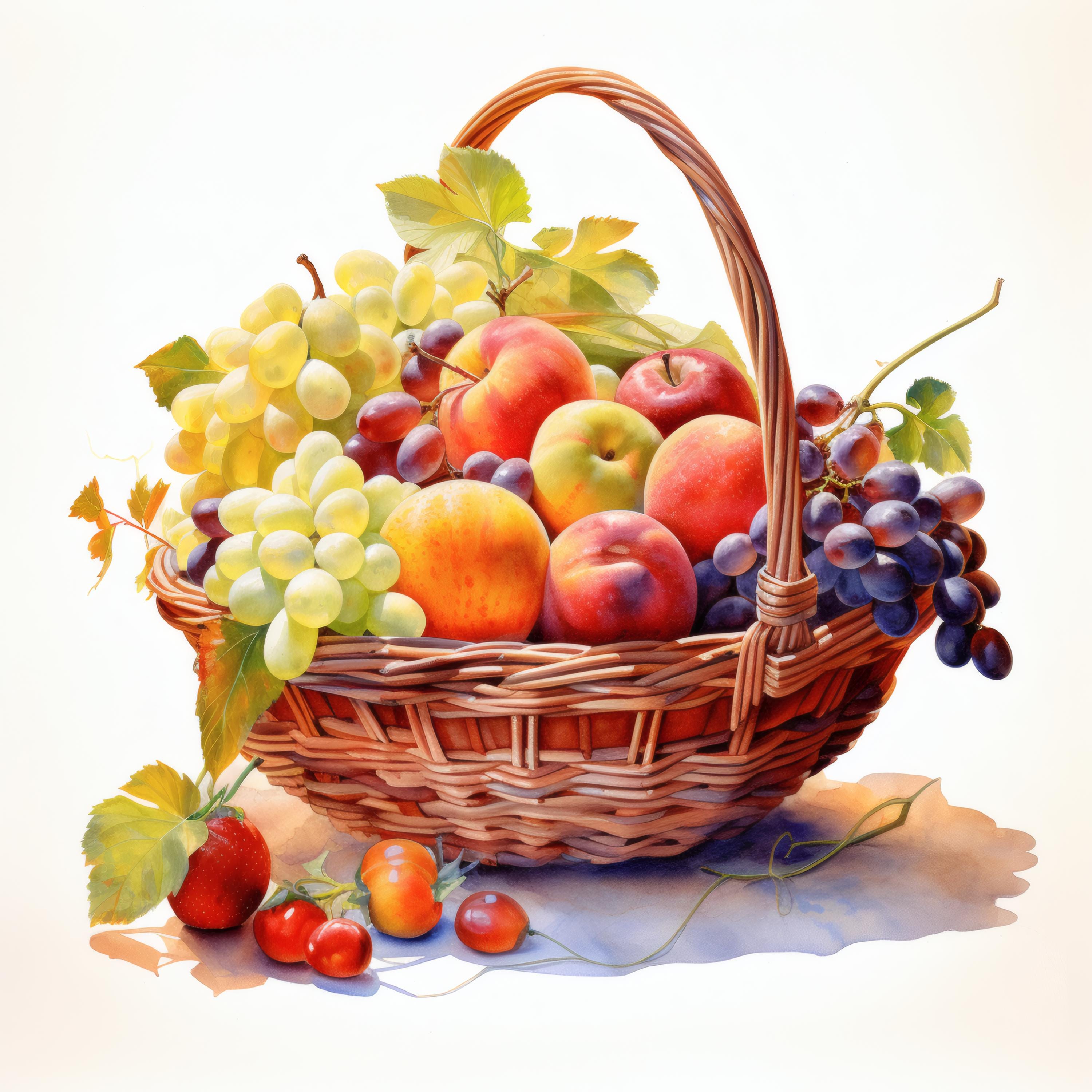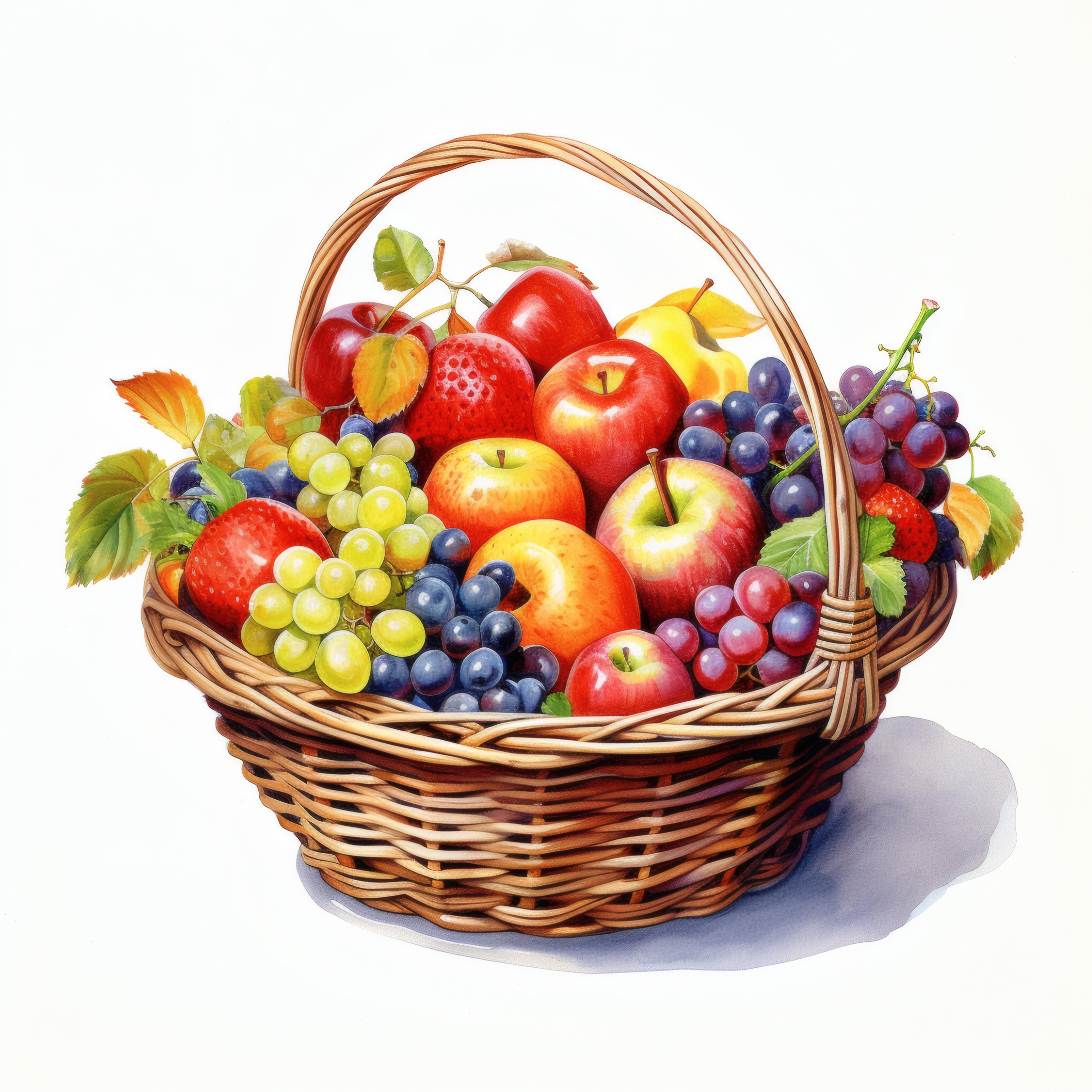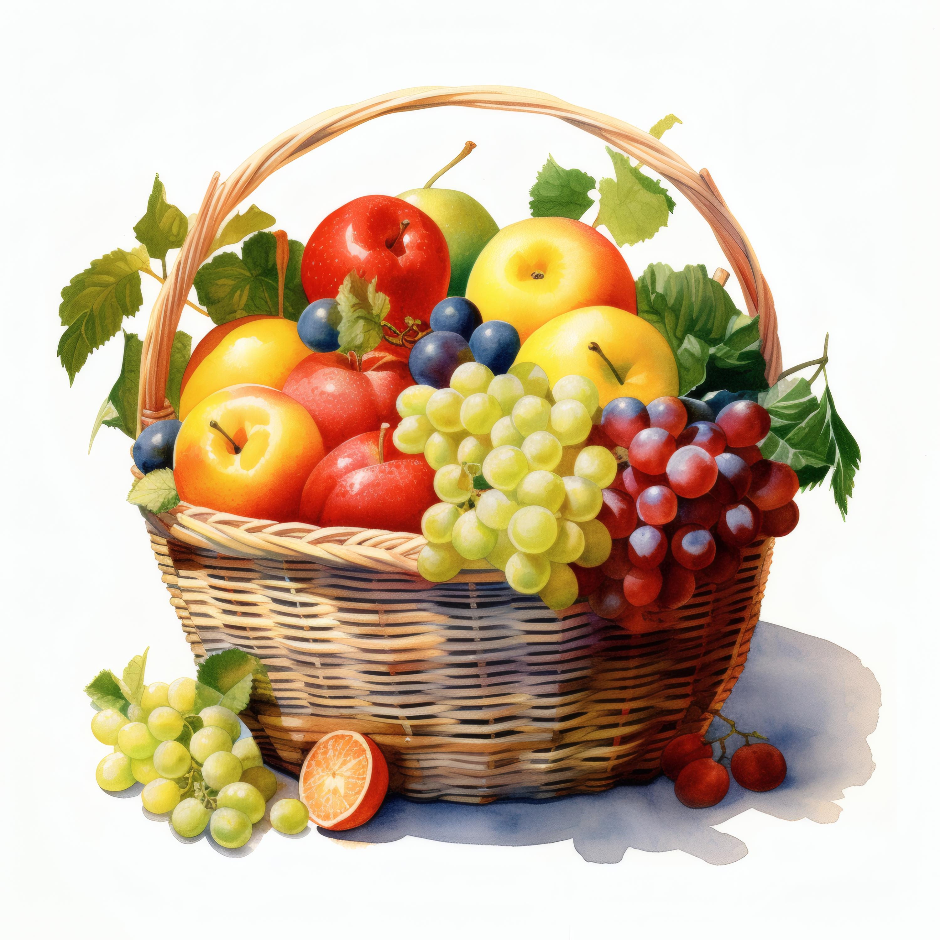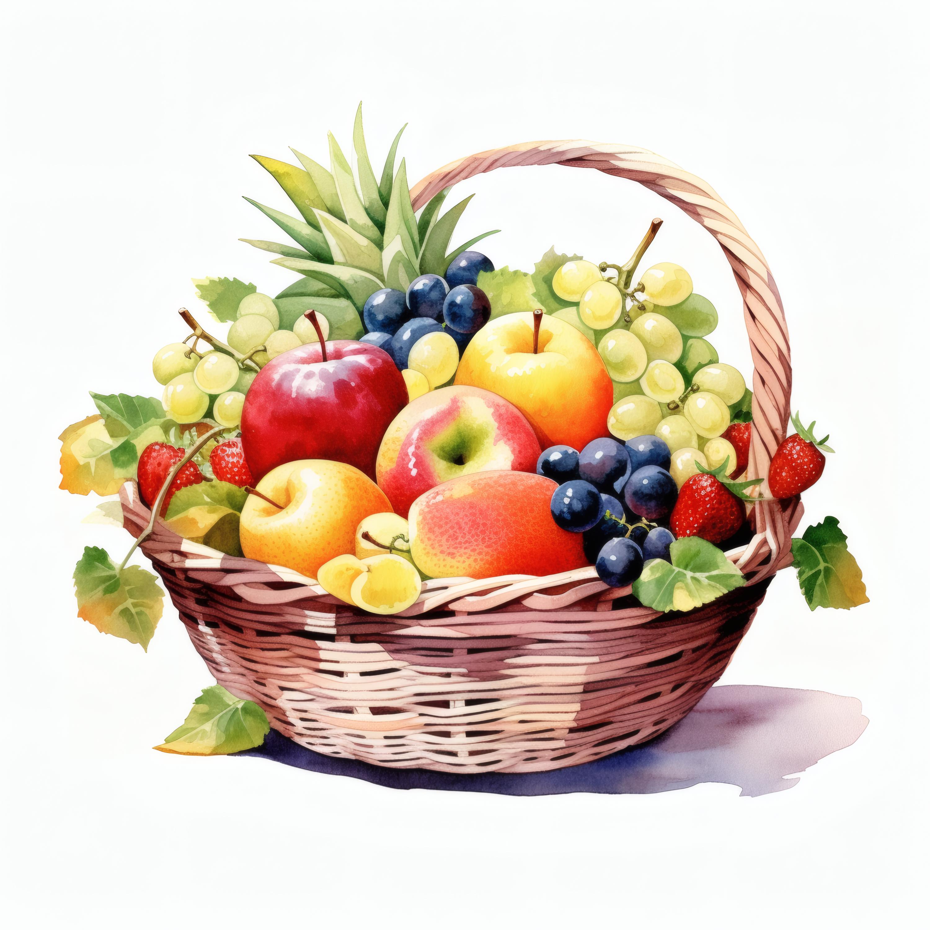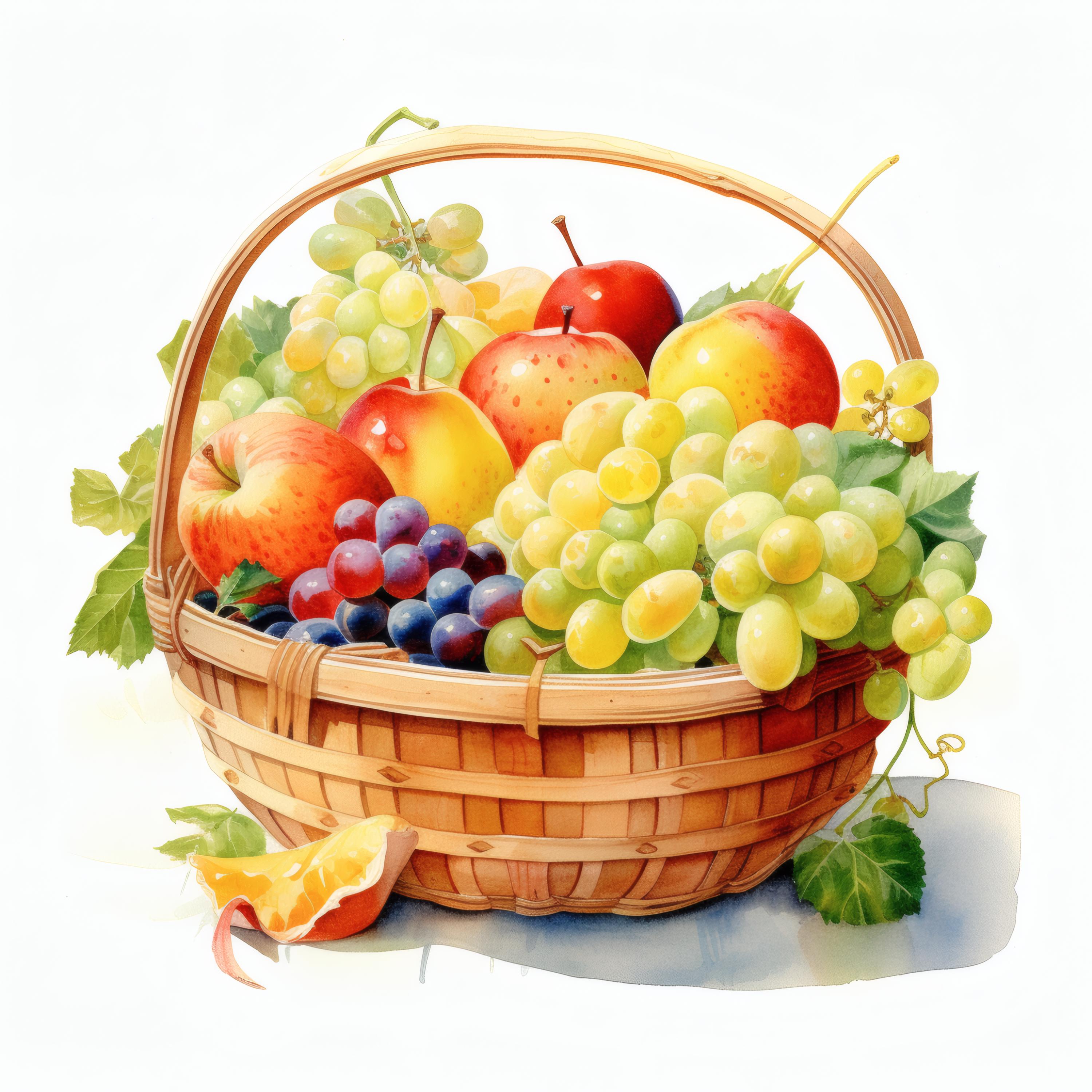 Fruit Basket Clipart, Fresh Produce Images, 10 Watercolor Clip Art, Printable JPGs, Instant Download, Commercial Use, Paper Craft