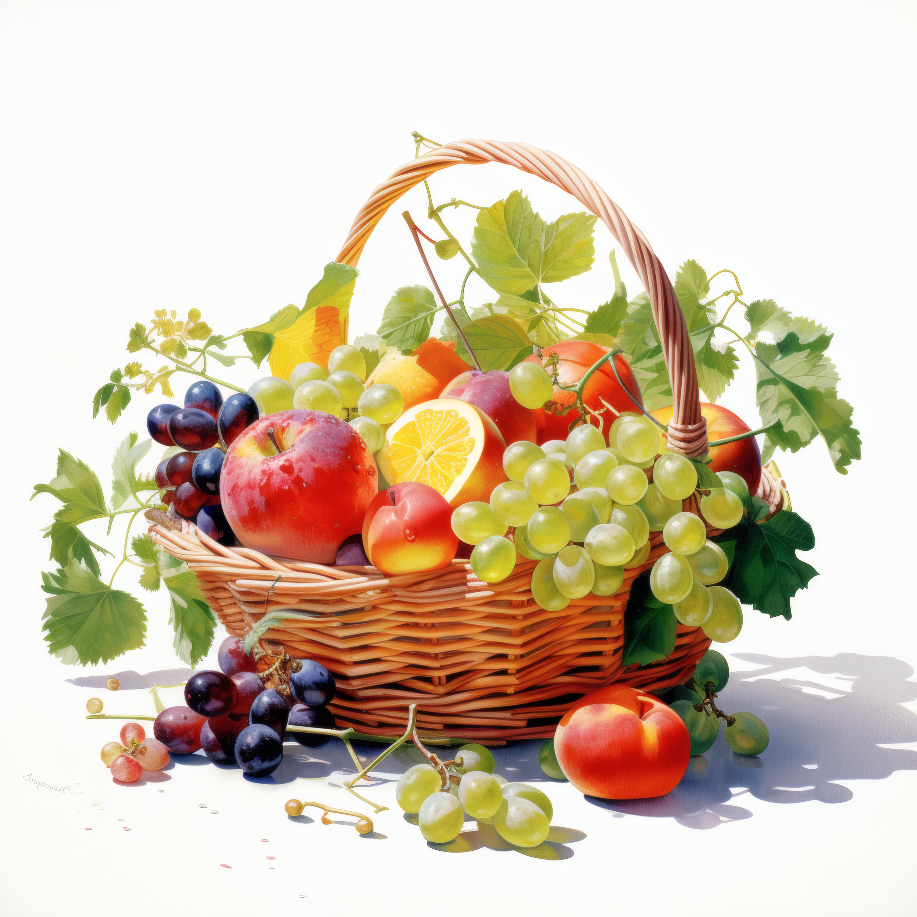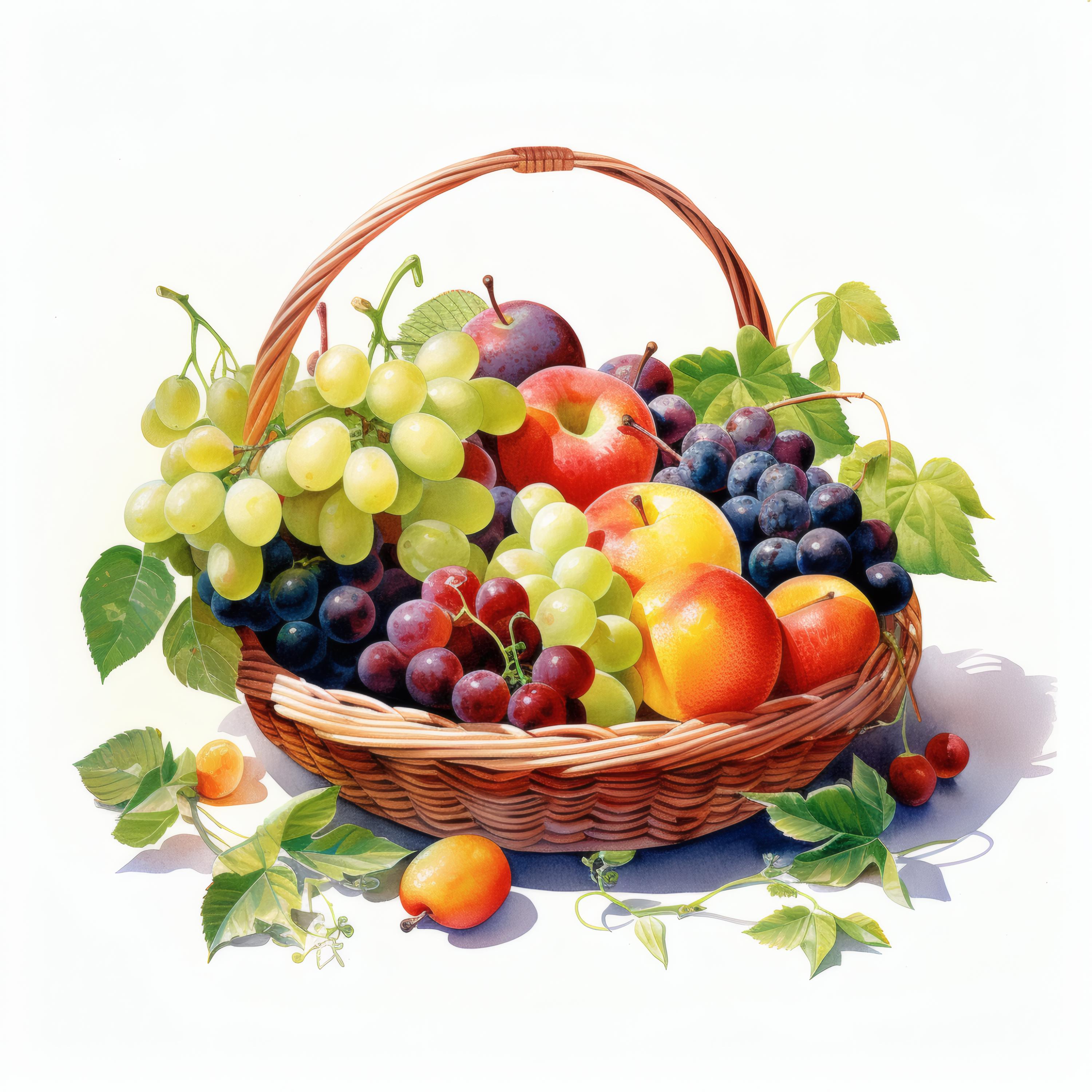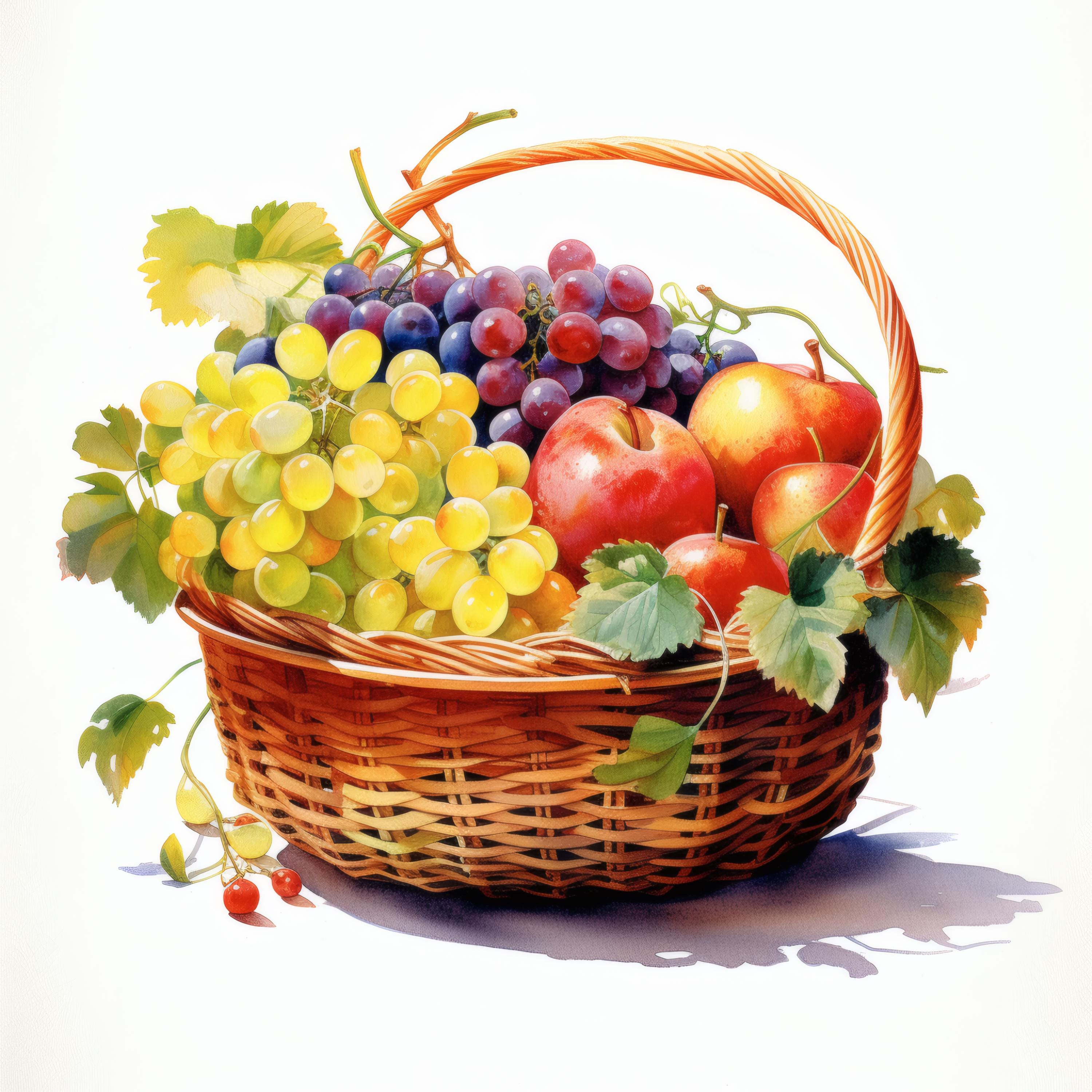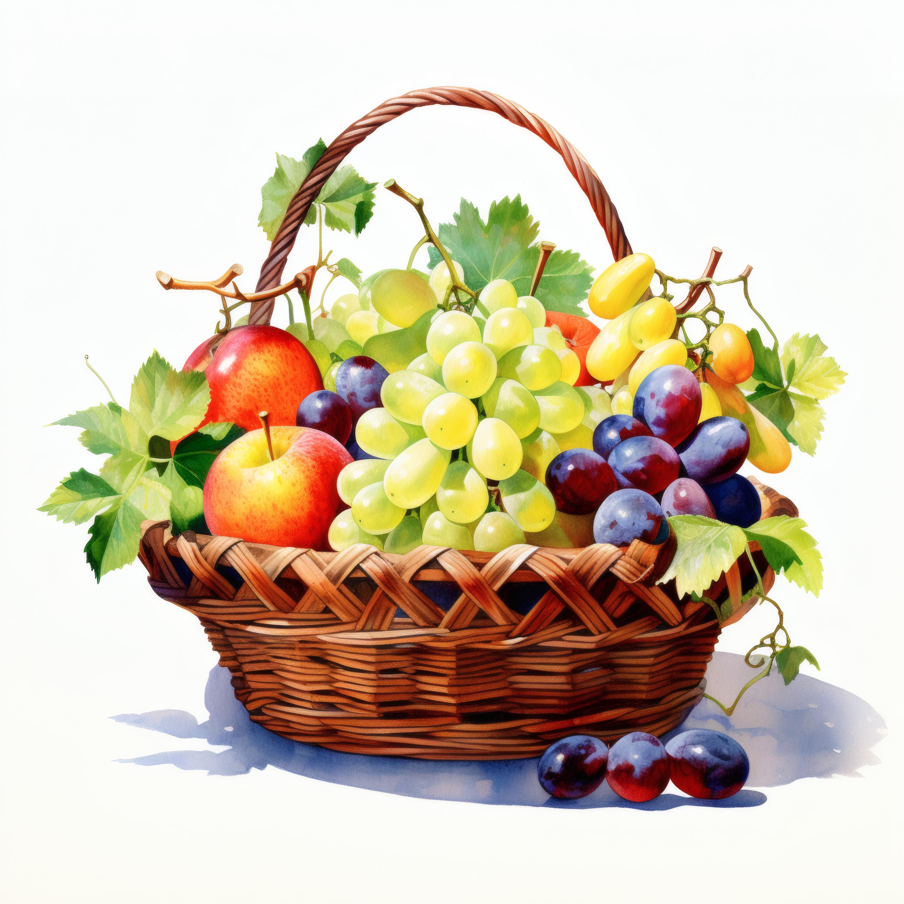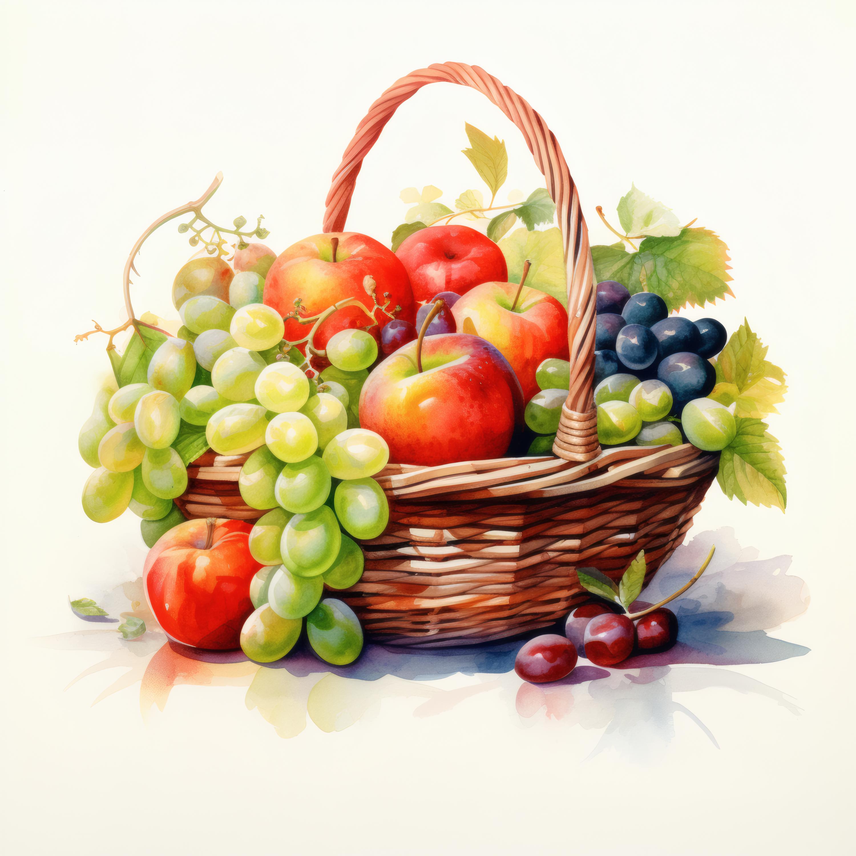 Fruit Basket Clipart, Fresh Produce Images, 10 Watercolor Clip Art, Printable JPGs, Instant Download, Commercial Use, Paper Craft