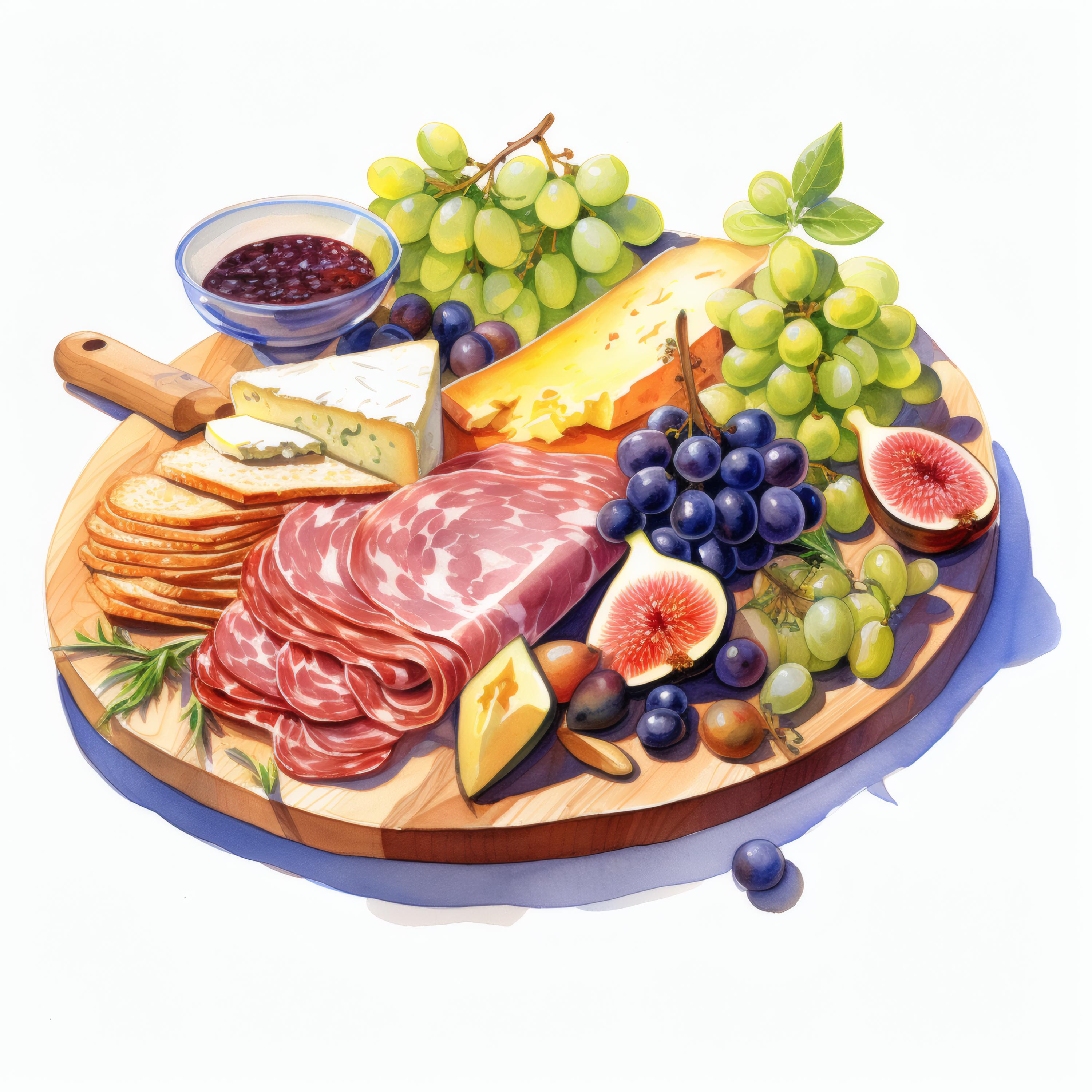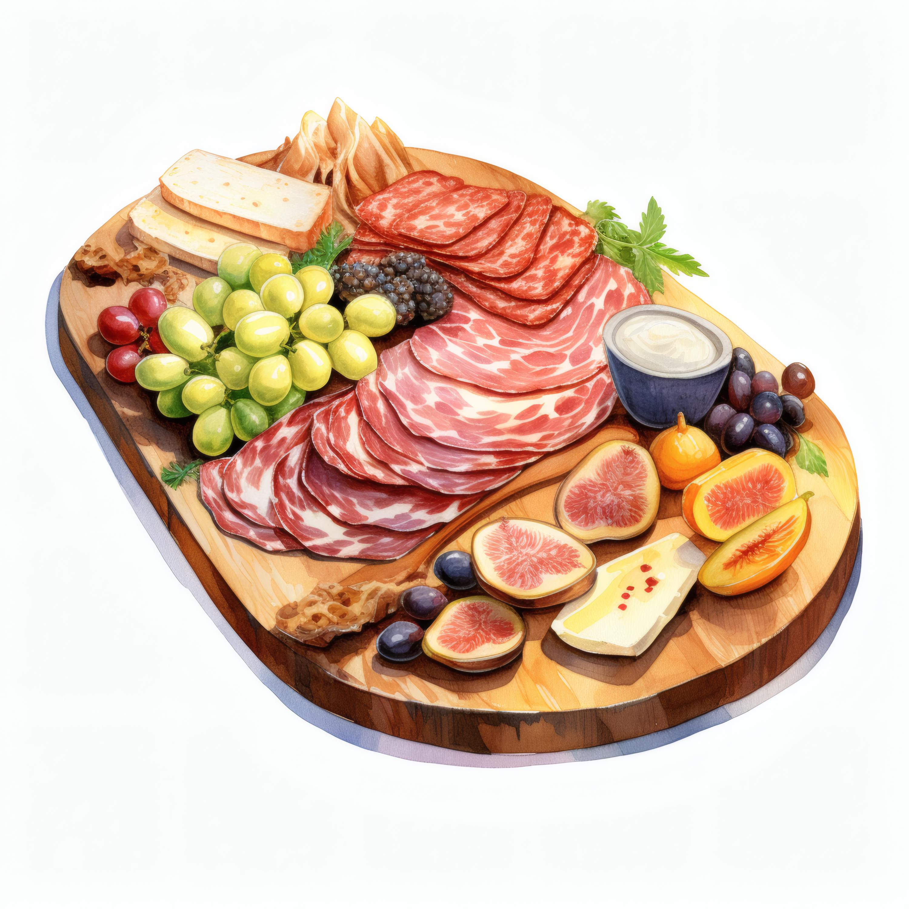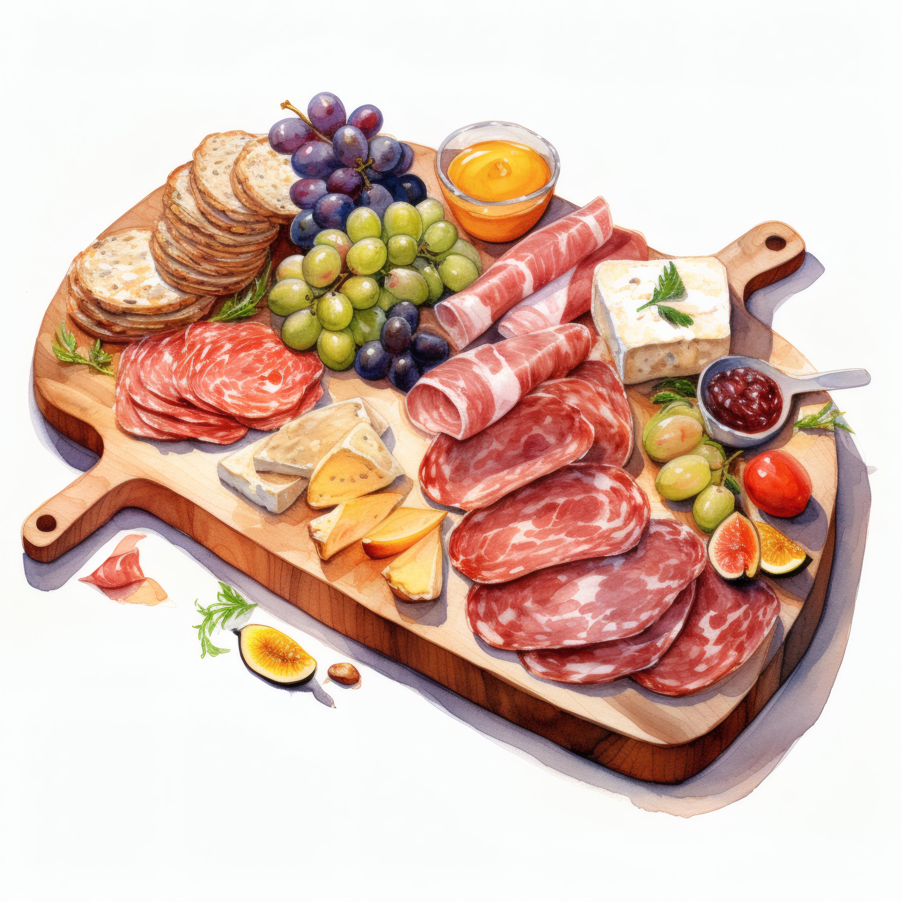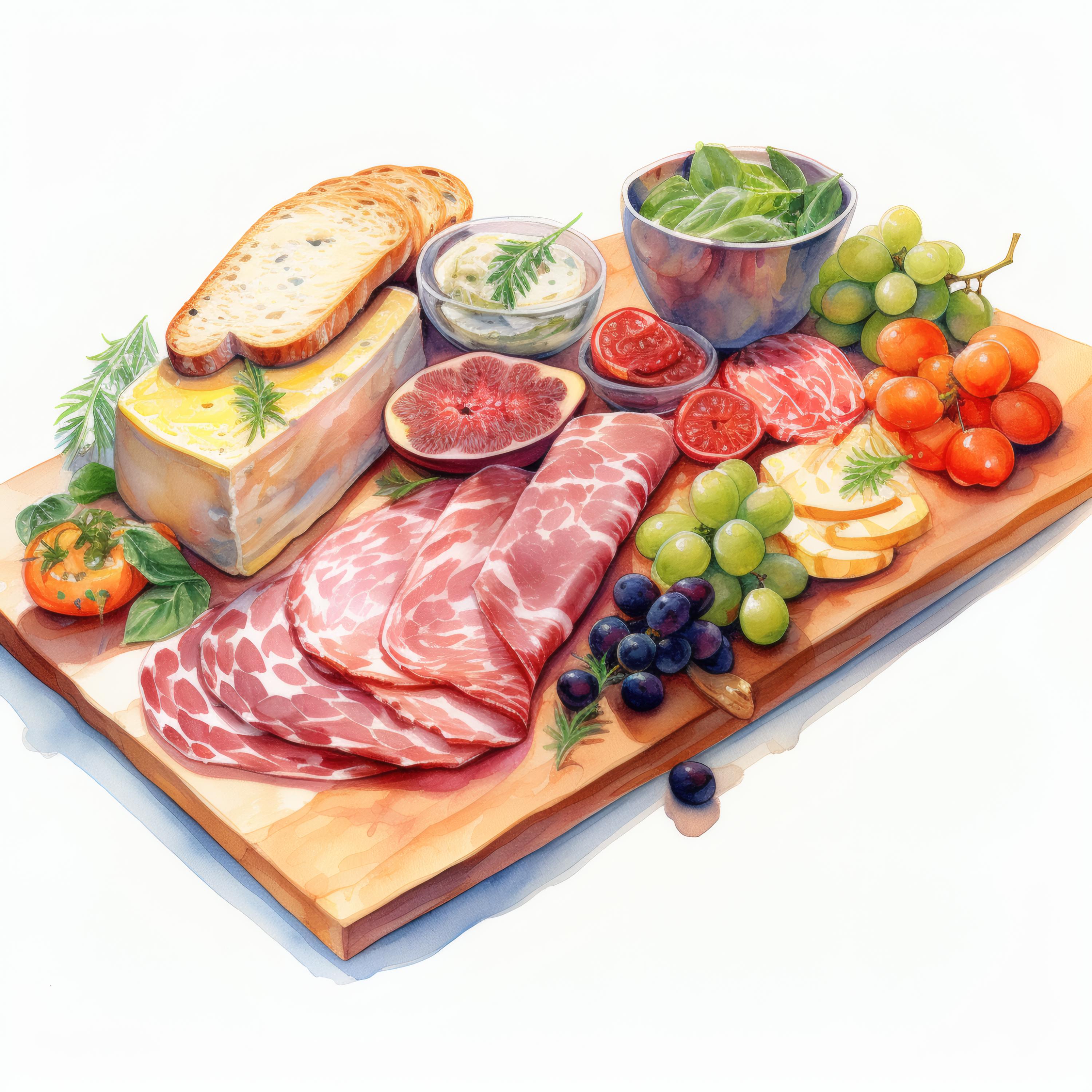 Charcuterie Board Clipart, Gourmet Food Images, 10 Watercolor Clip Art, Printable JPGs, Instant Download, Commercial Use, Paper Craft