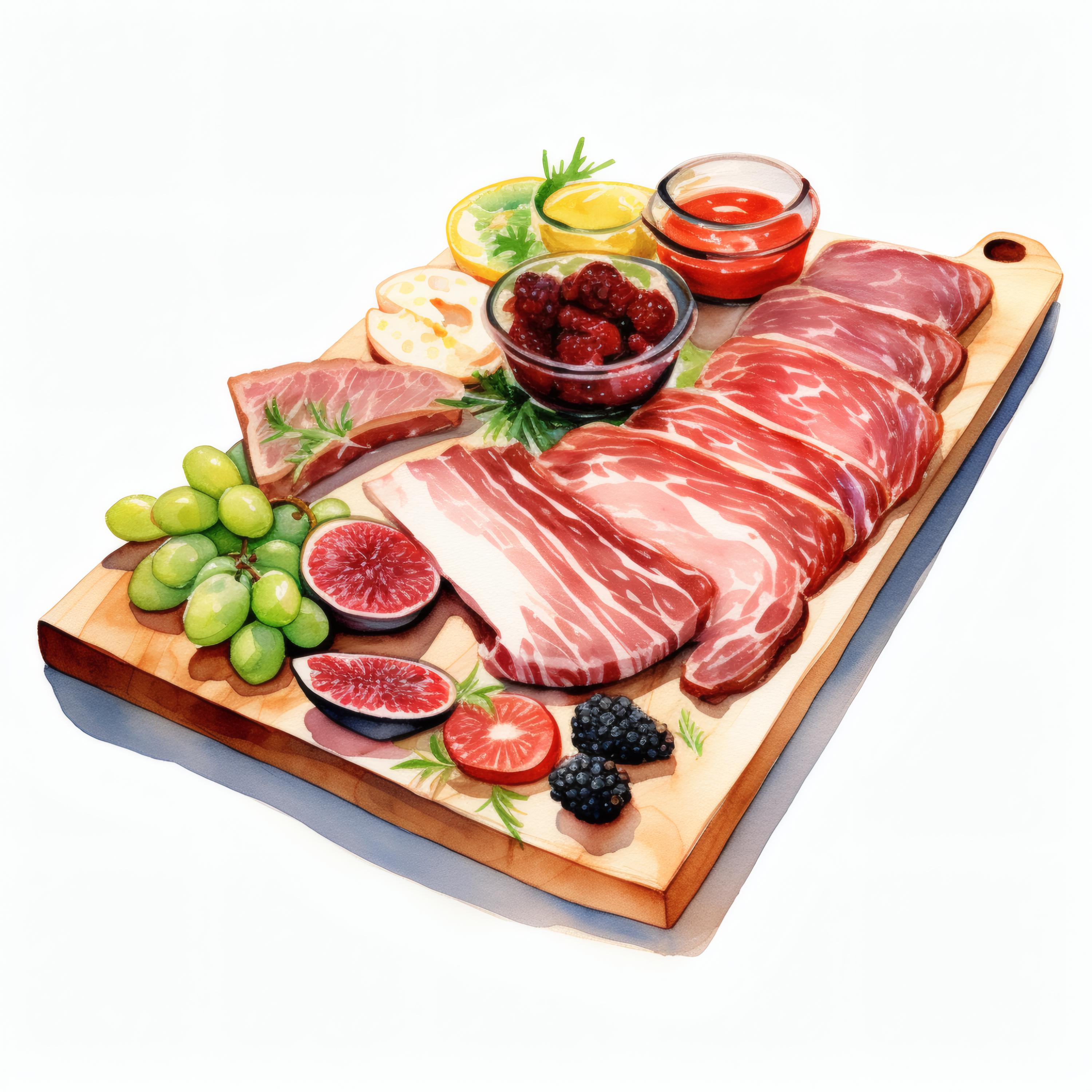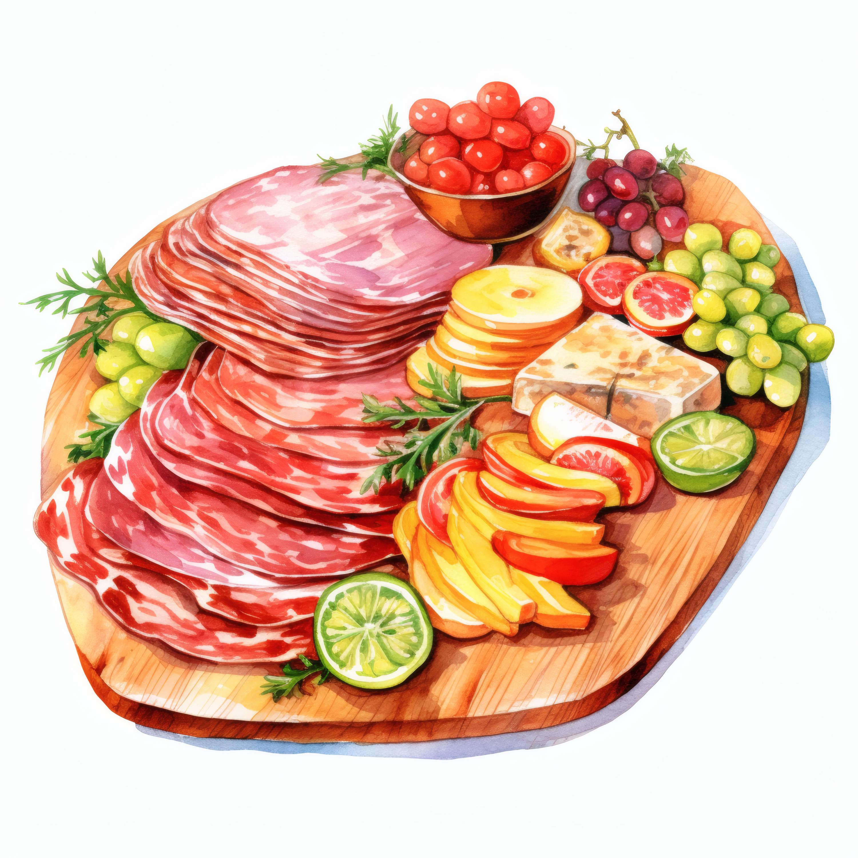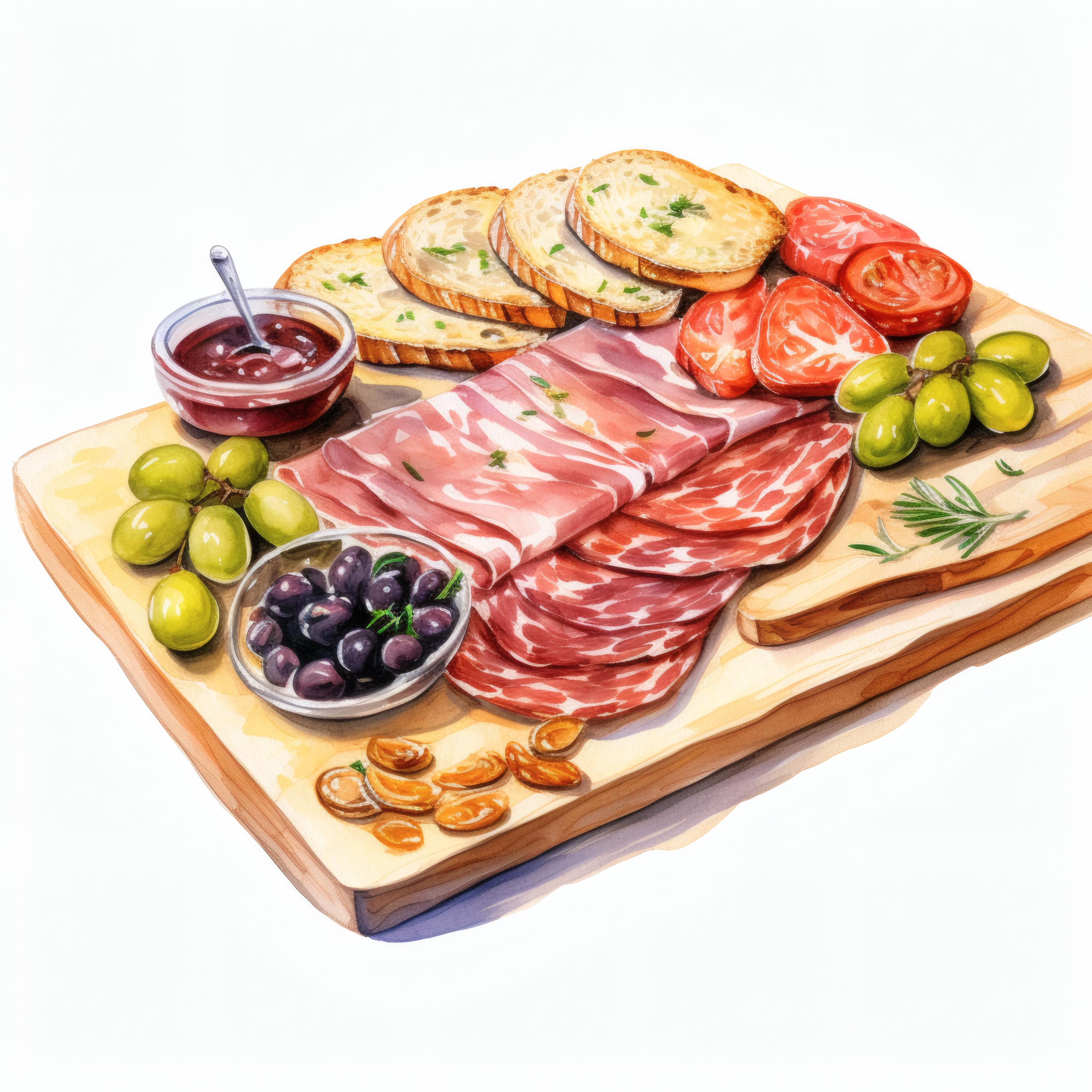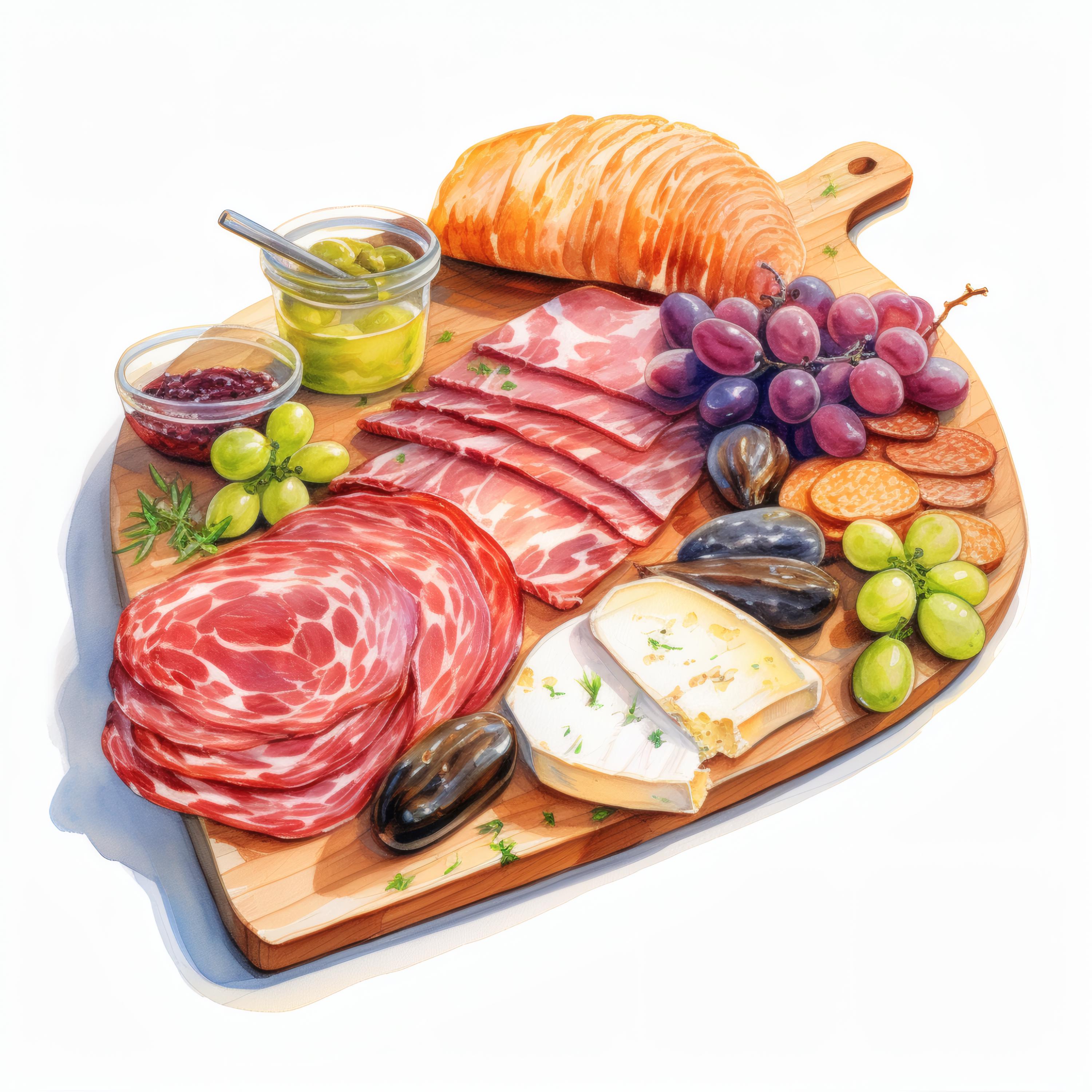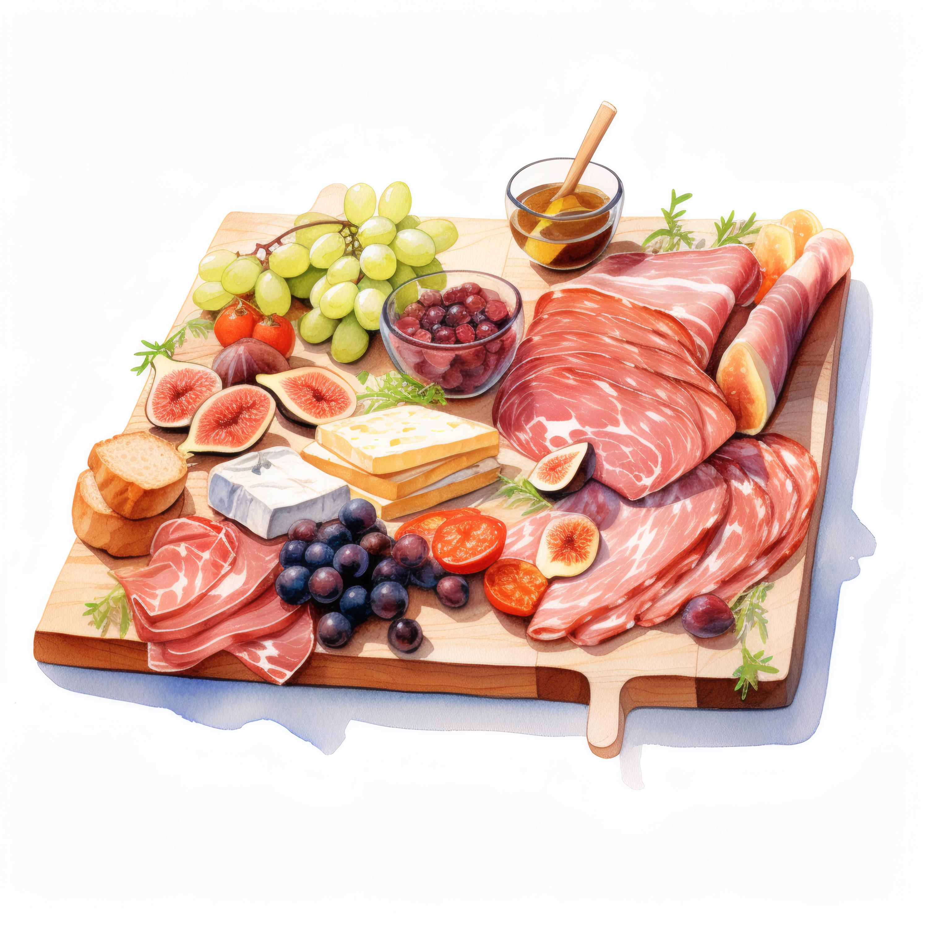 Charcuterie Board Clipart, Gourmet Food Images, 10 Watercolor Clip Art, Printable JPGs, Instant Download, Commercial Use, Paper Craft