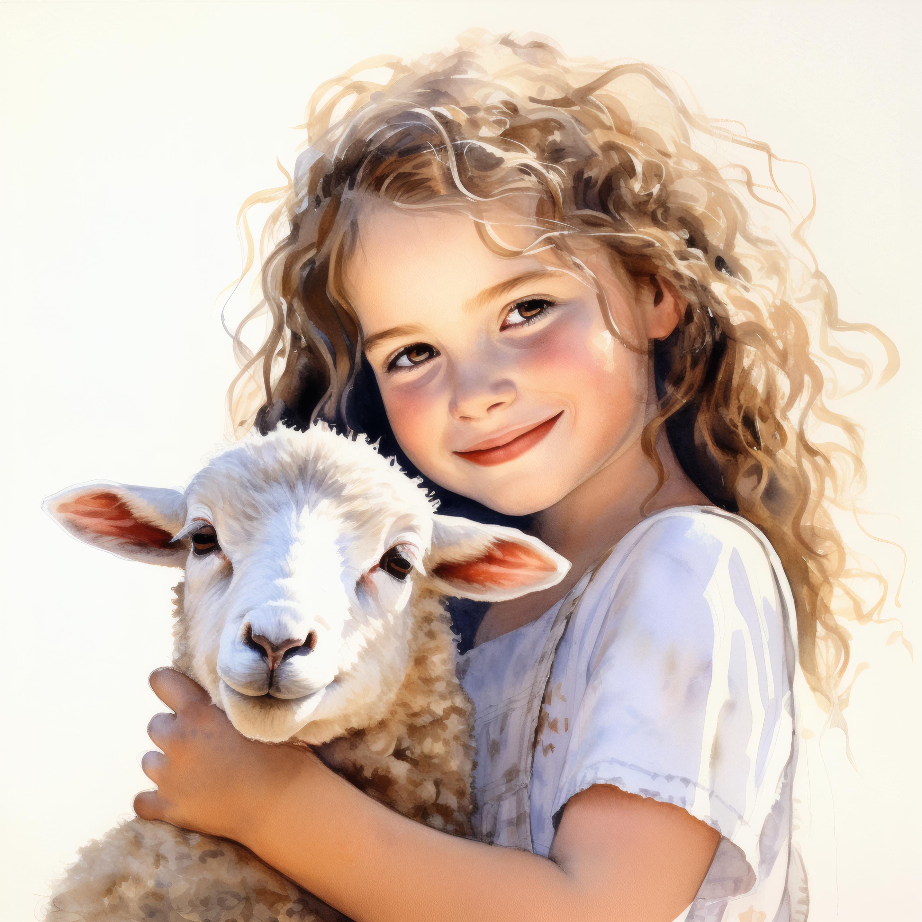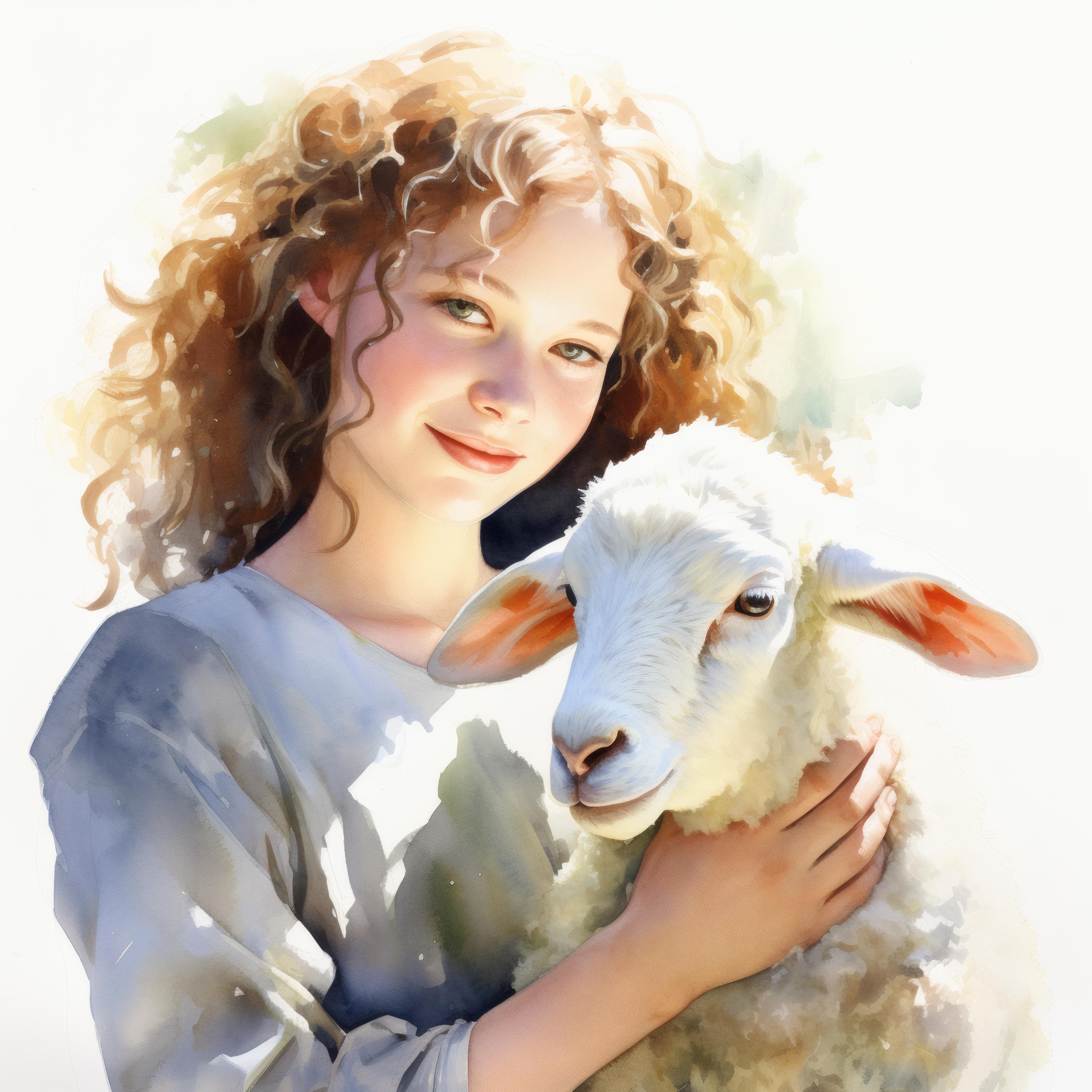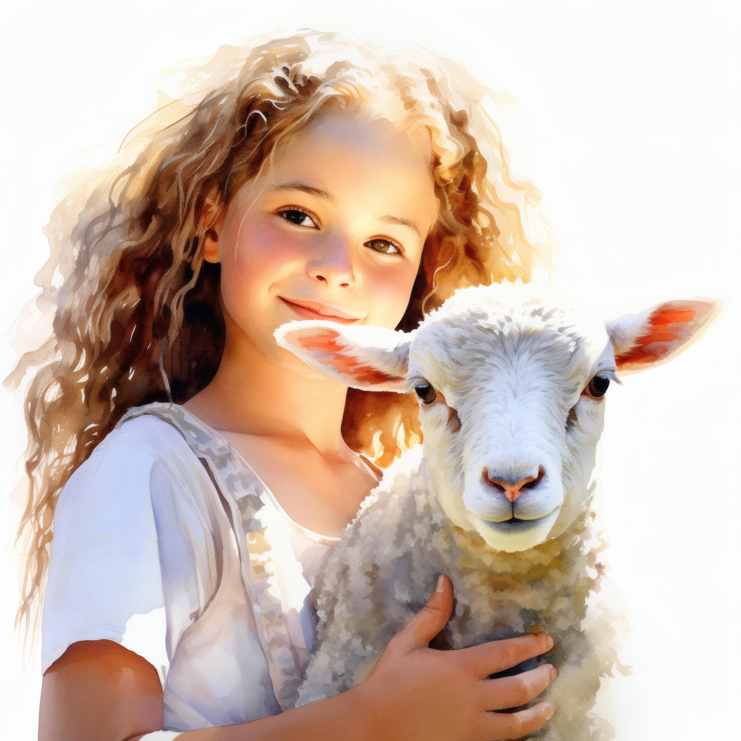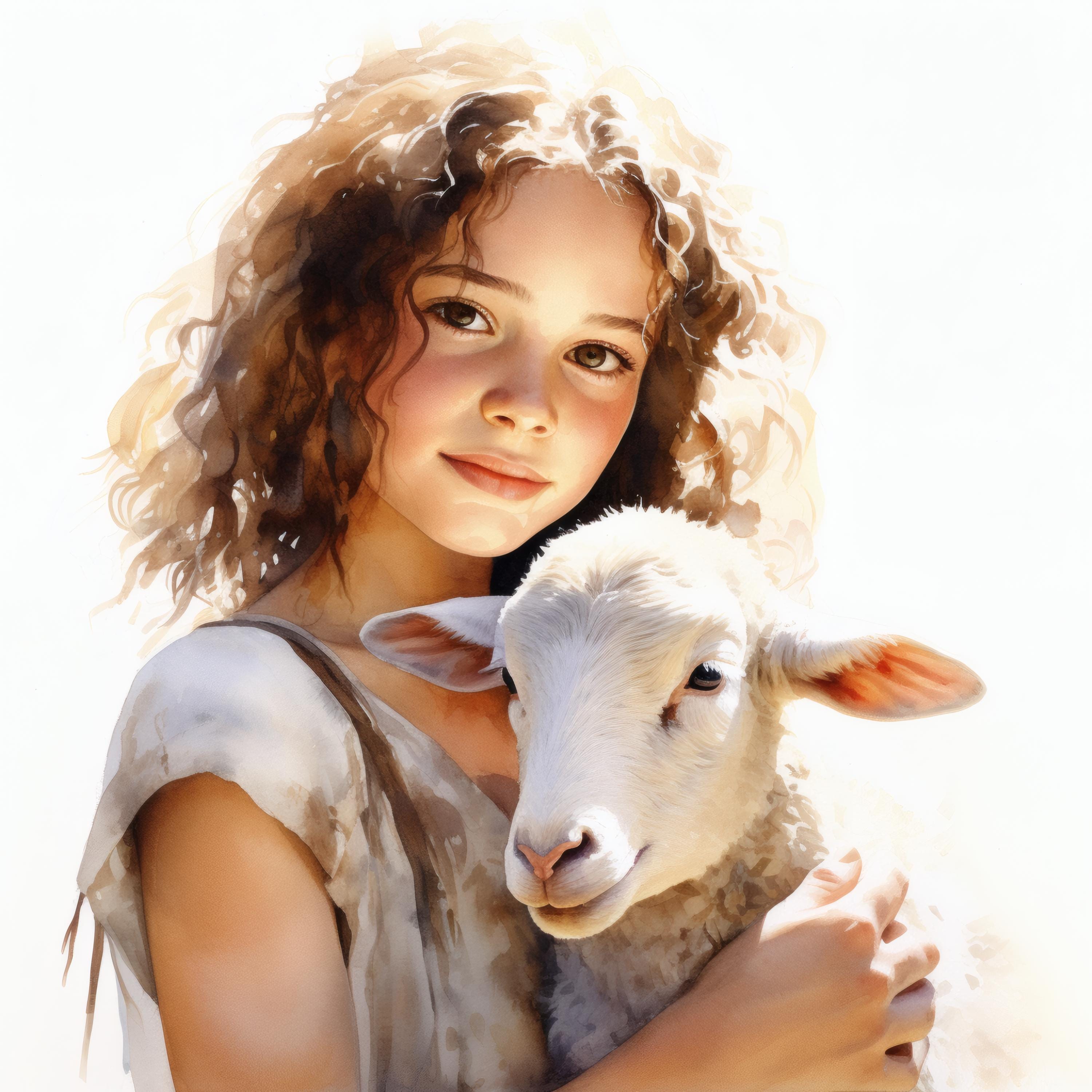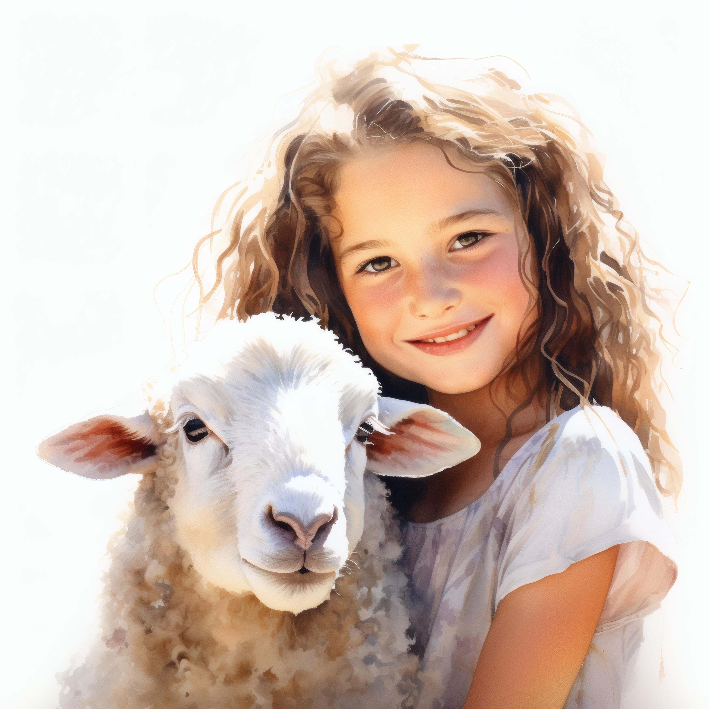 Girl and Lamb Clipart, Pastoral Scene Images, 10 Watercolor Clip Art, Printable JPGs, Instant Download, Commercial Use, Paper Craft