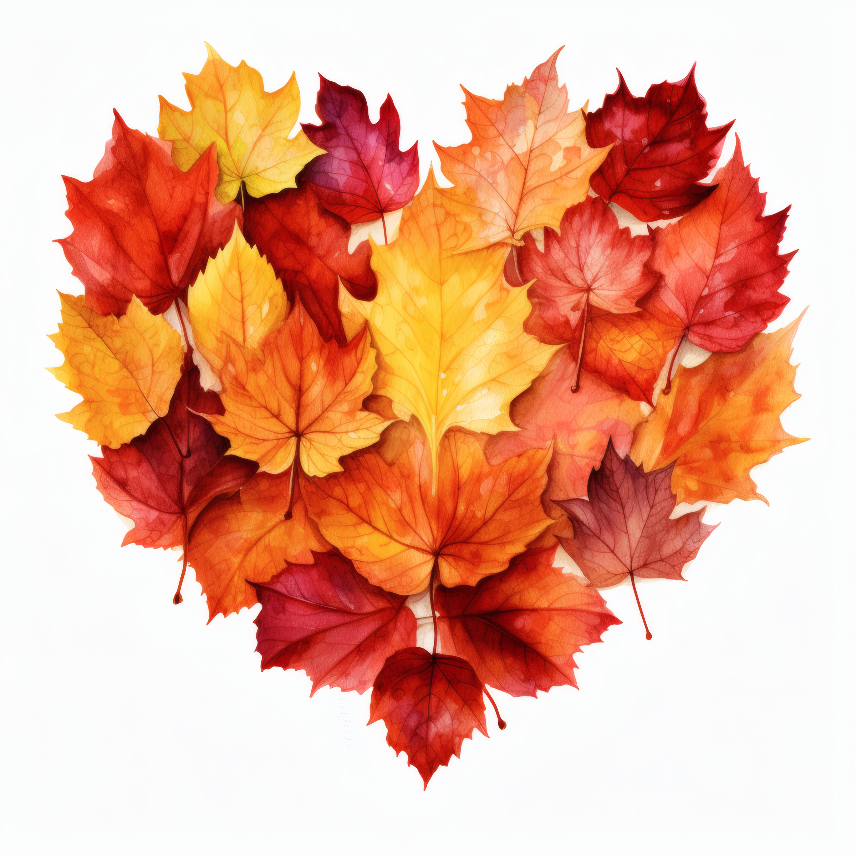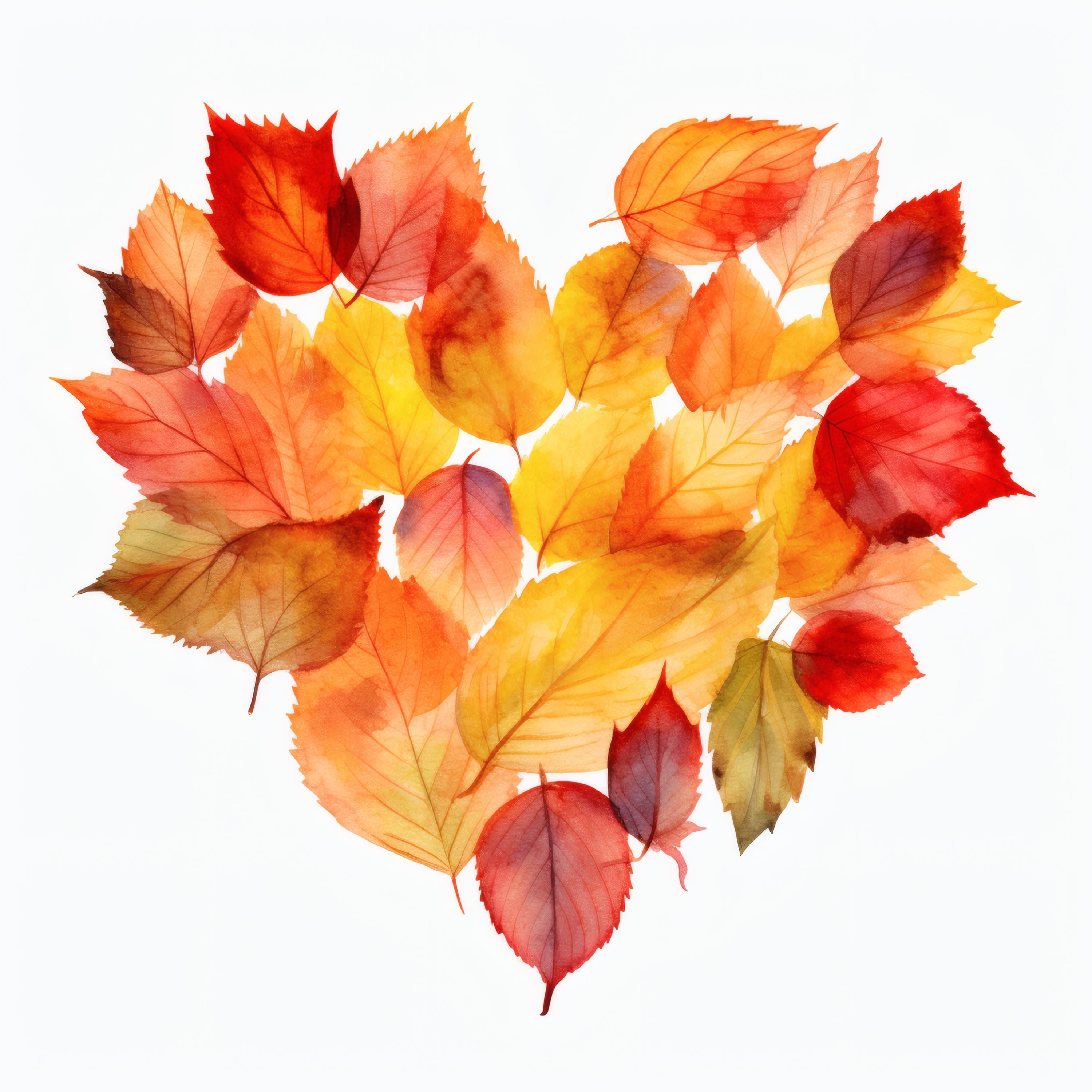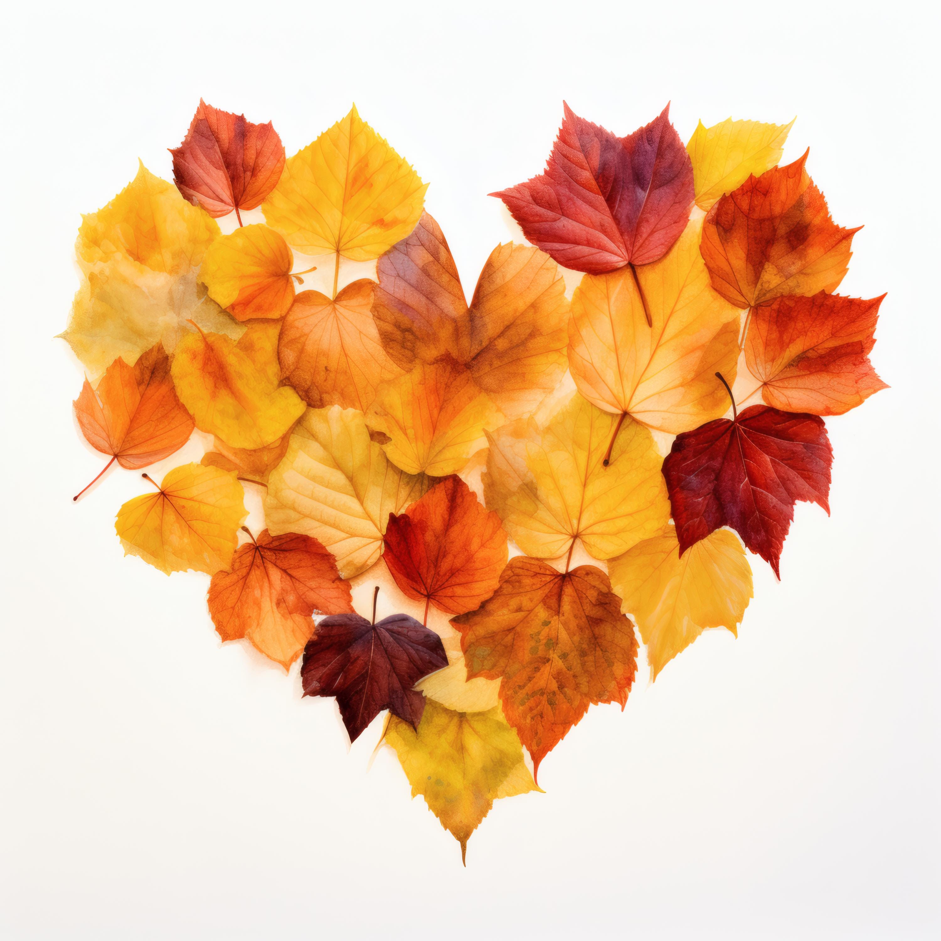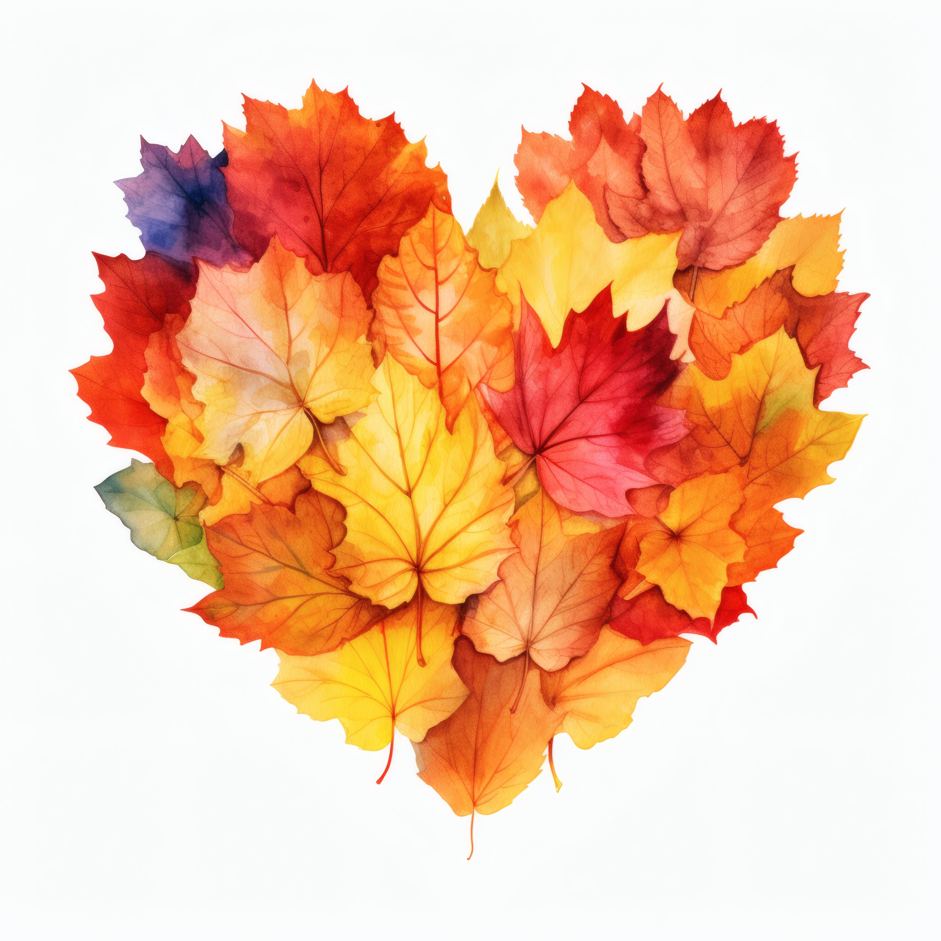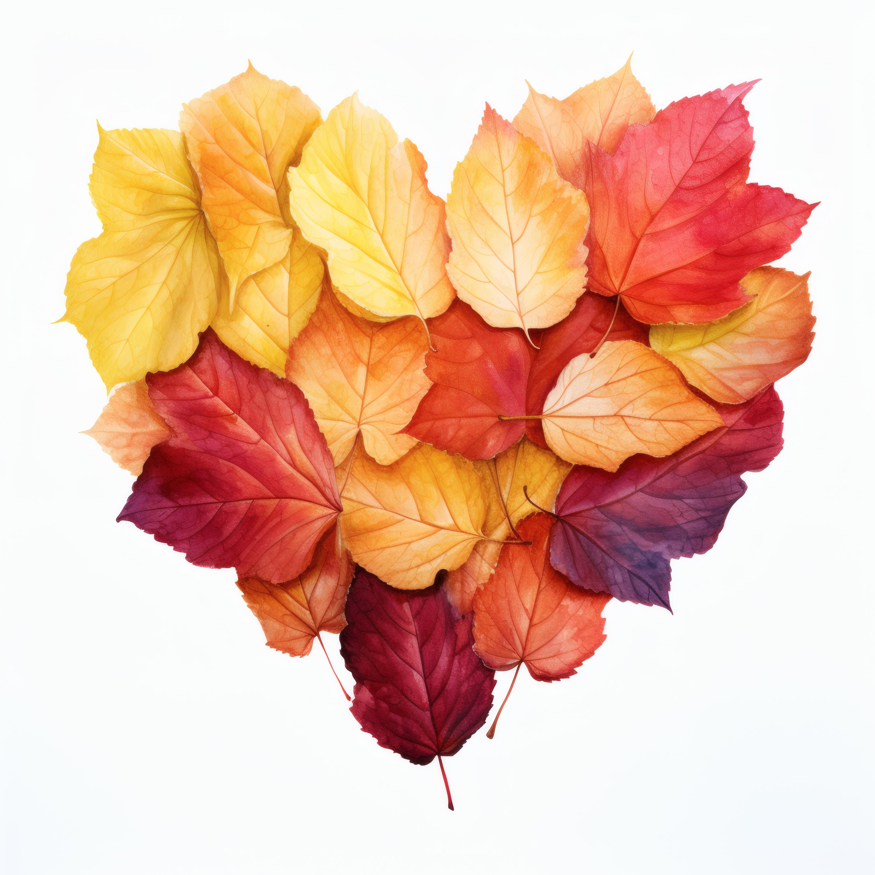 Autumn Leaves Heart Clipart, Fall Foliage Images, 10 Watercolor Clip Art, Printable JPGs, Instant Download, Commercial Use, Paper Craft