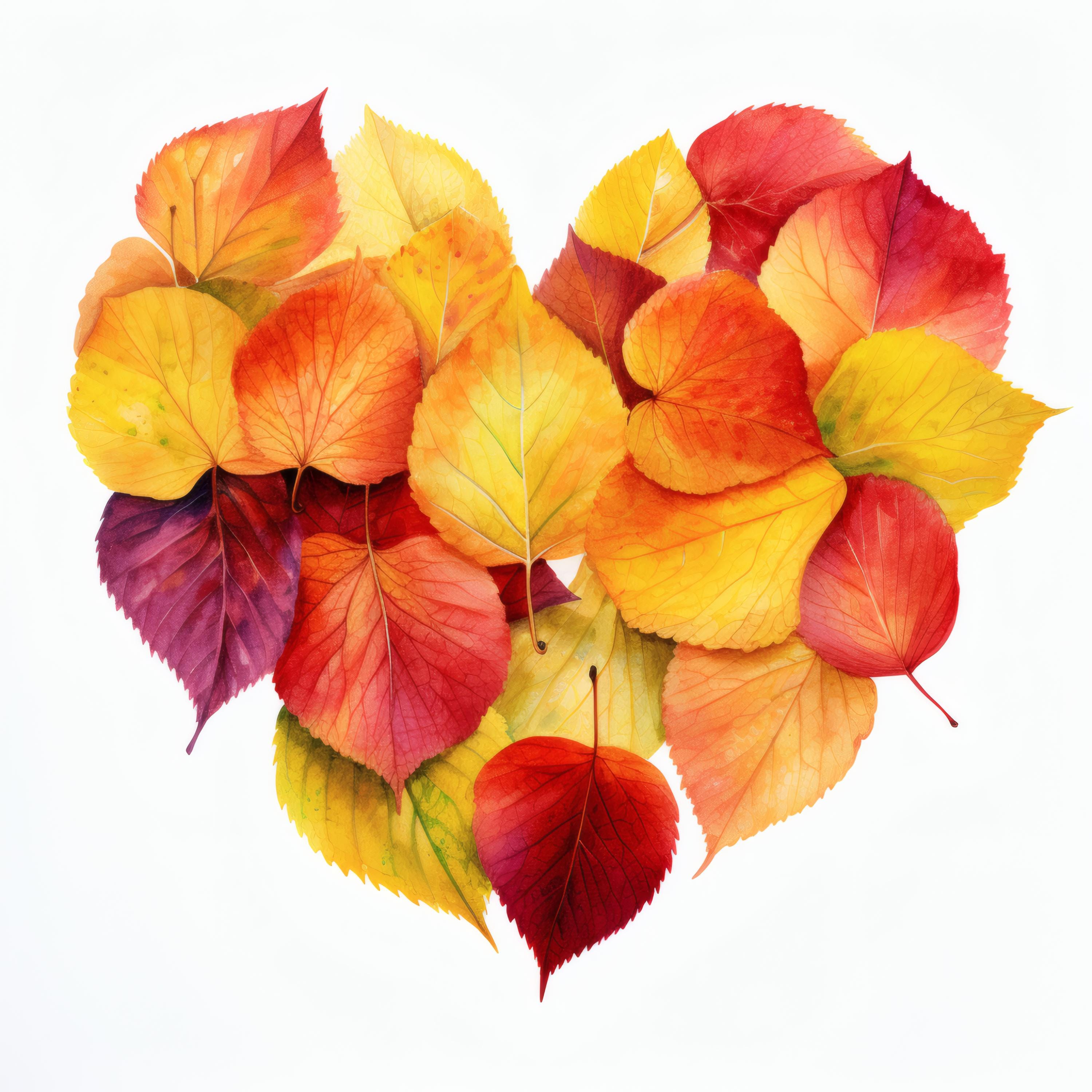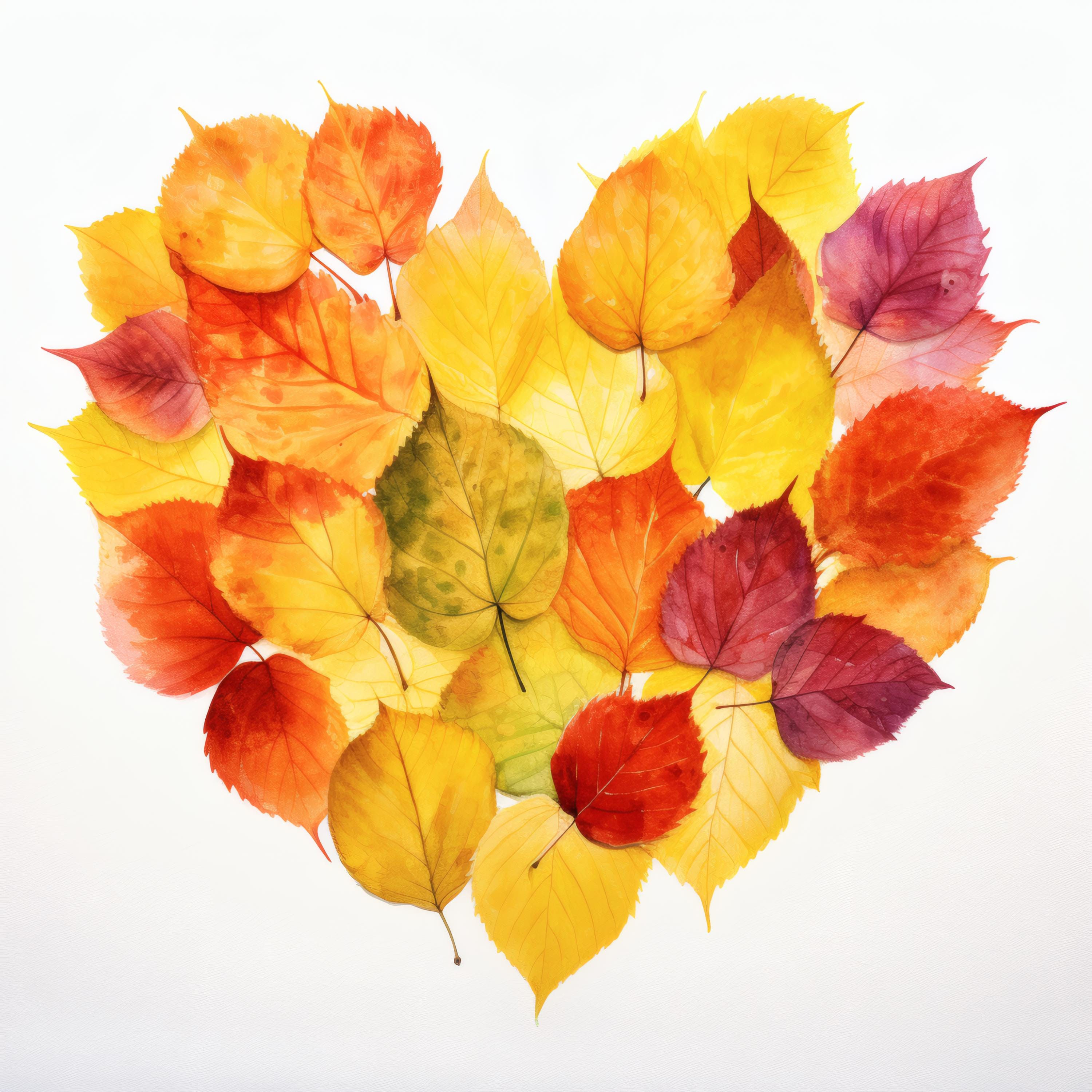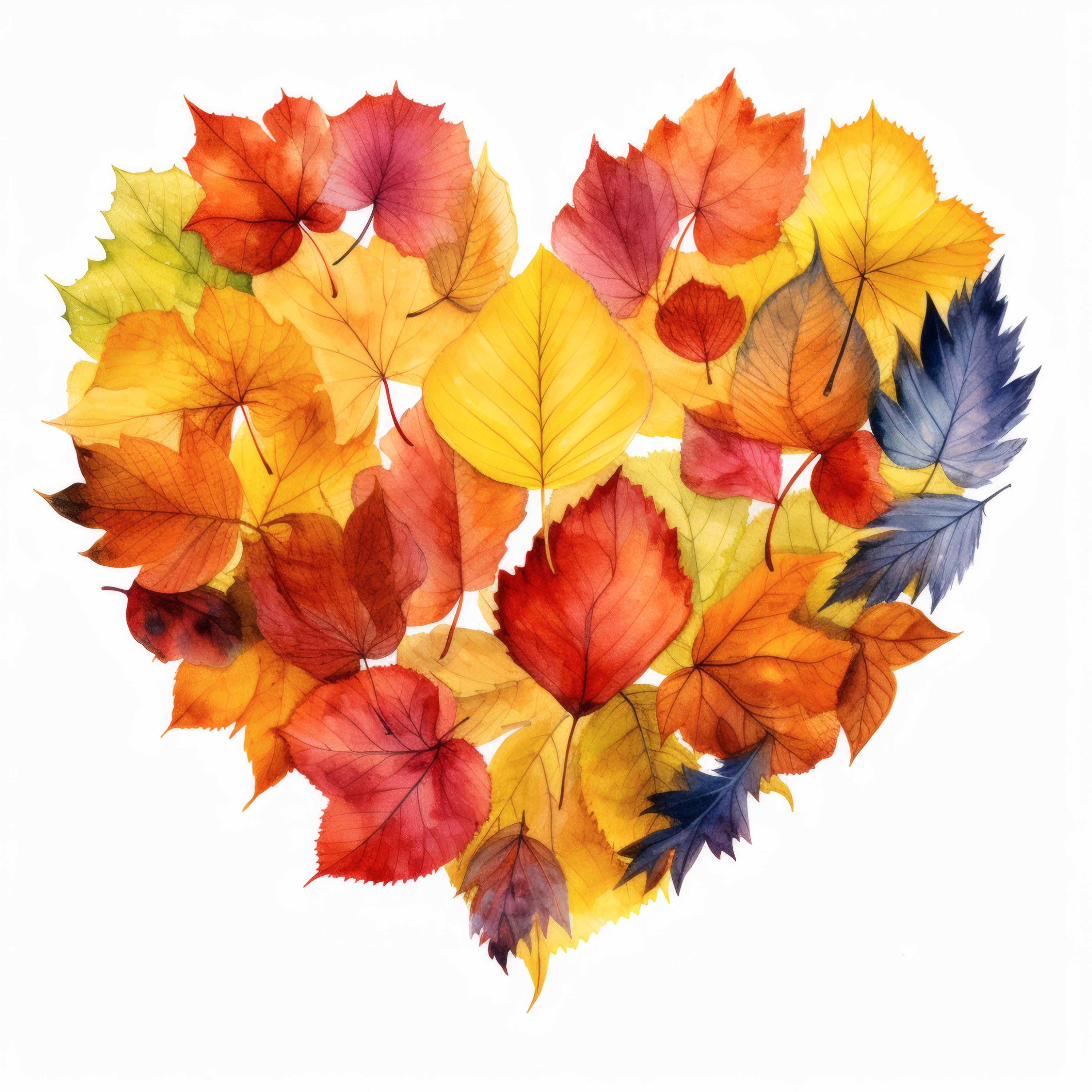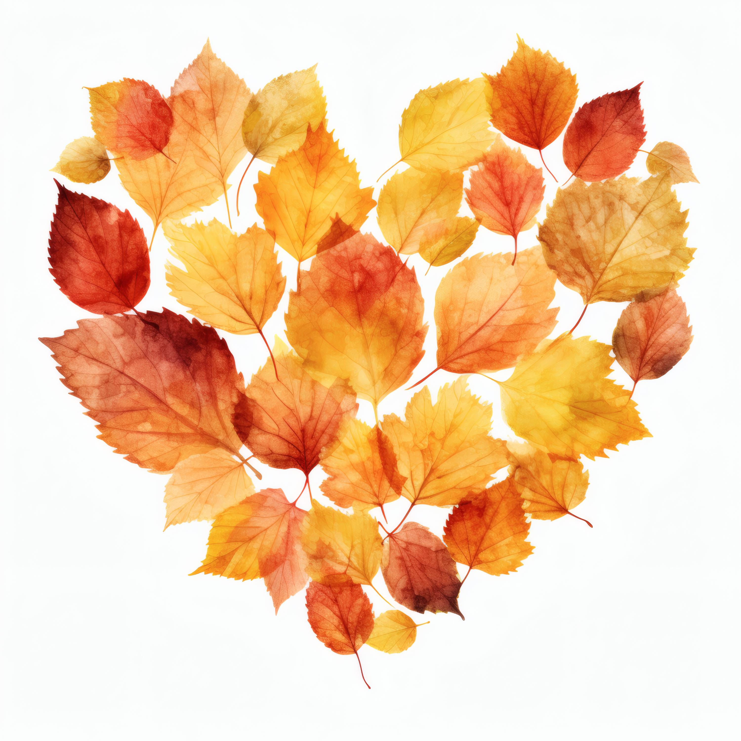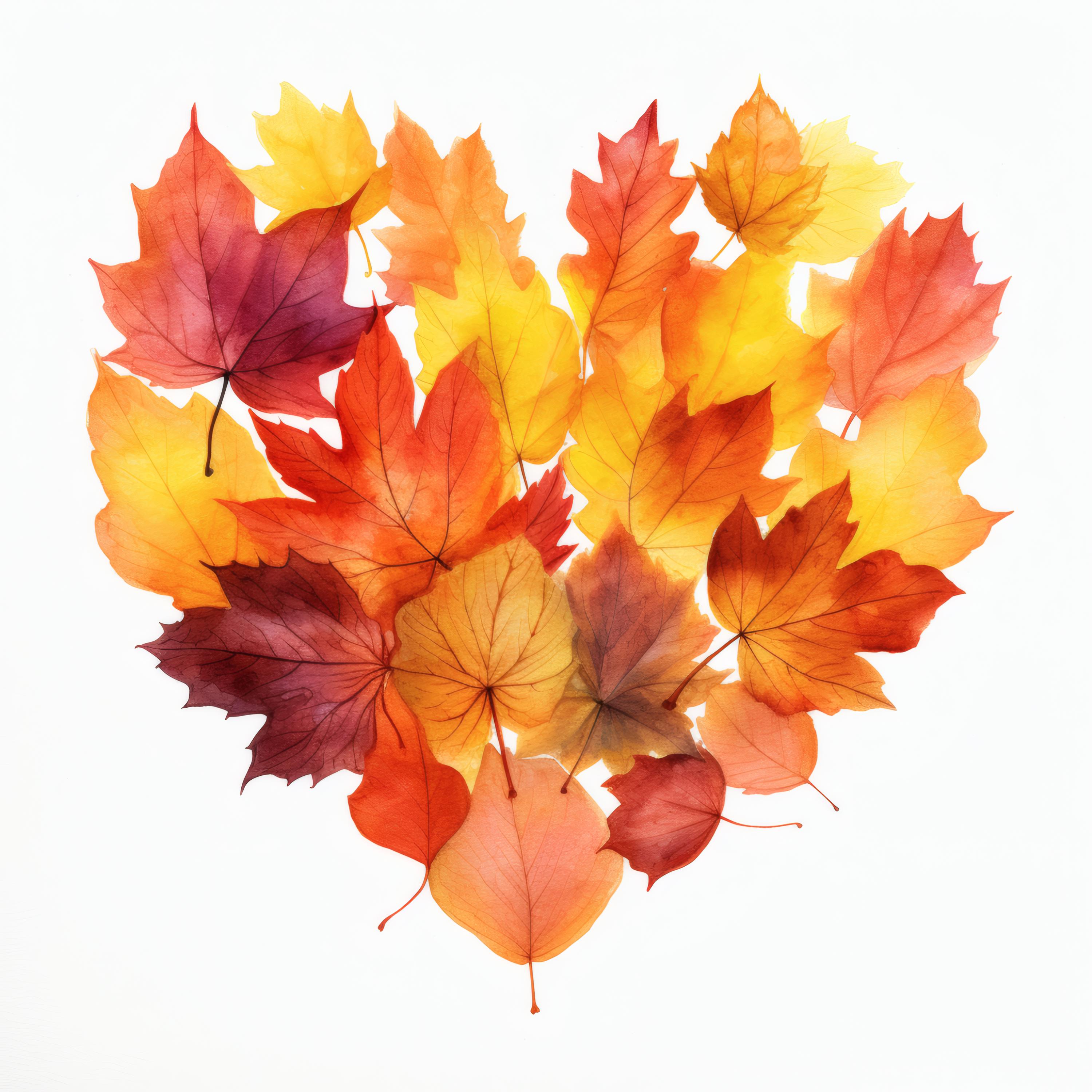 Autumn Leaves Heart Clipart, Fall Foliage Images, 10 Watercolor Clip Art, Printable JPGs, Instant Download, Commercial Use, Paper Craft