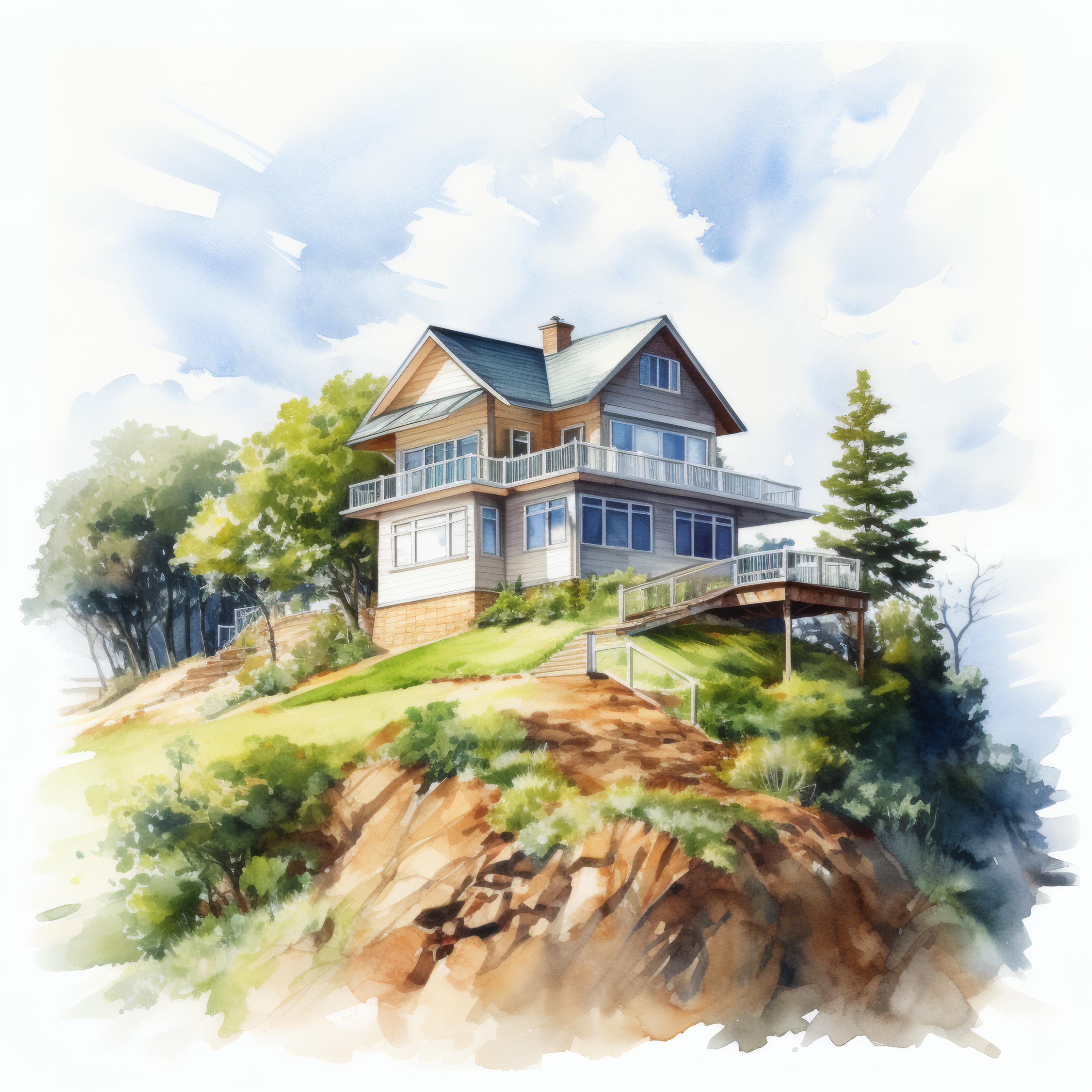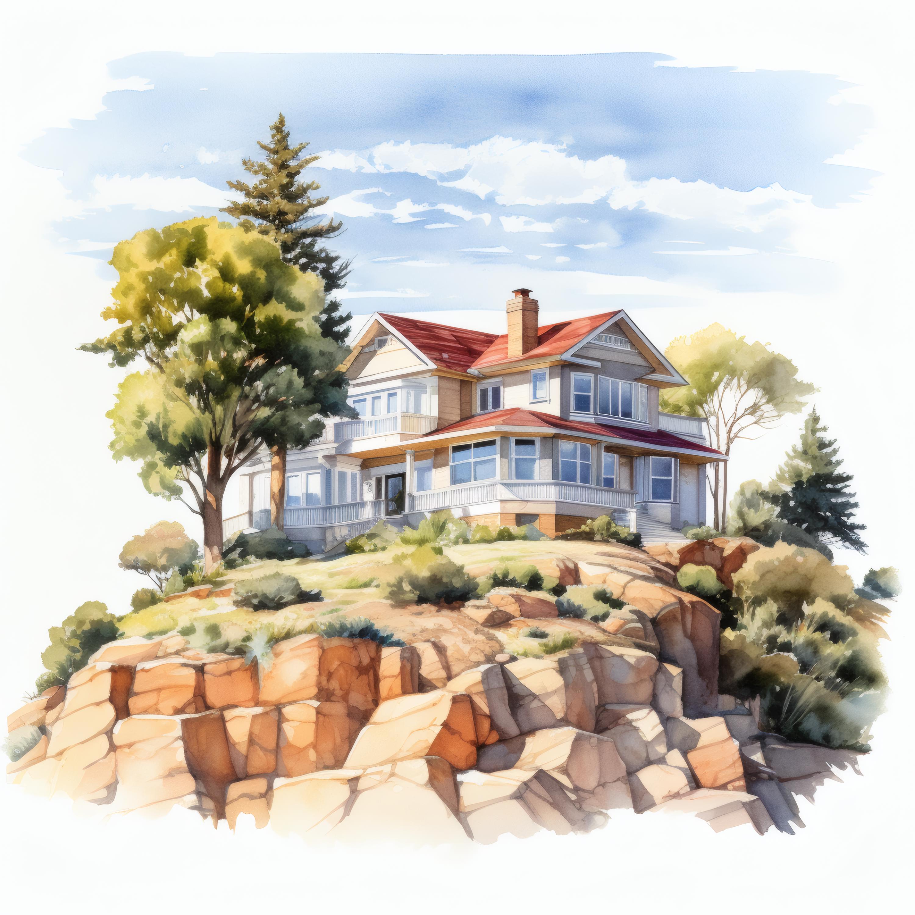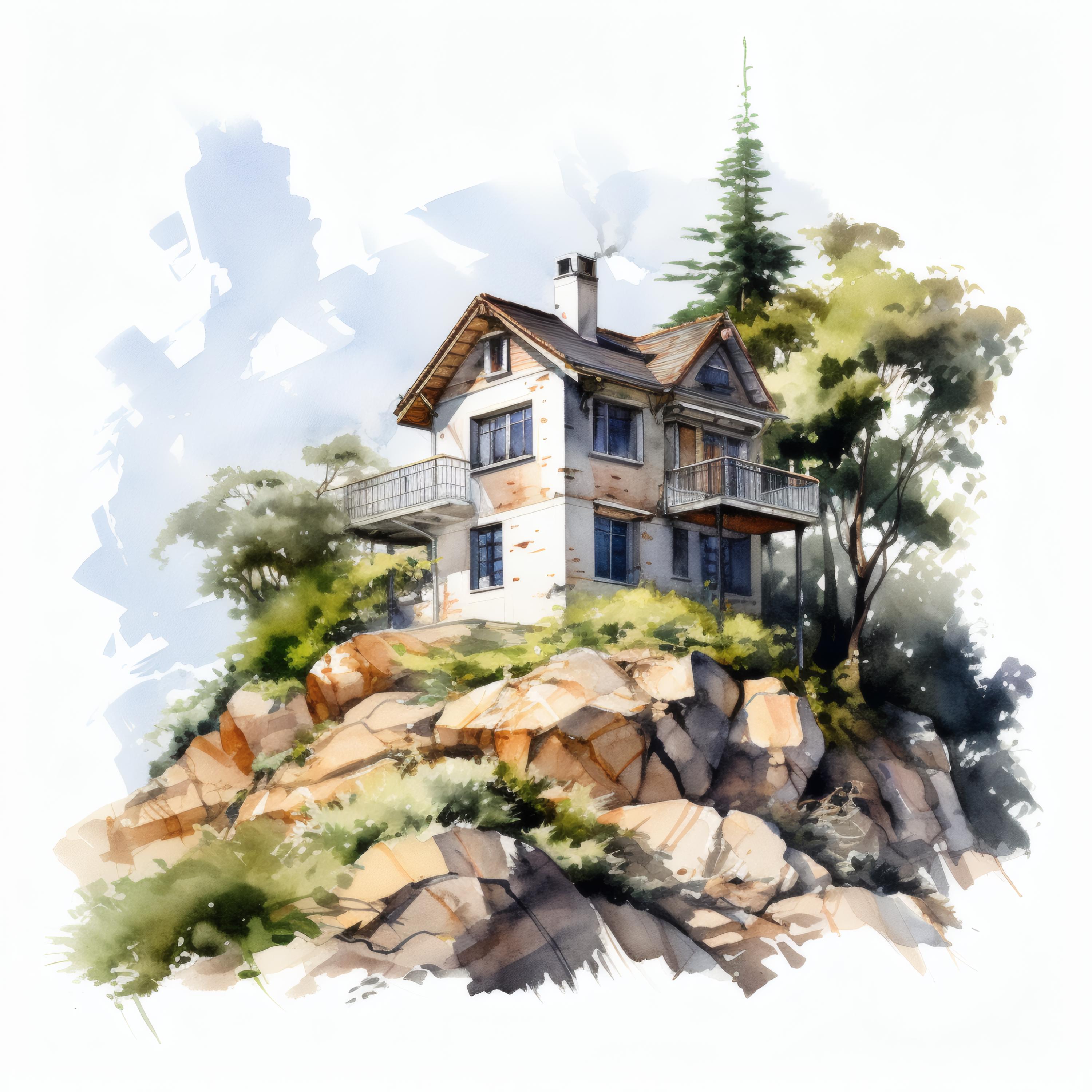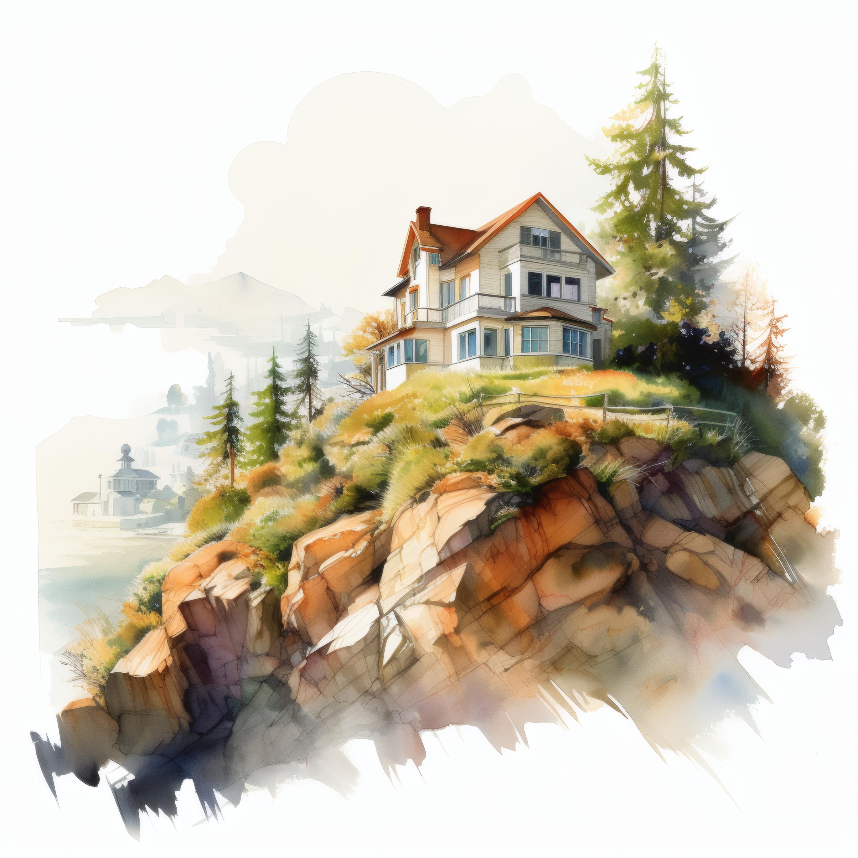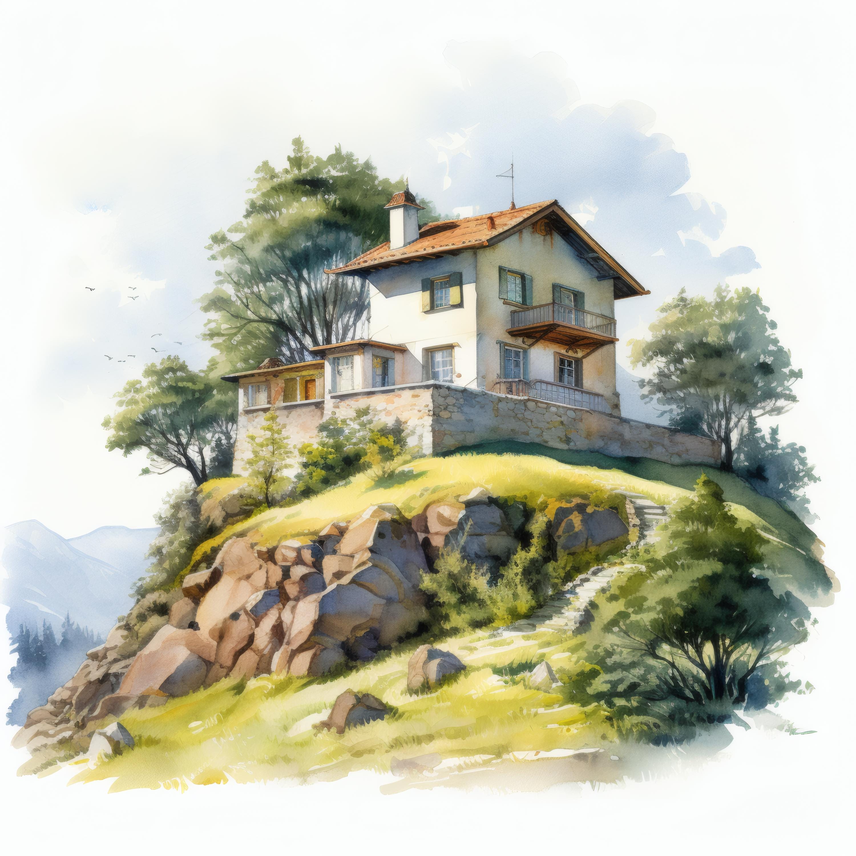 Hilltop House Clipart, Mountain Home Images, 10 Watercolor Clip Art, Printable JPGs, Instant Download, Commercial Use, Paper Craft