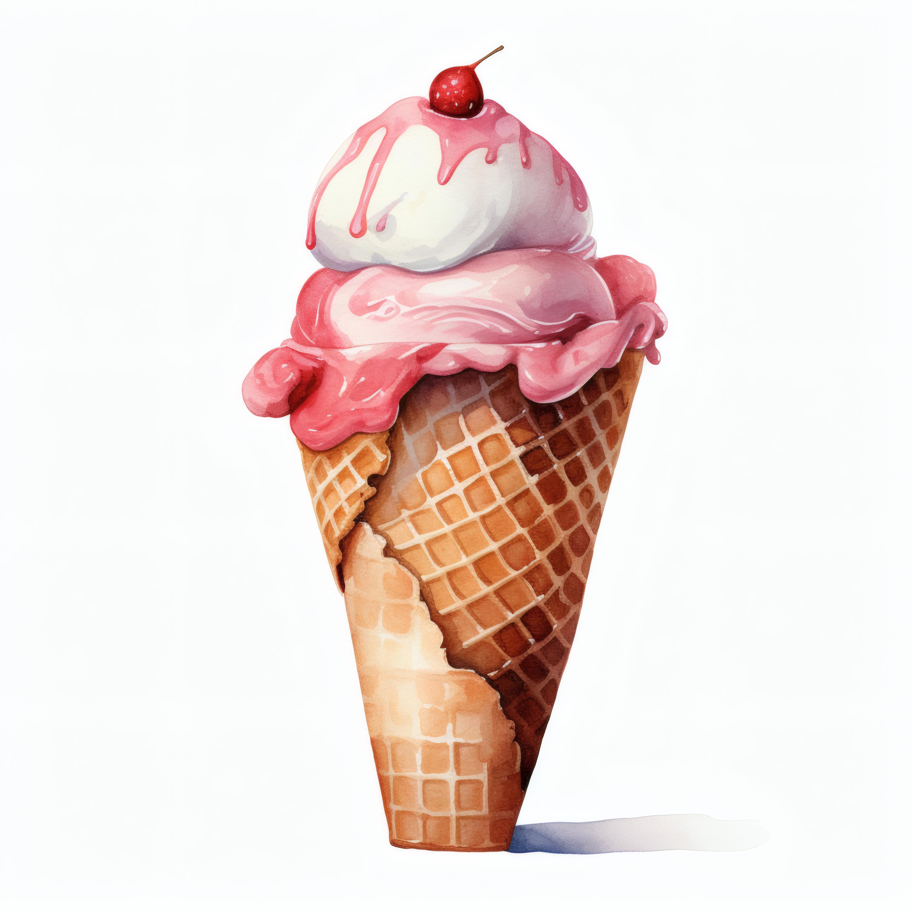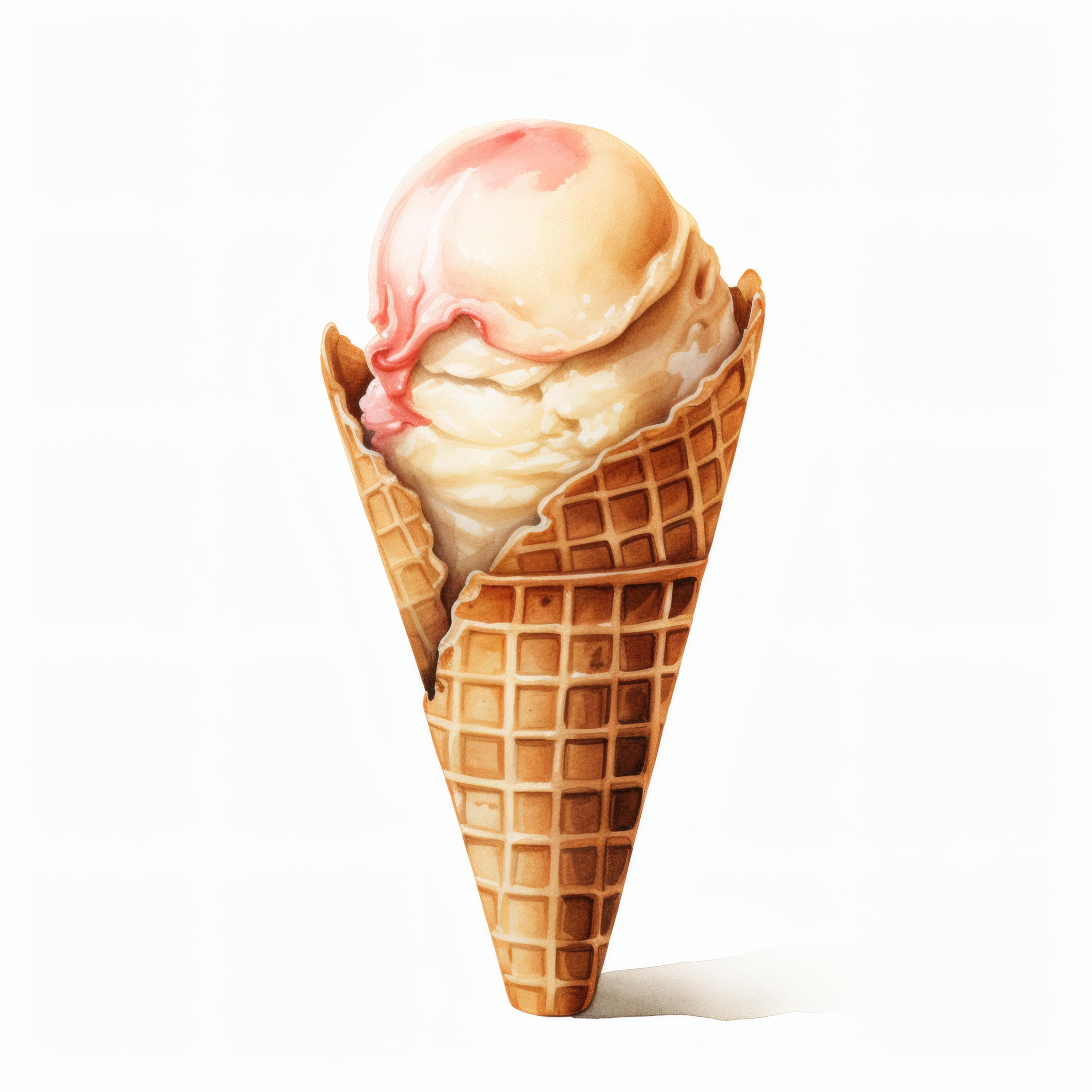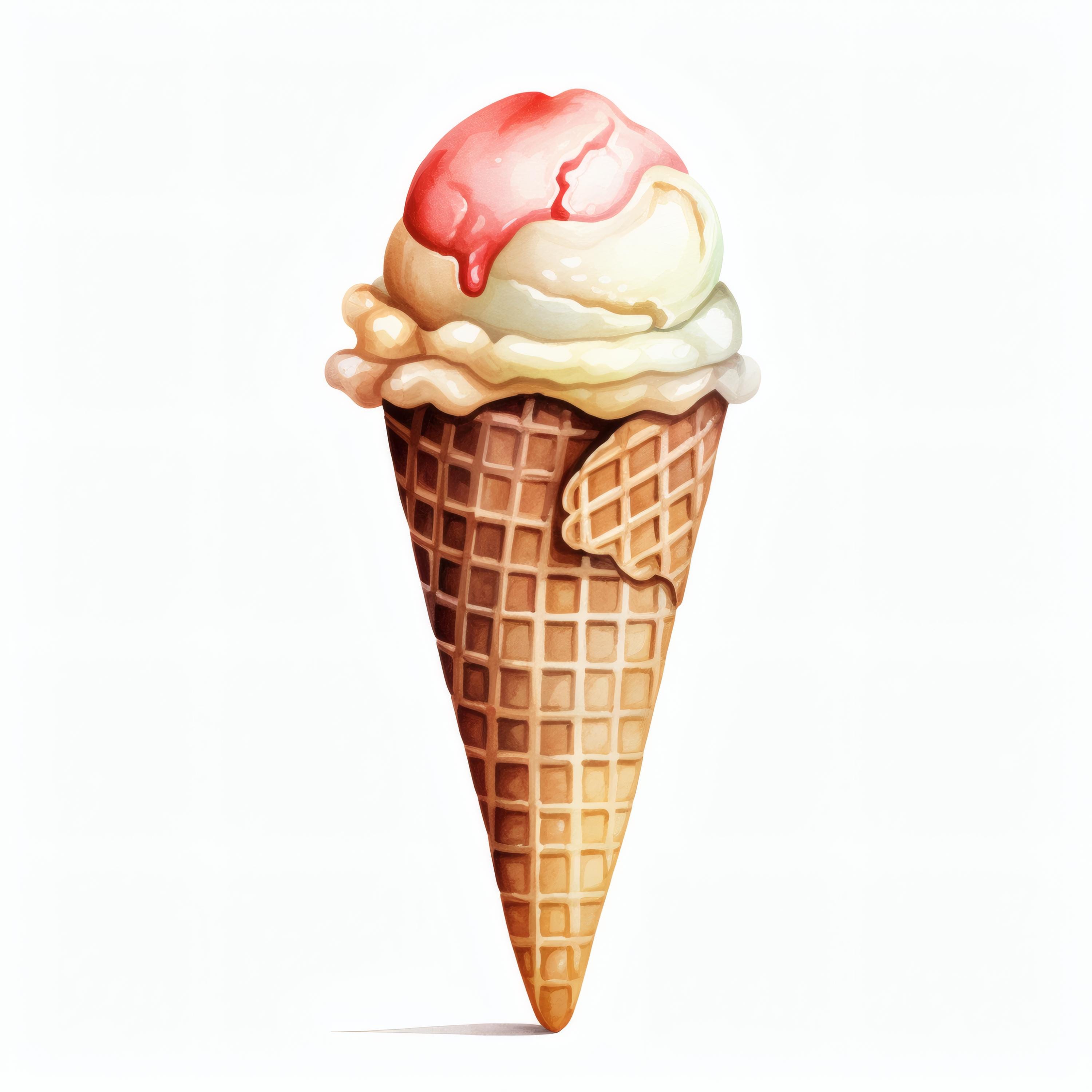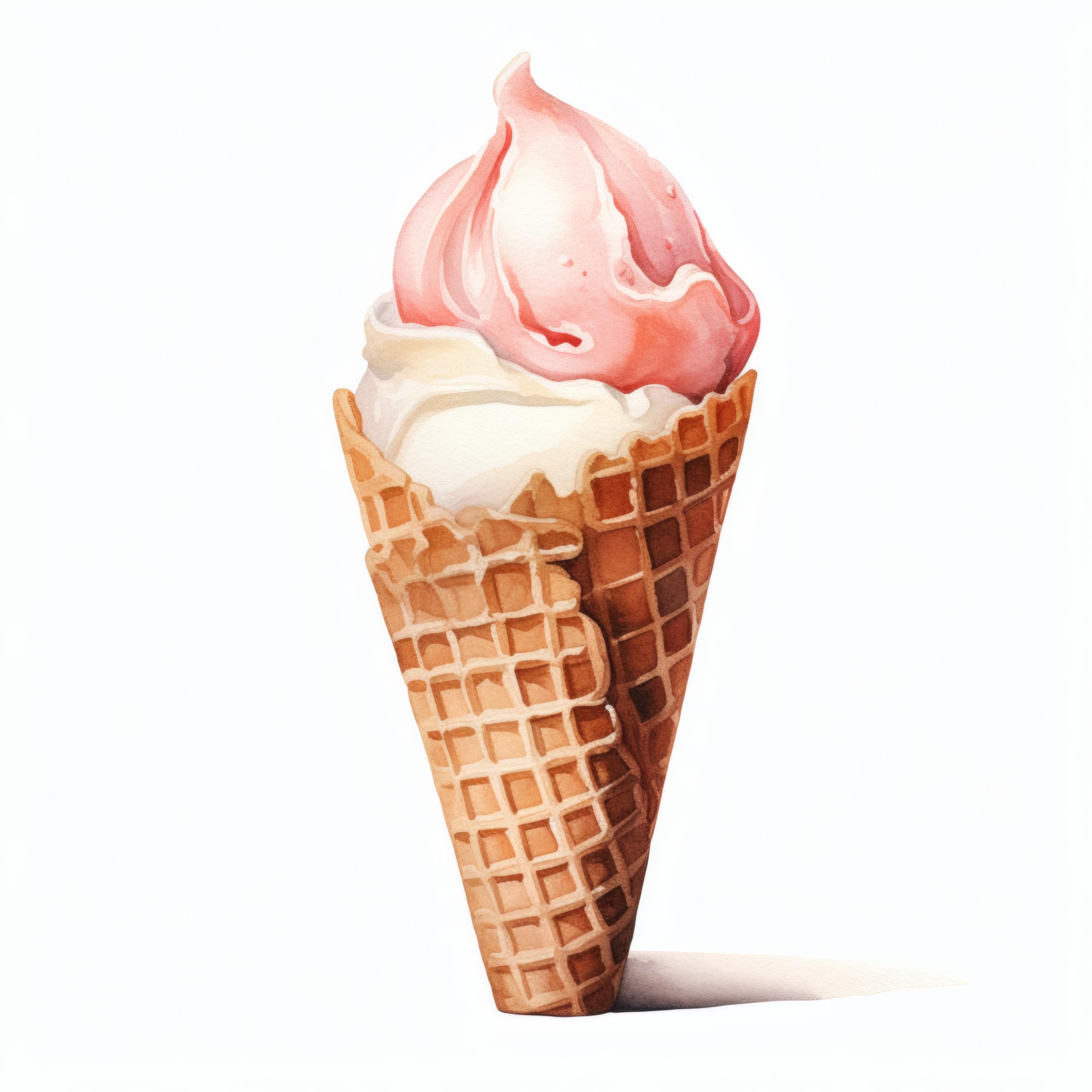 Ice Cream Cone Clipart, Sweet Dessert Images, 10 Watercolor Clip Art, Printable JPGs, Instant Download, Commercial Use, Paper Craft