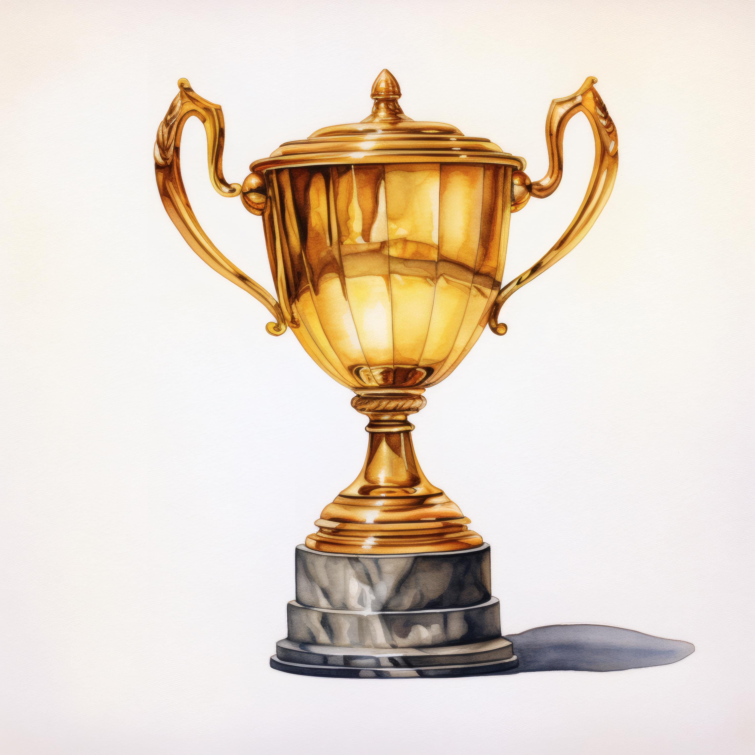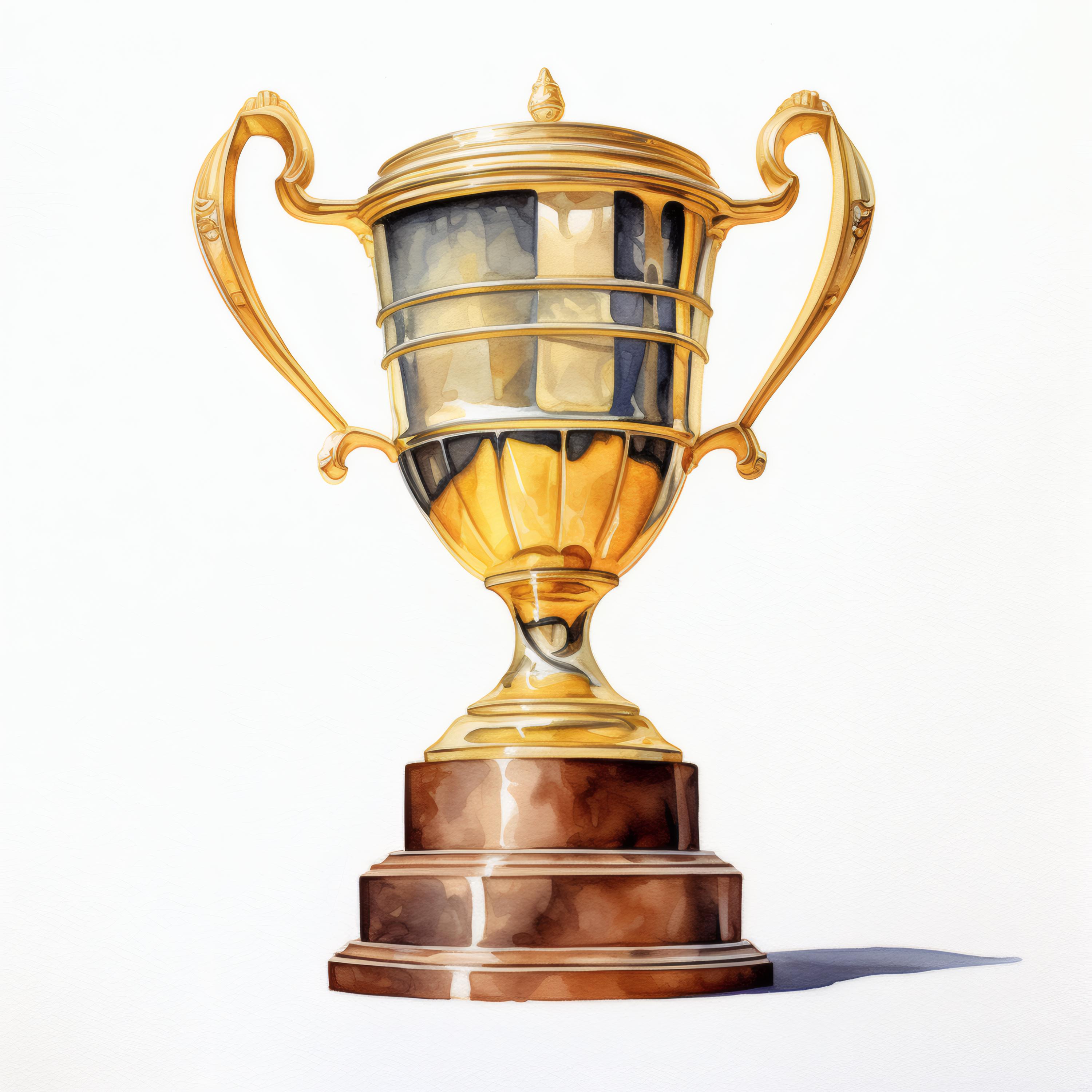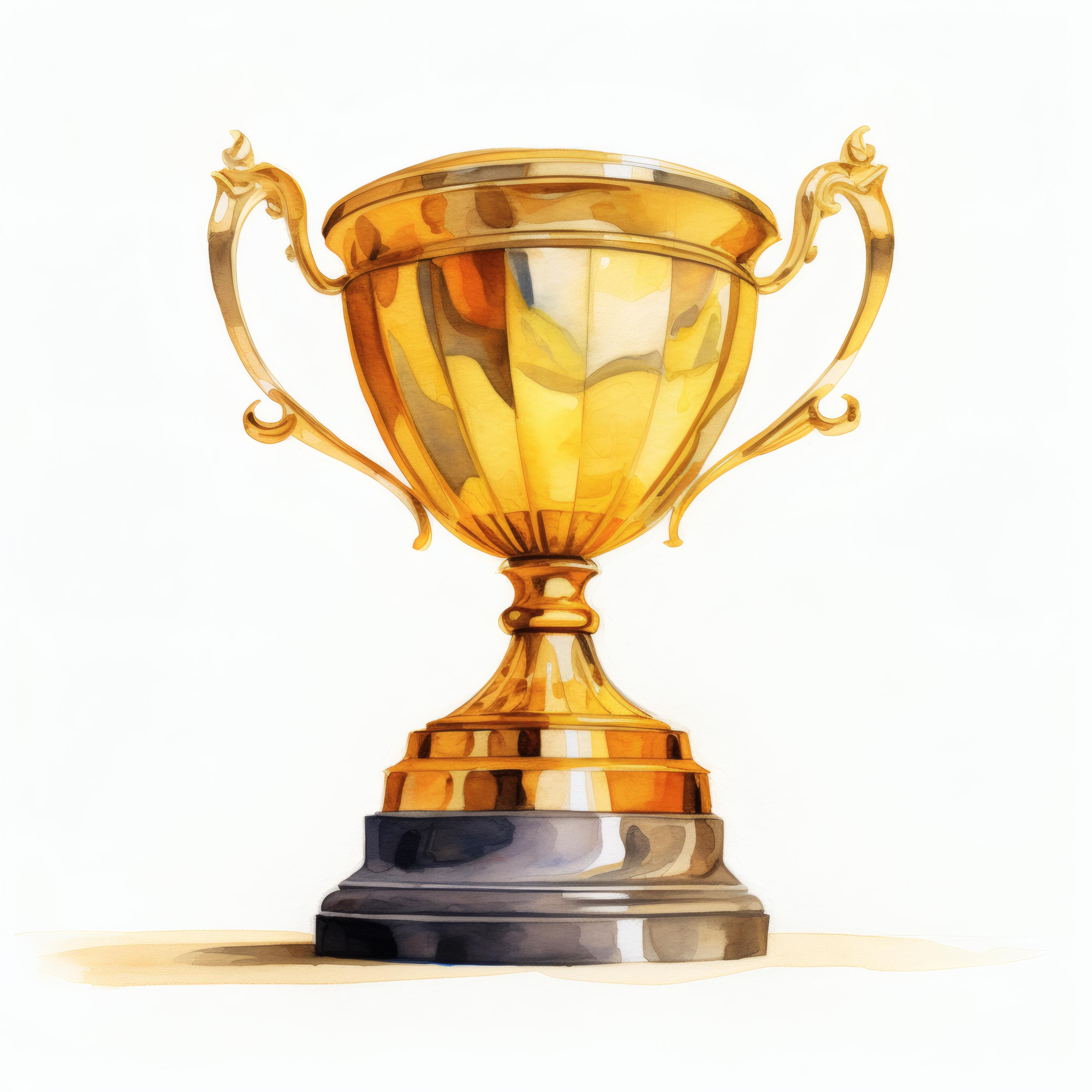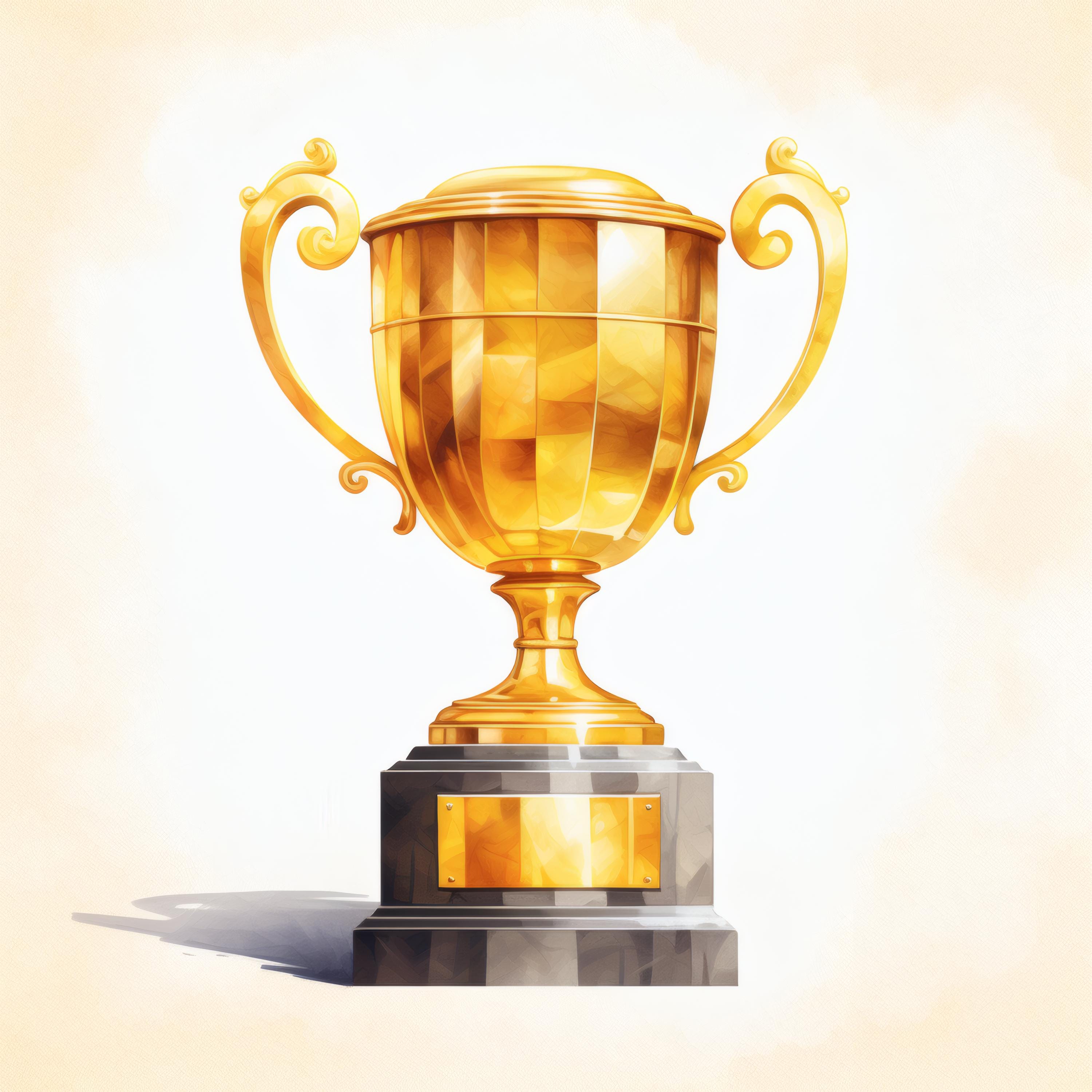 Trophy Clipart, Golden Award Images, 10 Watercolor Clip Art, Printable JPGs, Instant Download, Commercial Use, Paper Craft
