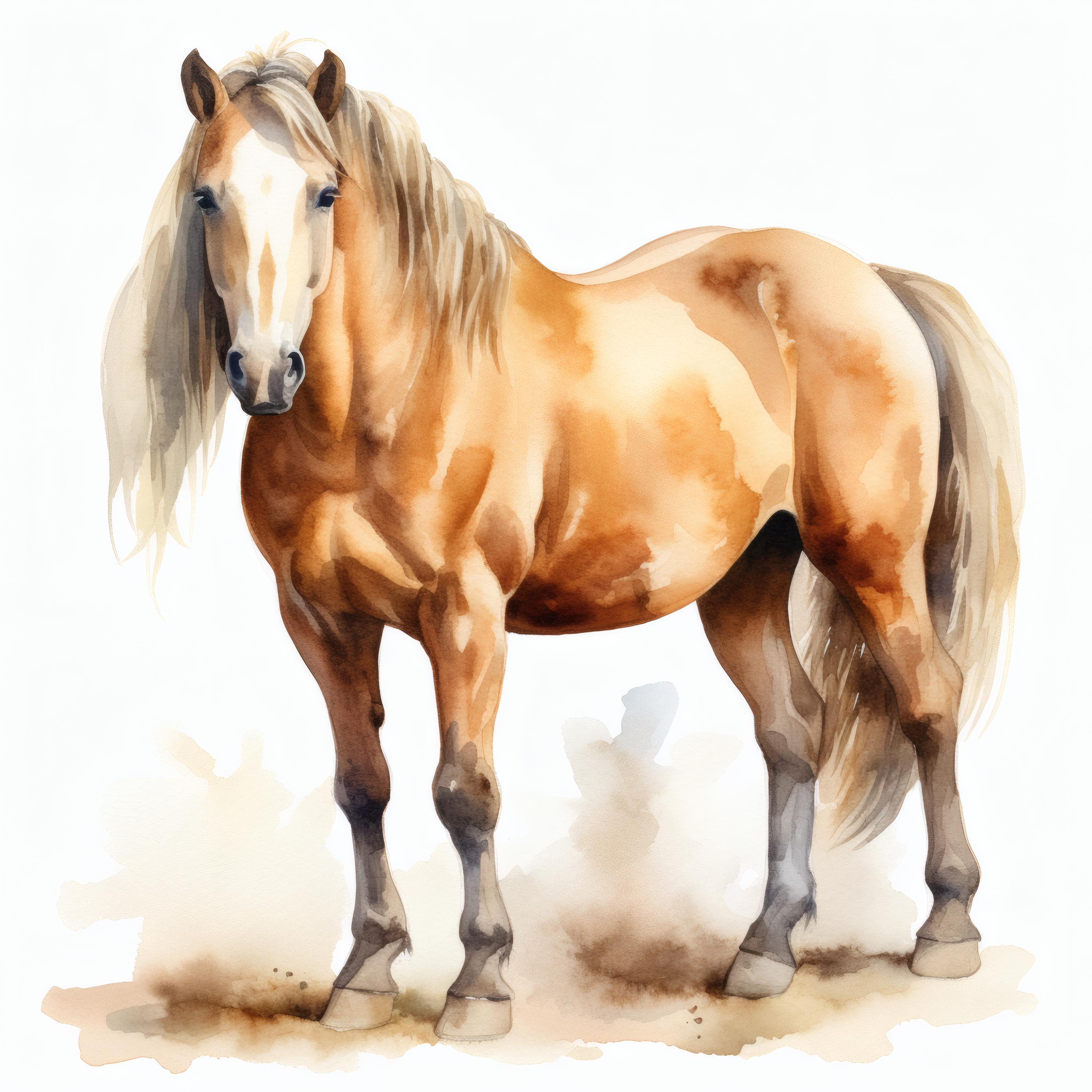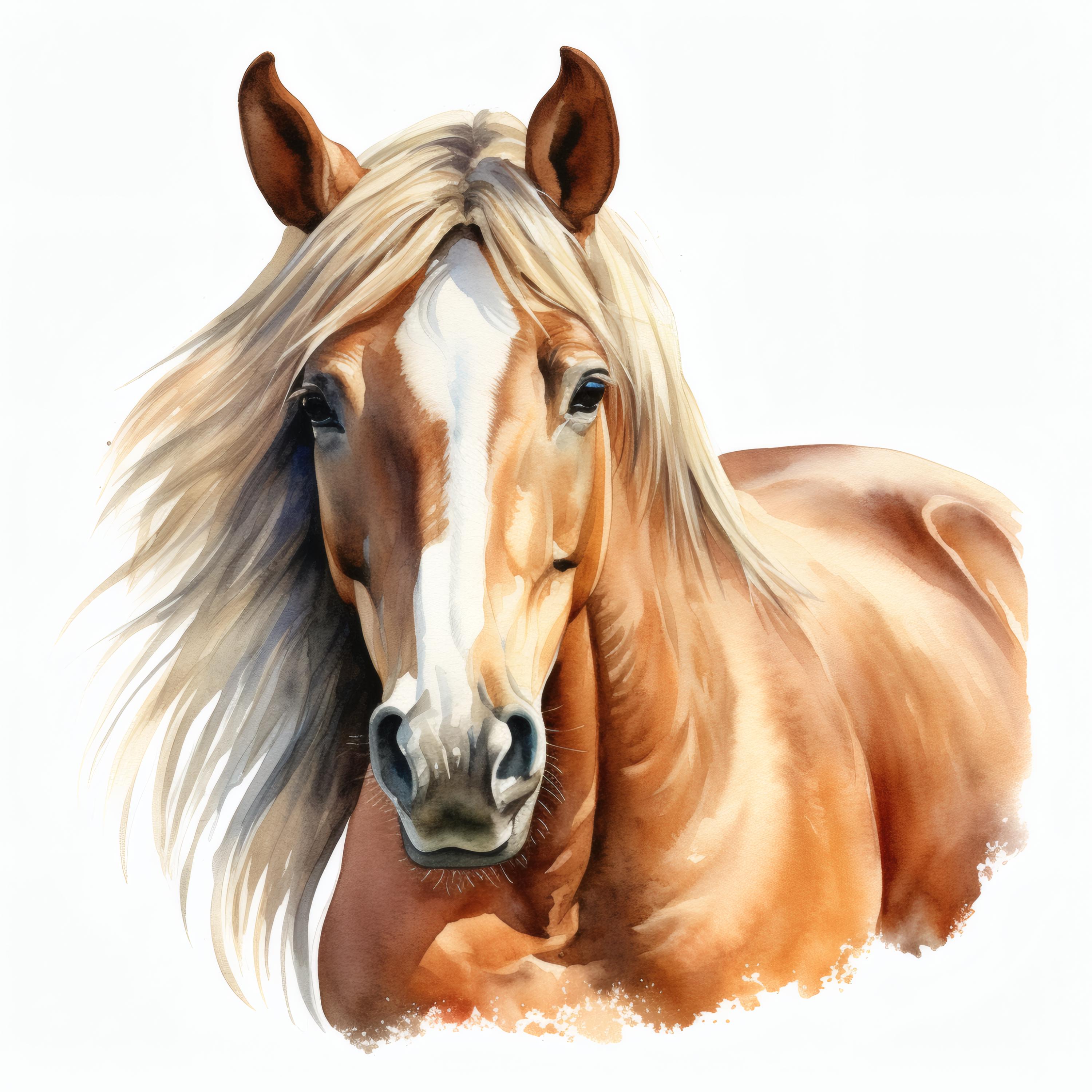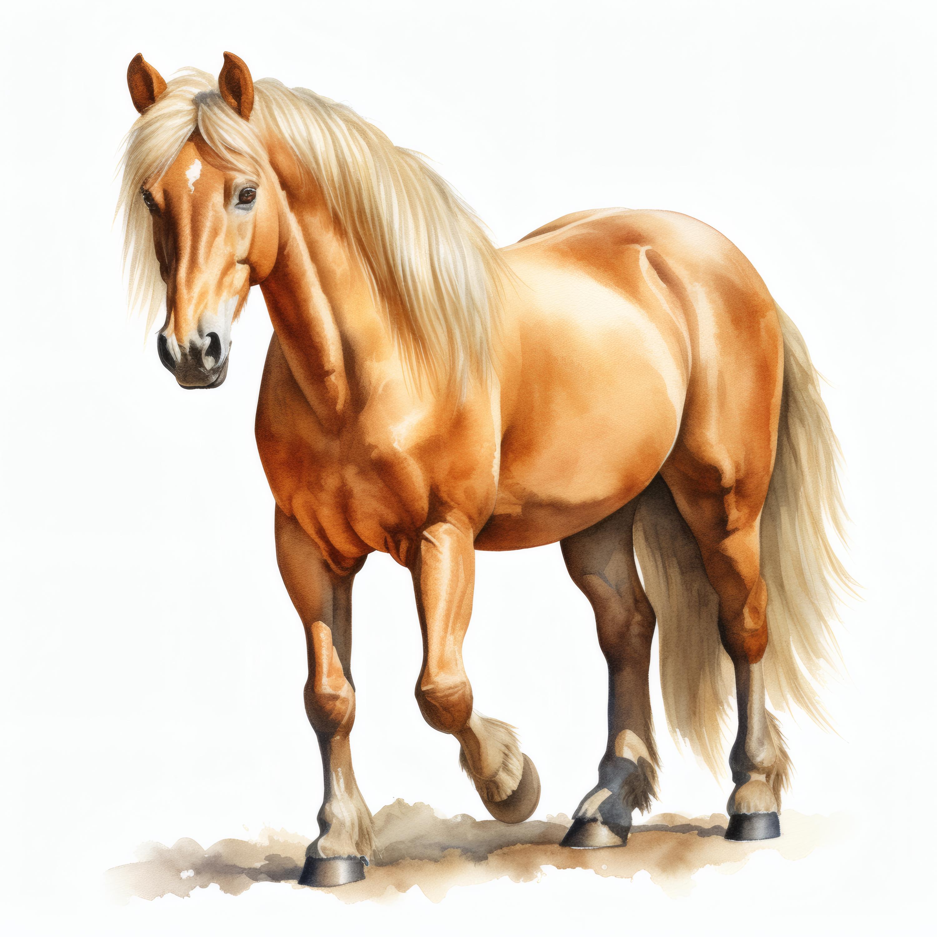 Haflinger Horse Clipart, Palomino Horse Images, 10 Watercolor Clip Art, Printable JPGs, Instant Download, Commercial Use, Paper Craft
