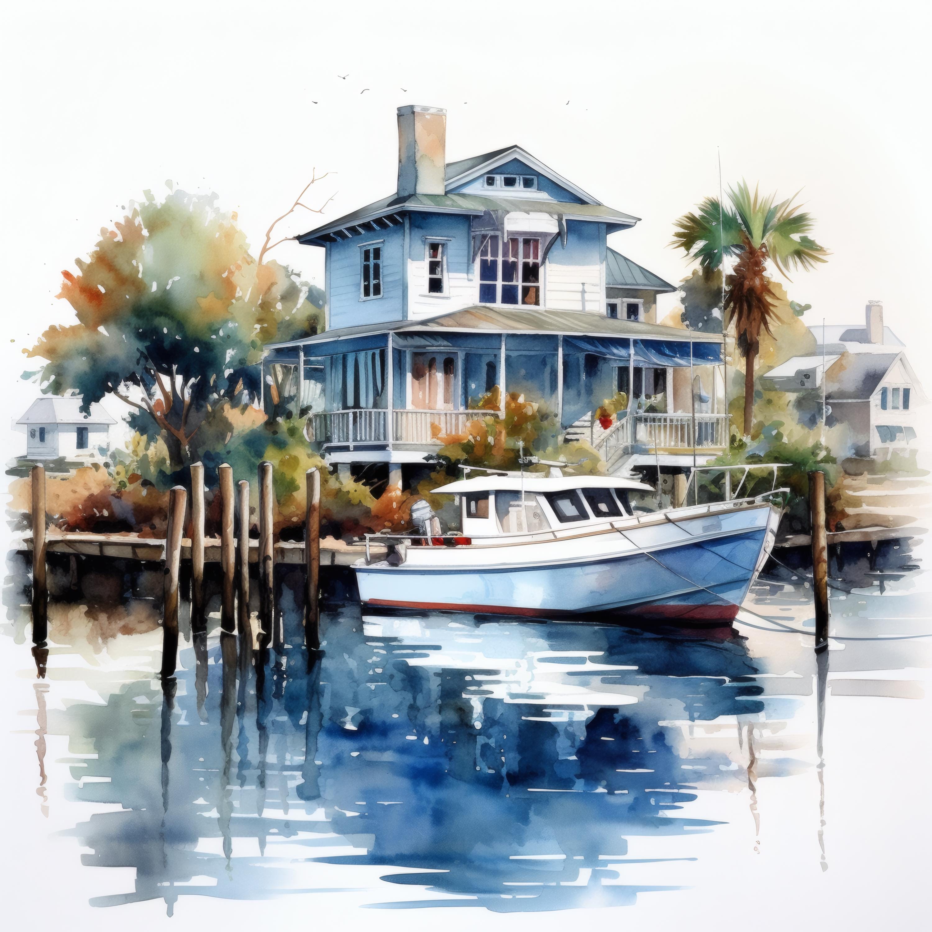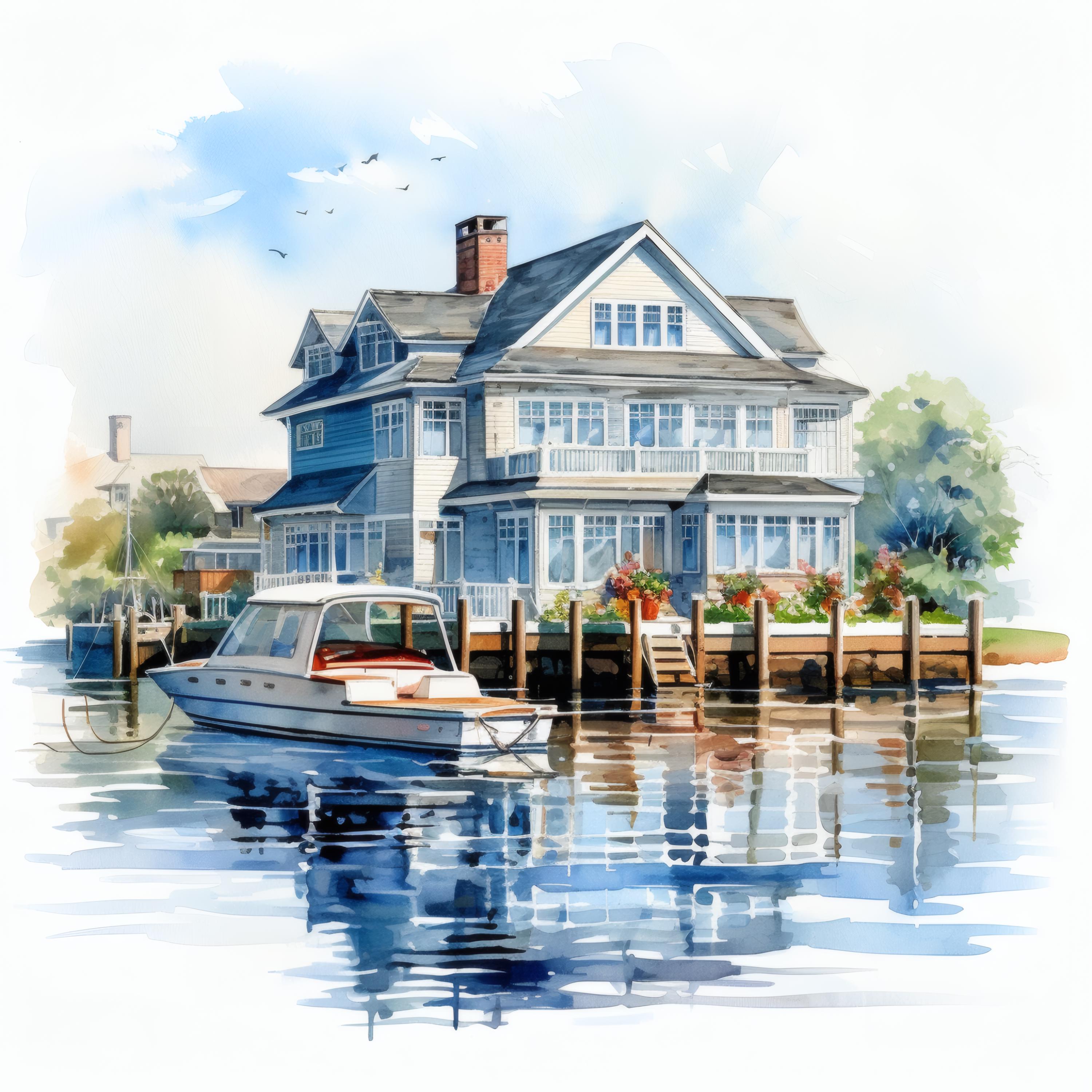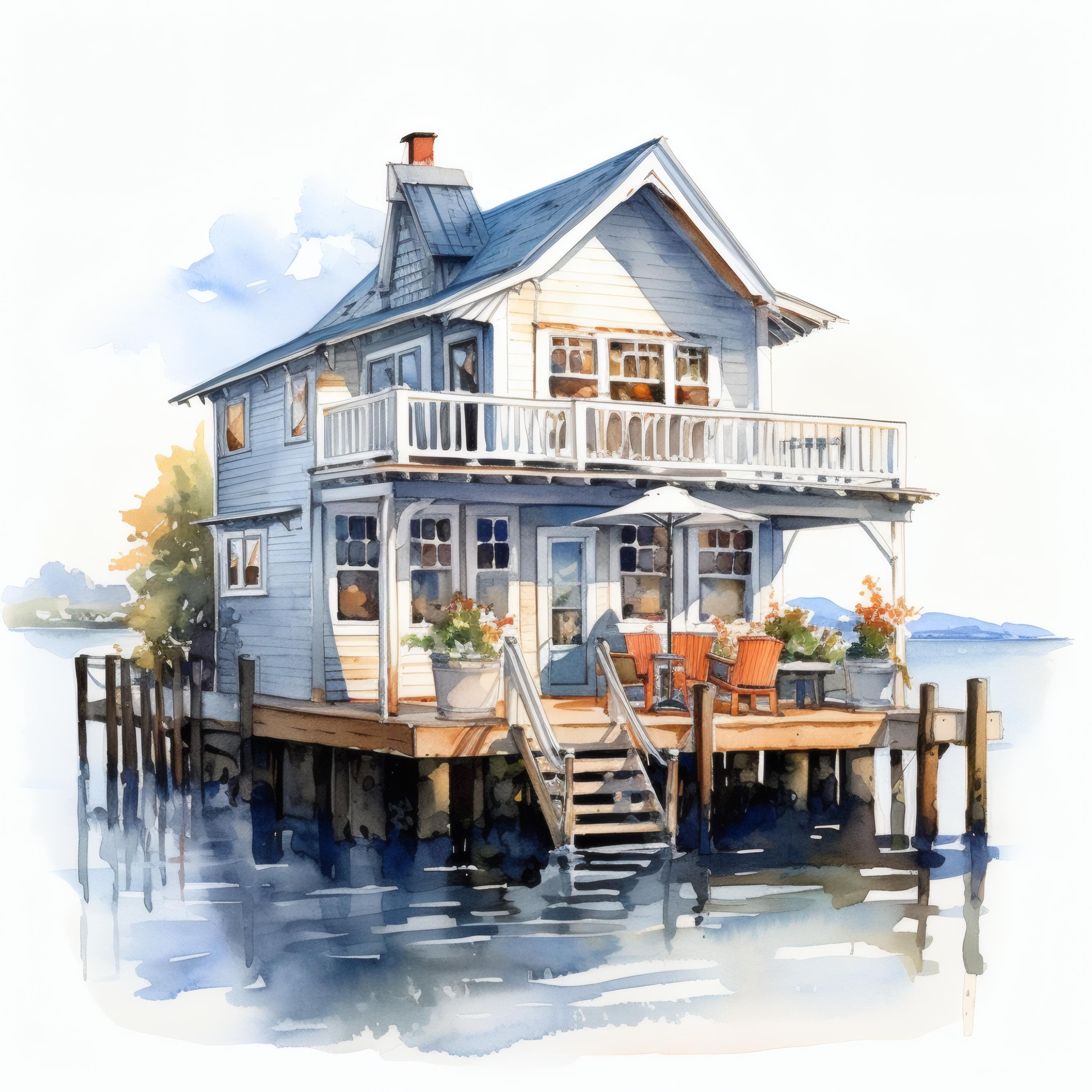 Harbor House Clipart, Coastal Home Images, 10 Watercolor Clip Art, Printable JPGs, Instant Download, Commercial Use, Paper Craft