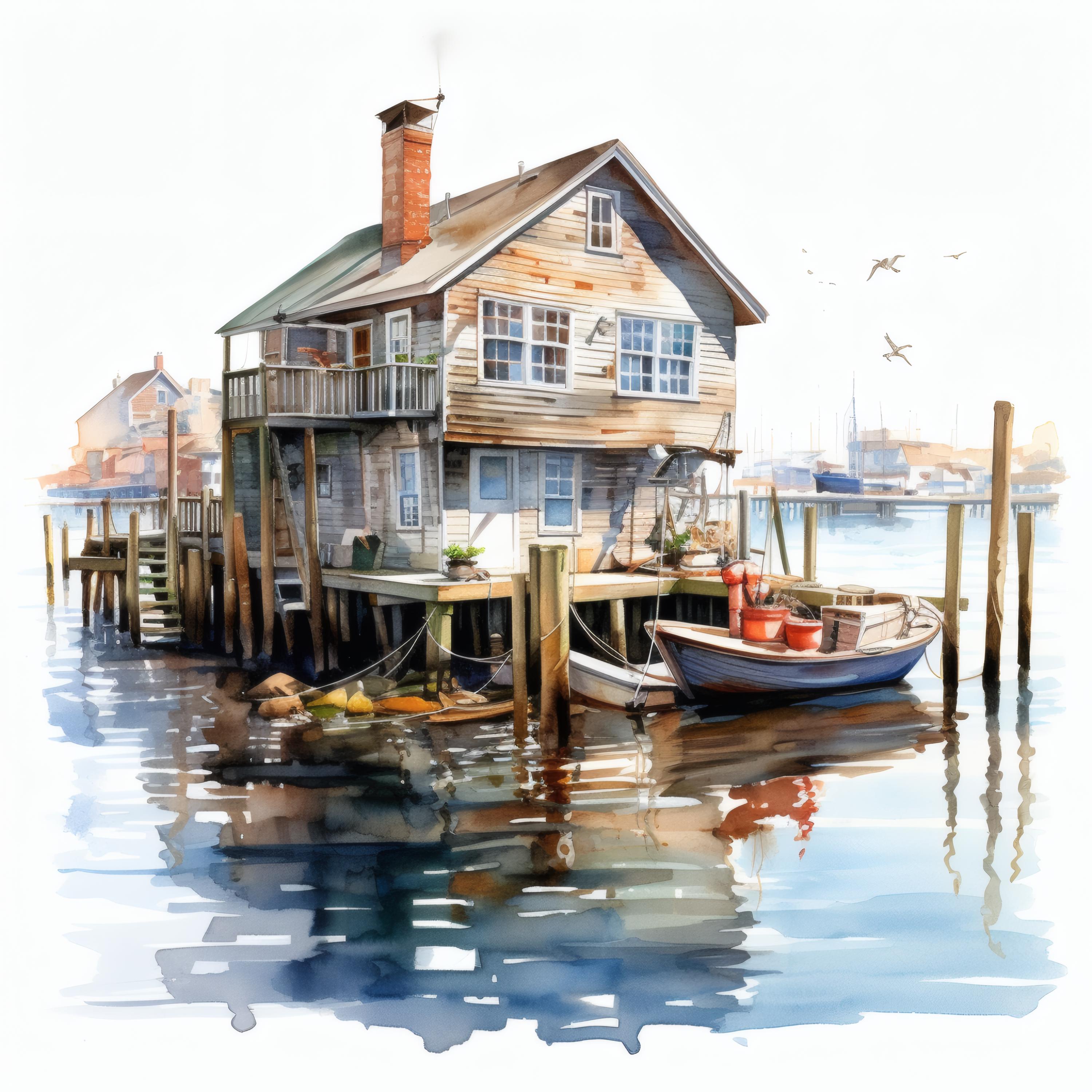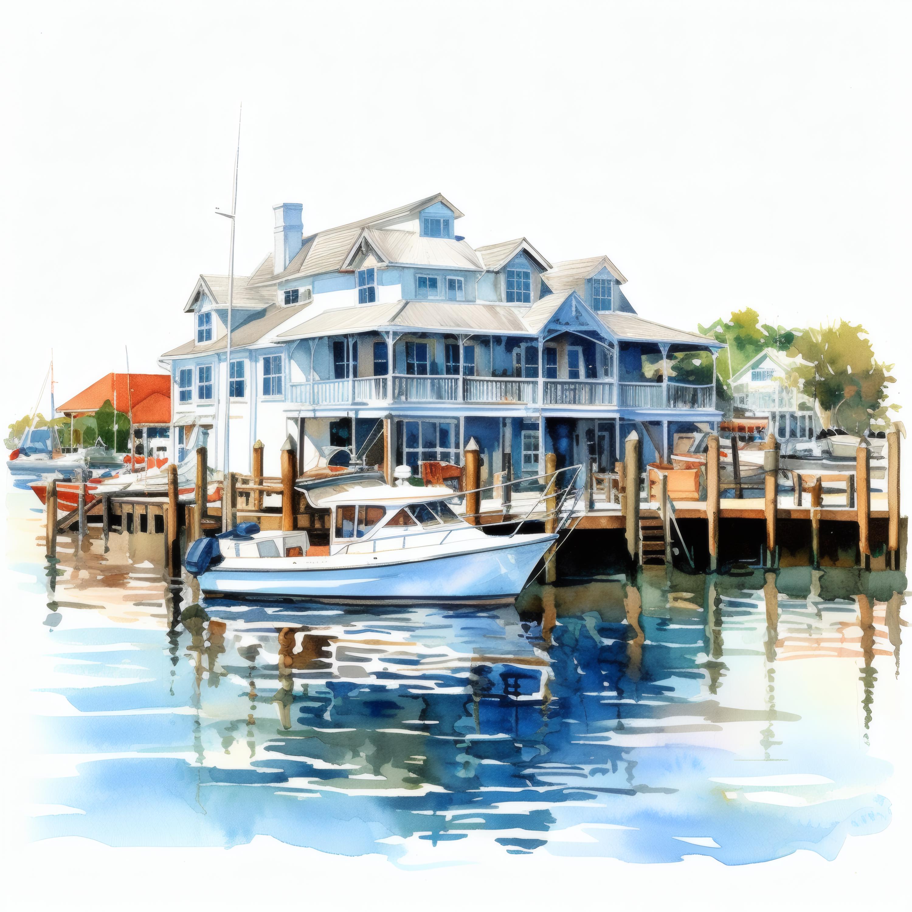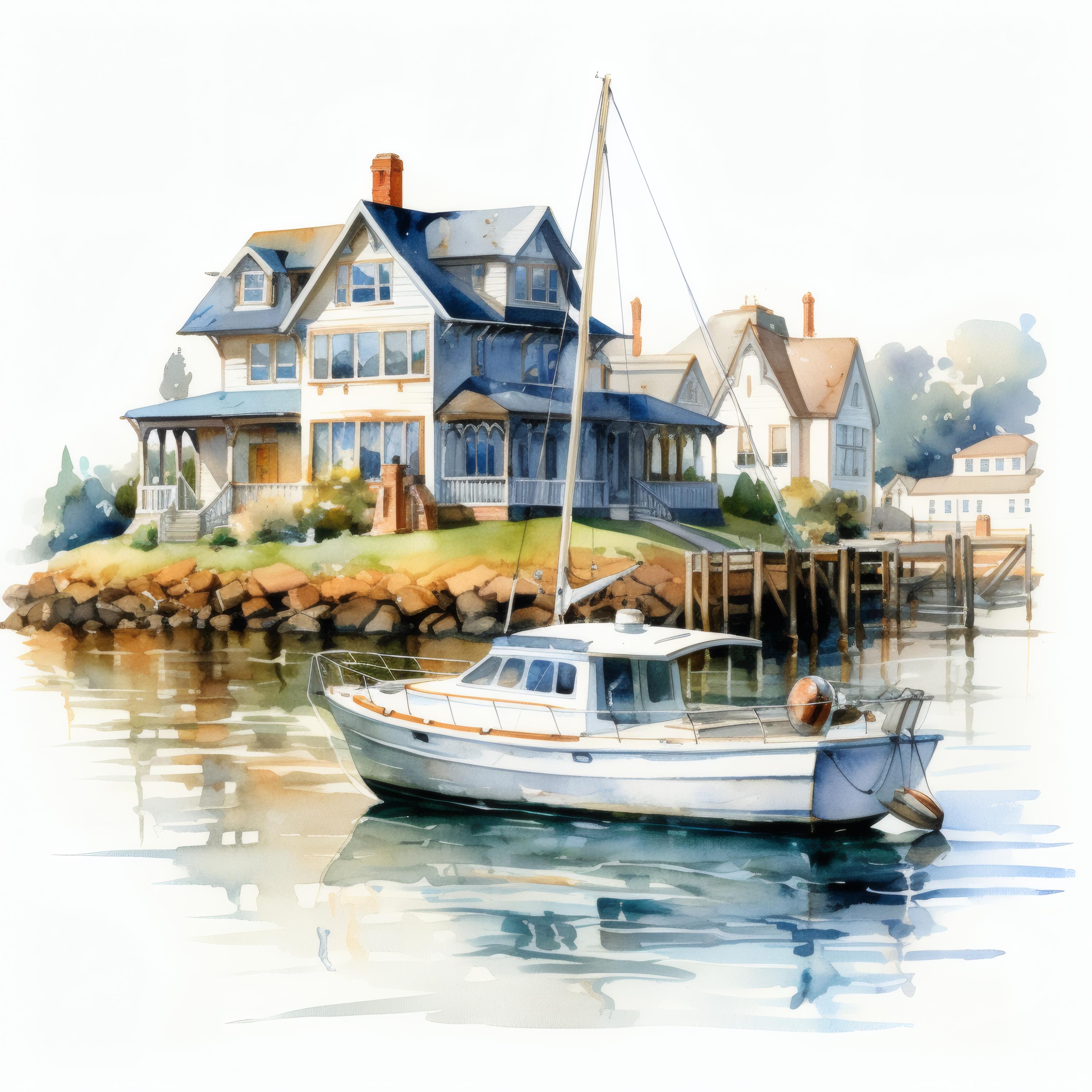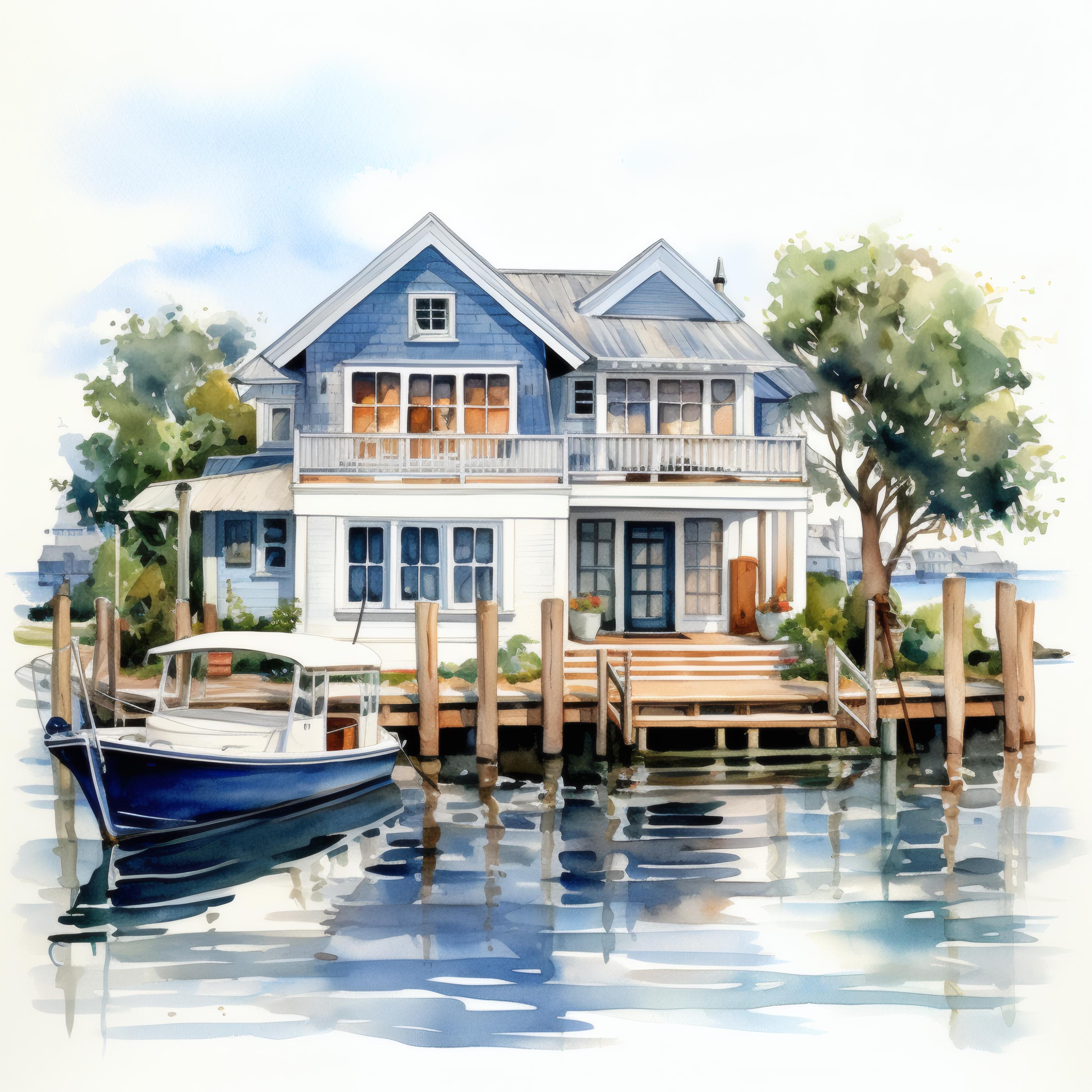 Harbor House Clipart, Coastal Home Images, 10 Watercolor Clip Art, Printable JPGs, Instant Download, Commercial Use, Paper Craft