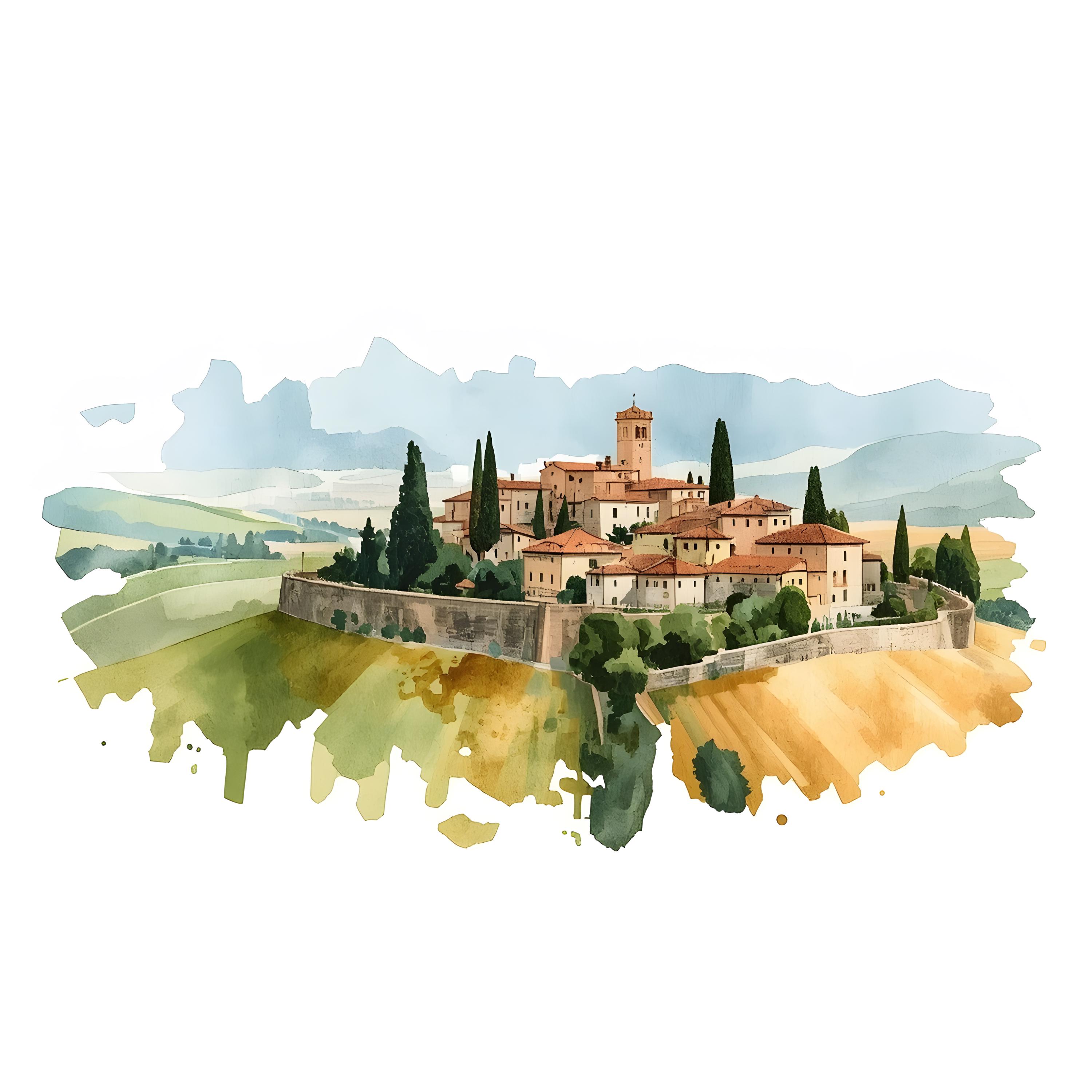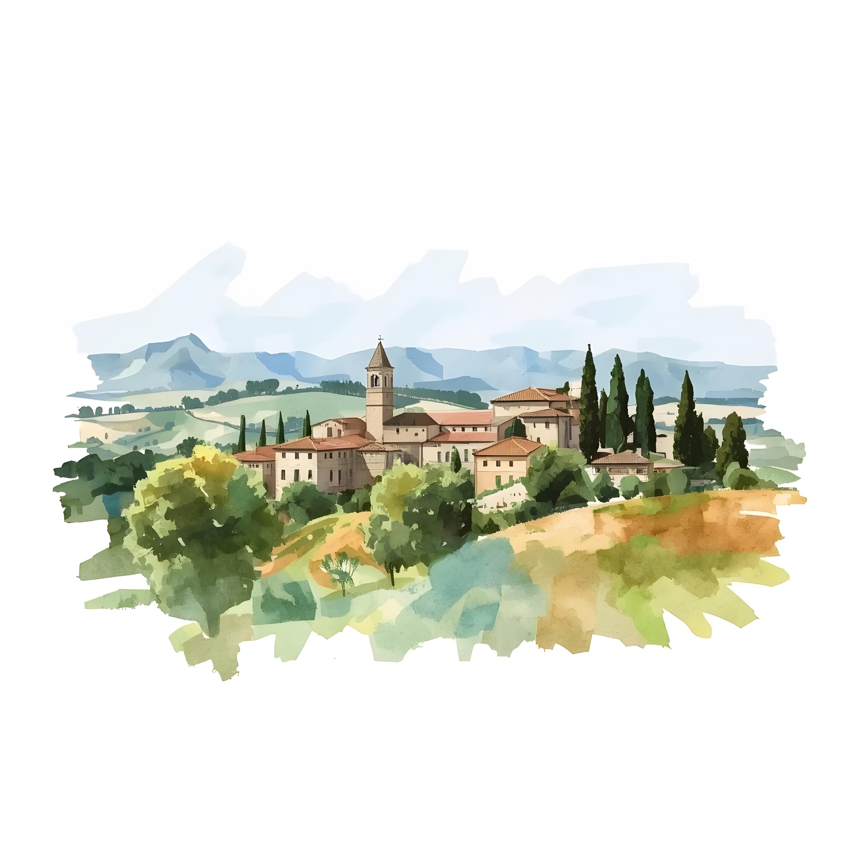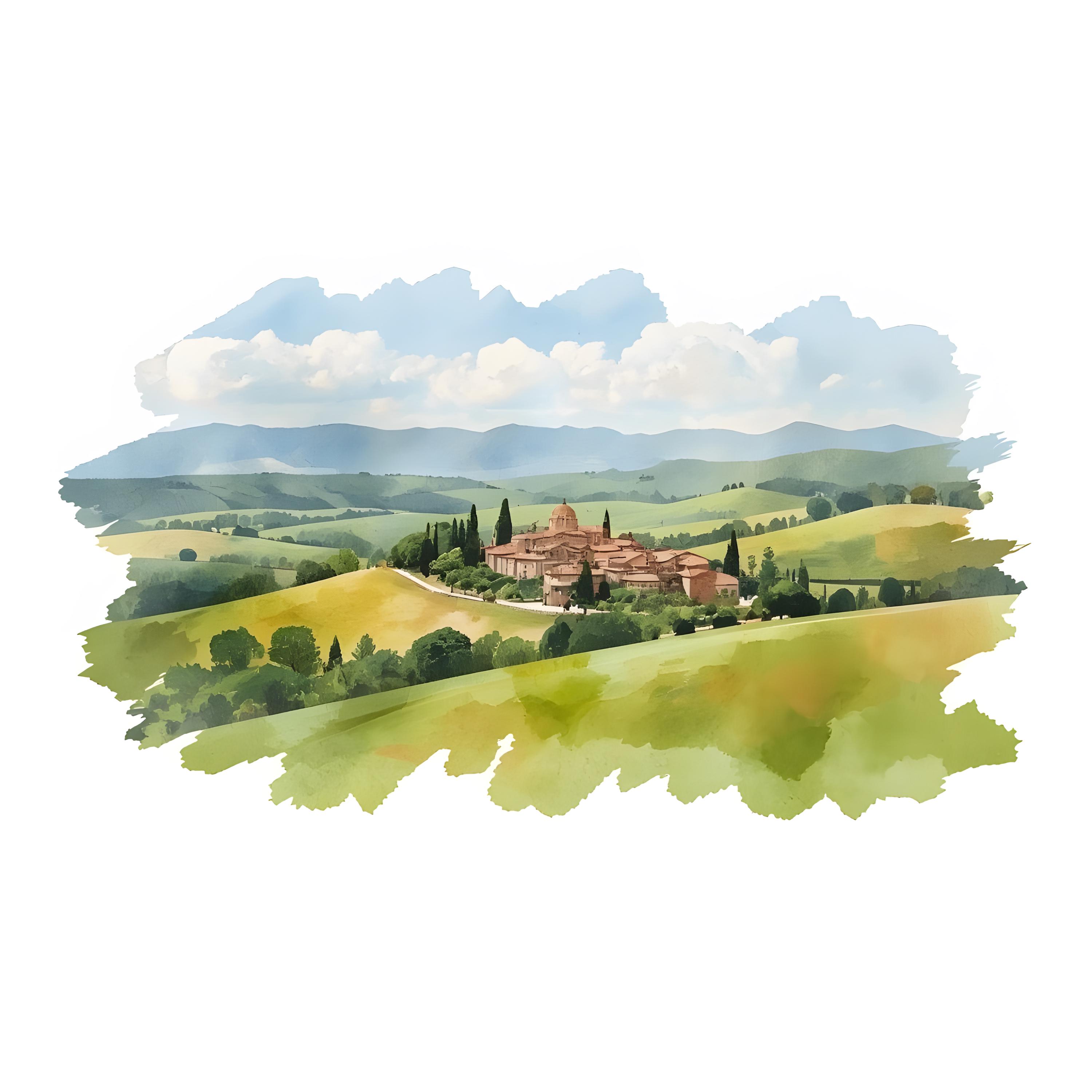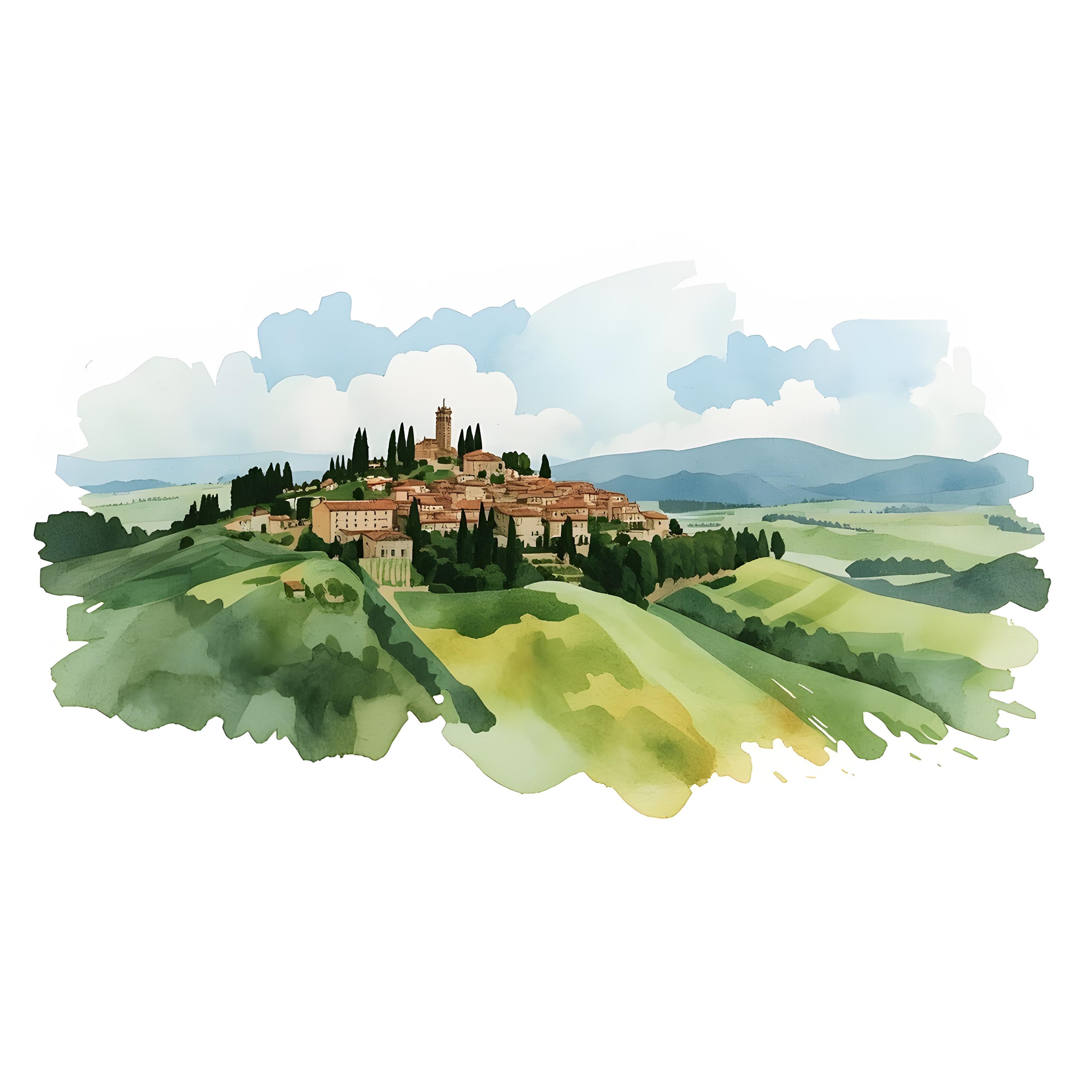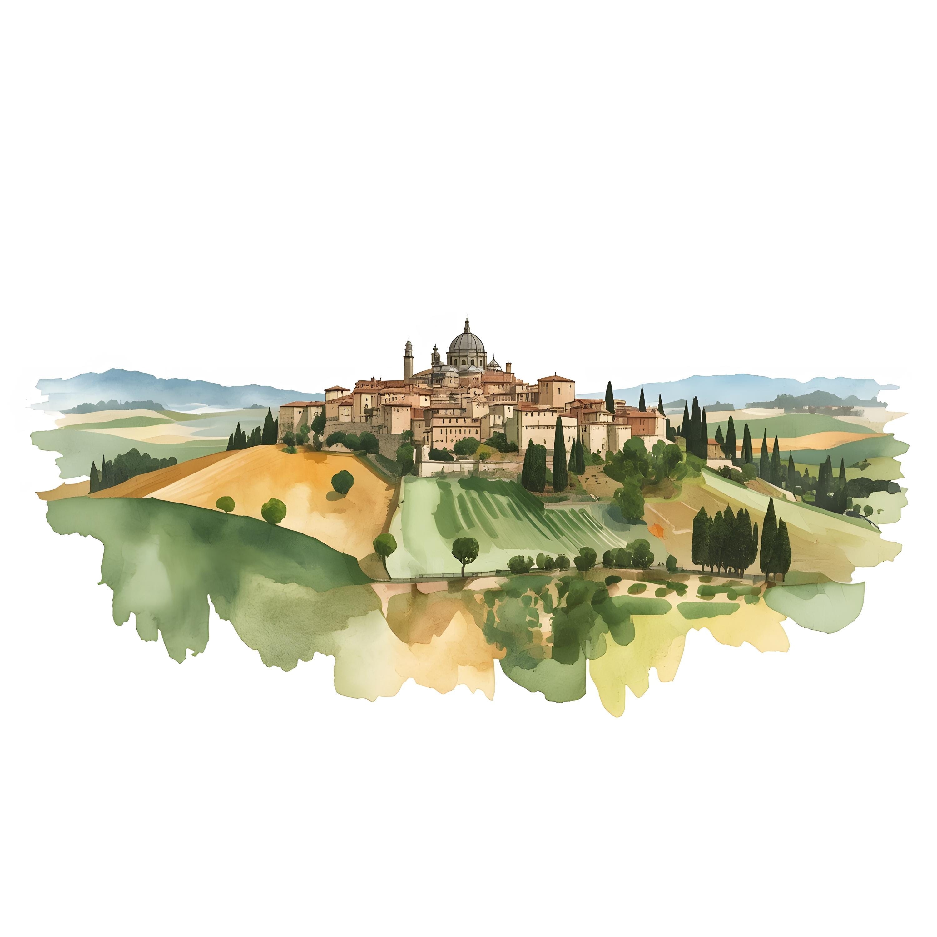 Tuscany Landscape Clipart, Italy Hilltown Images, 10 Watercolor Clip Art, Printable JPGs, Instant Download, Commercial Use, Paper craft