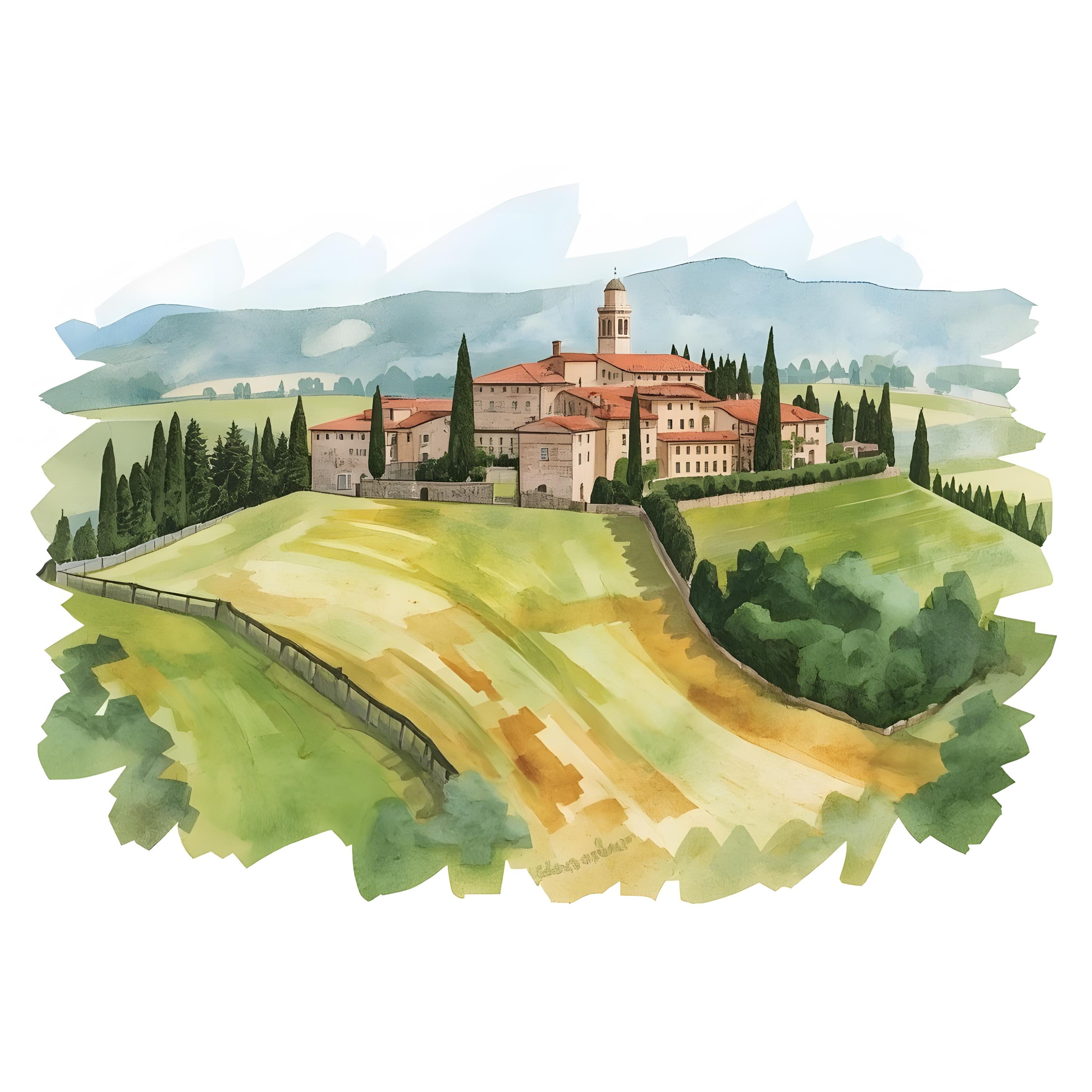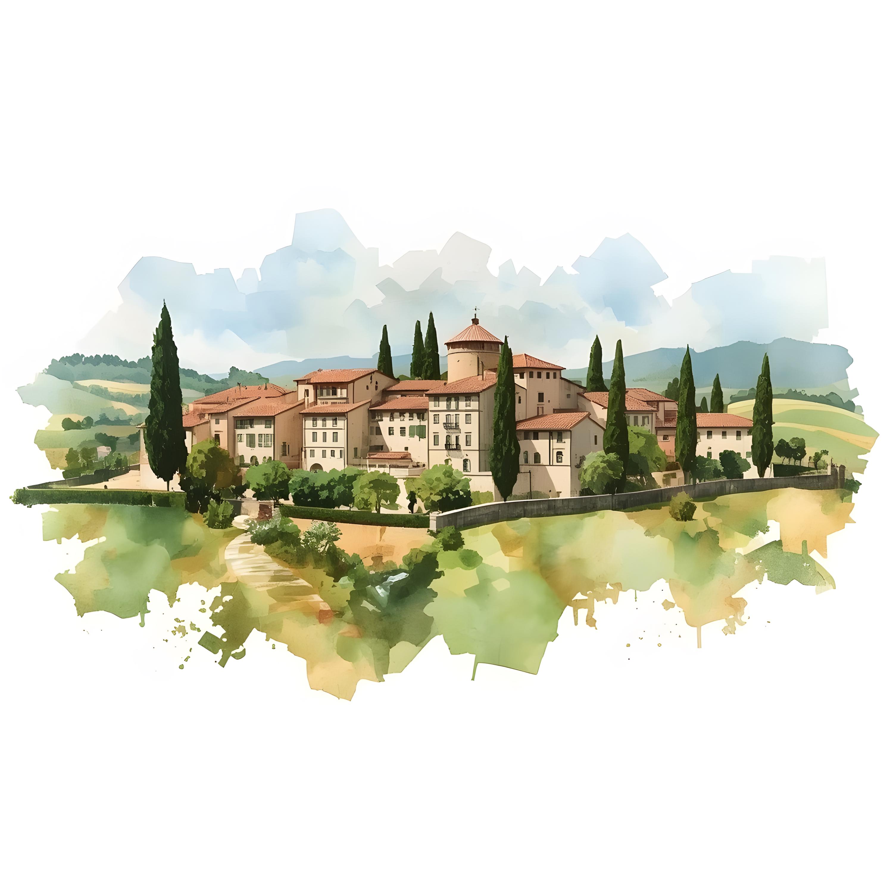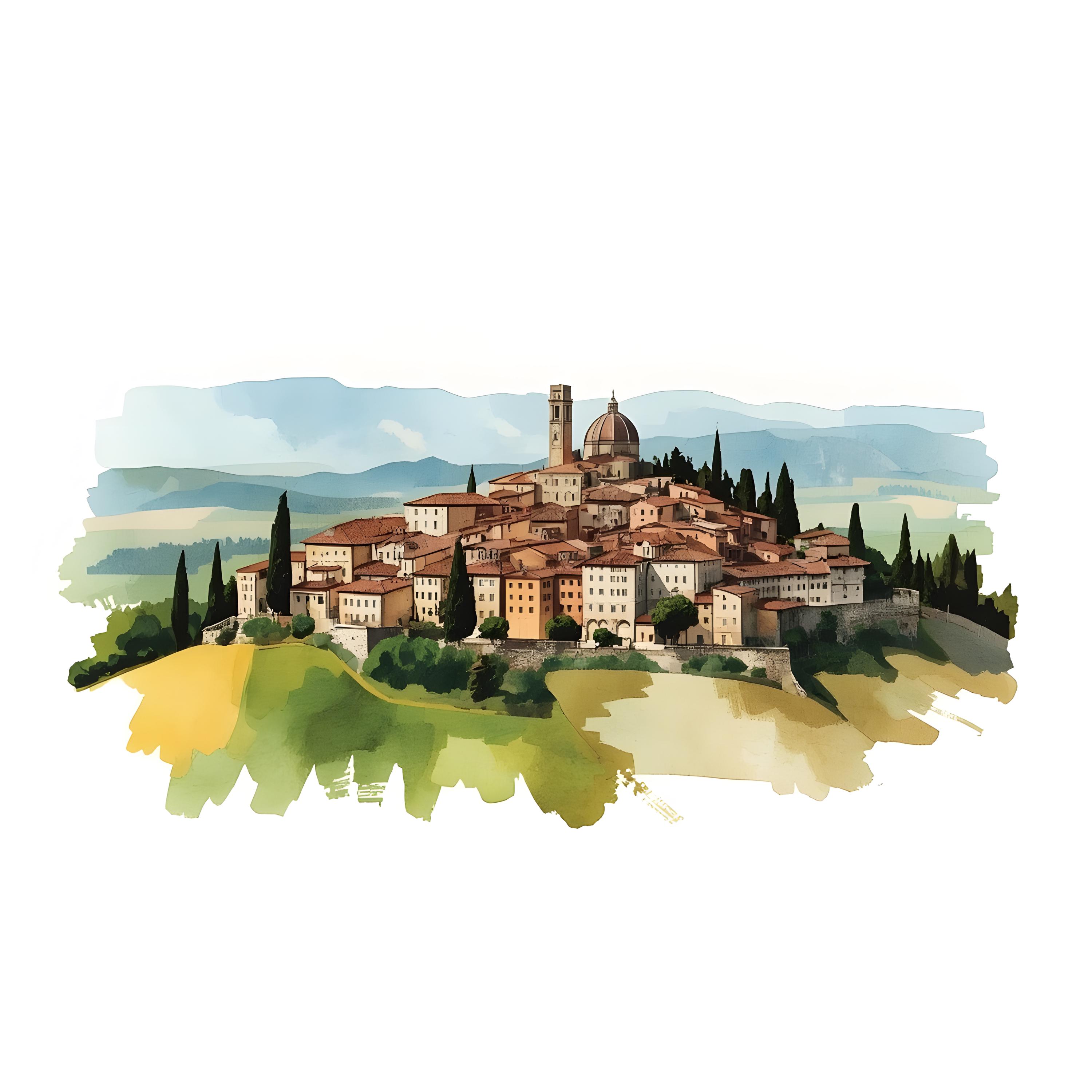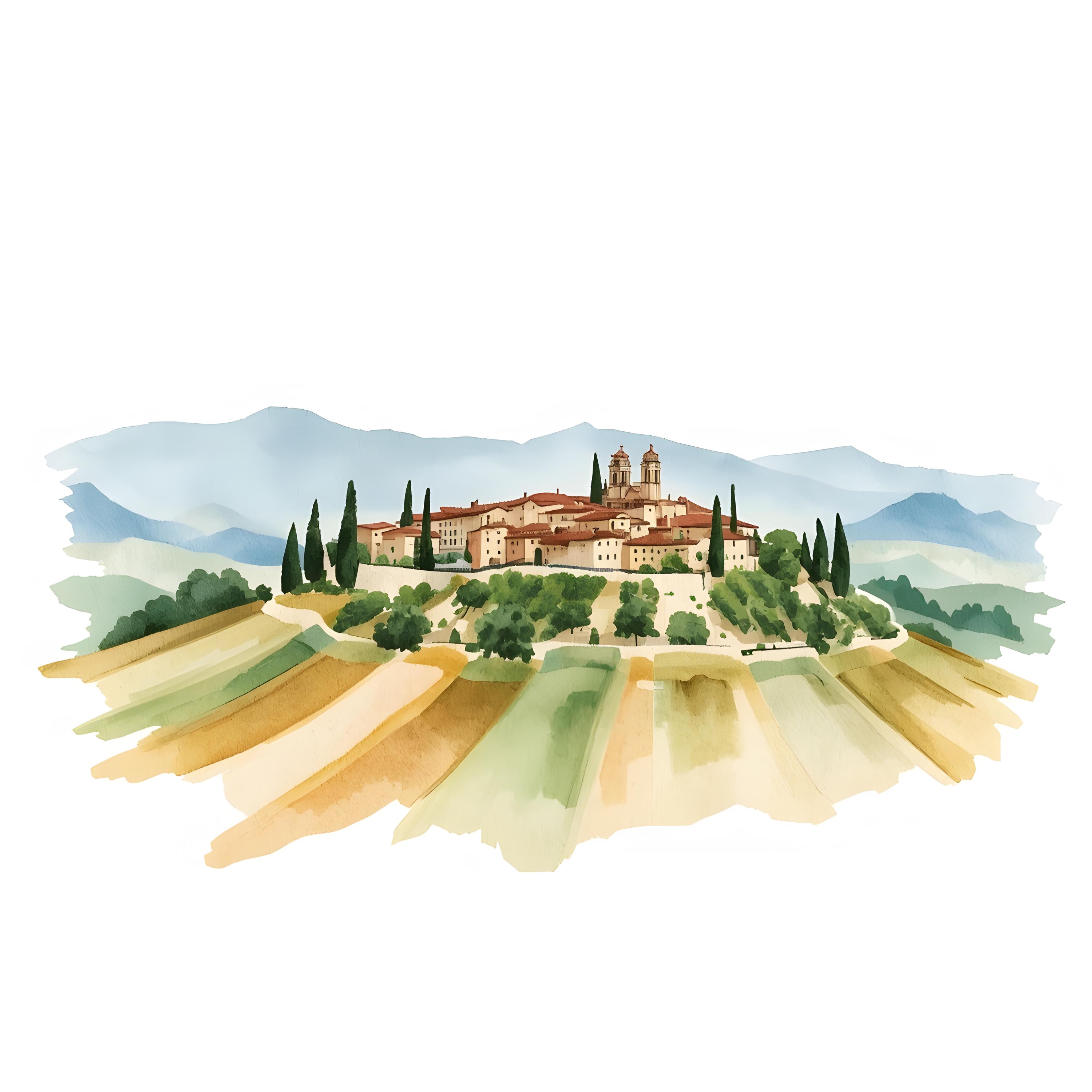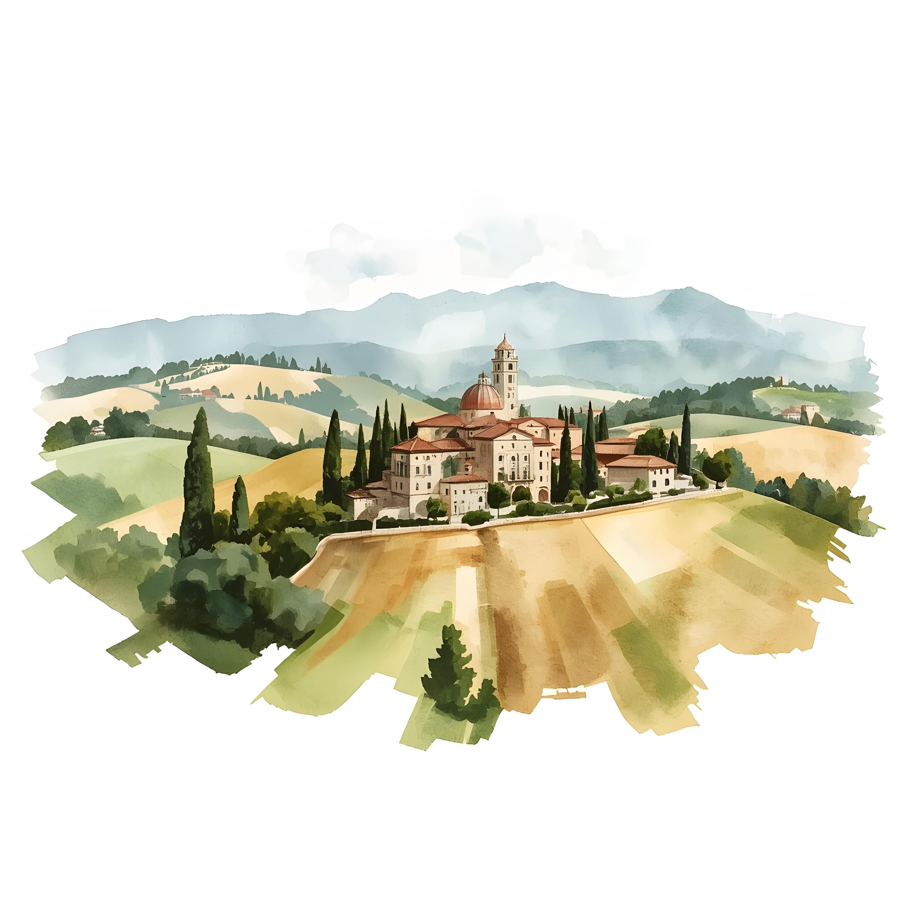 Tuscany Landscape Clipart, Italy Hilltown Images, 10 Watercolor Clip Art, Printable JPGs, Instant Download, Commercial Use, Paper craft