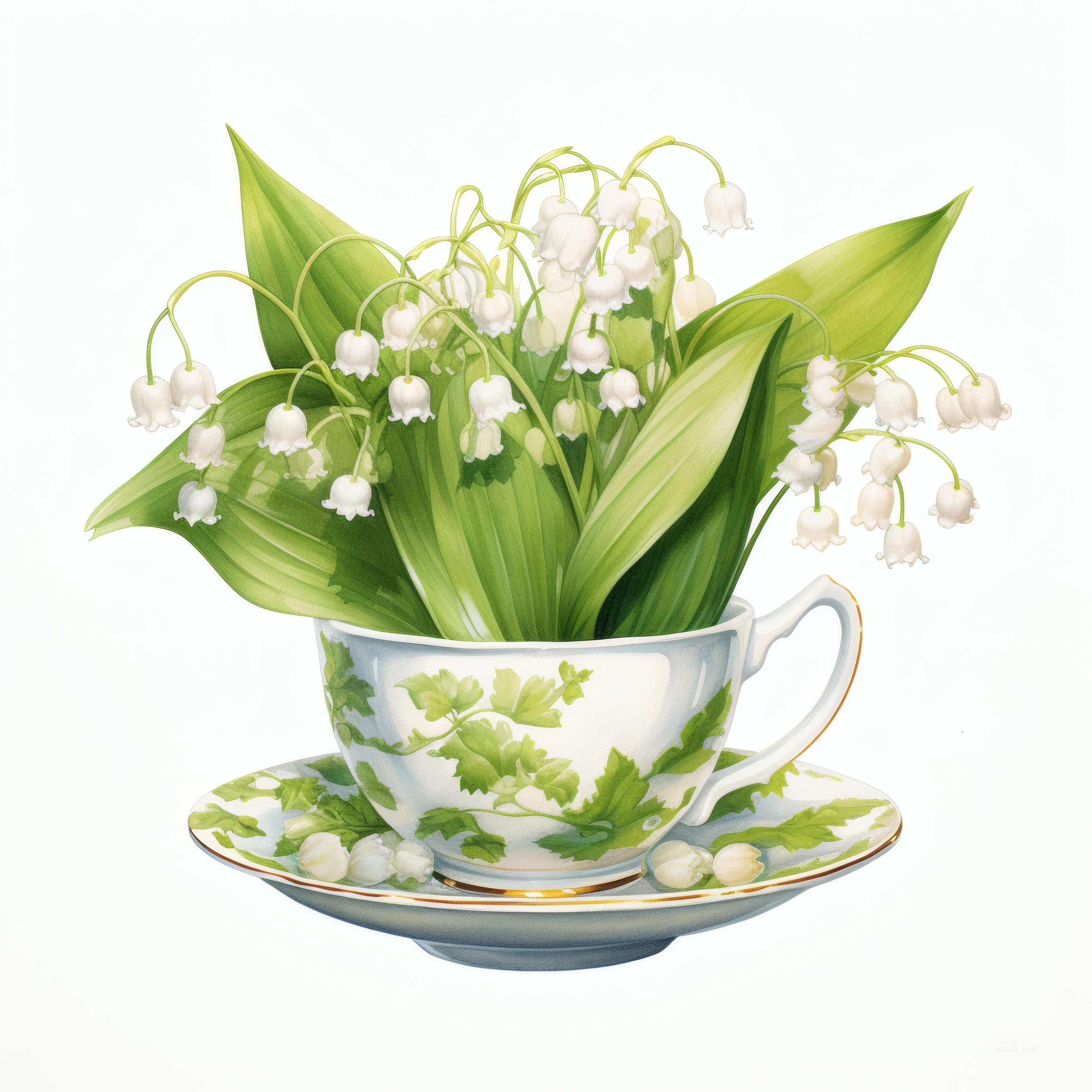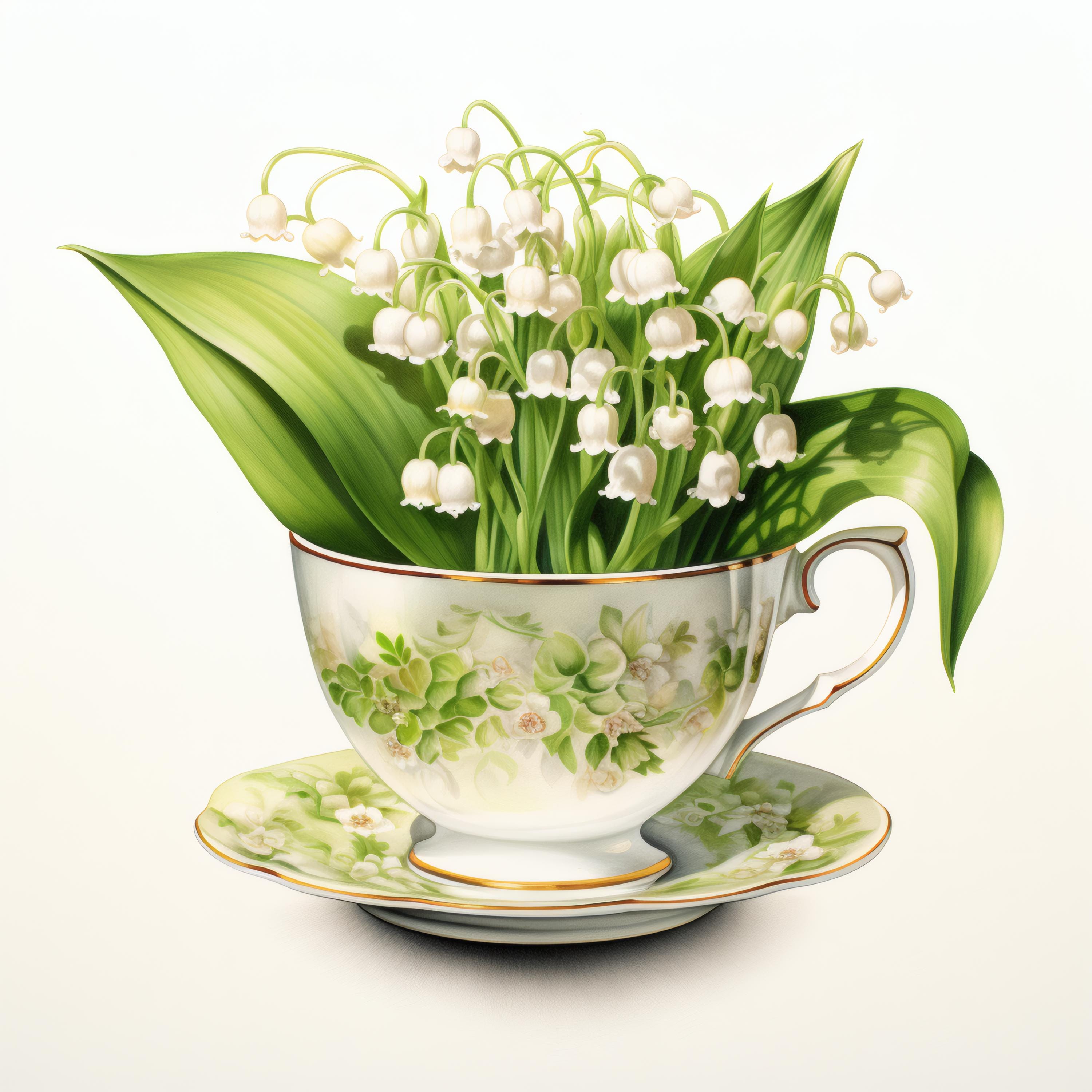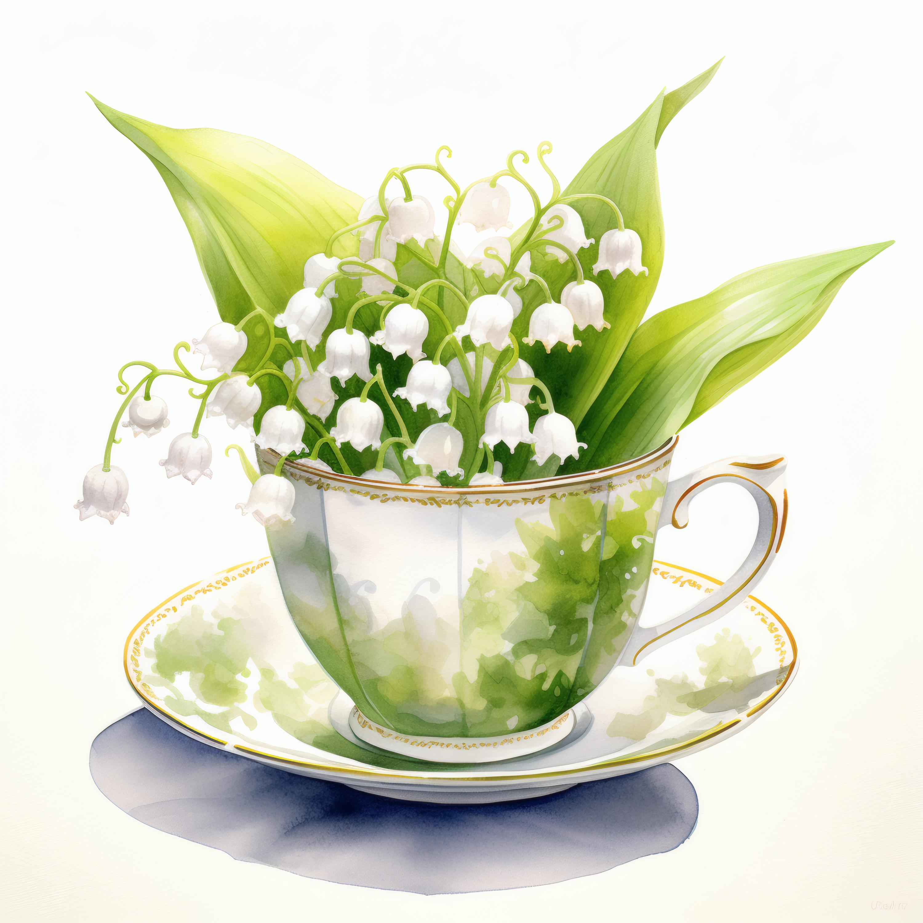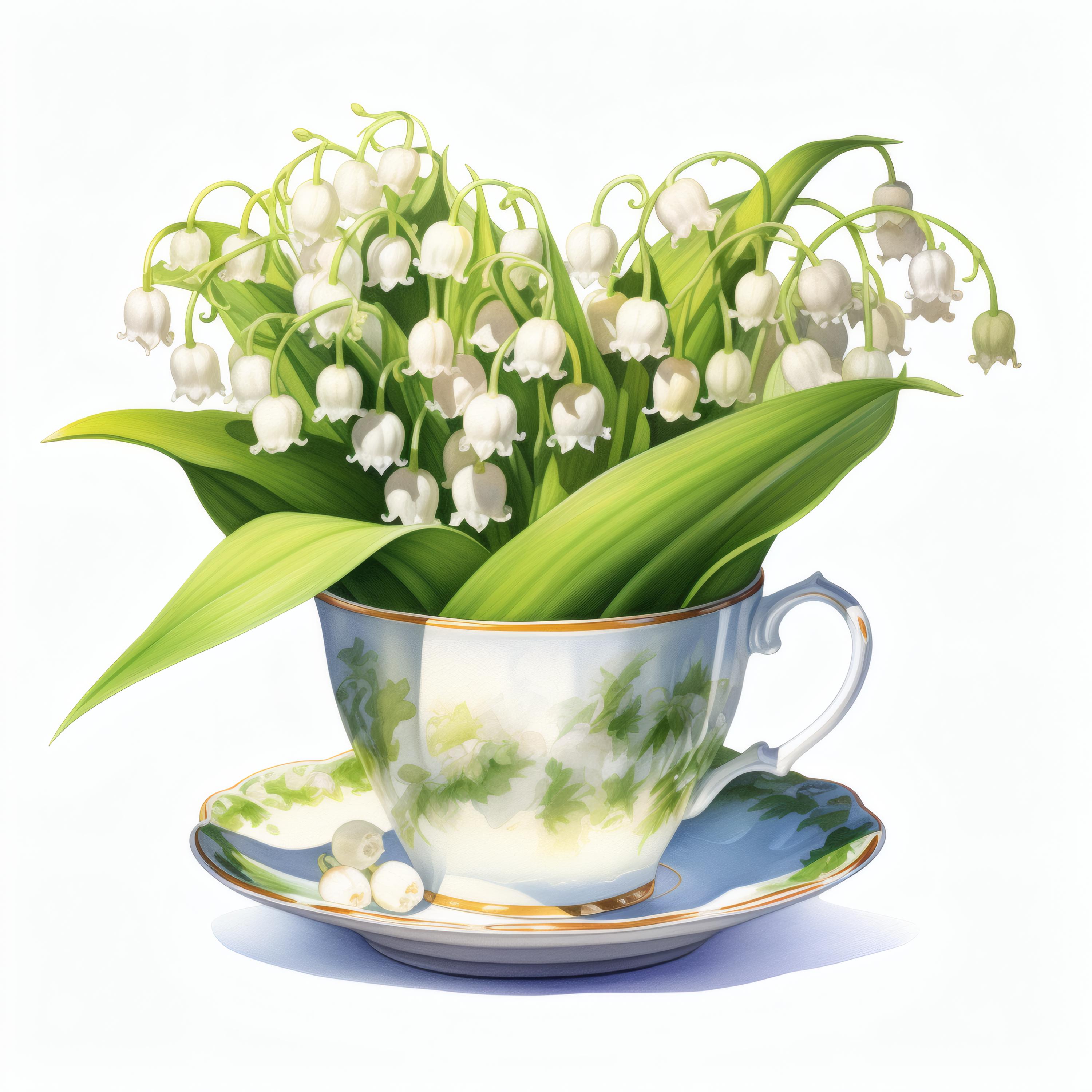 Lily of the Valley Clipart, Tea Cup Floral Images, 10 Watercolor Clip Art, Printable JPGs, Instant Download, Commercial Use, Paper craft