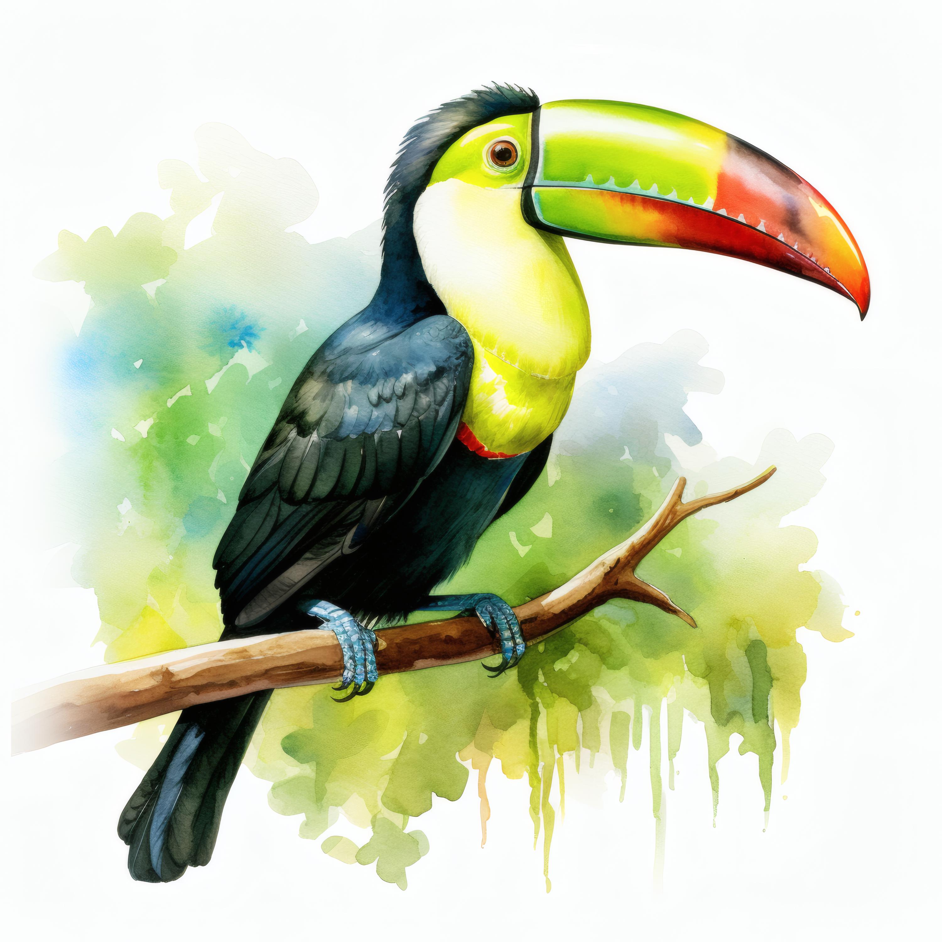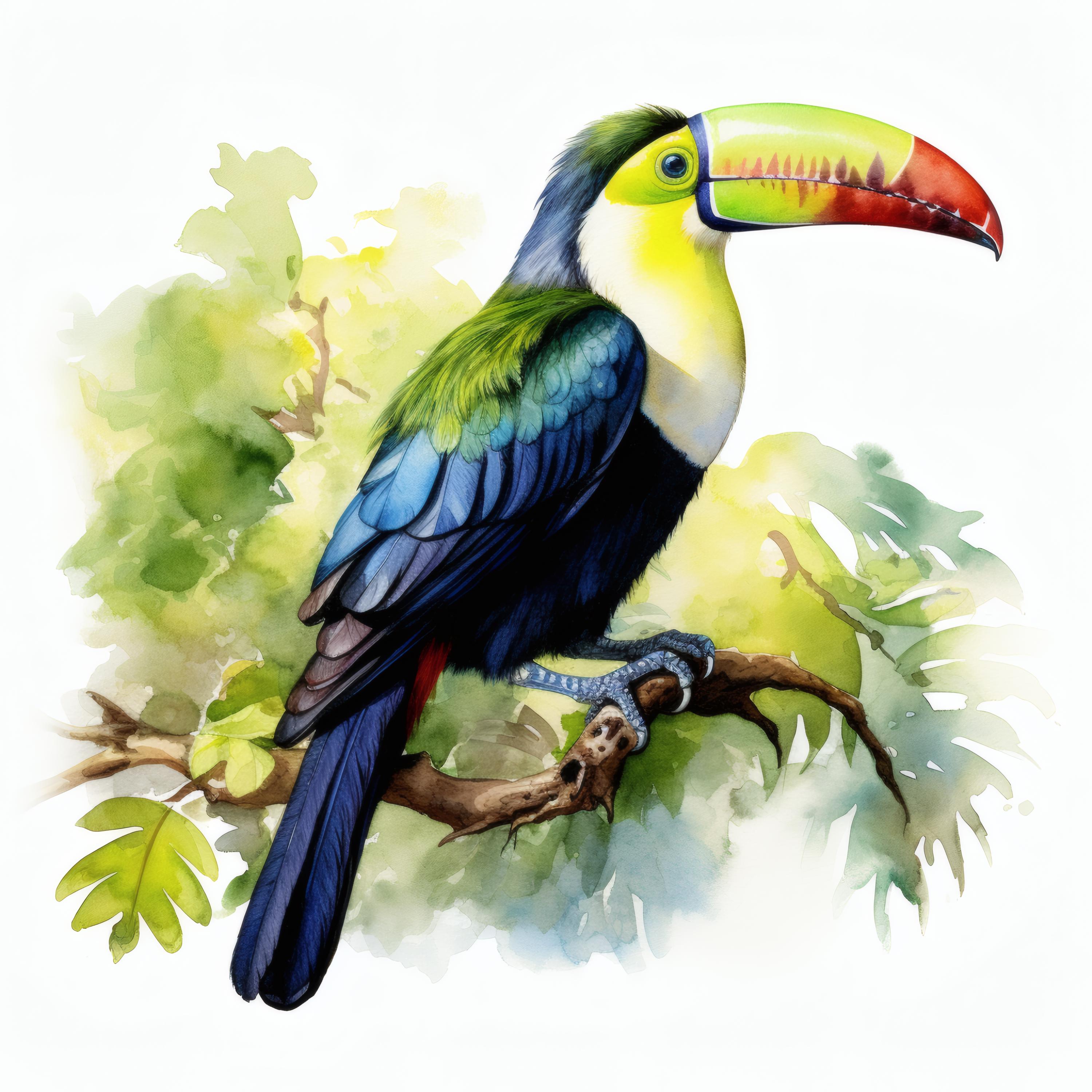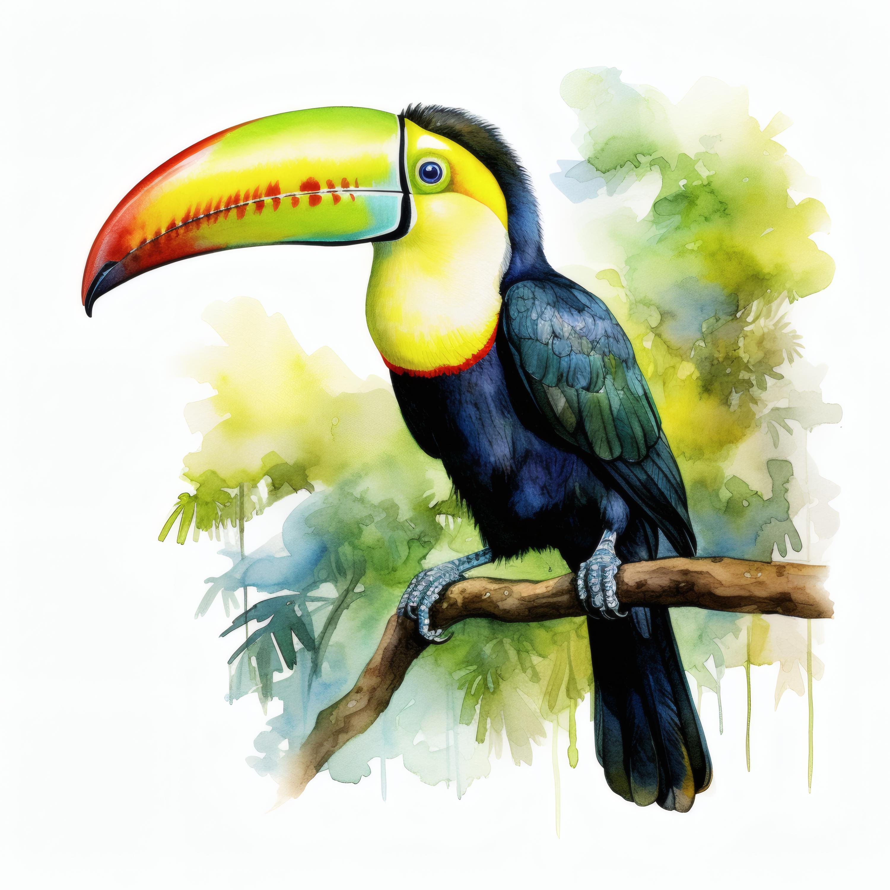Toucan Bird Clipart, Tropical Wildlife Images, 10 Watercolor Clip Art, Printable JPGs, Instant Download, Commercial Use, Paper craft